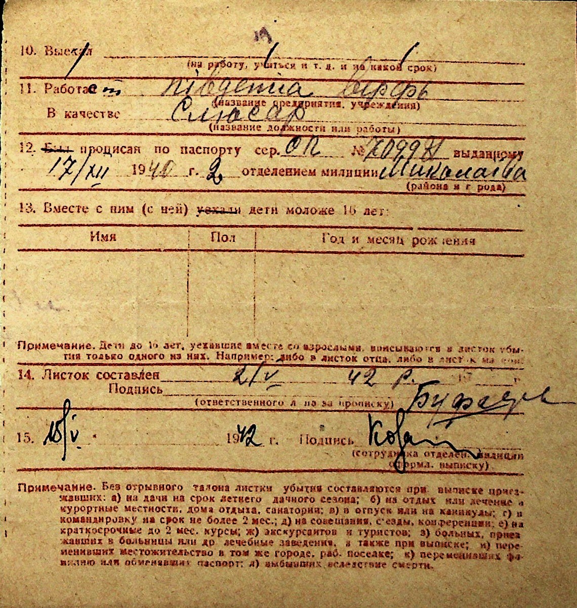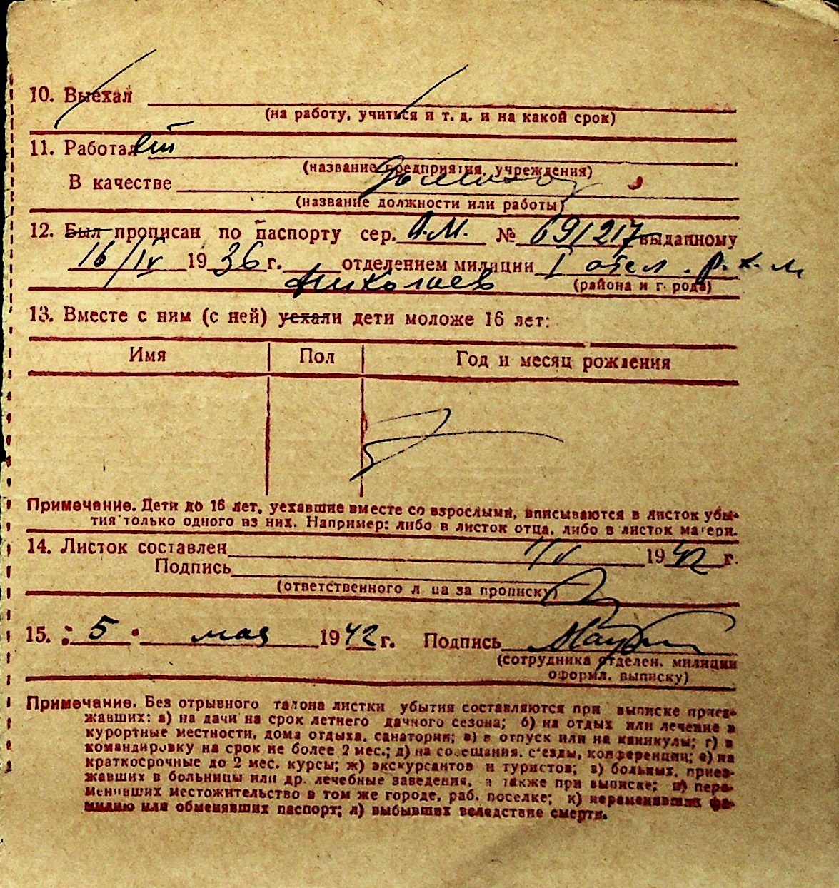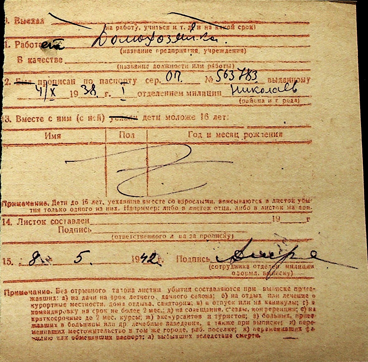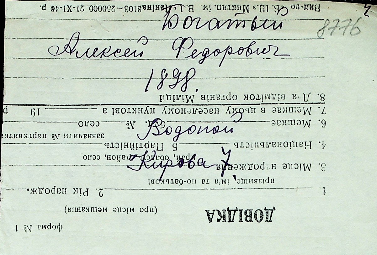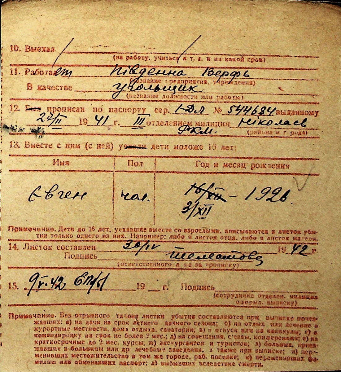 ◦ ◦ Перелік карток на осіб, які мешкали у м. Миколаїв у період окупації 1941–1944 років