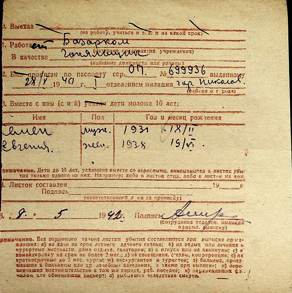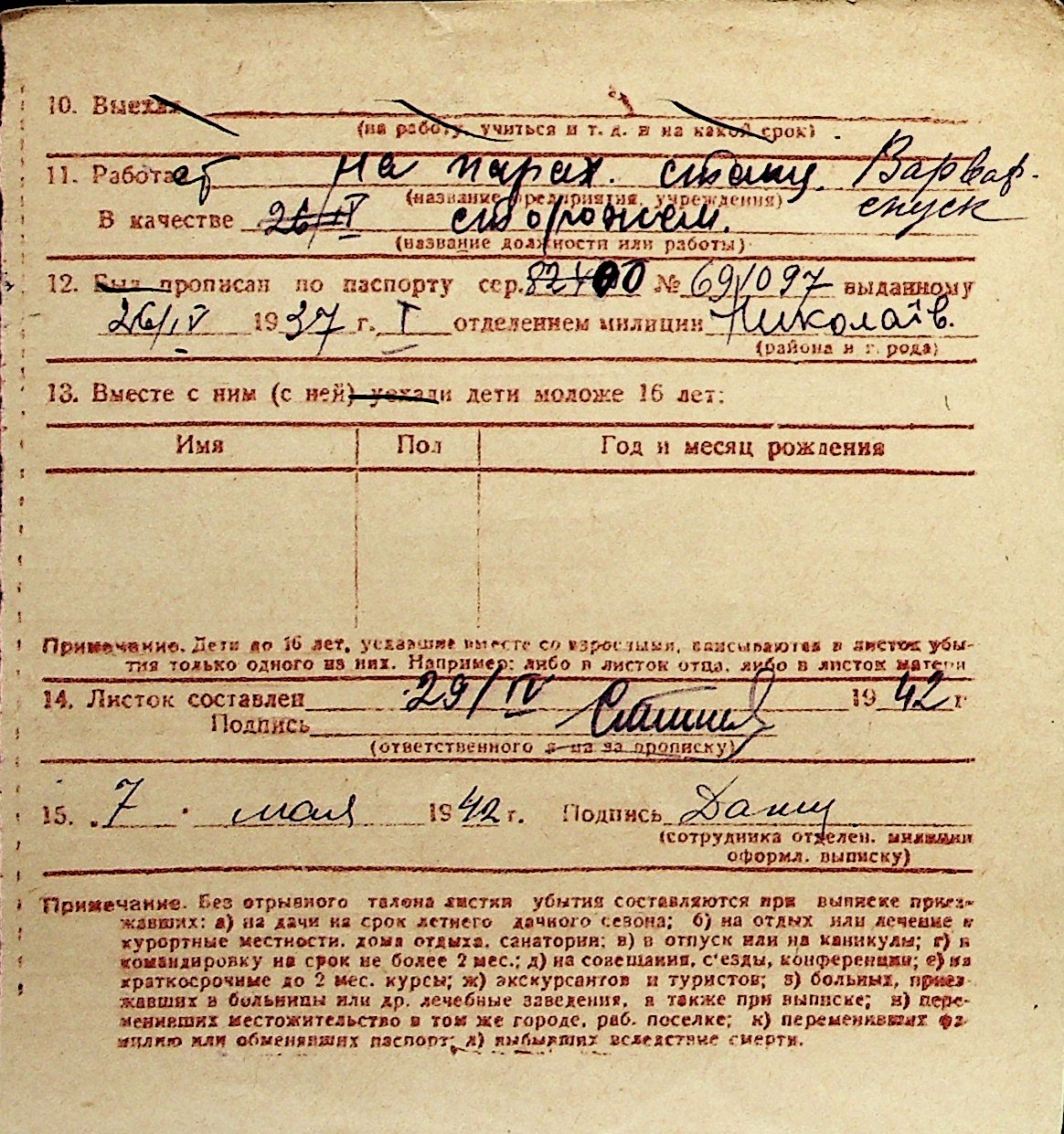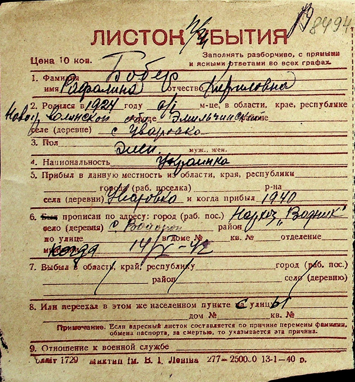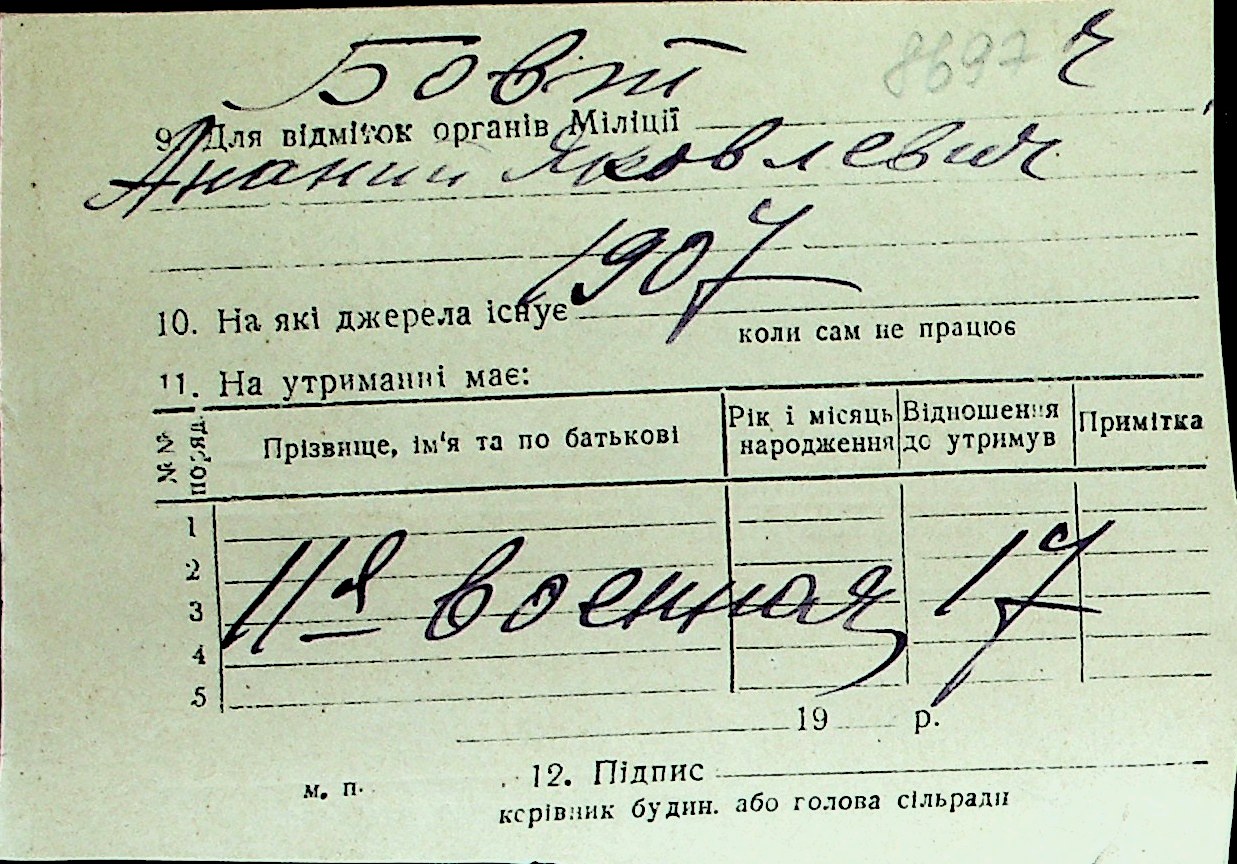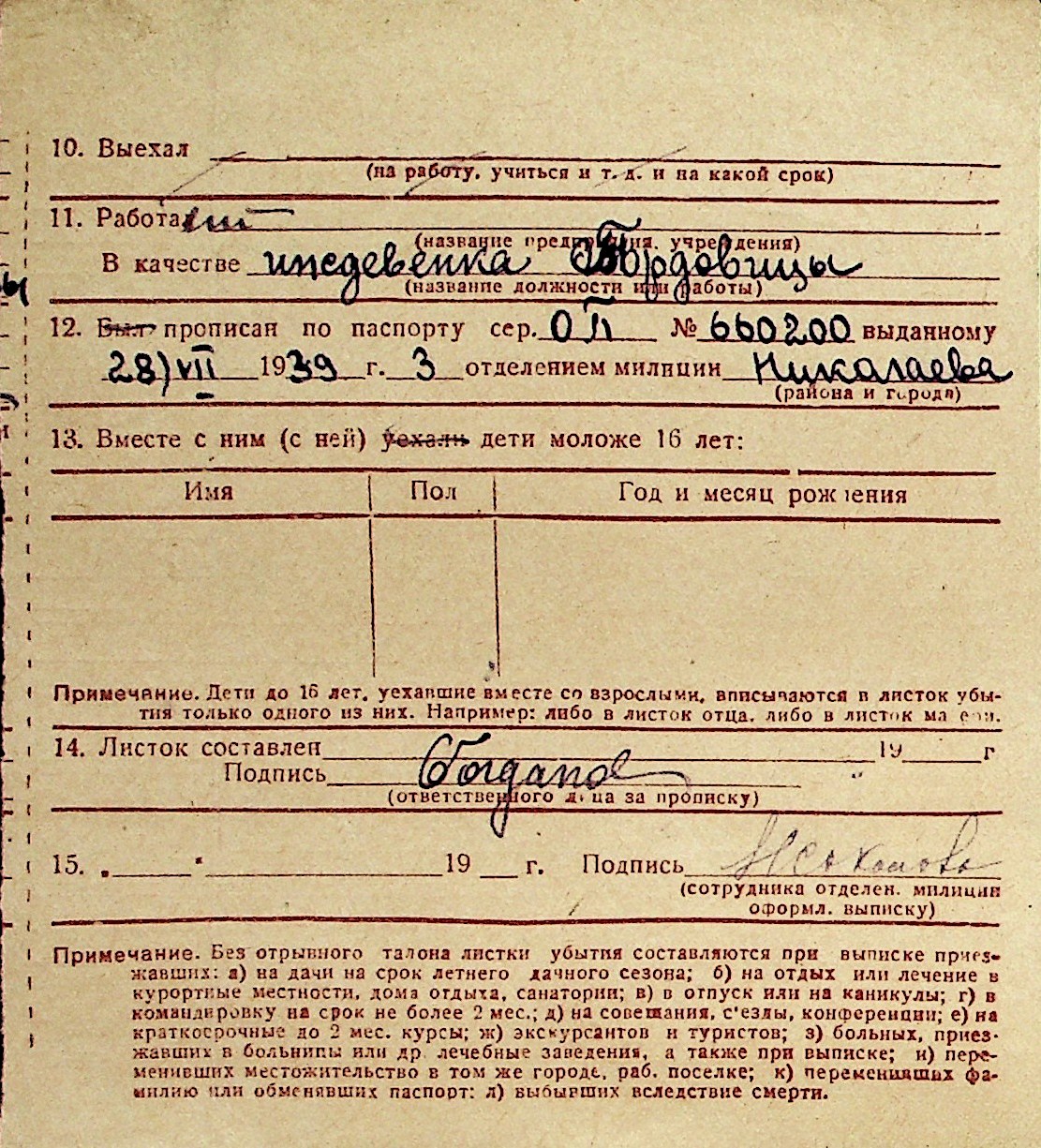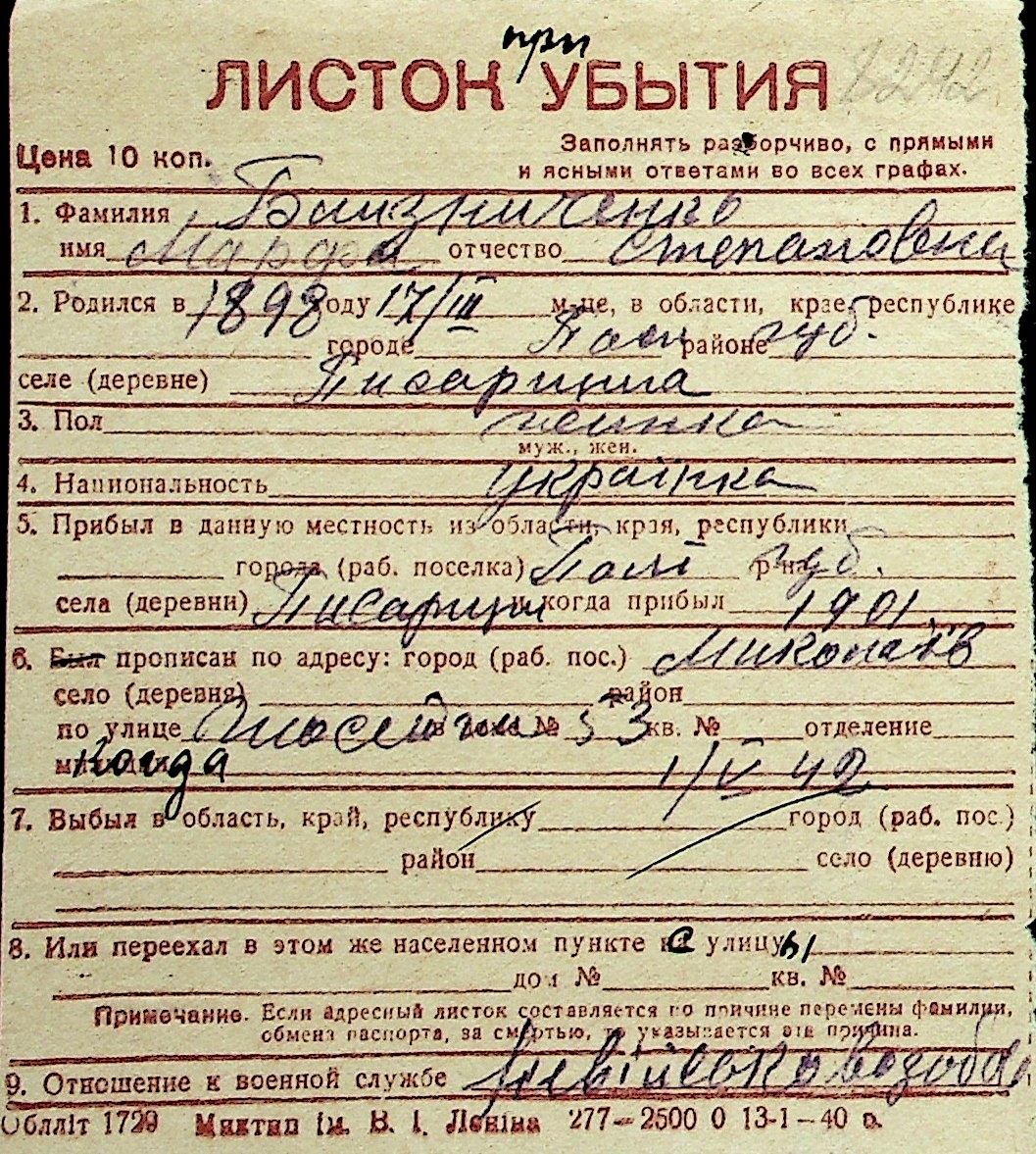 ◦ ◦ Перелік карток на осіб, які мешкали у м. Миколаїв у період окупації 1941–1944 років