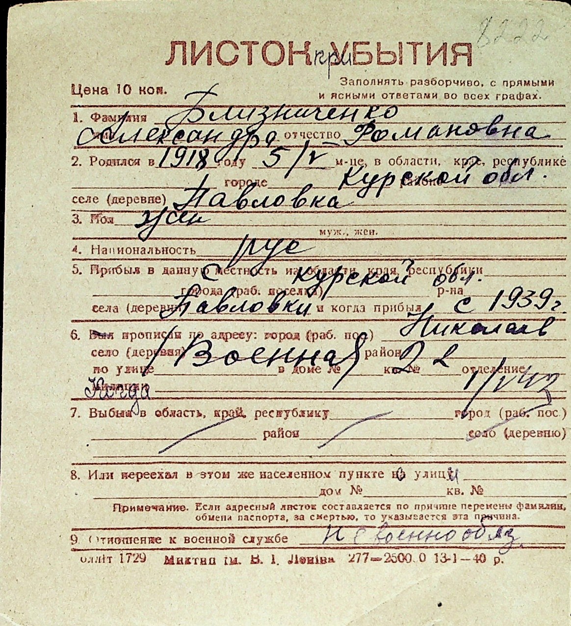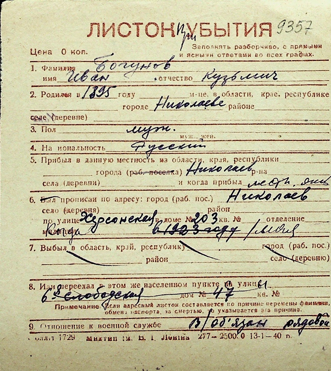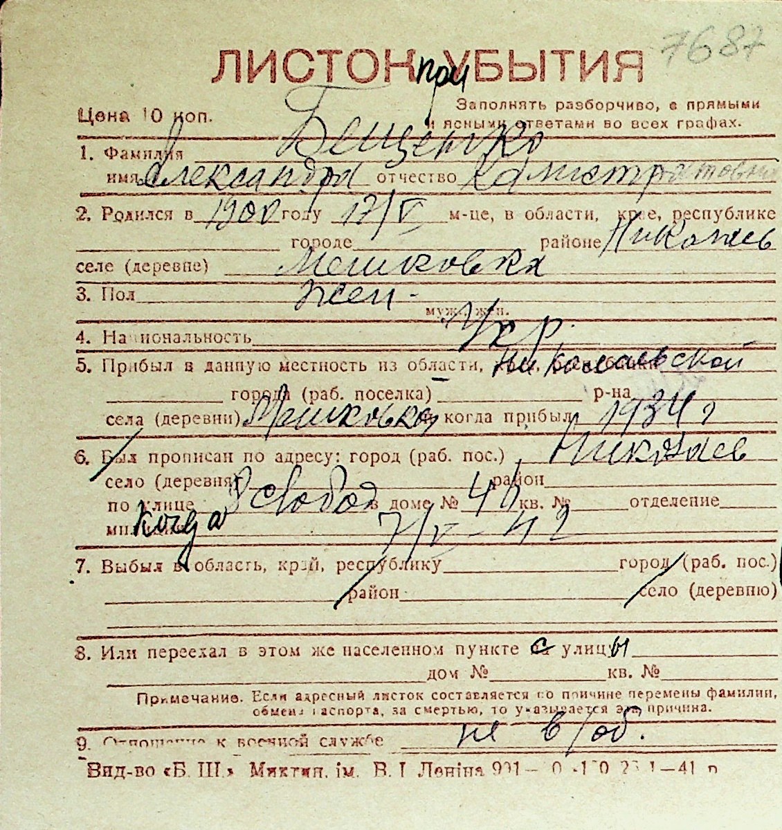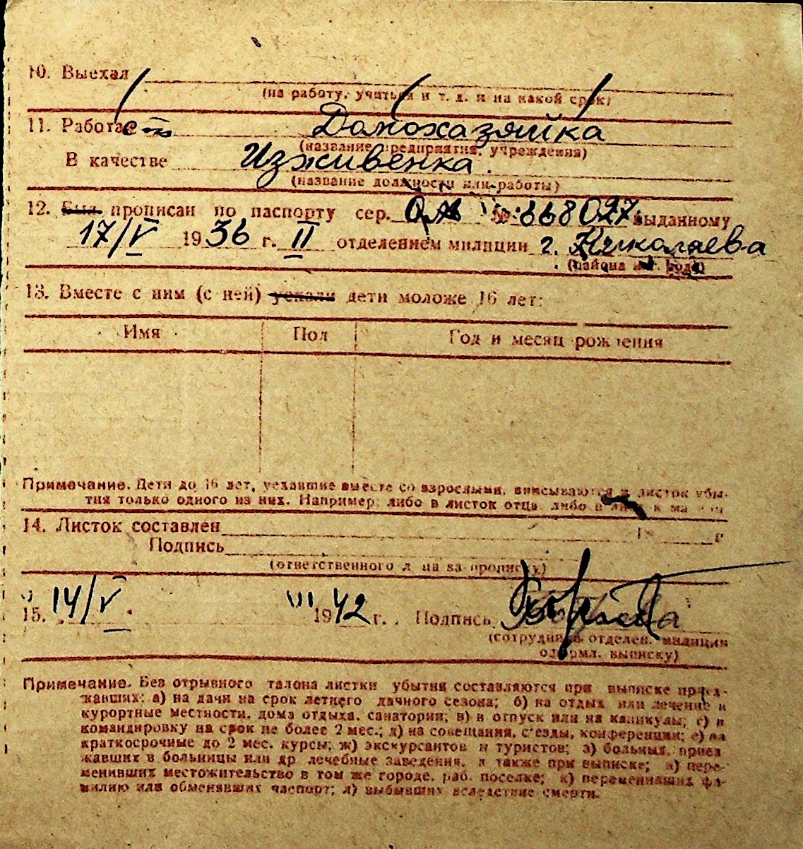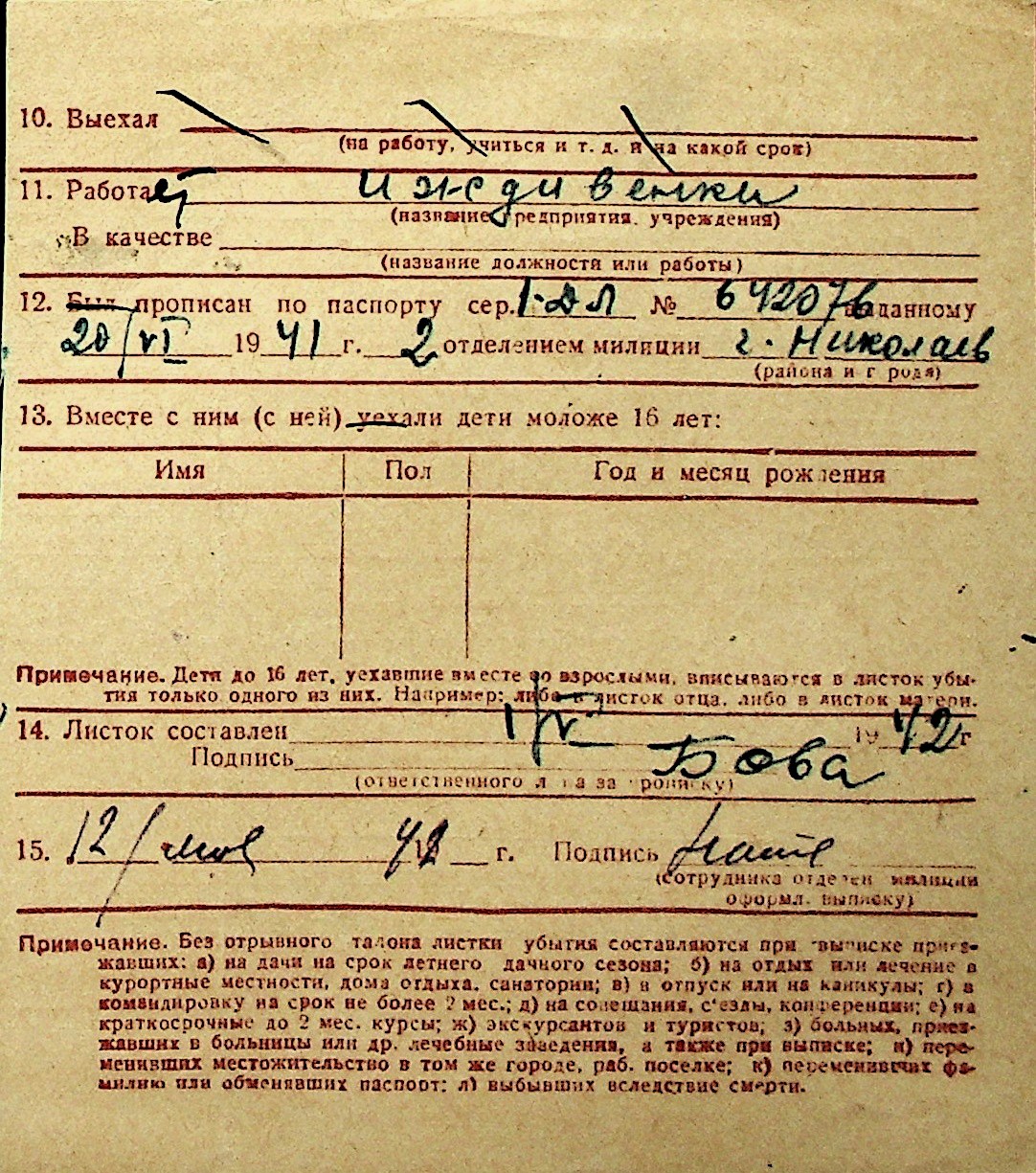 ◦ ◦ Перелік карток на осіб, які мешкали у м. Миколаїв у період окупації 1941–1944 років