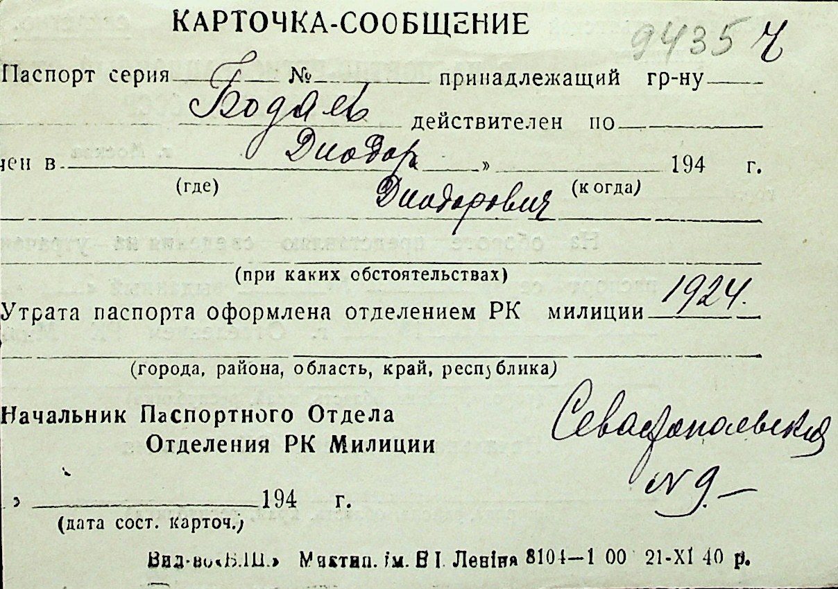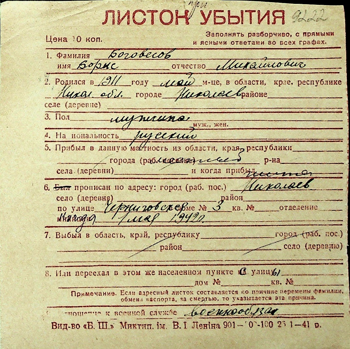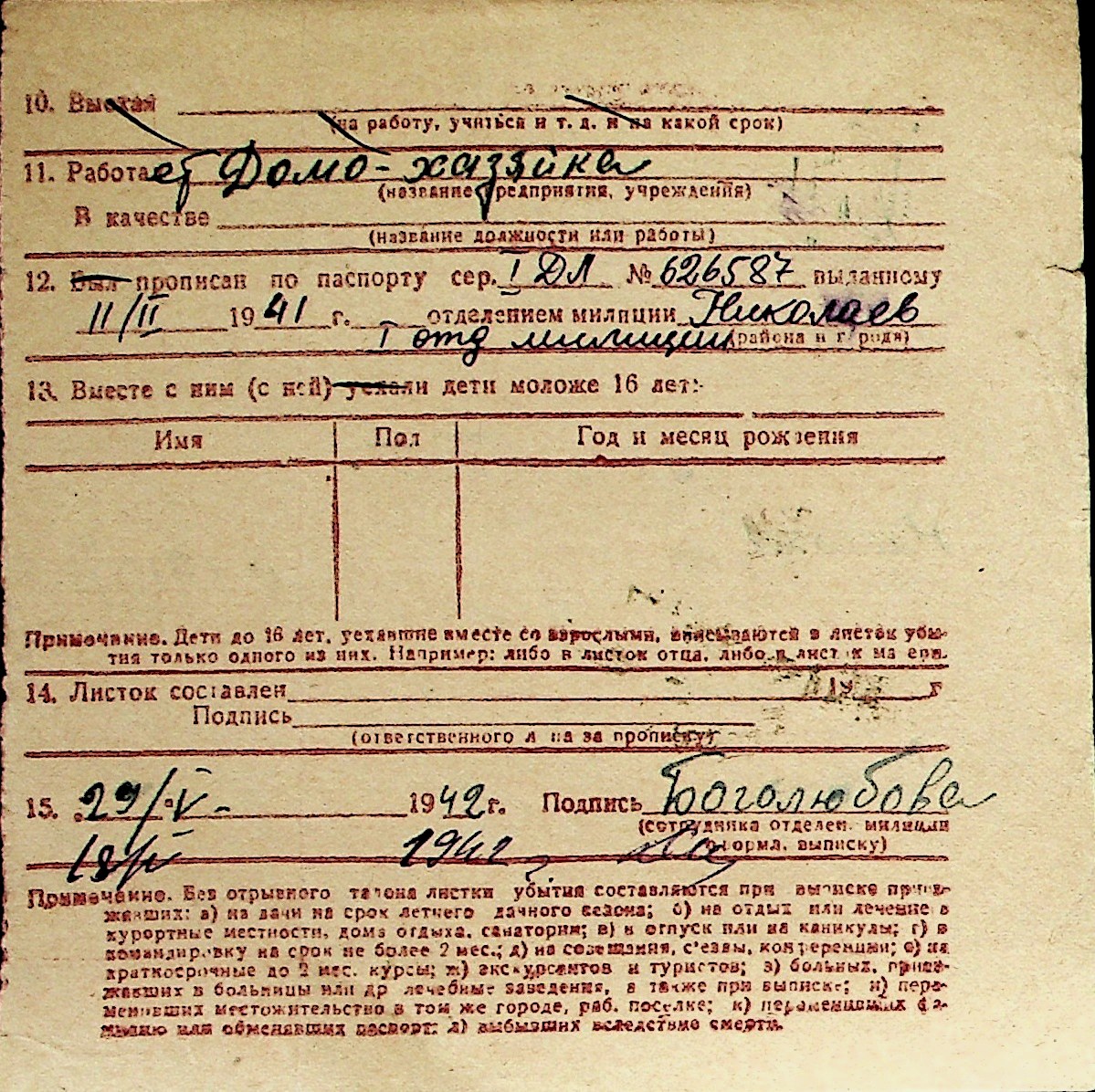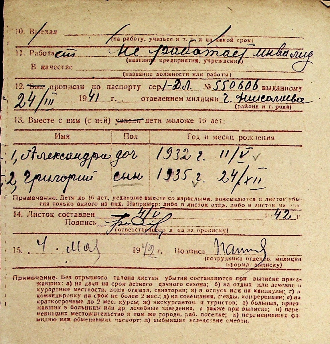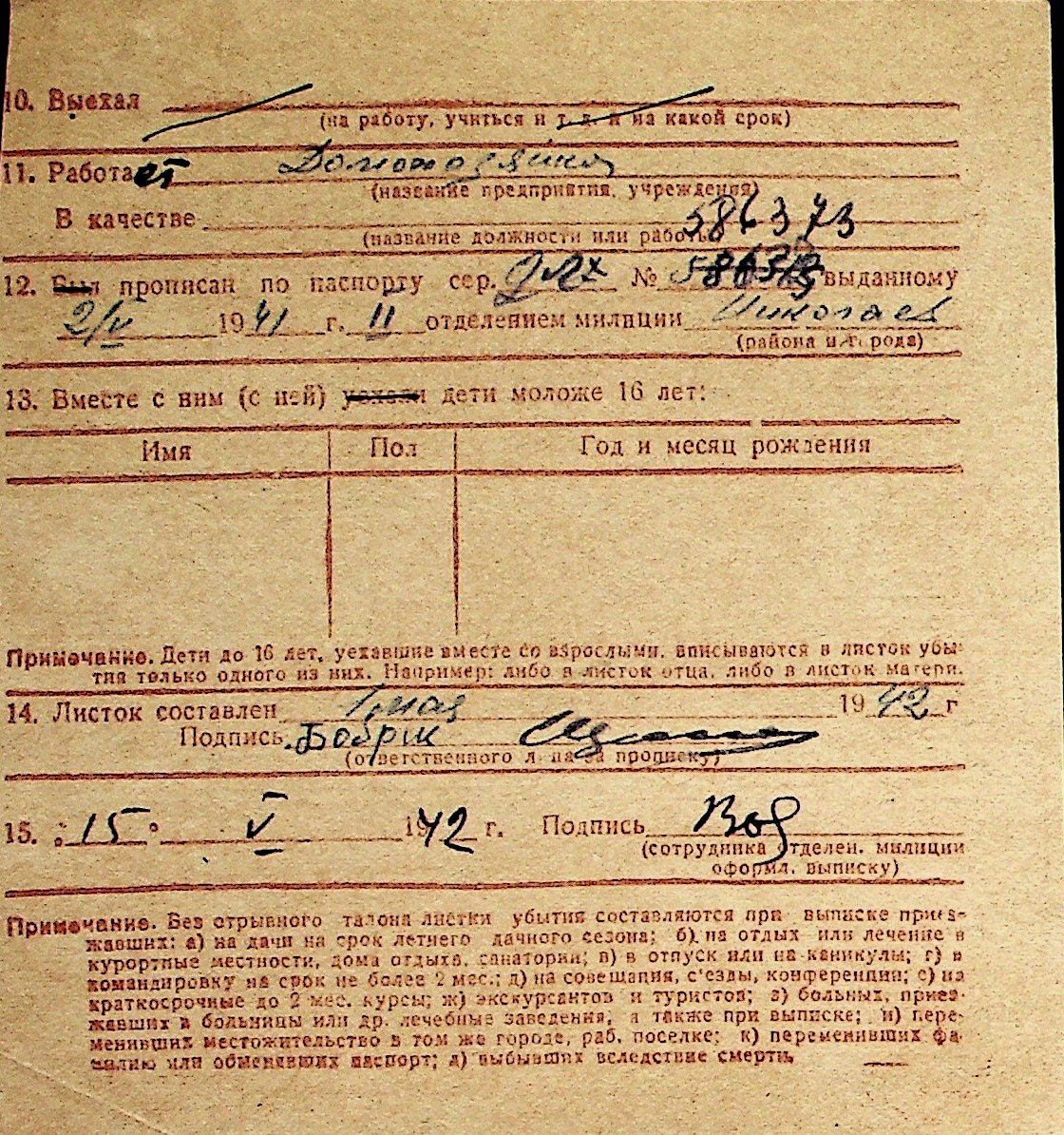 ◦ ◦ Перелік карток на осіб, які мешкали у м. Миколаїв у період окупації 1941–1944 років