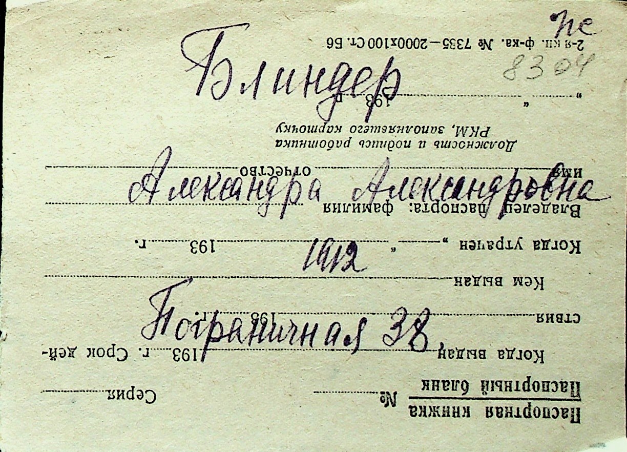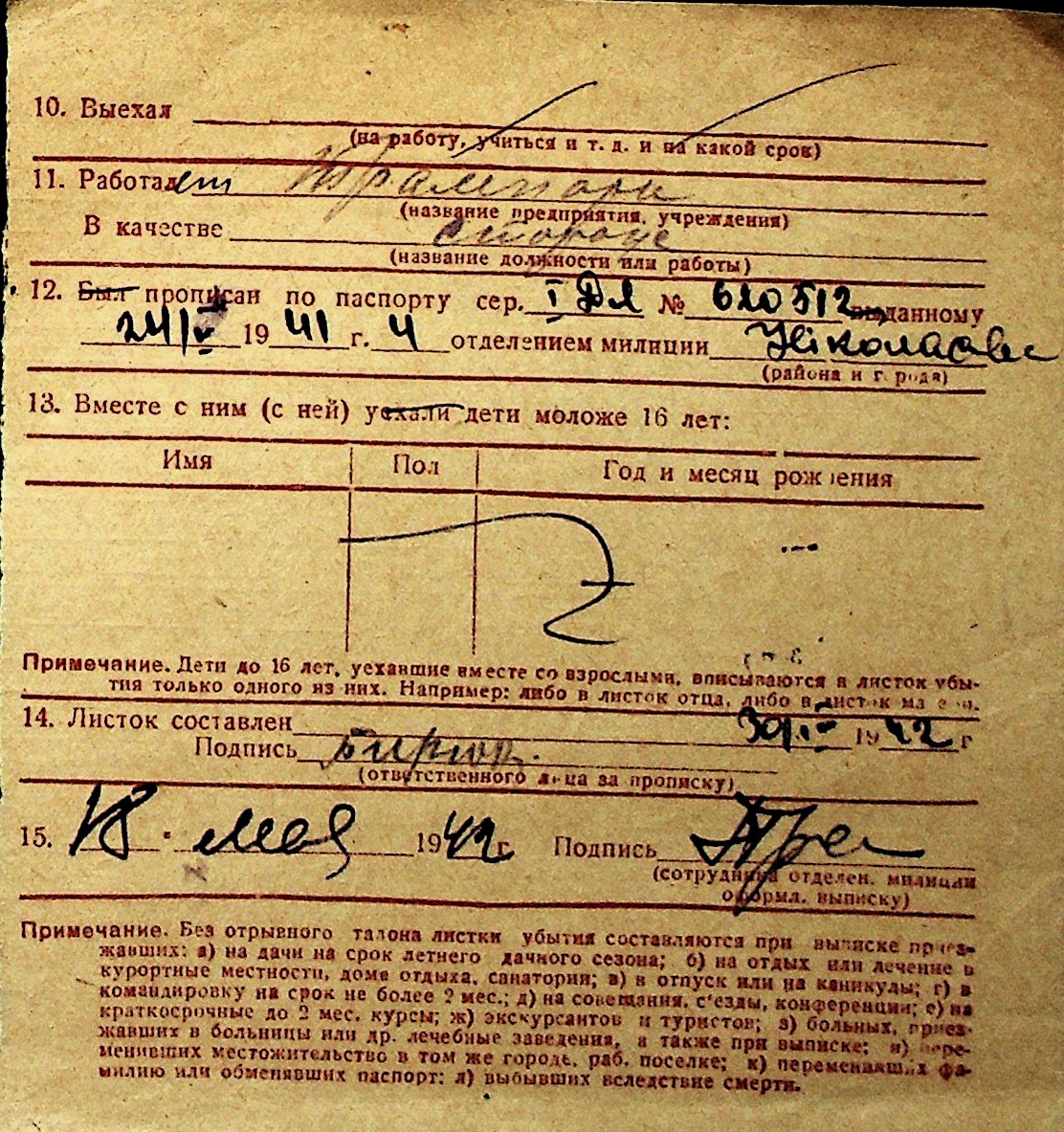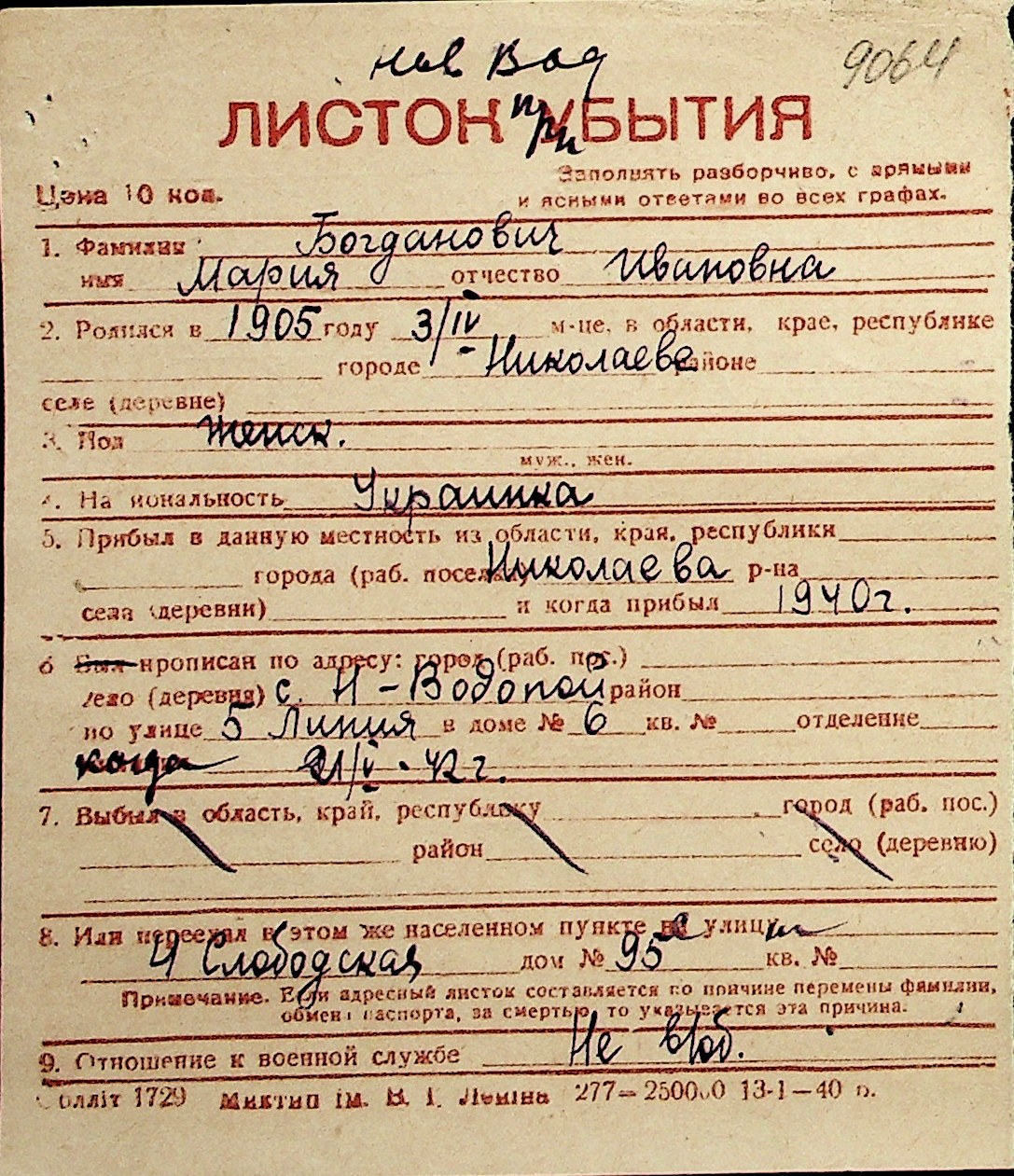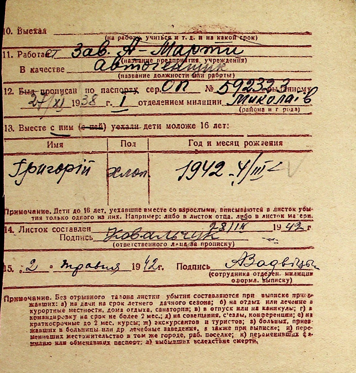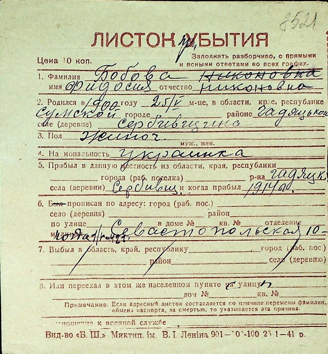 ◦ ◦ Перелік карток на осіб, які мешкали у м. Миколаїв у період окупації 1941–1944 років