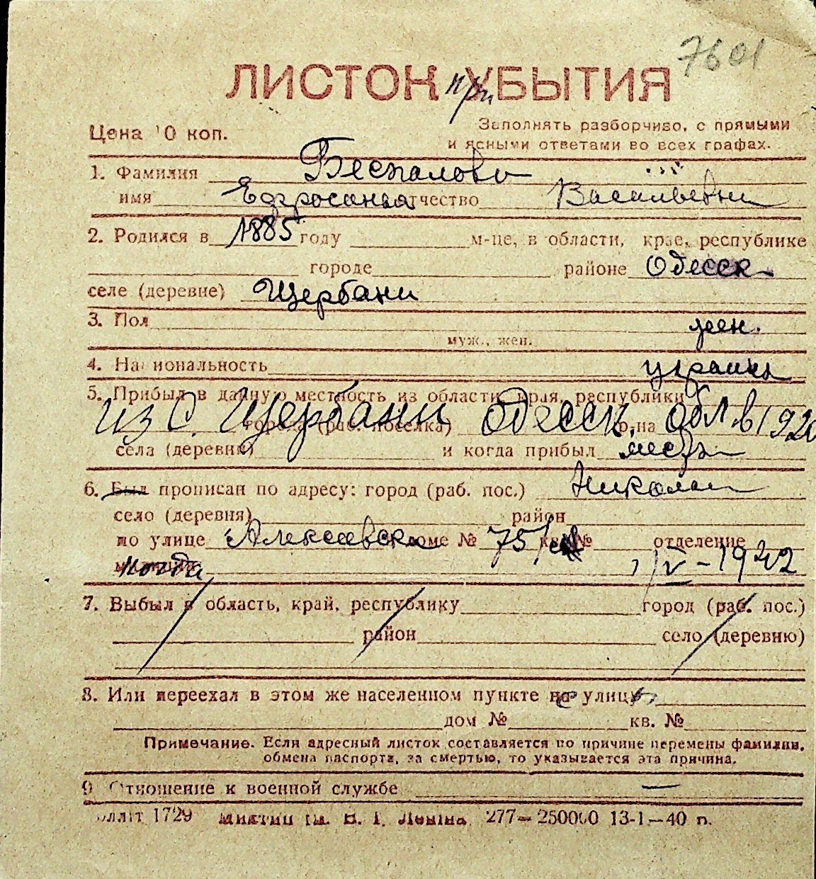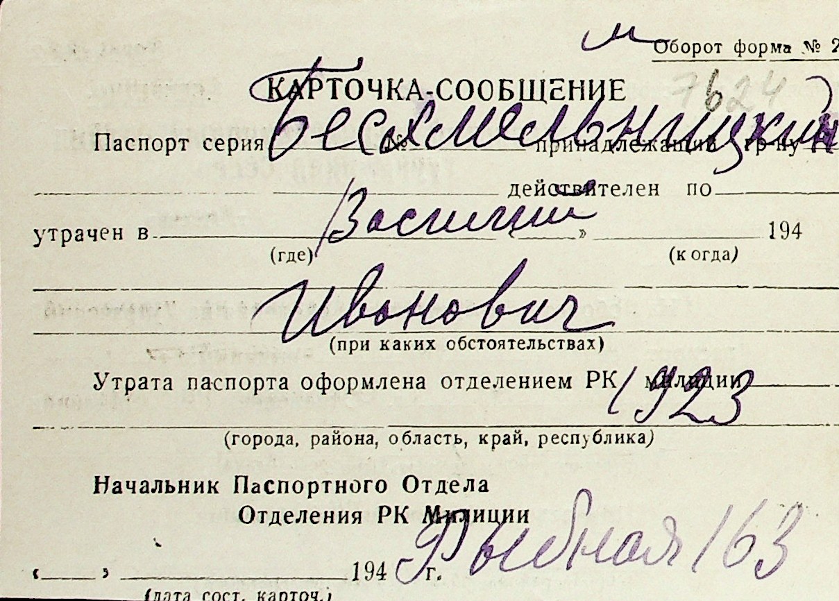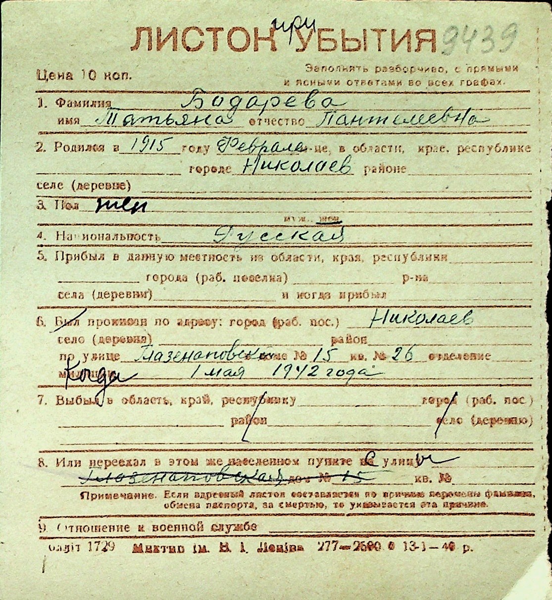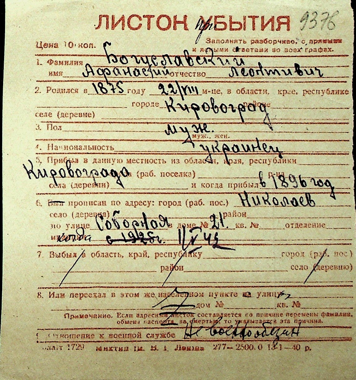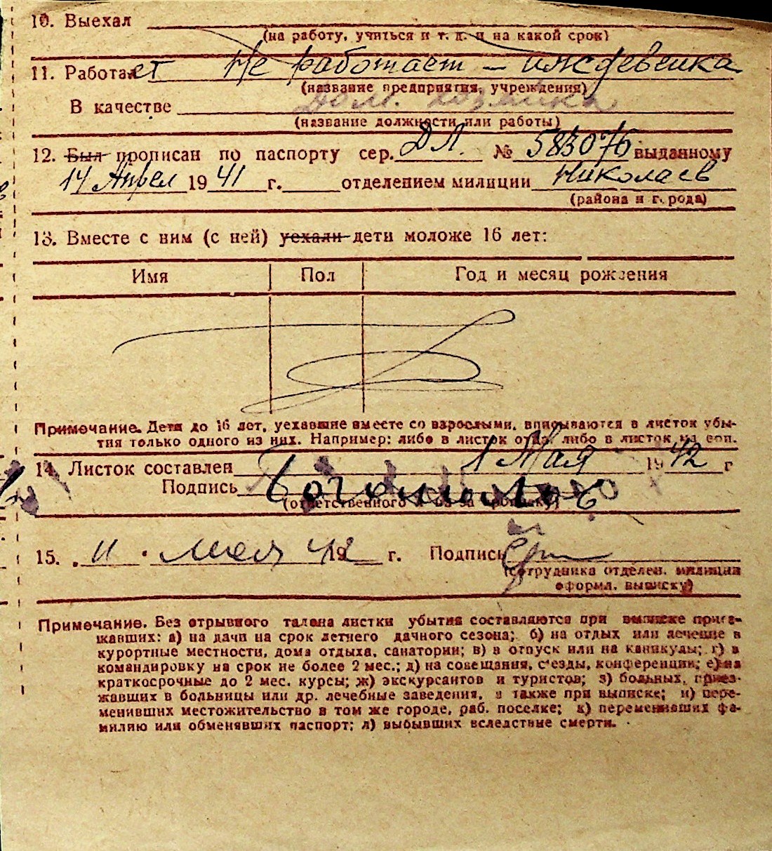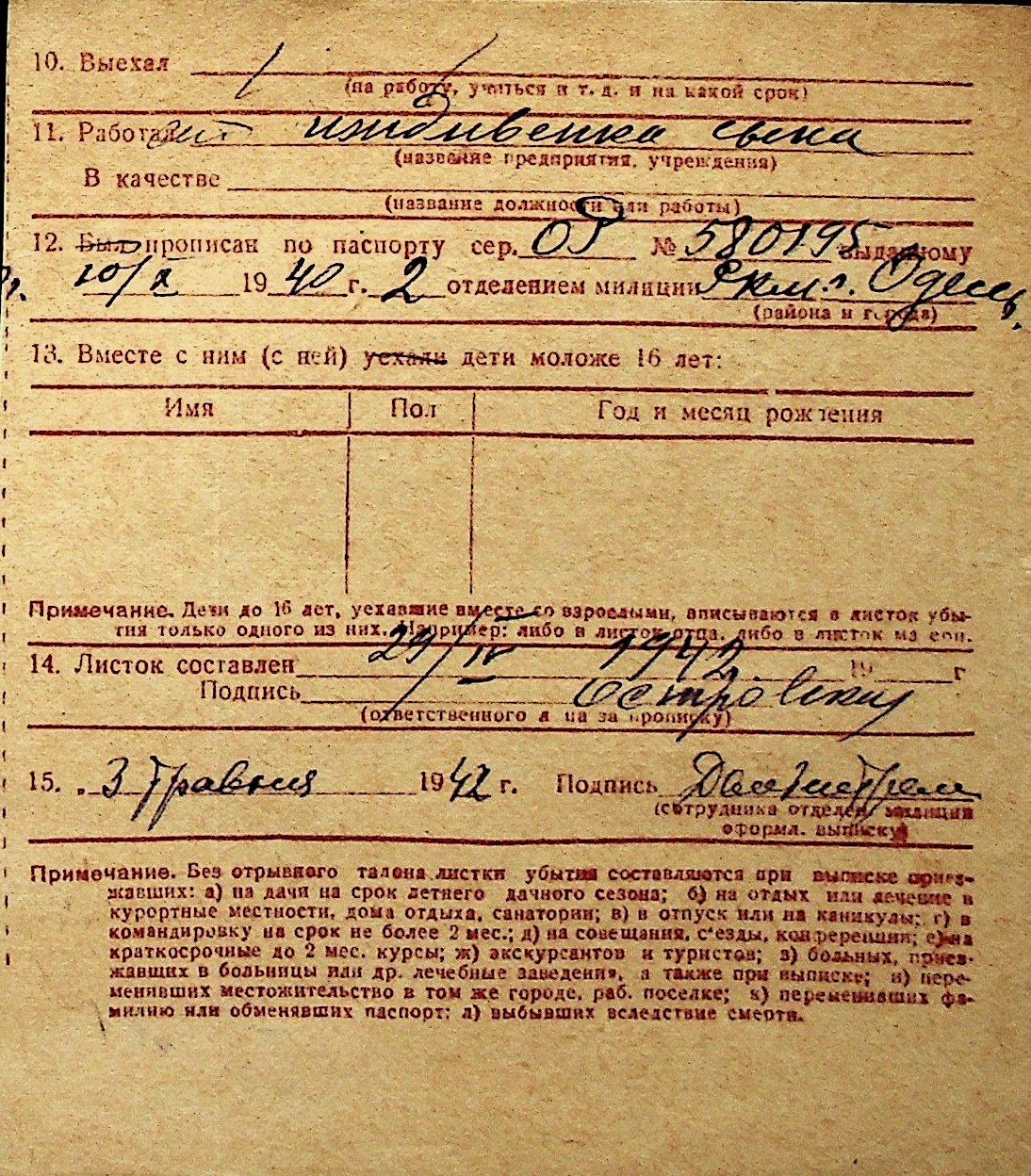 ◦ ◦ Перелік карток на осіб, які мешкали у м. Миколаїв у період окупації 1941–1944 років