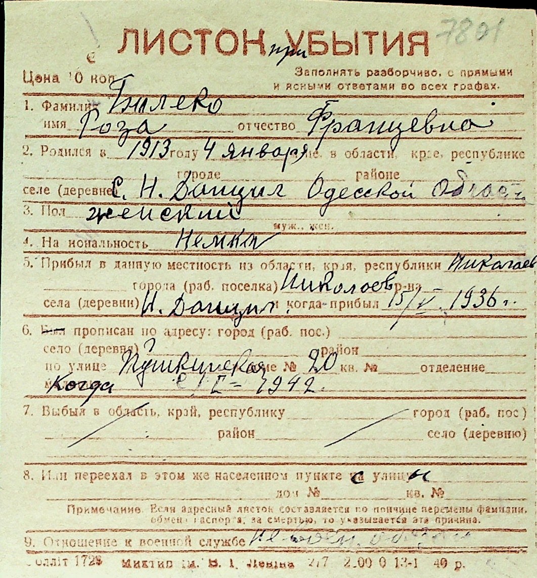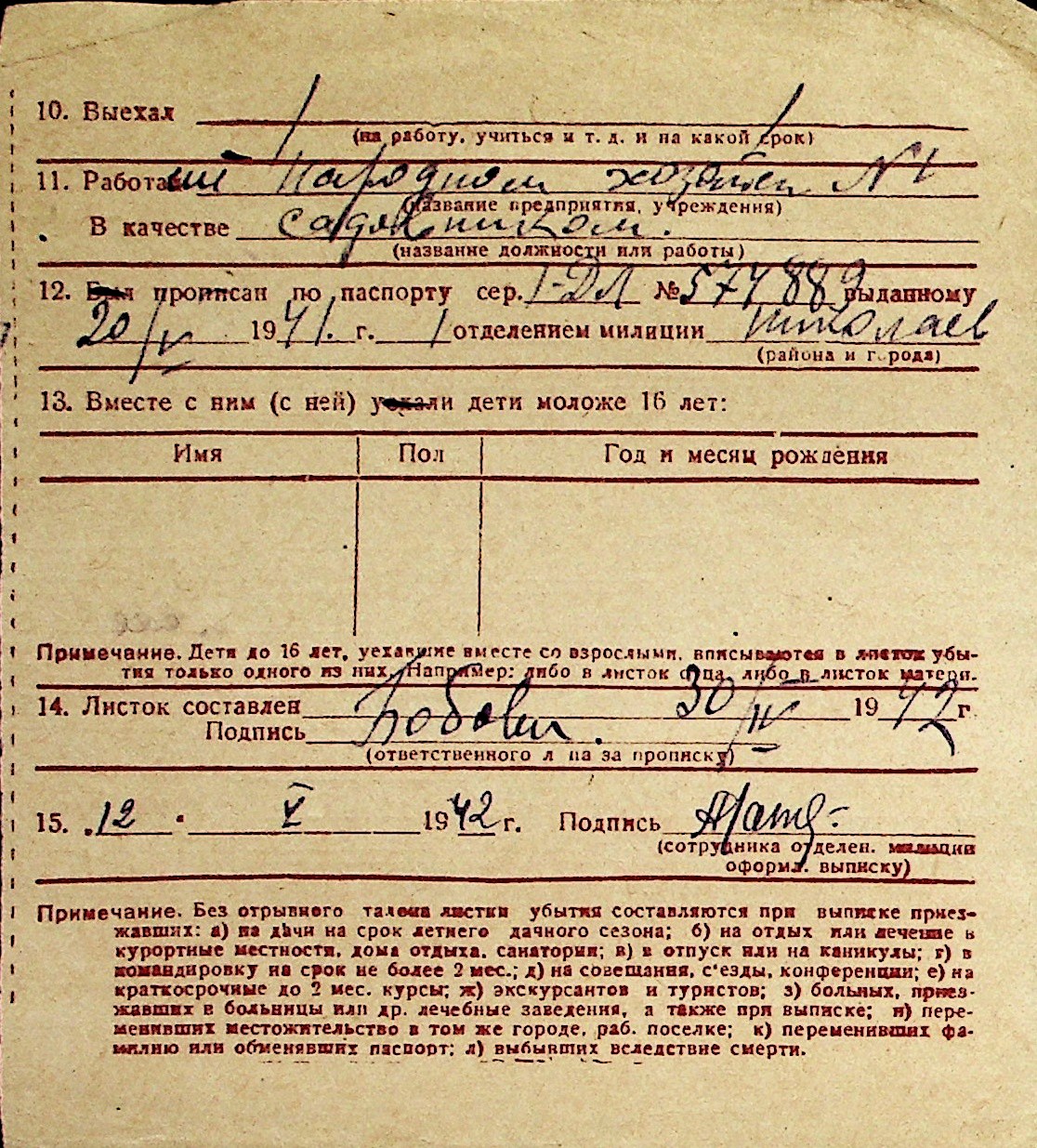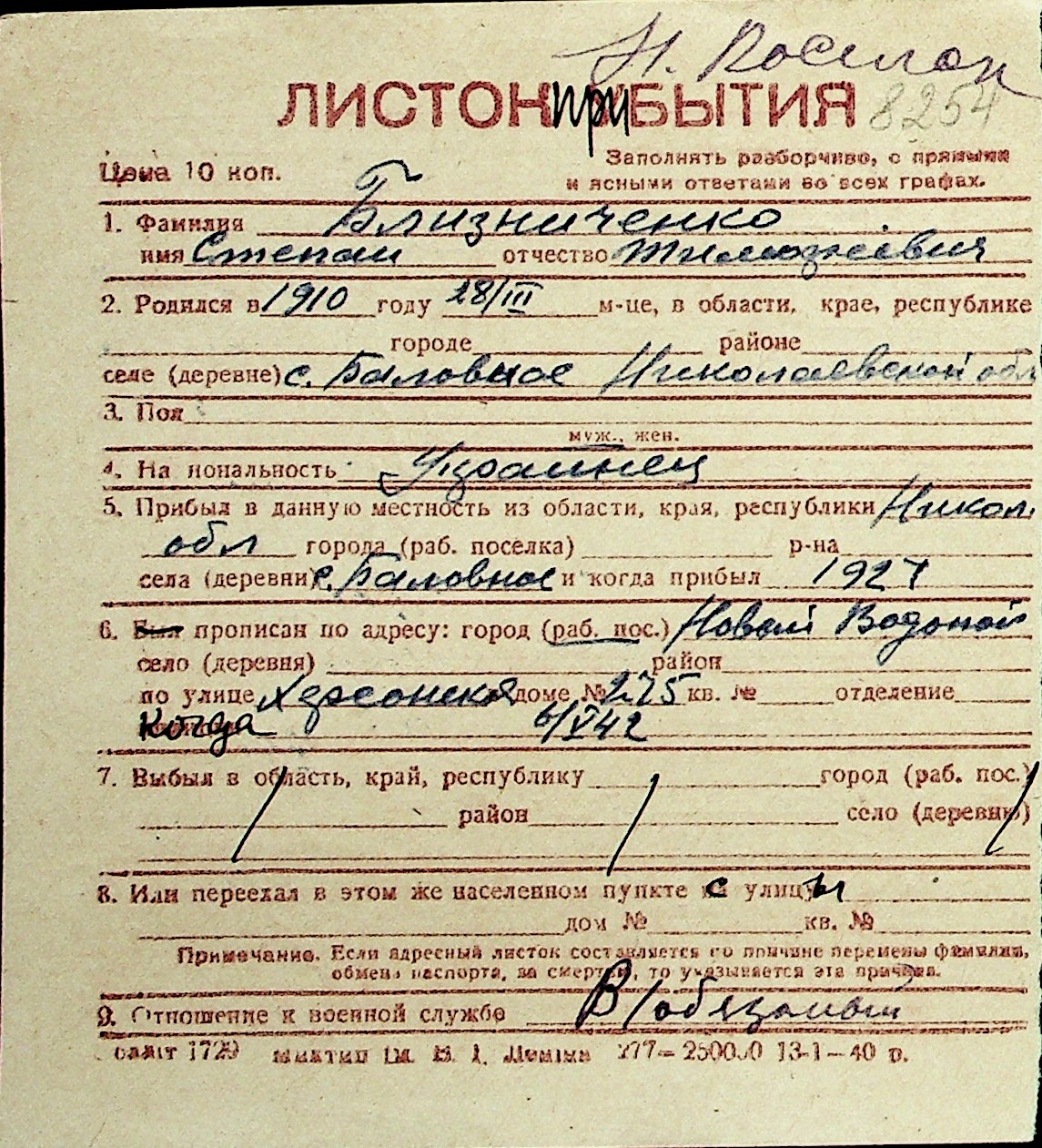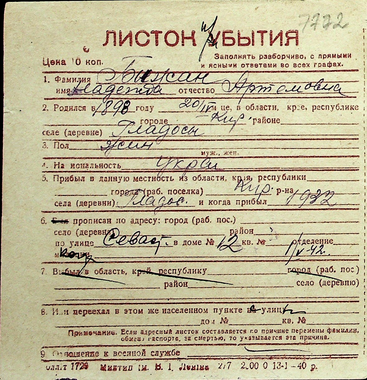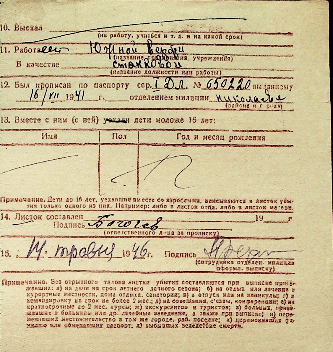 ◦ ◦ Перелік карток на осіб, які мешкали у м. Миколаїв у період окупації 1941–1944 років