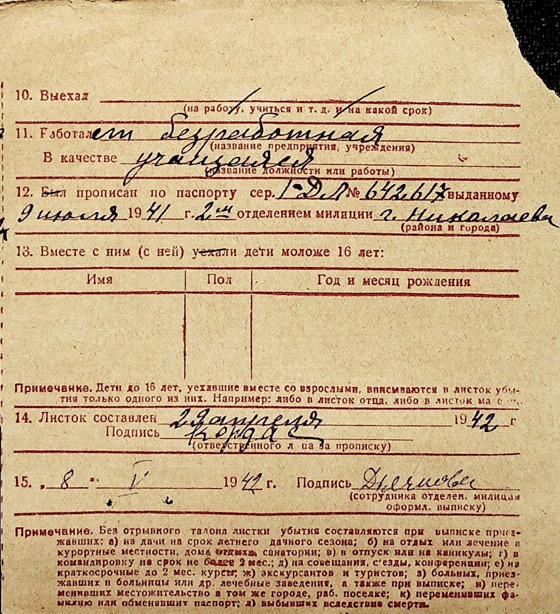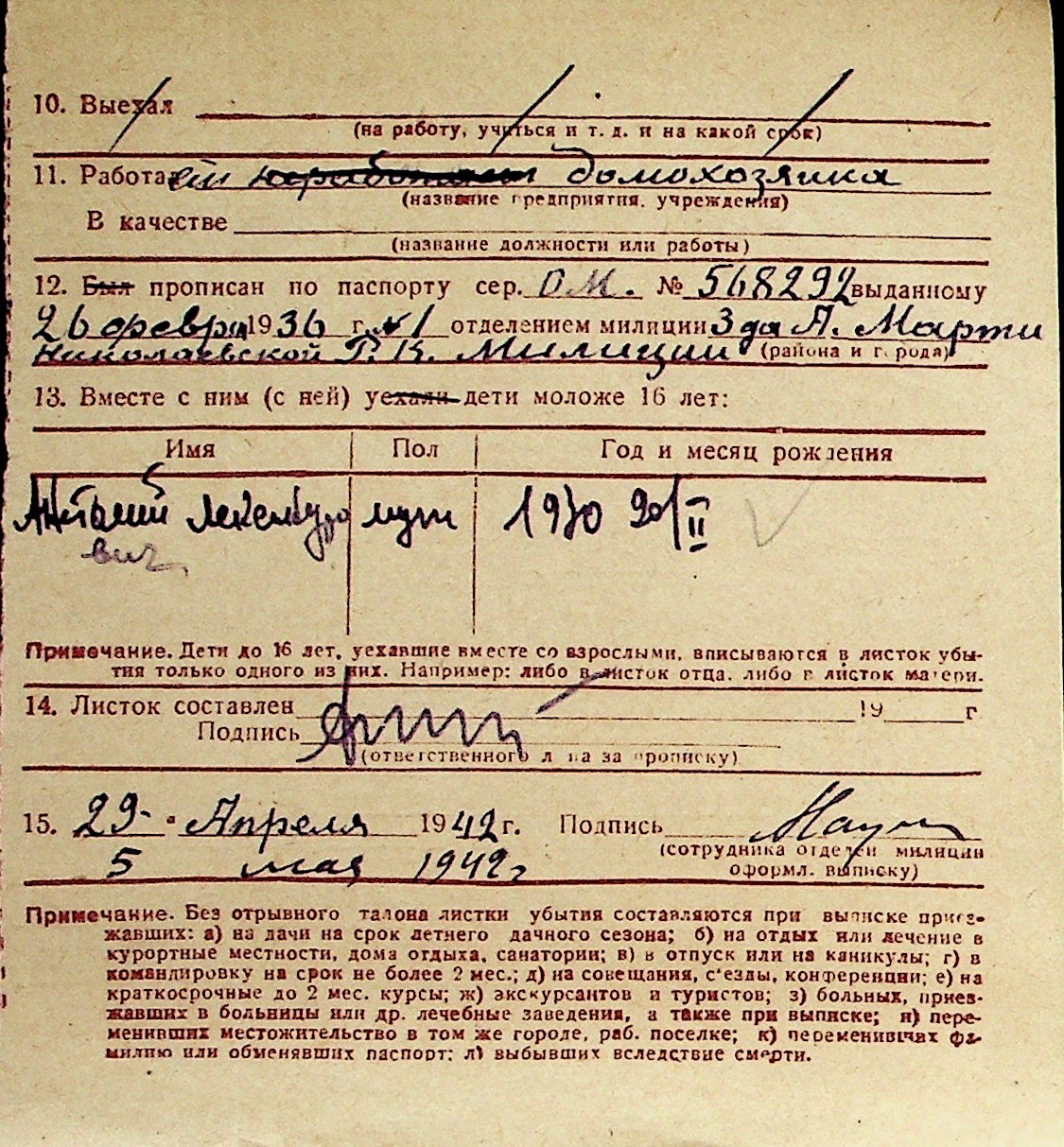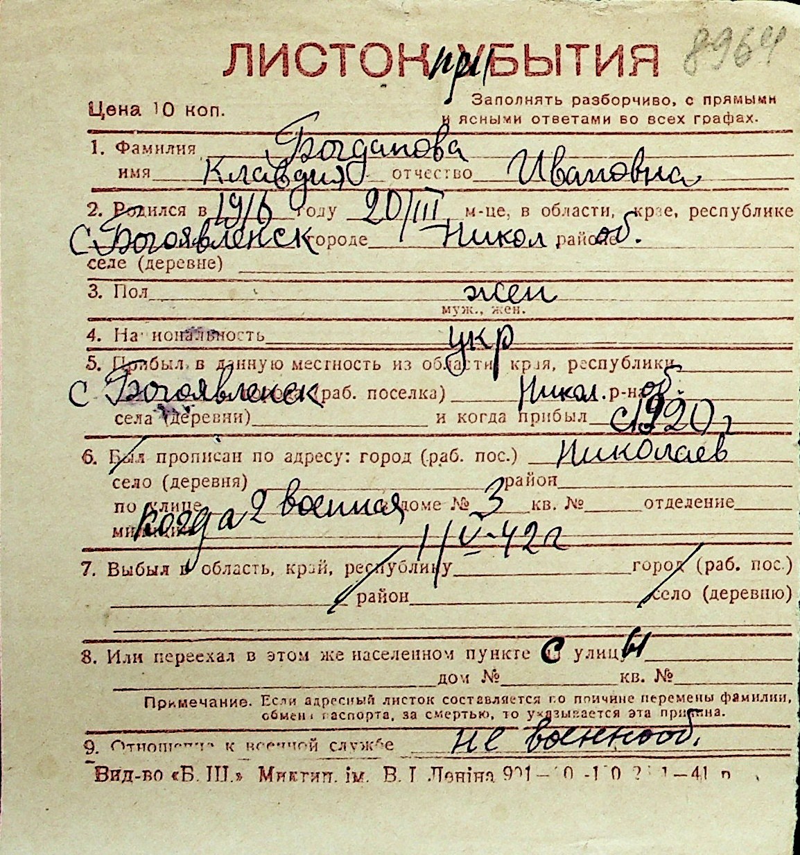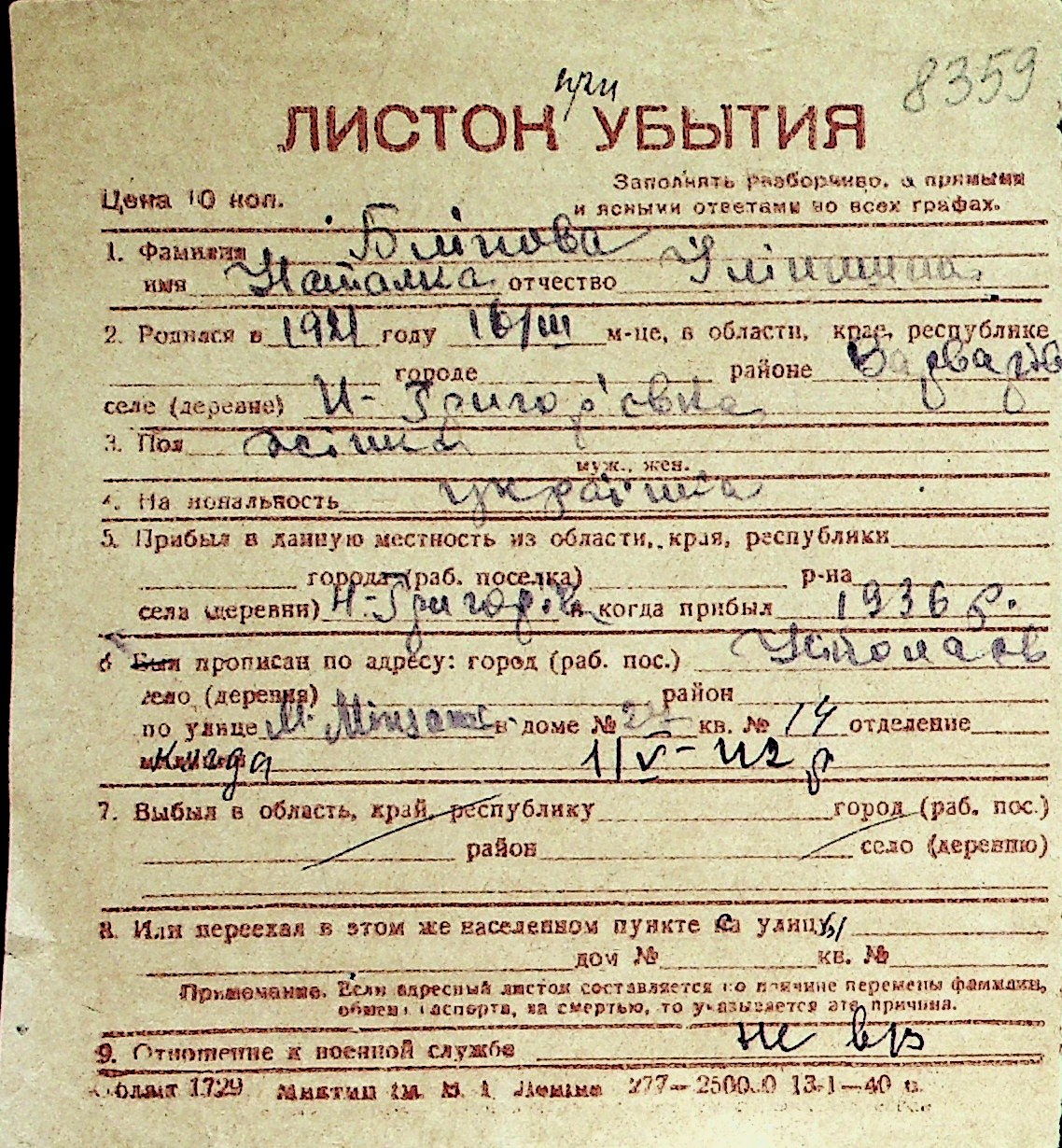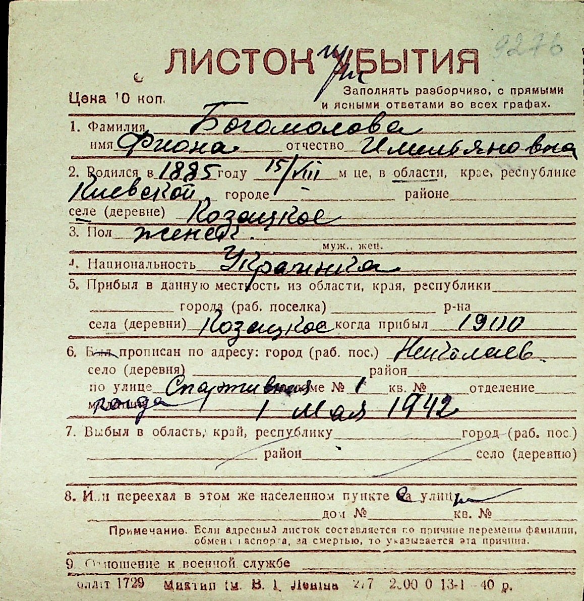 ◦ ◦ Перелік карток на осіб, які мешкали у м. Миколаїв у період окупації 1941–1944 років