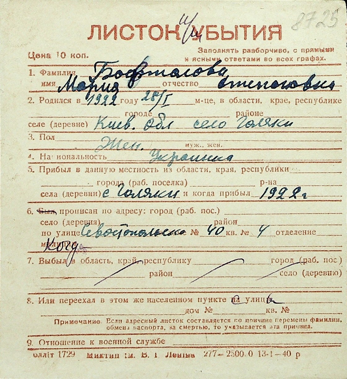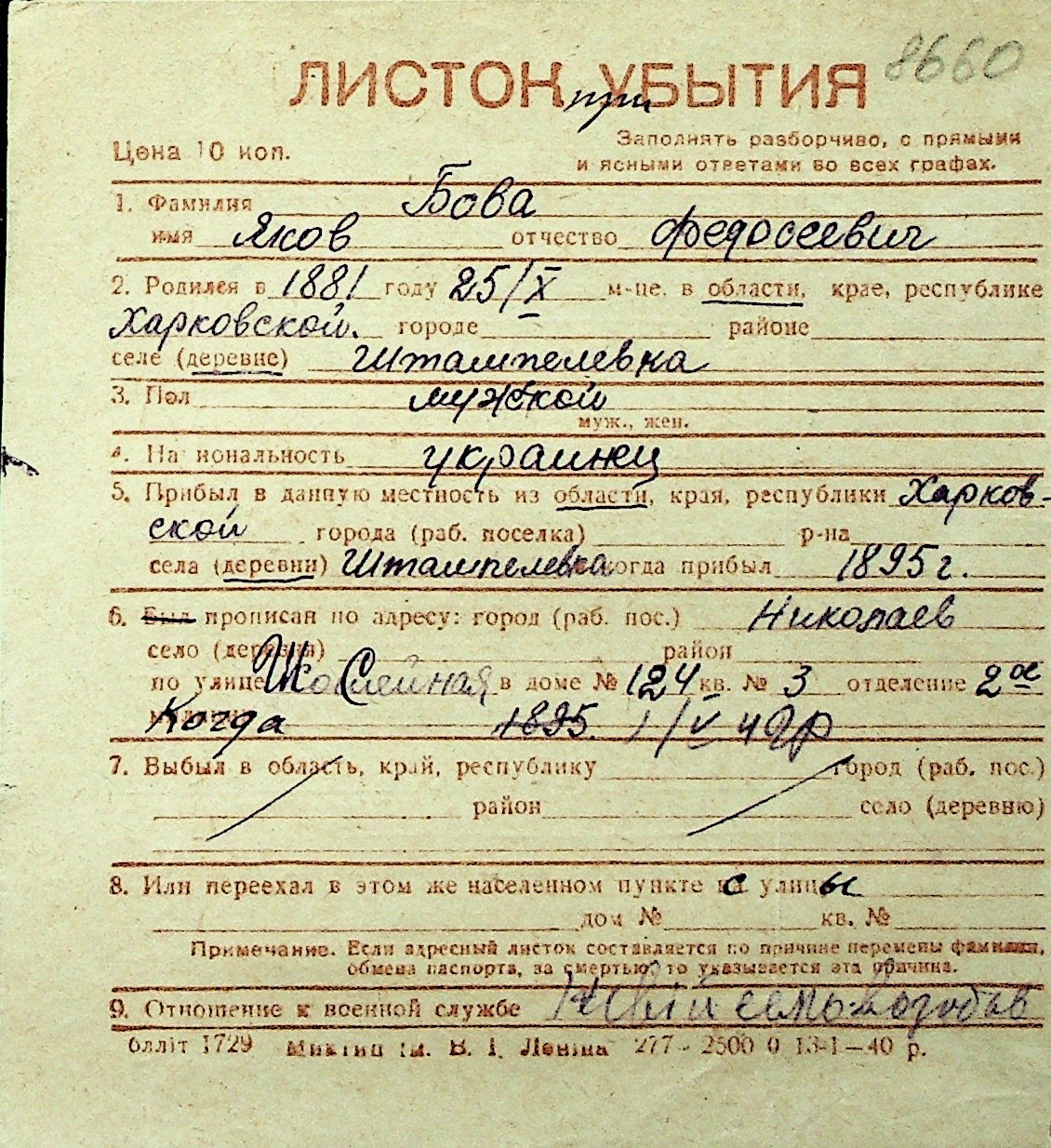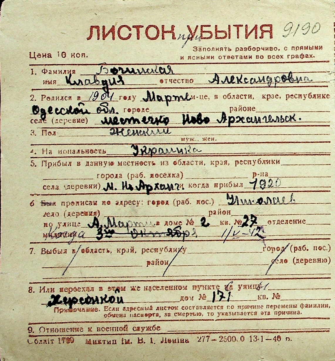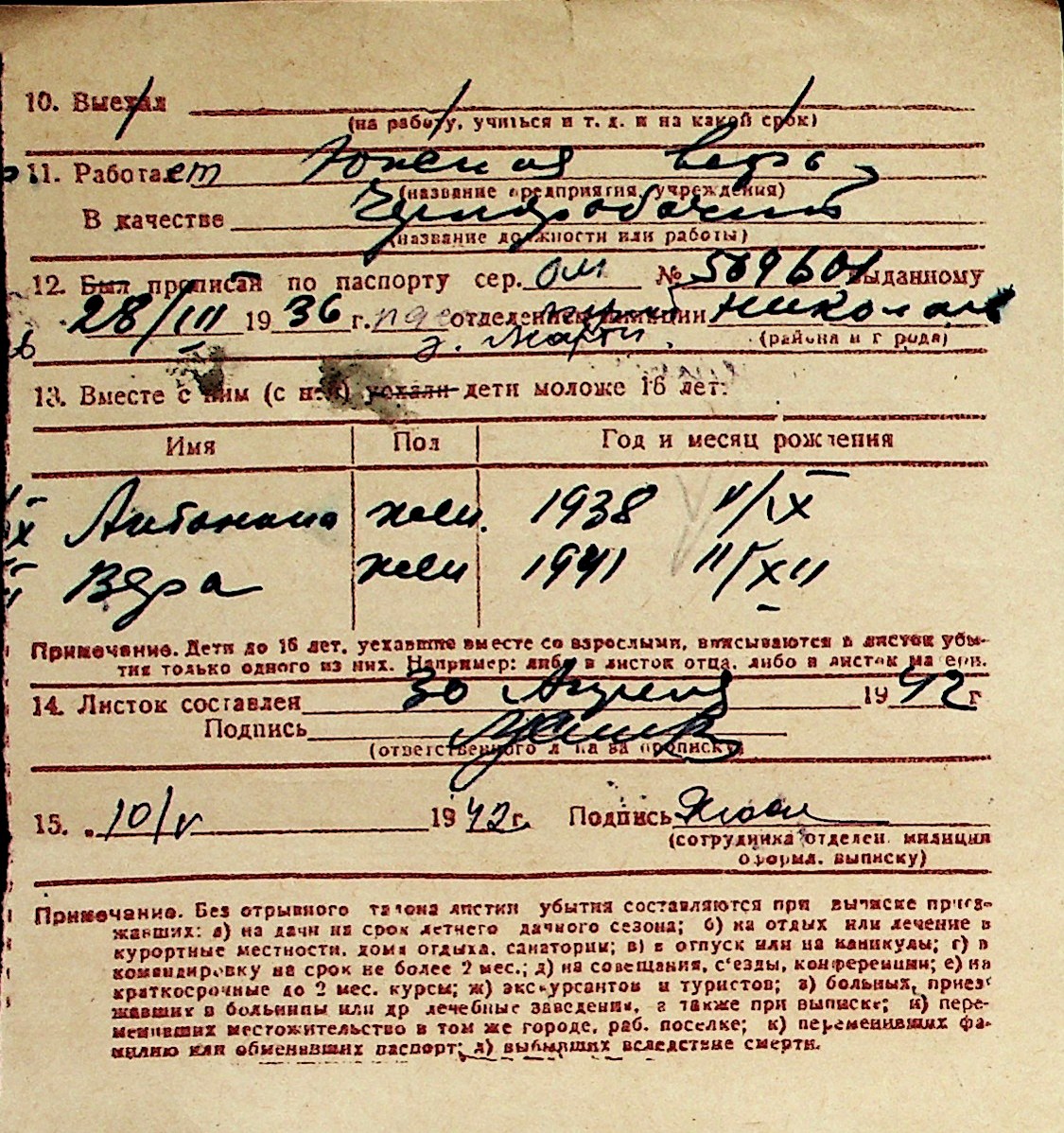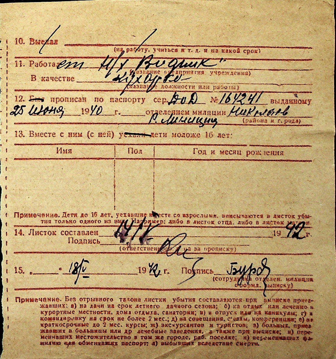 ◦ ◦ Перелік карток на осіб, які мешкали у м. Миколаїв у період окупації 1941–1944 років
