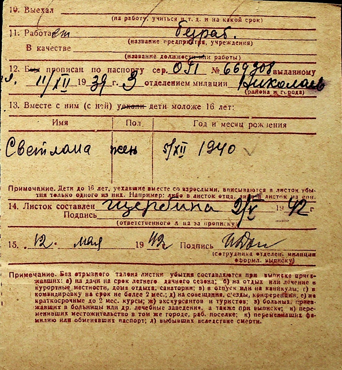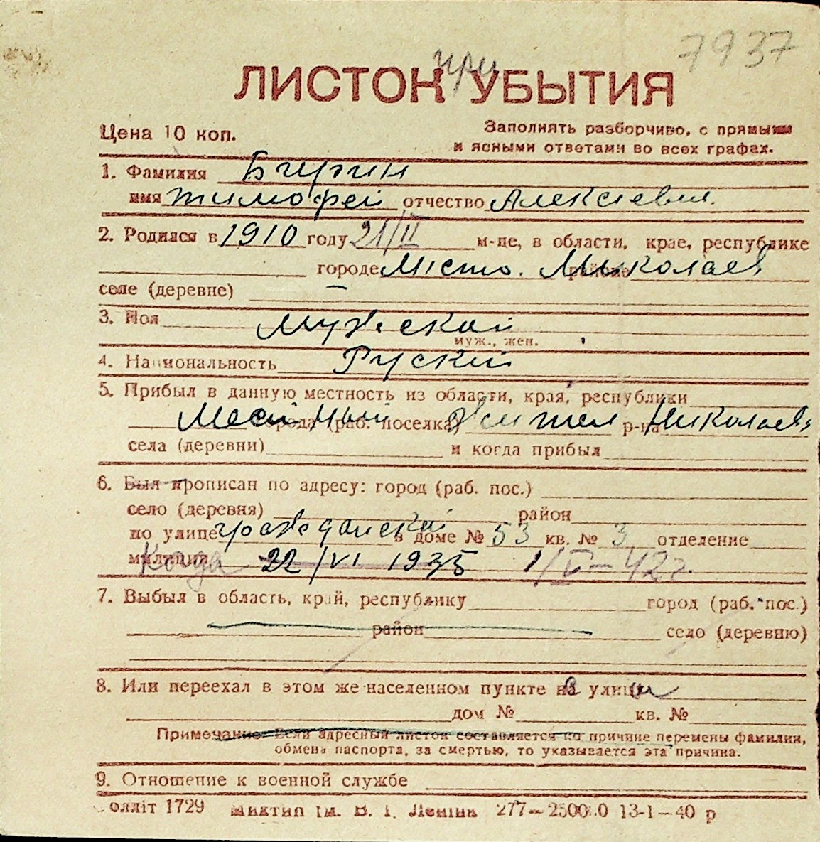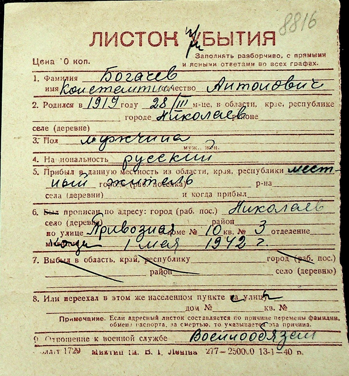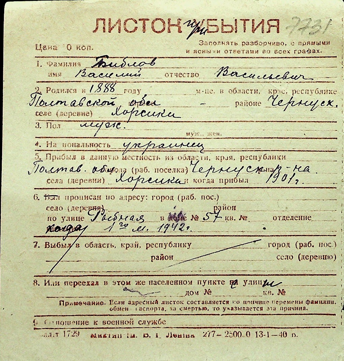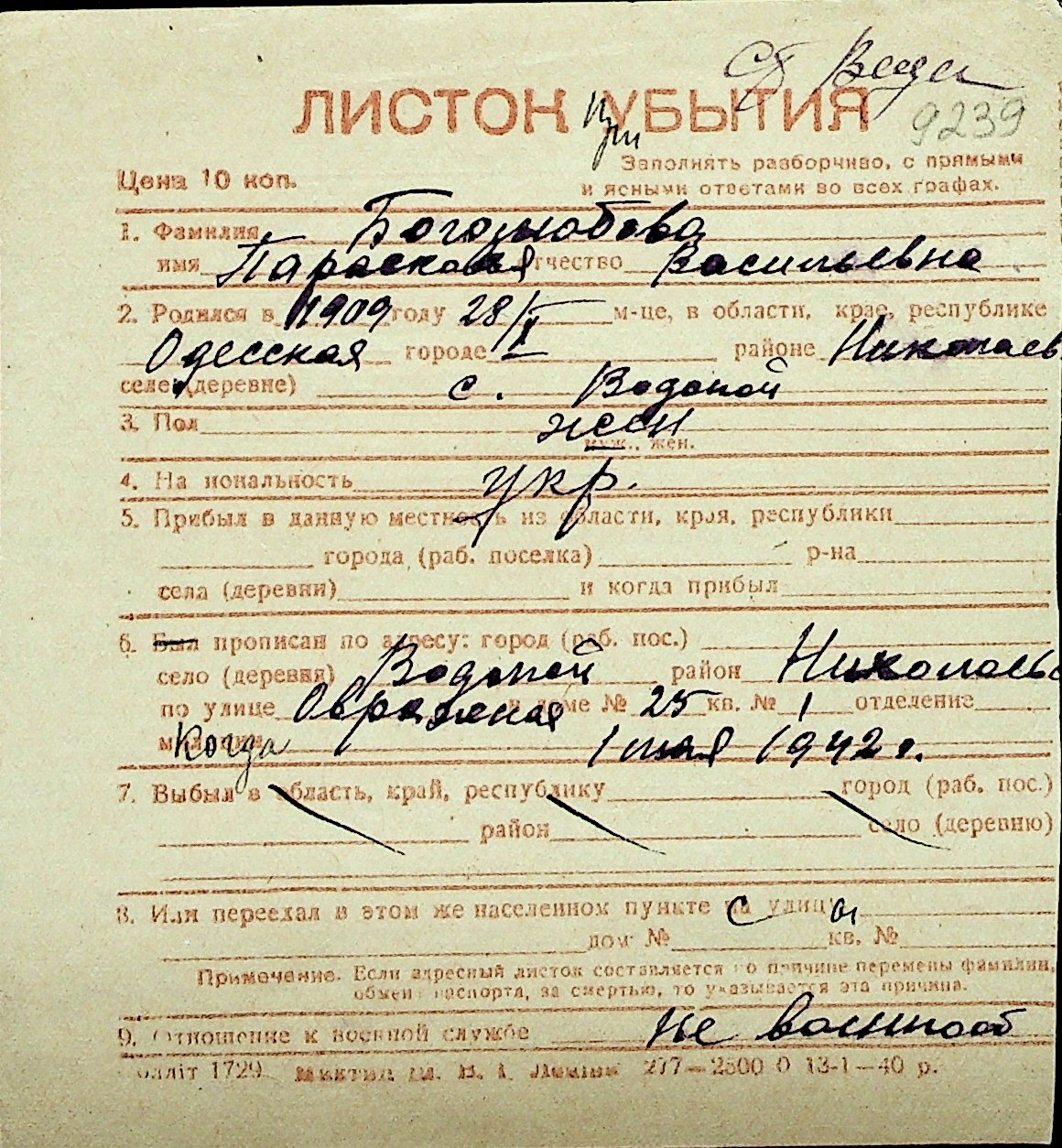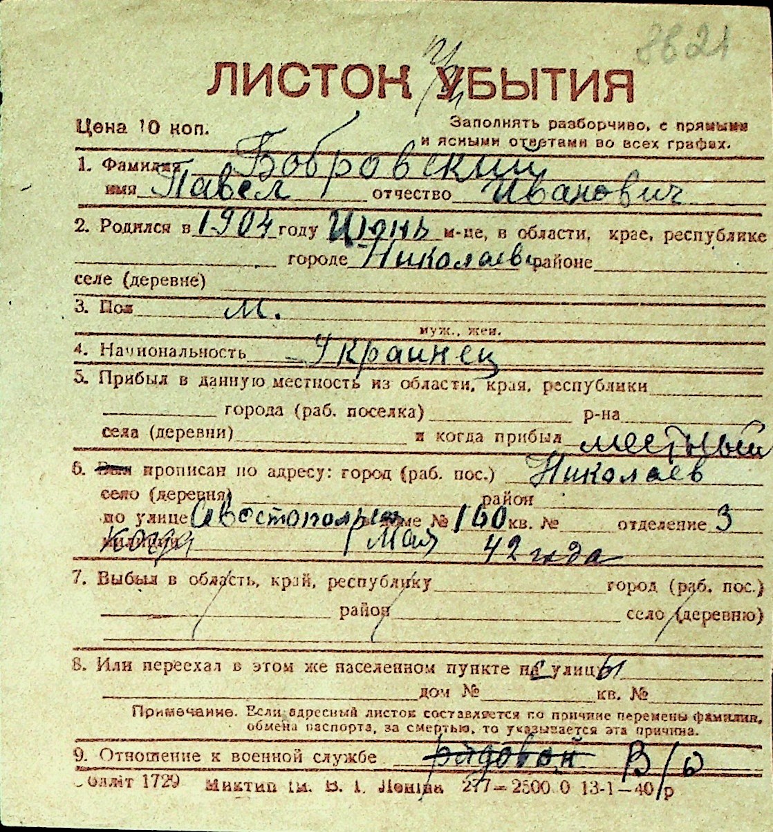 ◦ ◦ Перелік карток на осіб, які мешкали у м. Миколаїв у період окупації 1941–1944 років