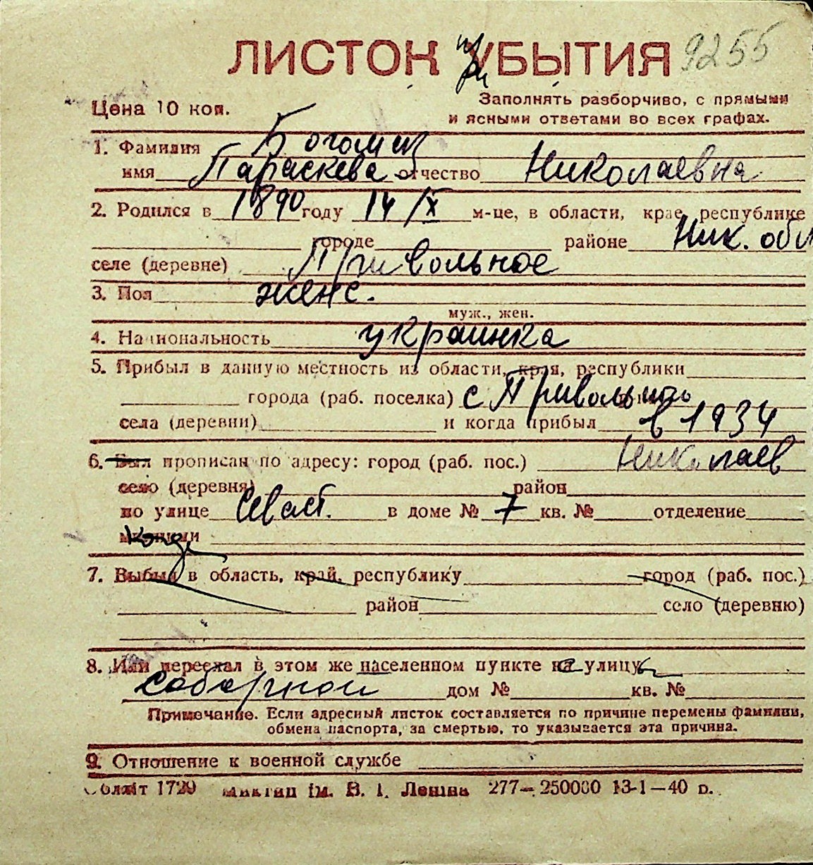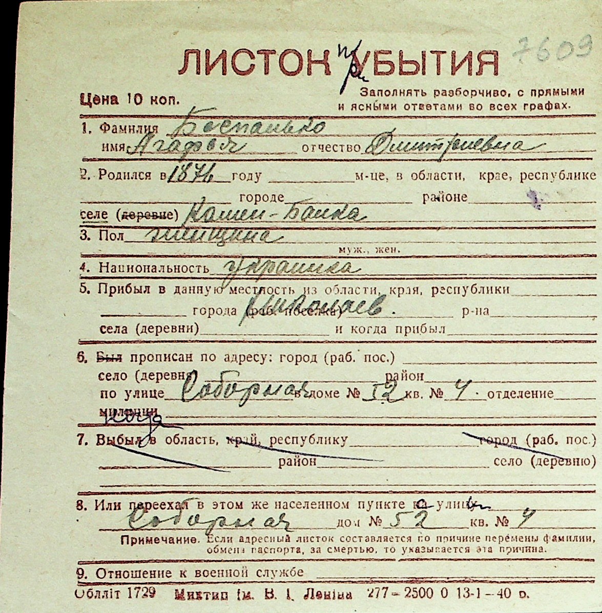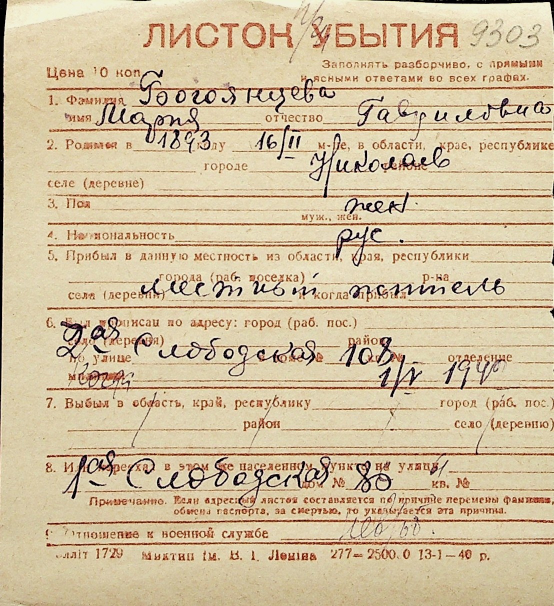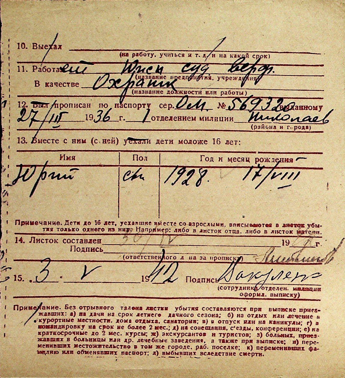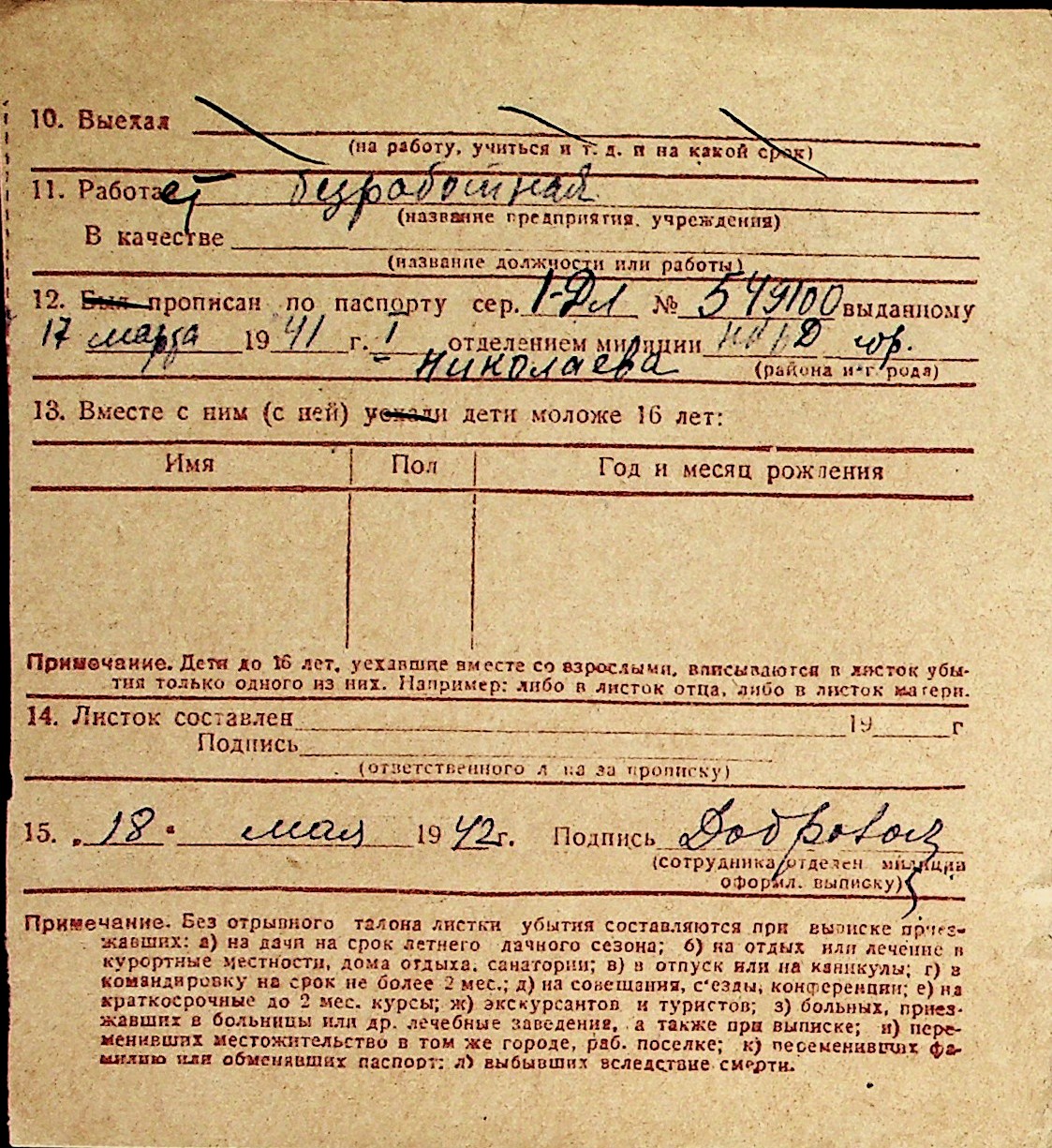 ◦ ◦ Перелік карток на осіб, які мешкали у м. Миколаїв у період окупації 1941–1944 років