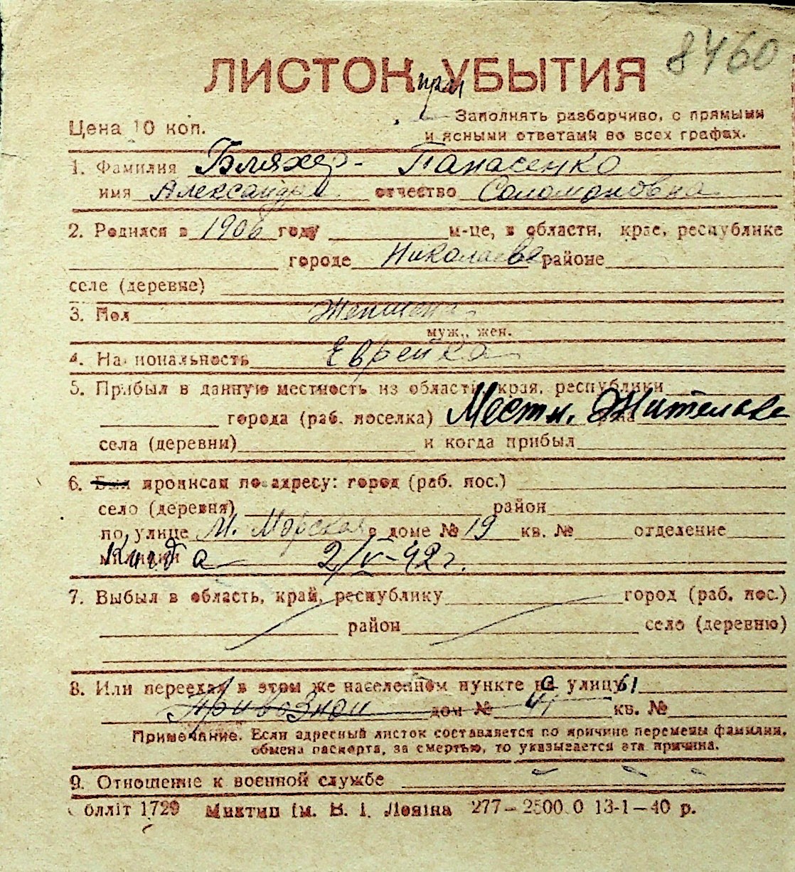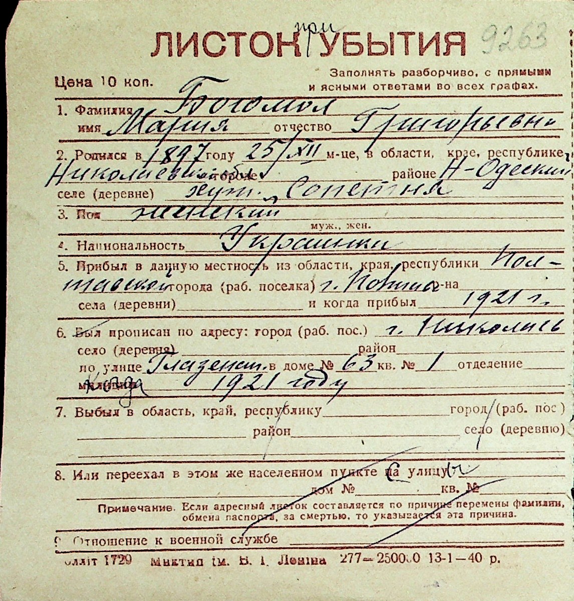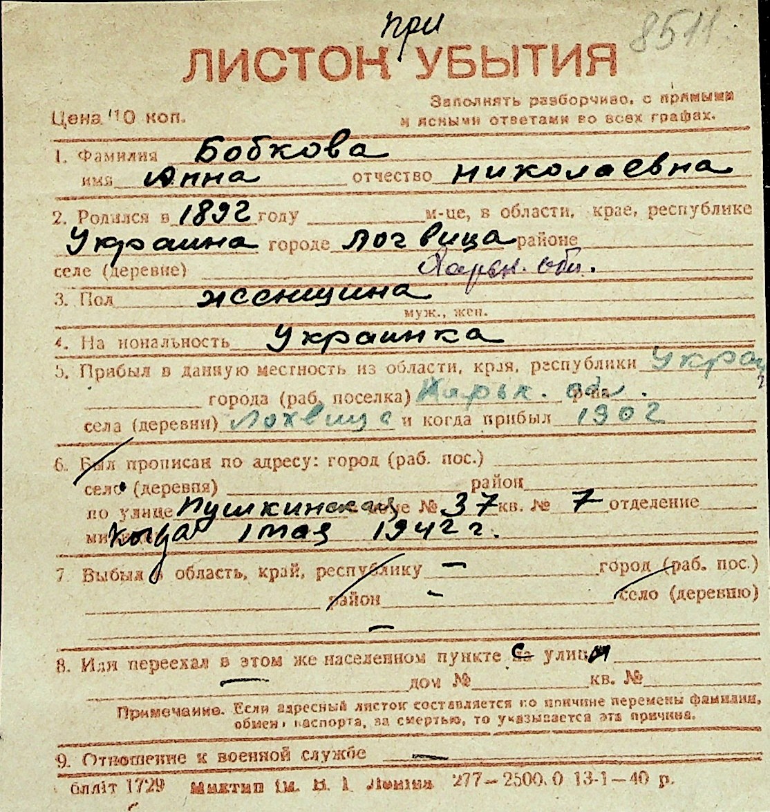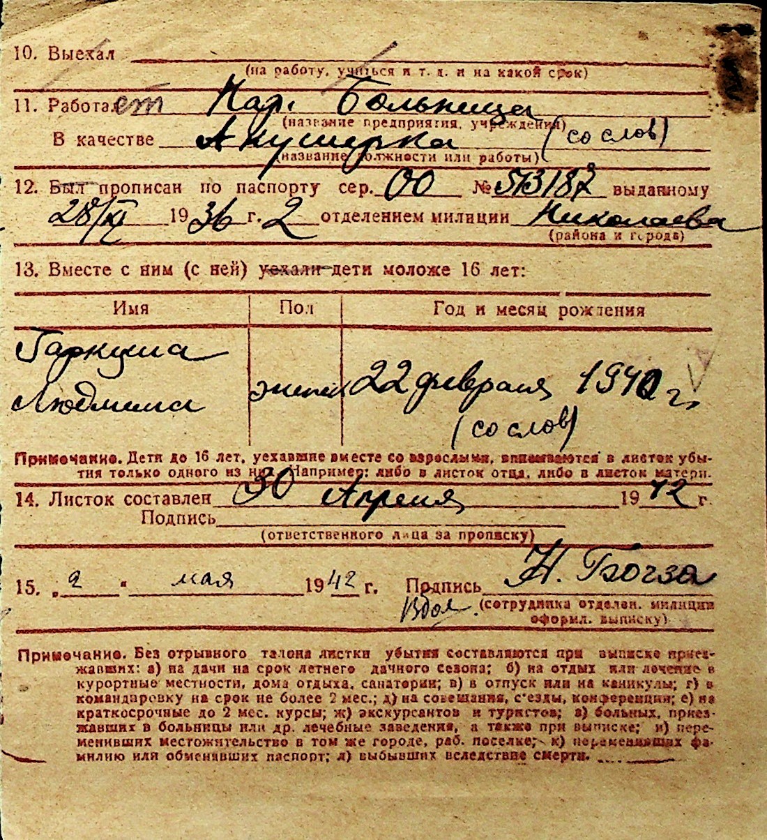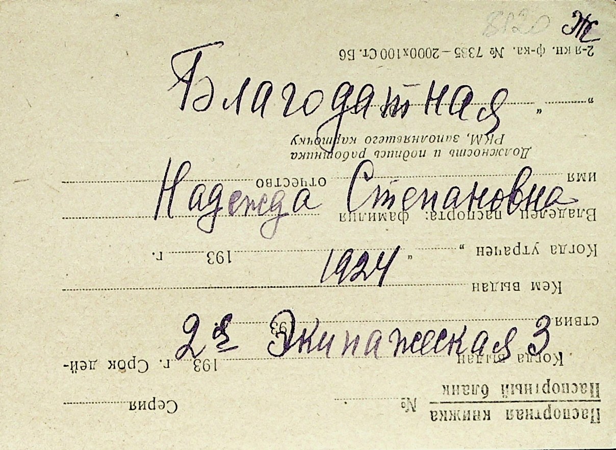 ◦ ◦ Перелік карток на осіб, які мешкали у м. Миколаїв у період окупації 1941–1944 років