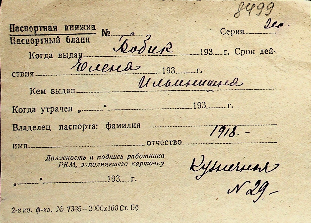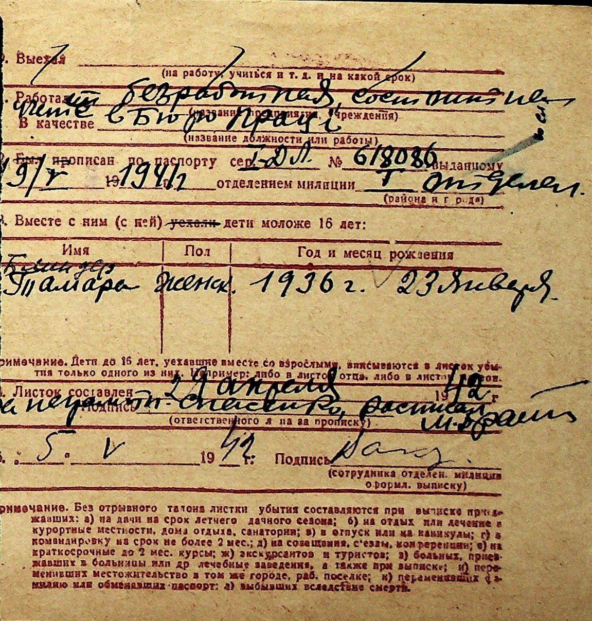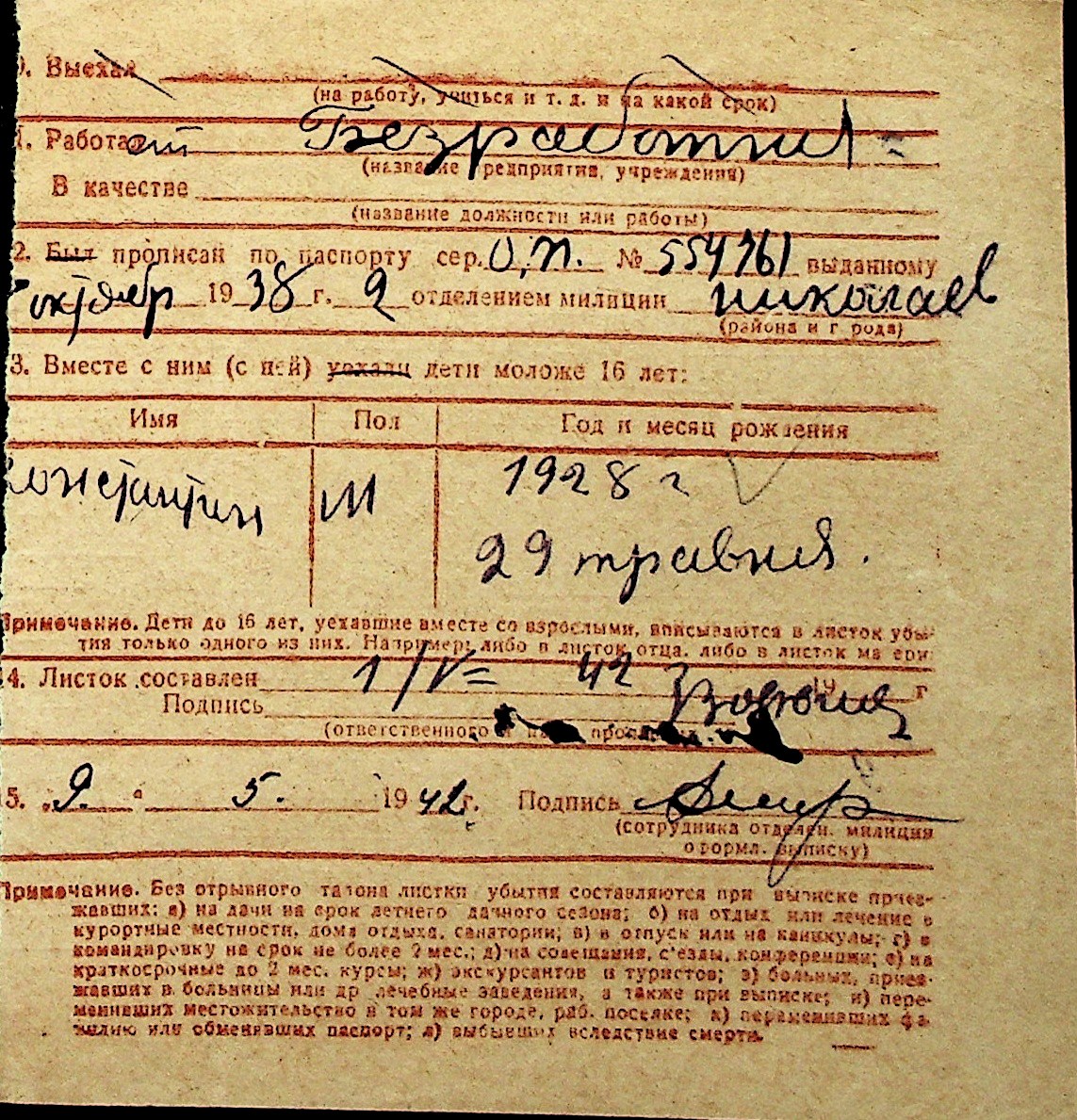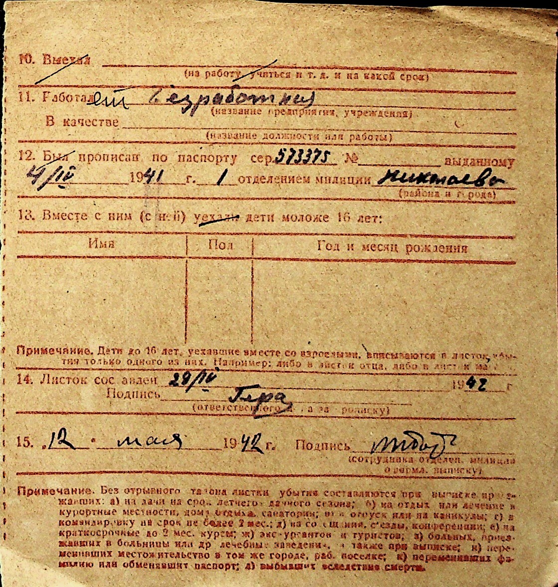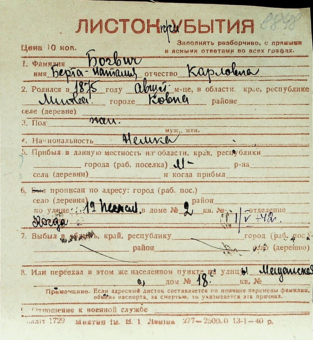 ◦ ◦ Перелік карток на осіб, які мешкали у м. Миколаїв у період окупації 1941–1944 років