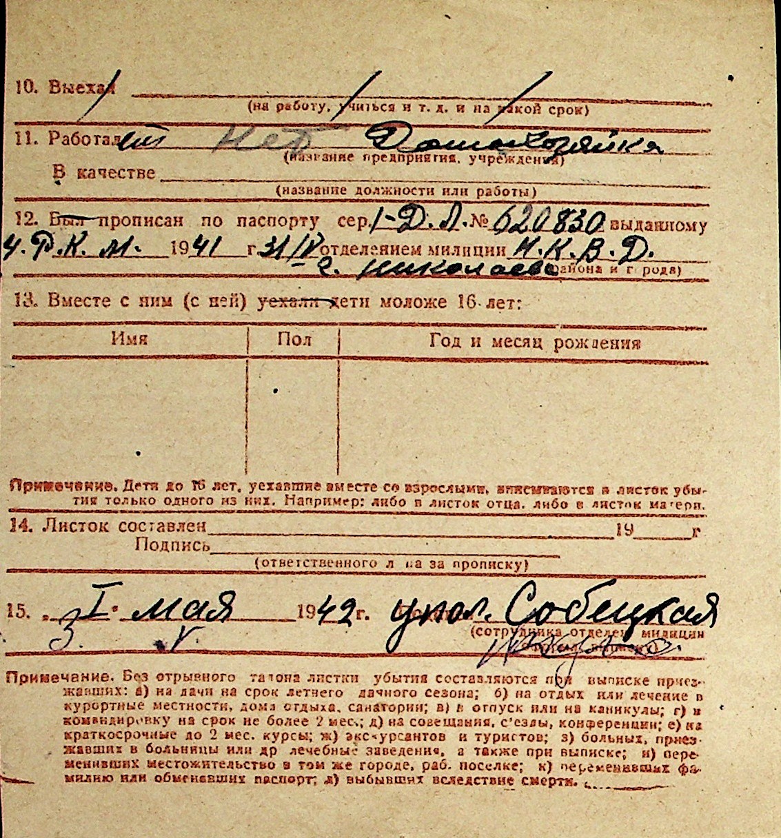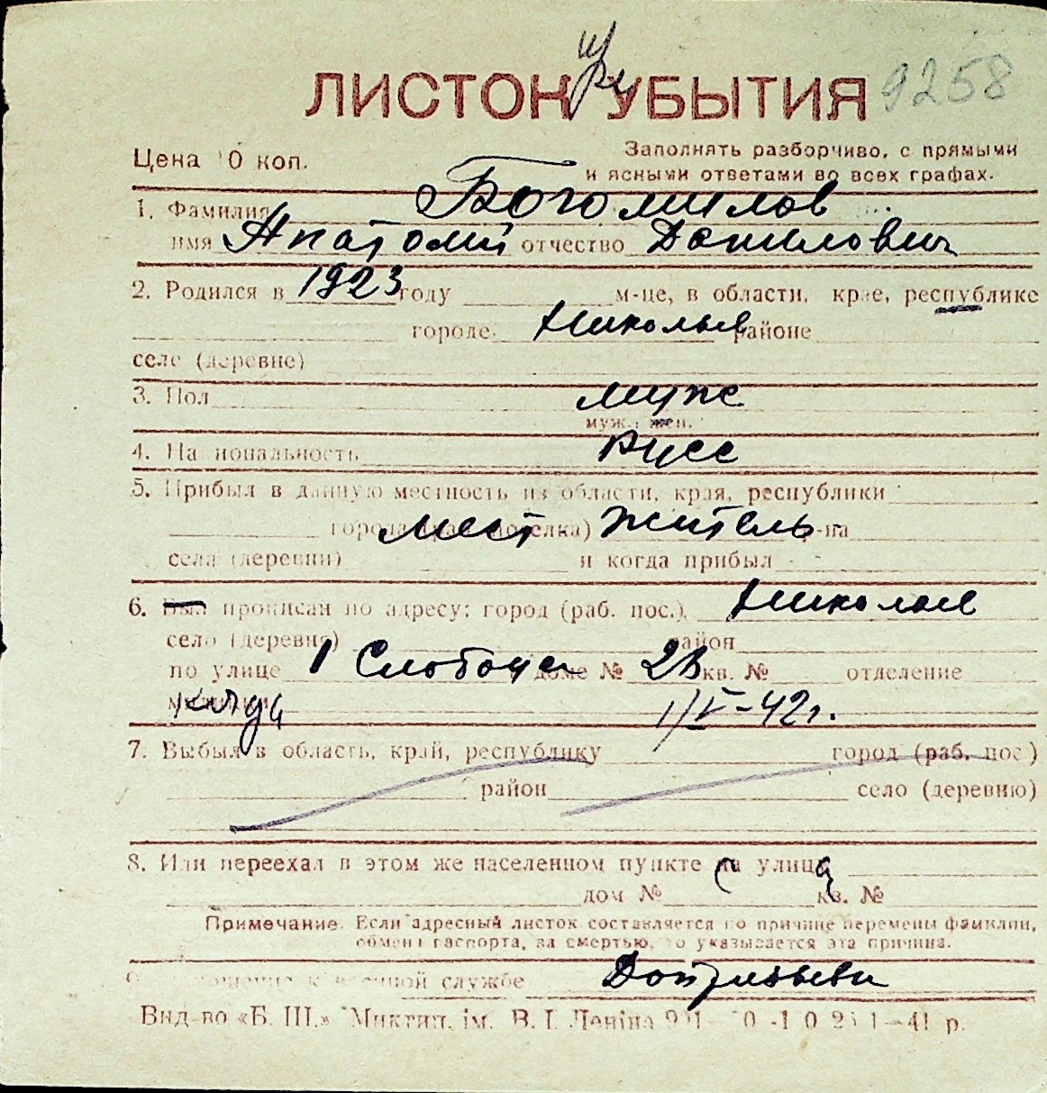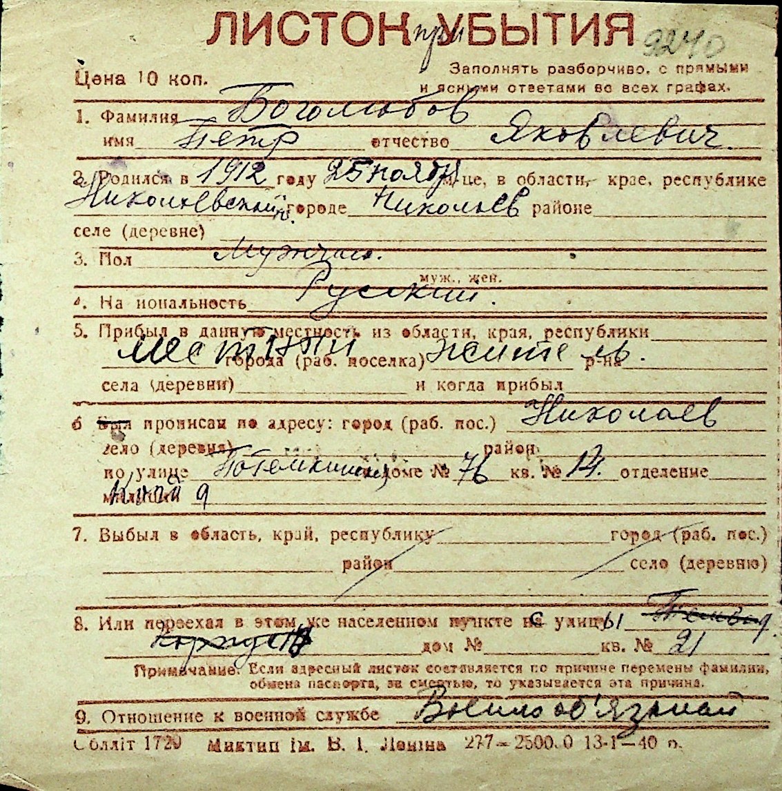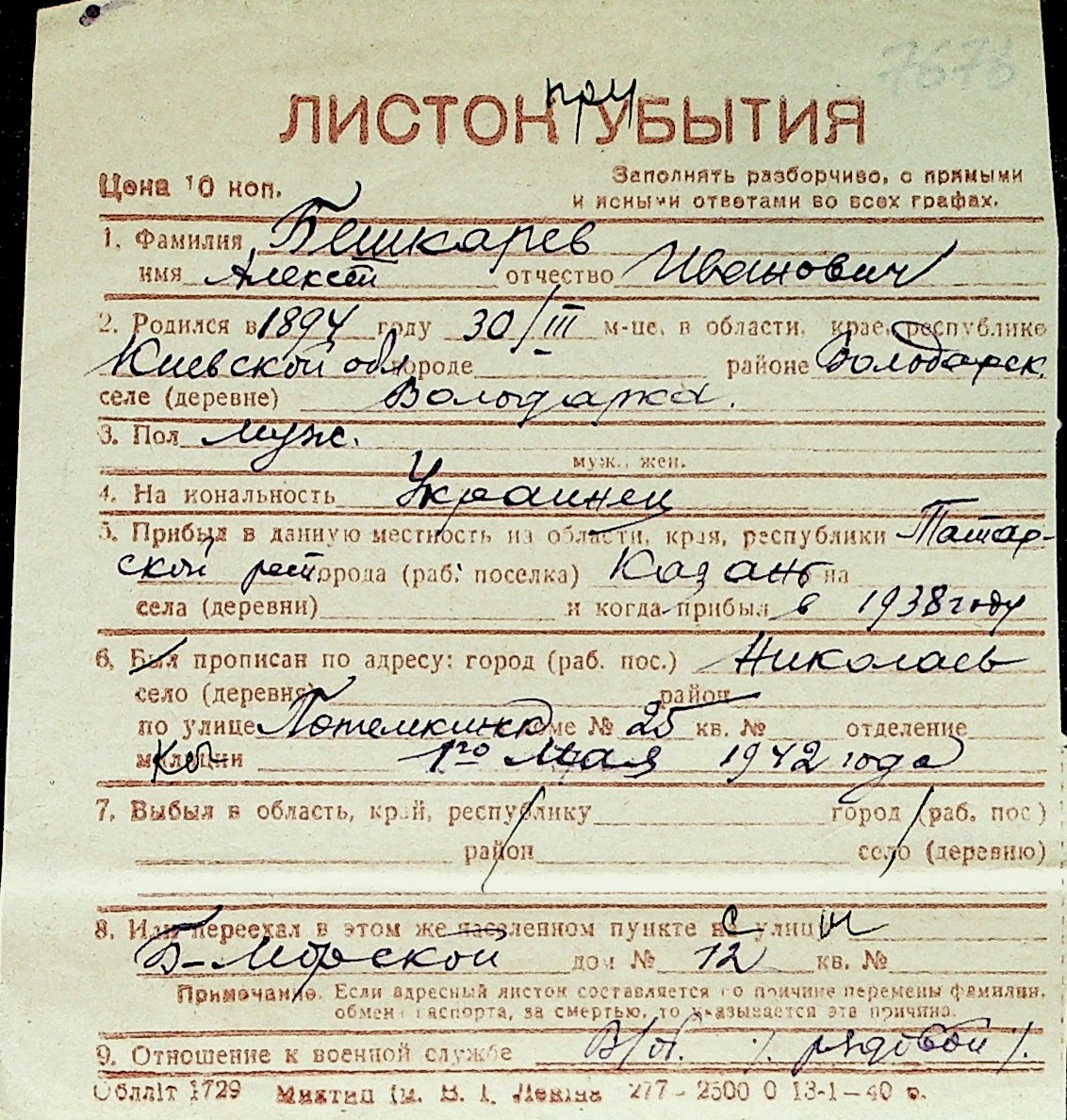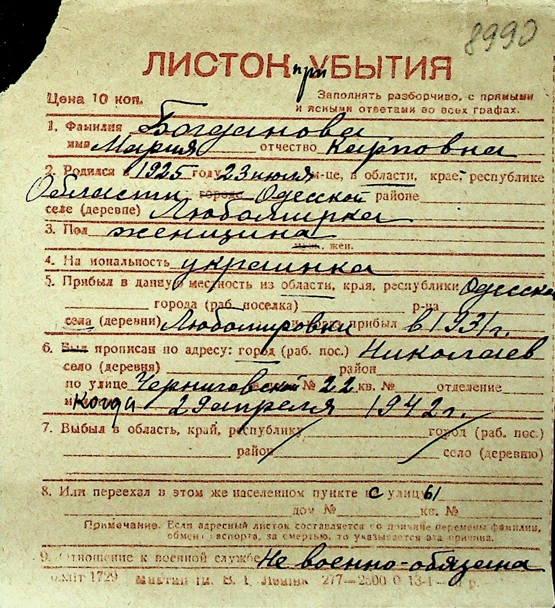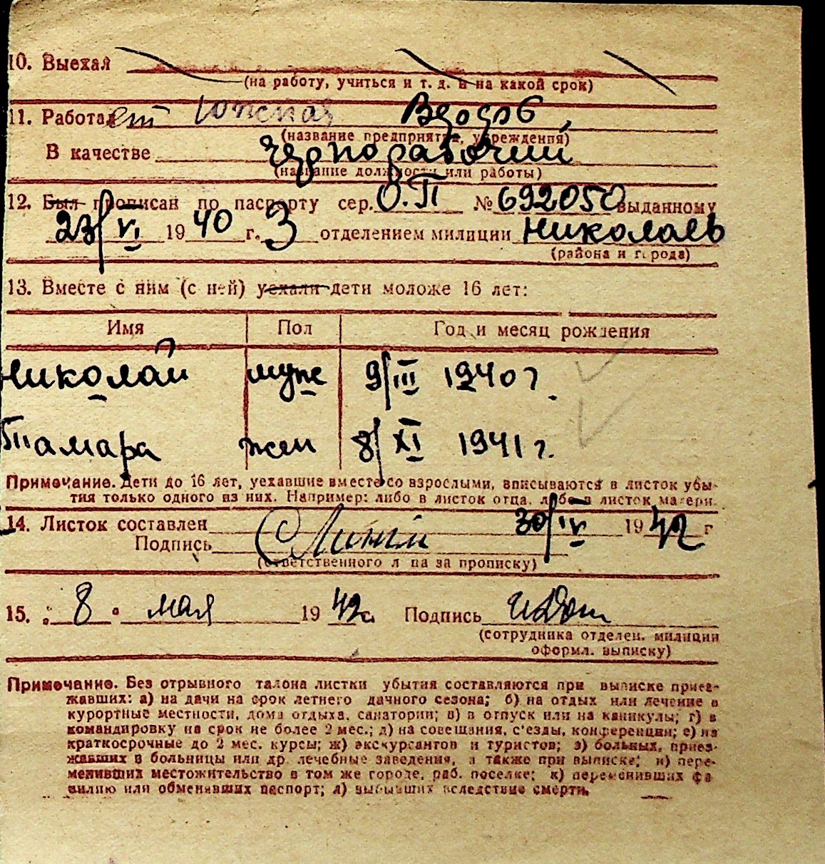 ◦ ◦ Перелік карток на осіб, які мешкали у м. Миколаїв у період окупації 1941–1944 років