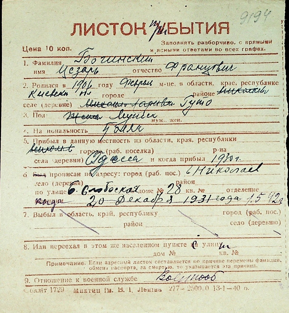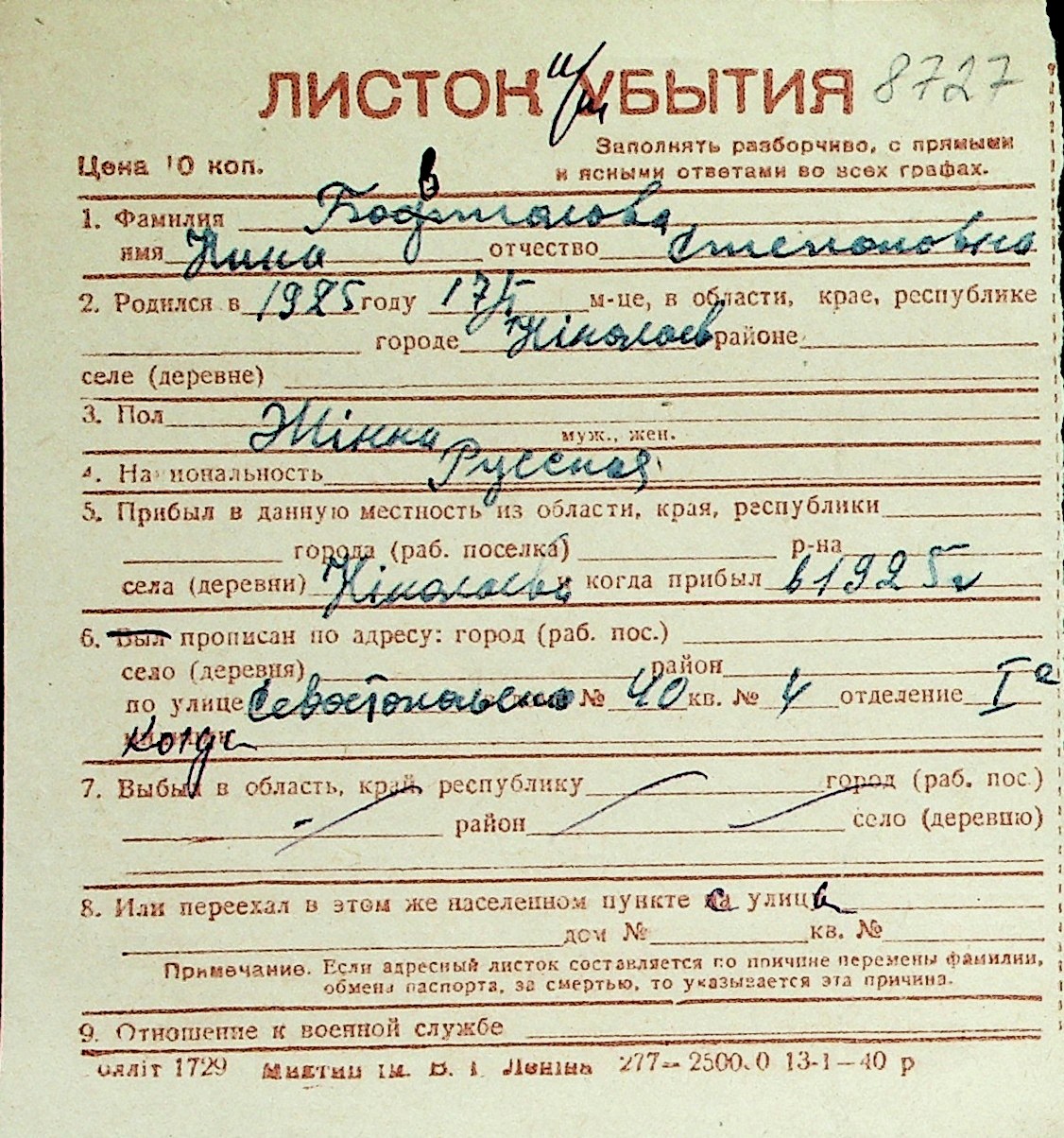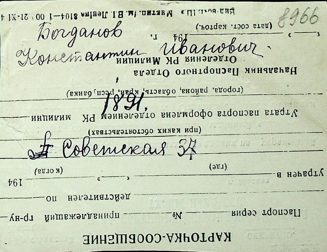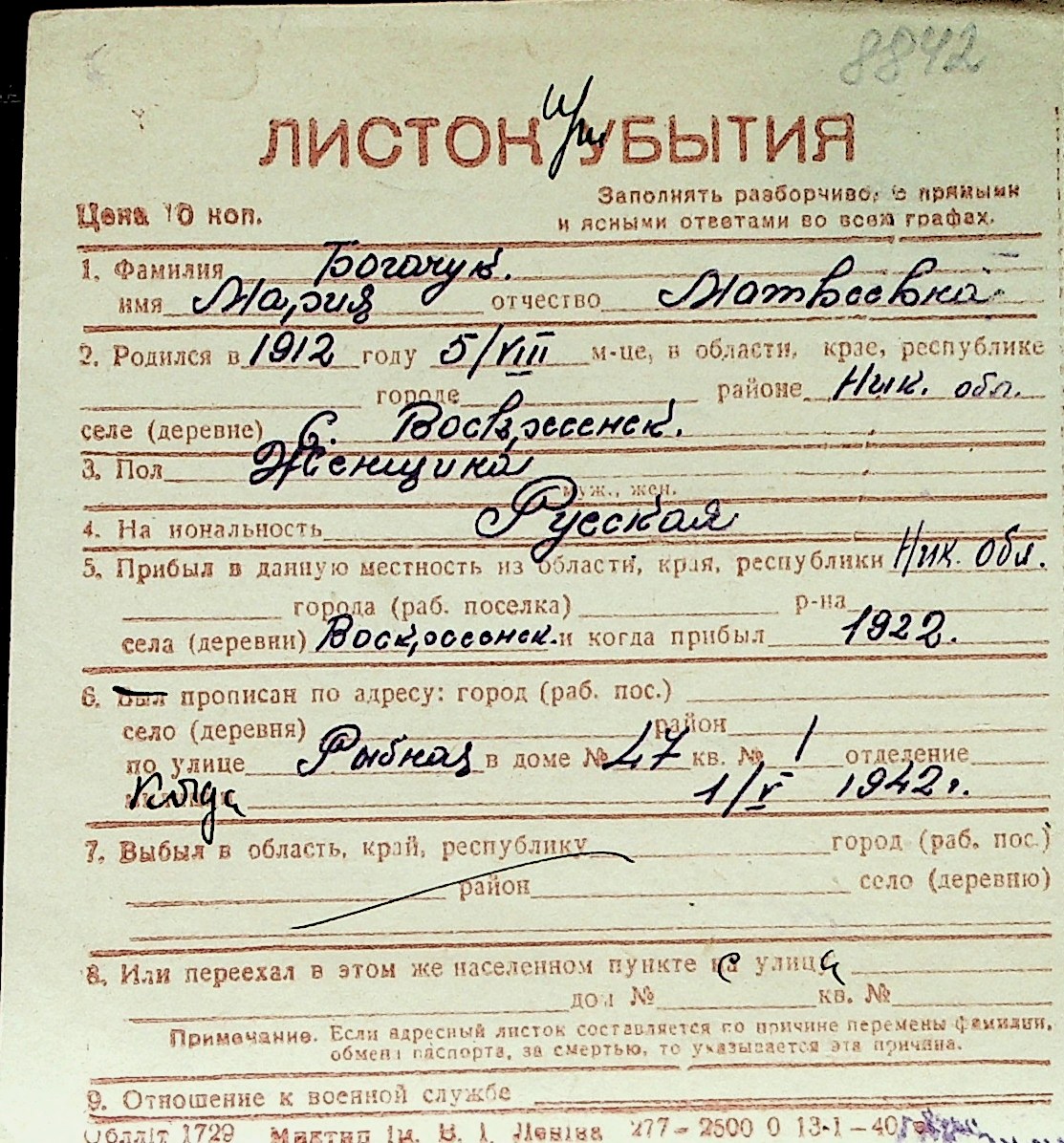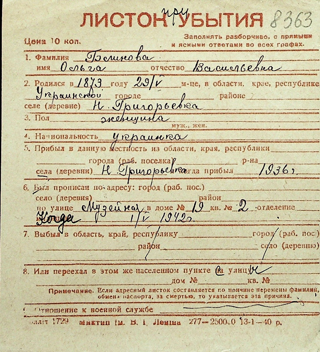 ◦ ◦ Перелік карток на осіб, які мешкали у м. Миколаїв у період окупації 1941–1944 років