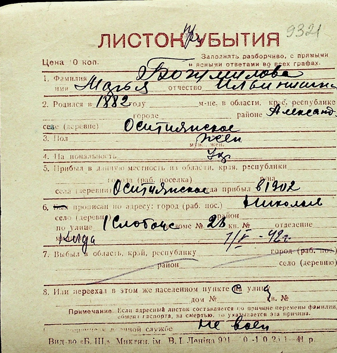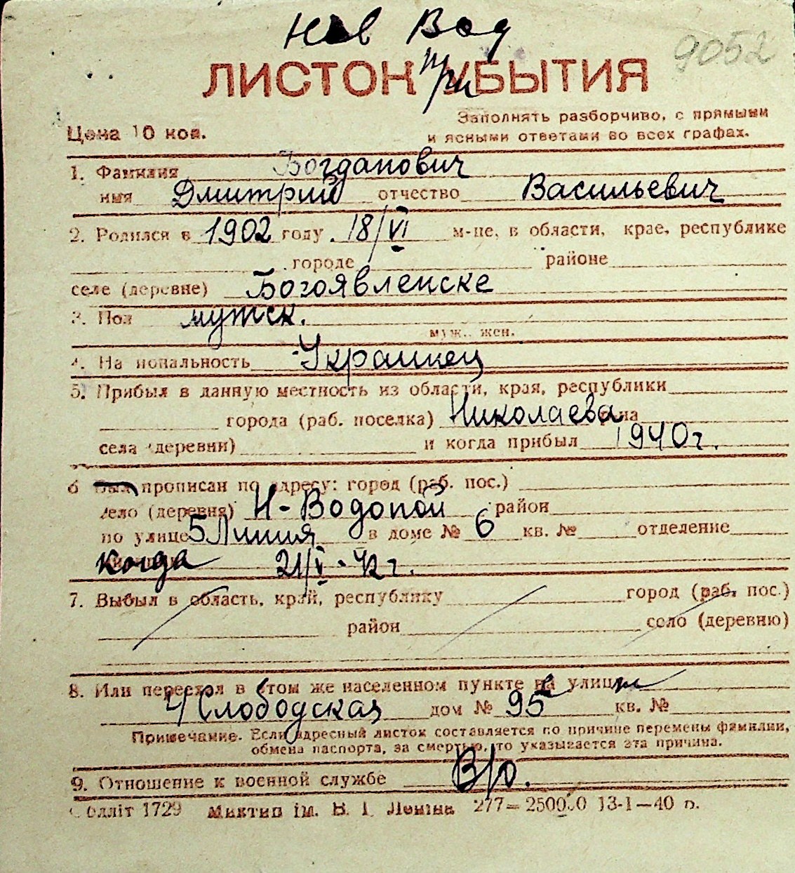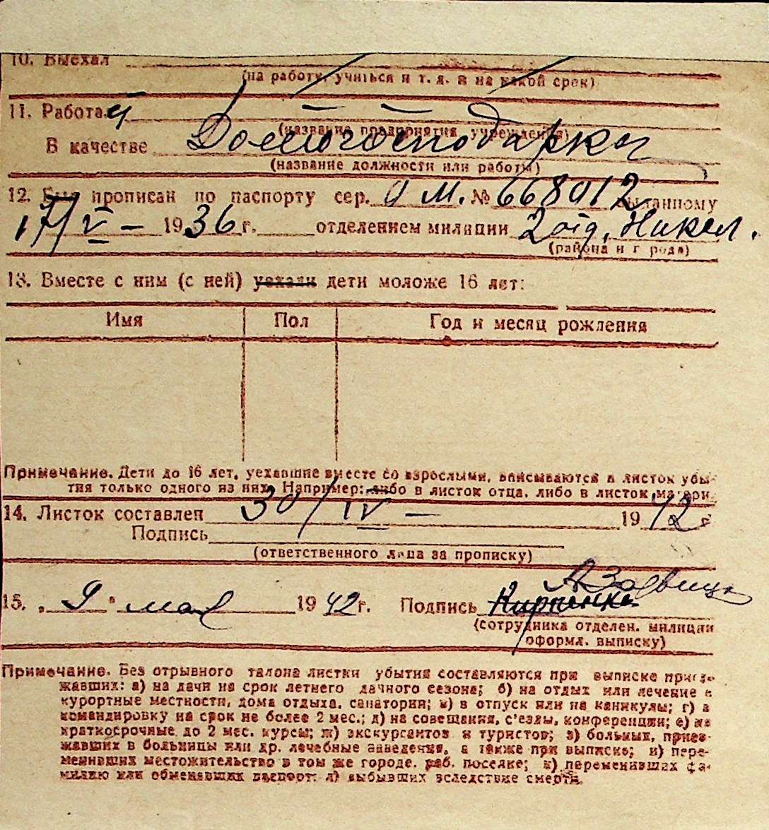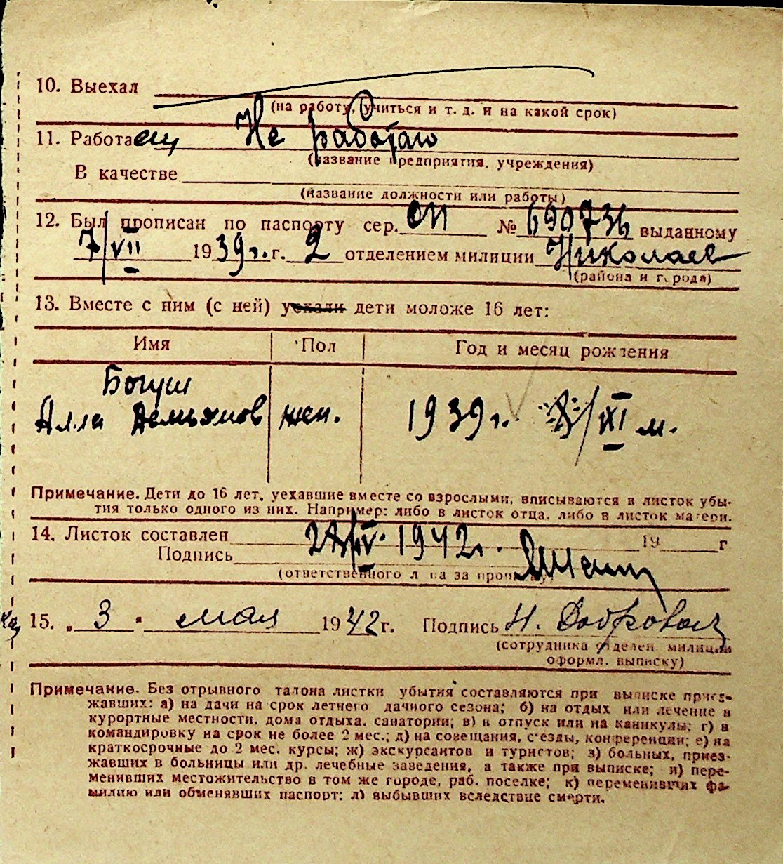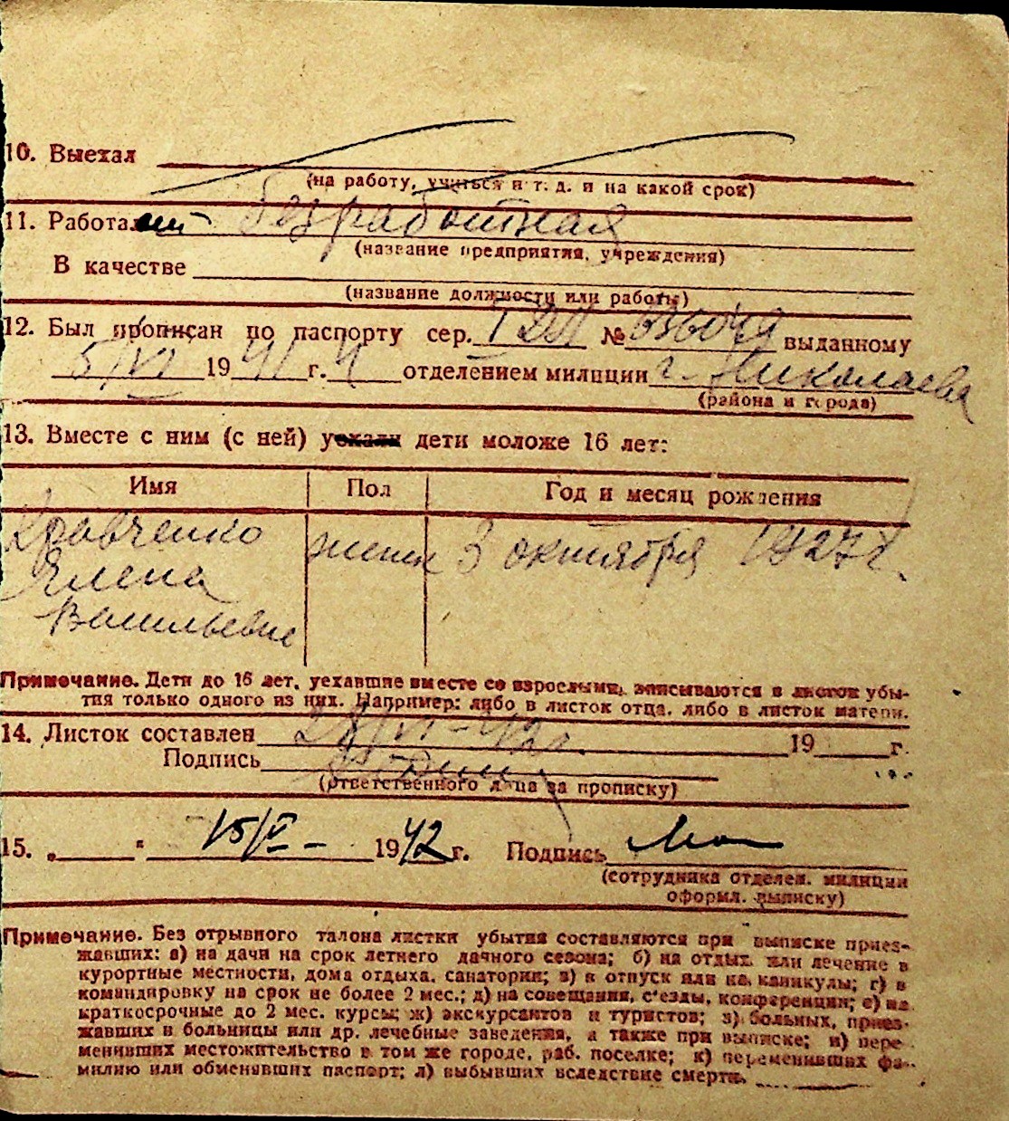 ◦ ◦ Перелік карток на осіб, які мешкали у м. Миколаїв у період окупації 1941–1944 років