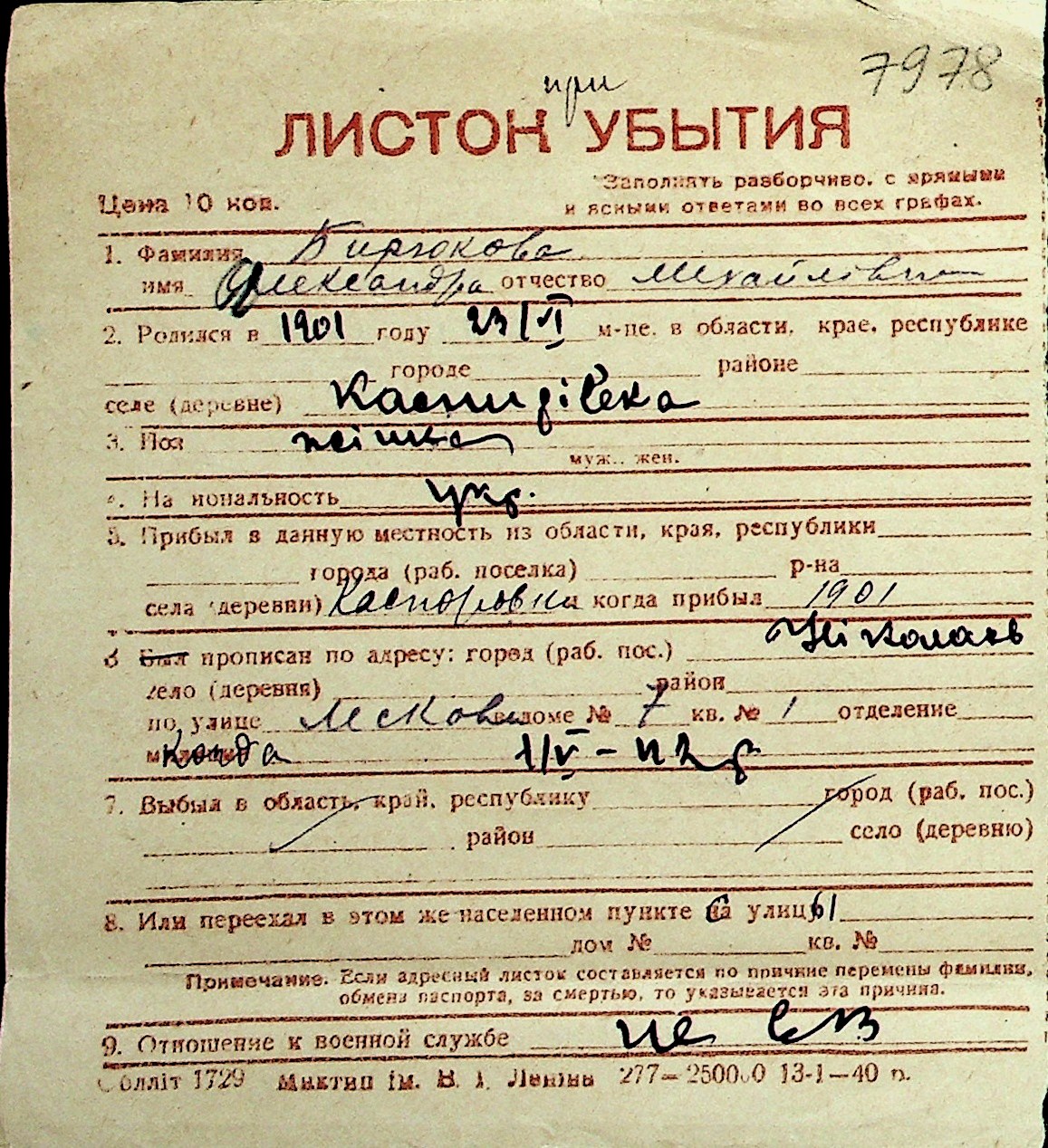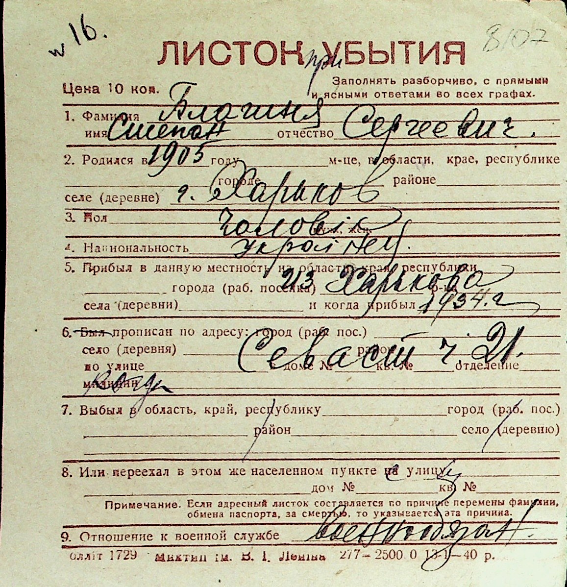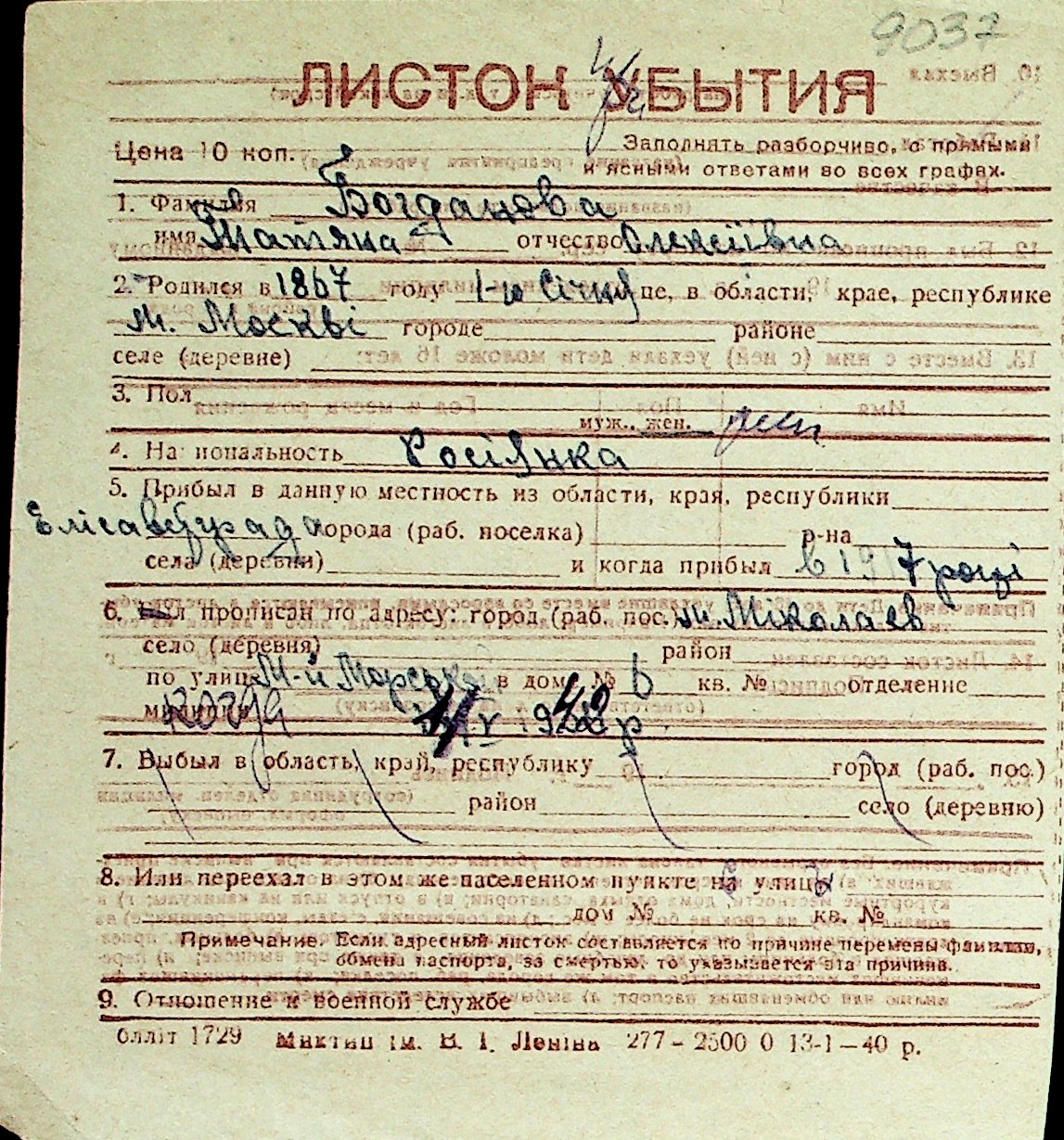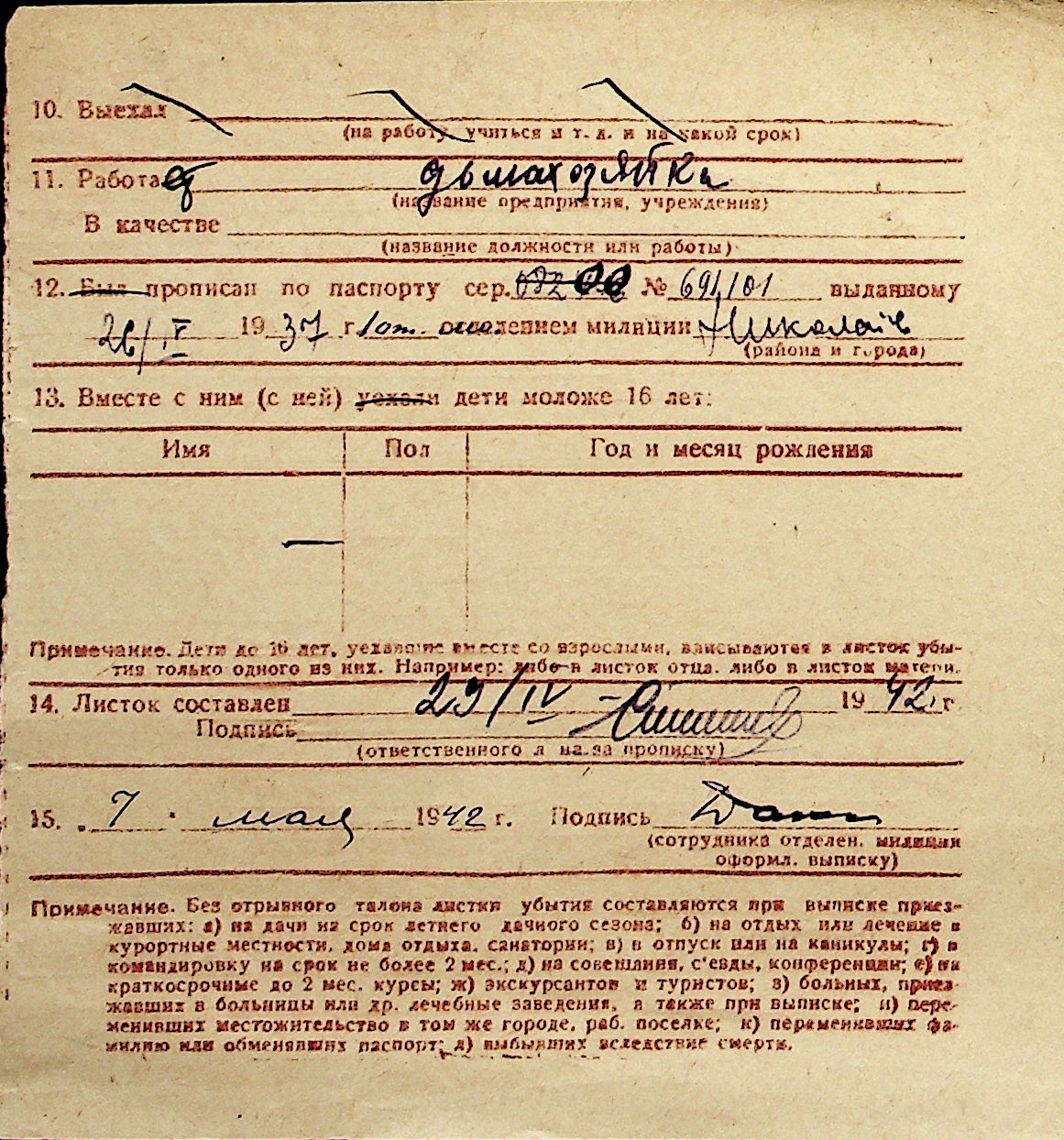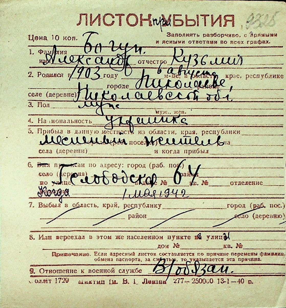 ◦ ◦ Перелік карток на осіб, які мешкали у м. Миколаїв у період окупації 1941–1944 років