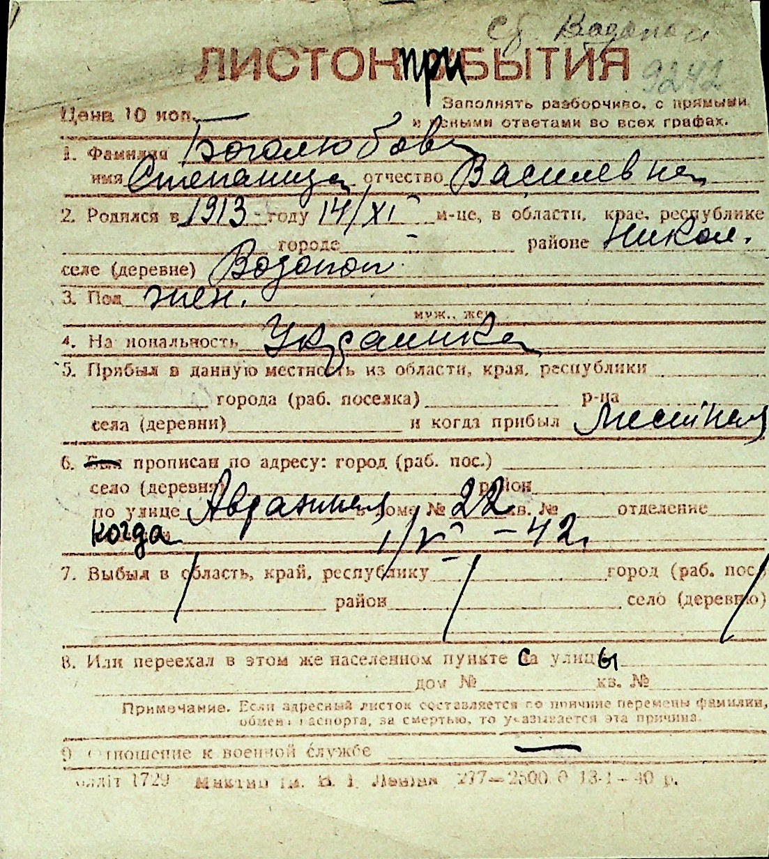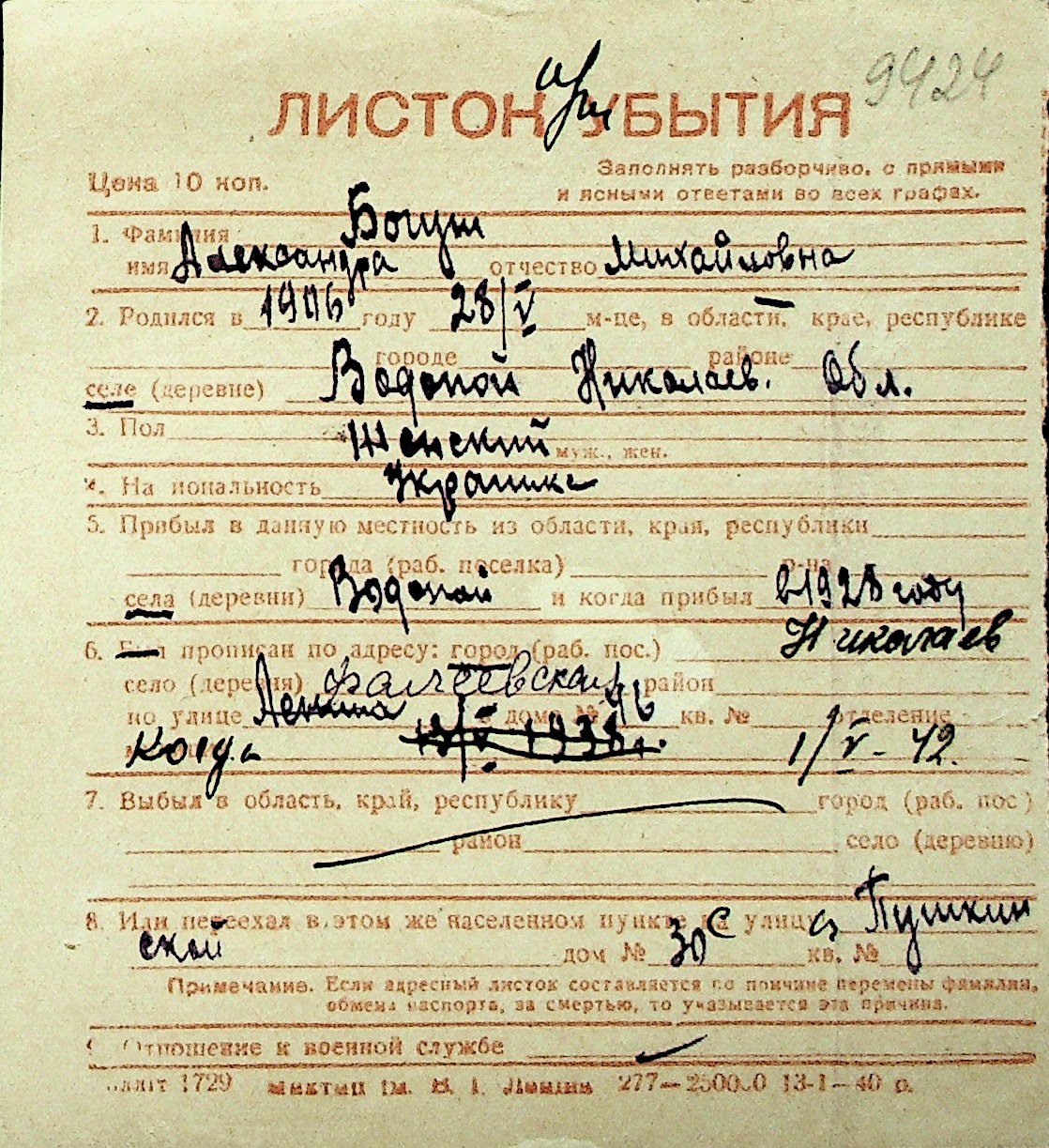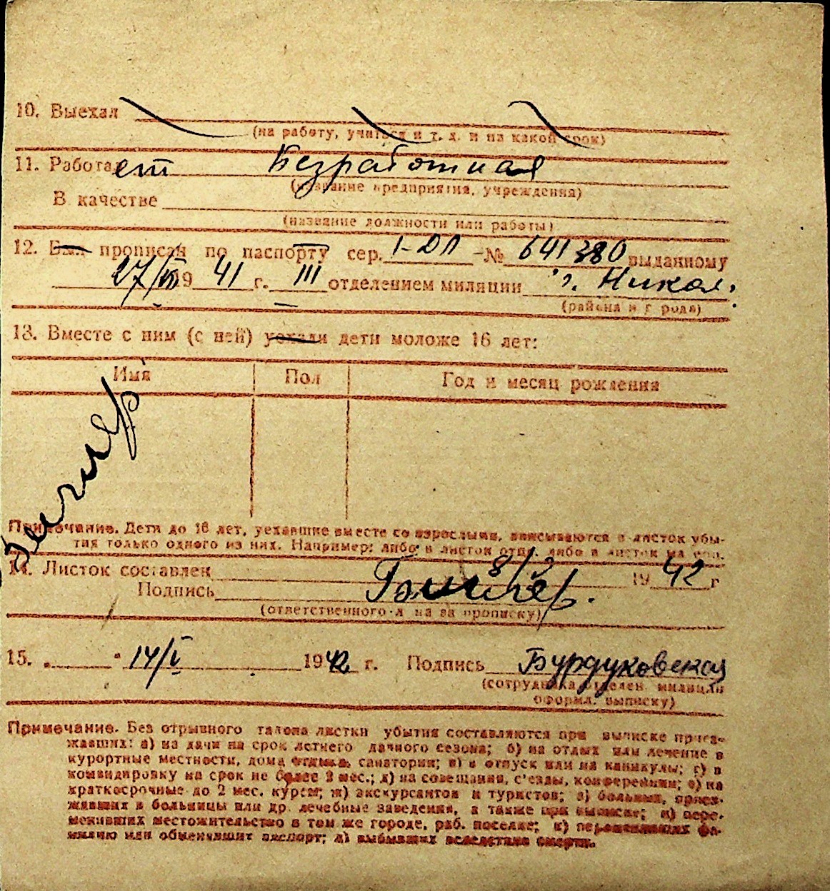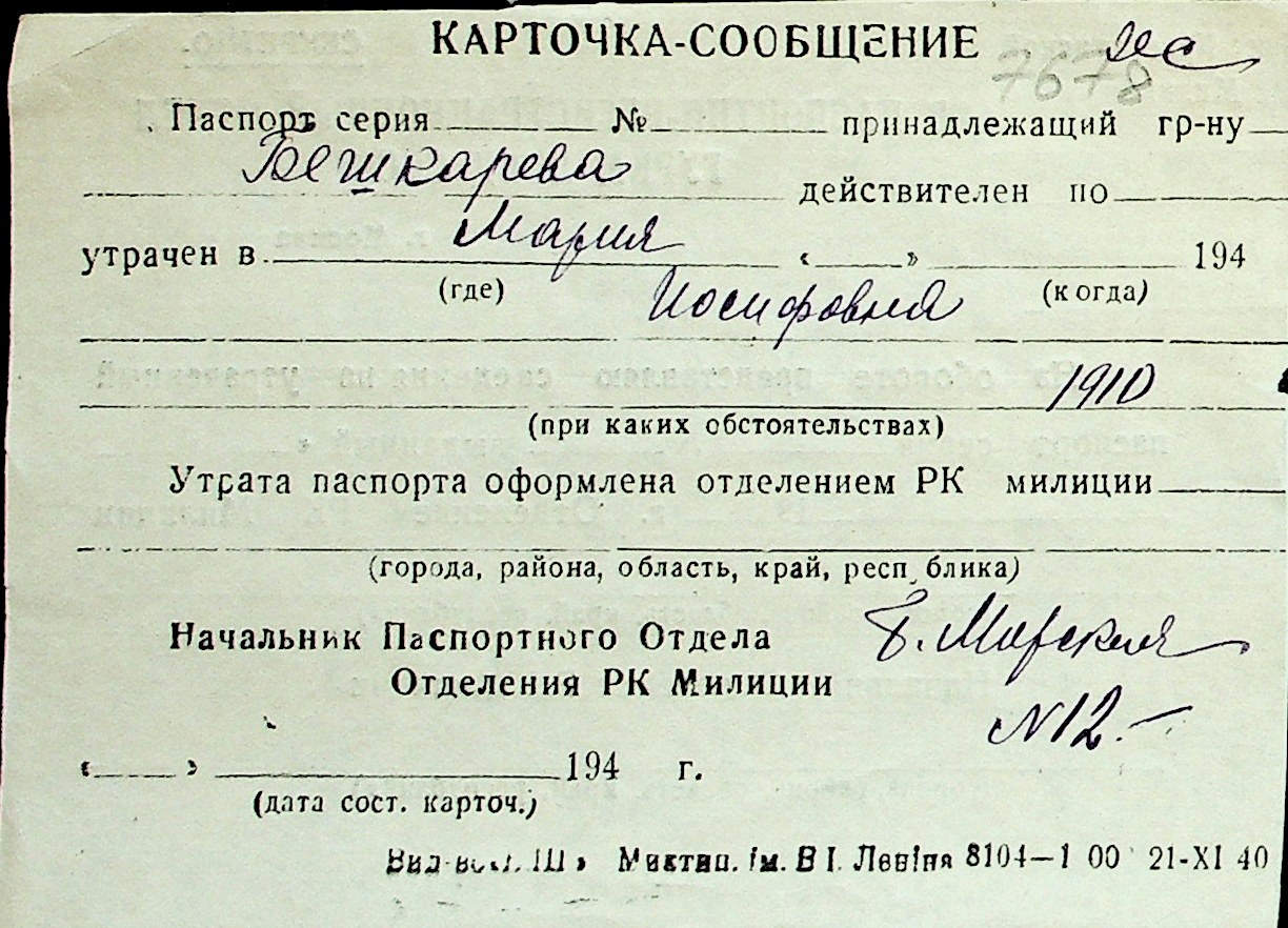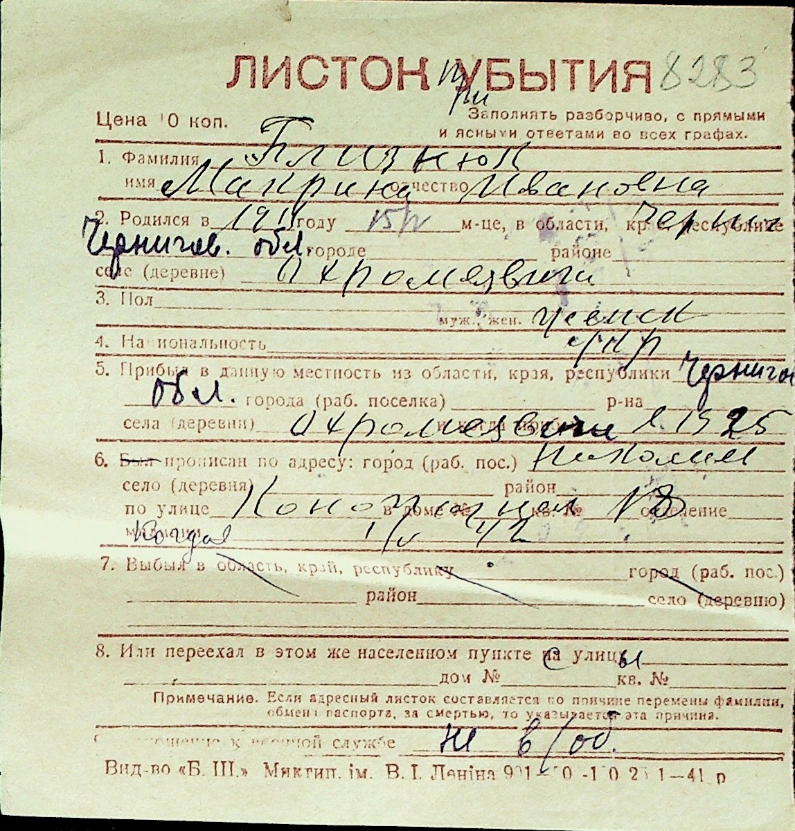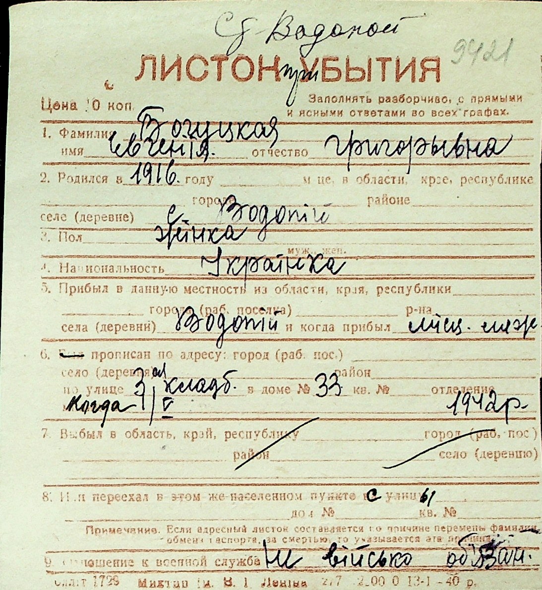 ◦ ◦ Перелік карток на осіб, які мешкали у м. Миколаїв у період окупації 1941–1944 років