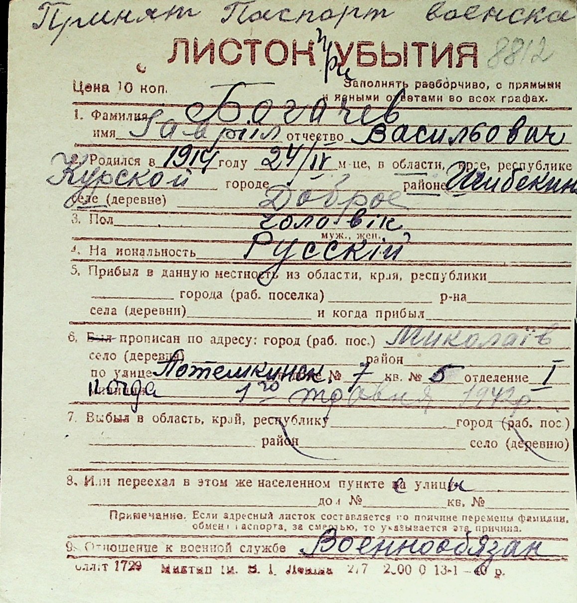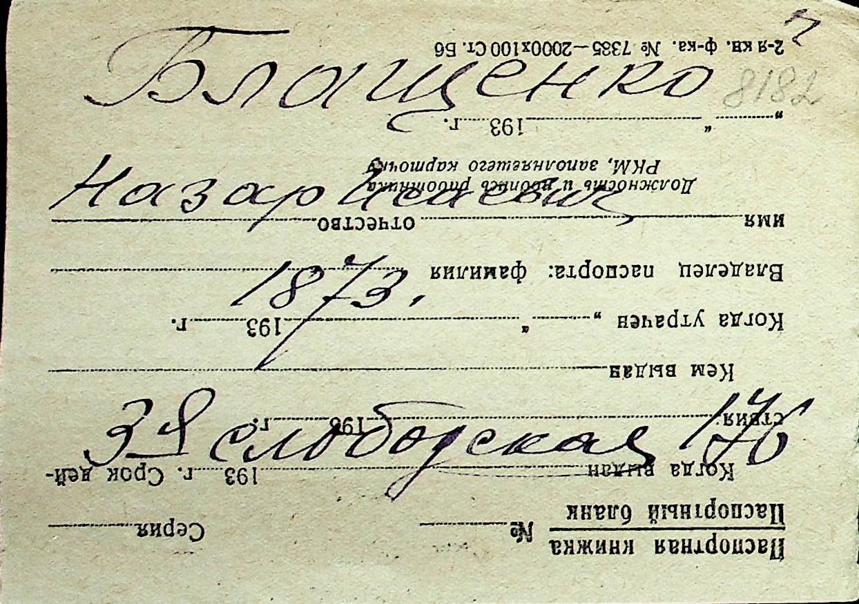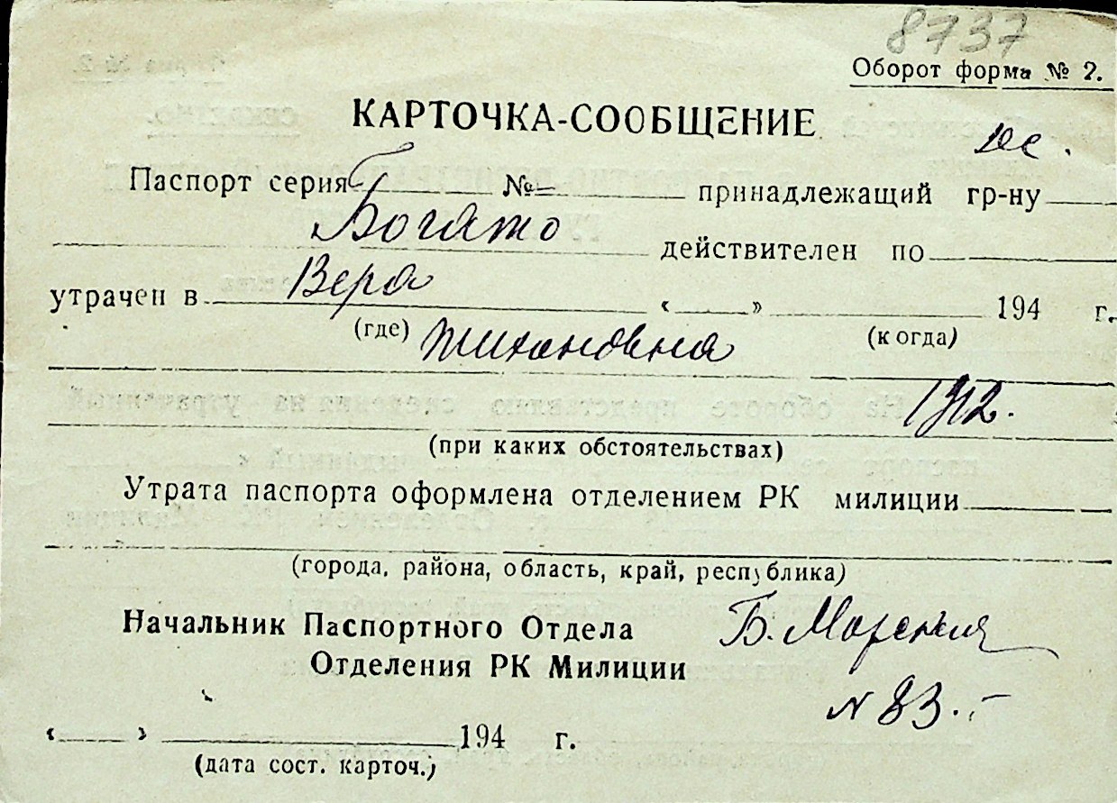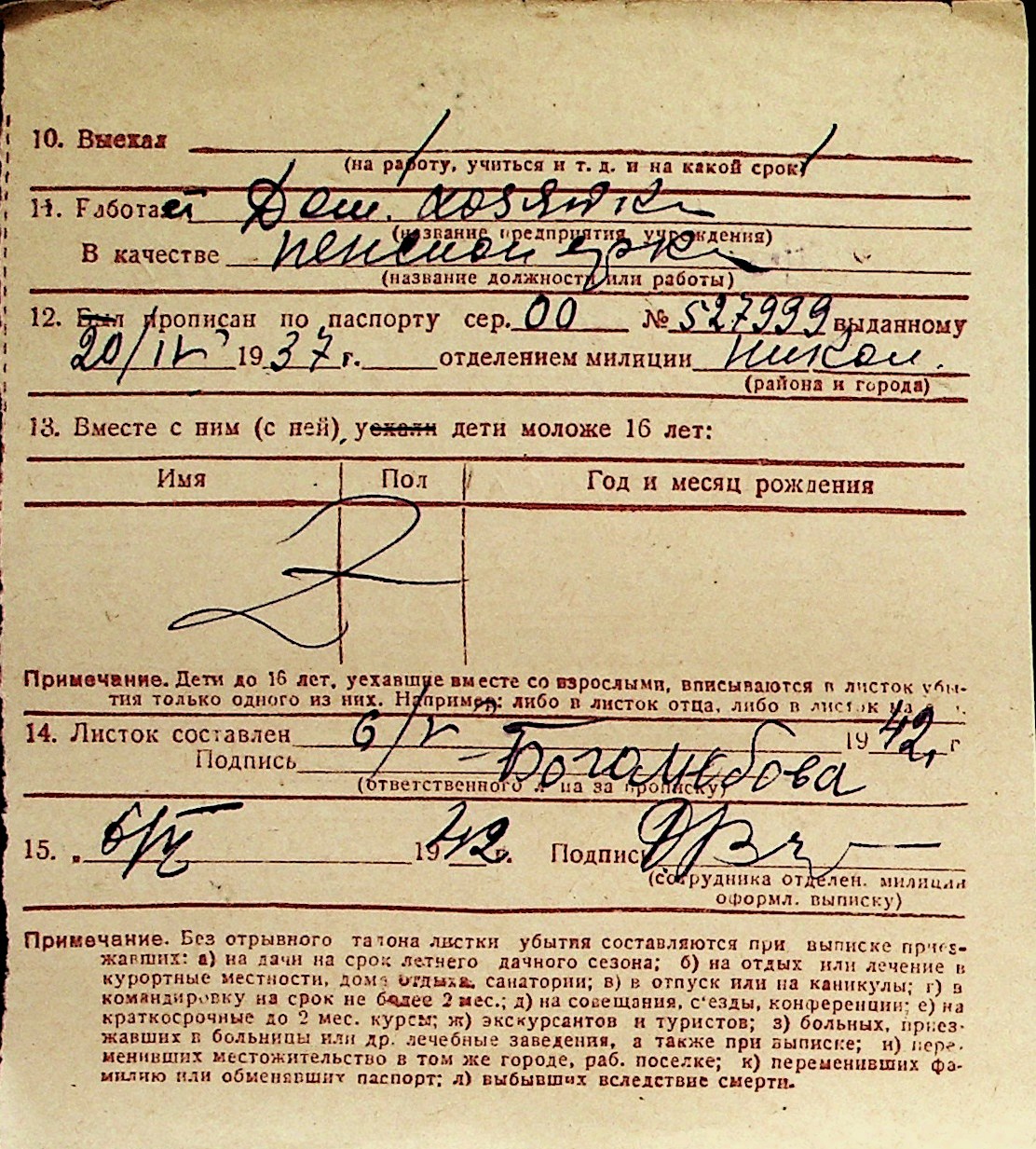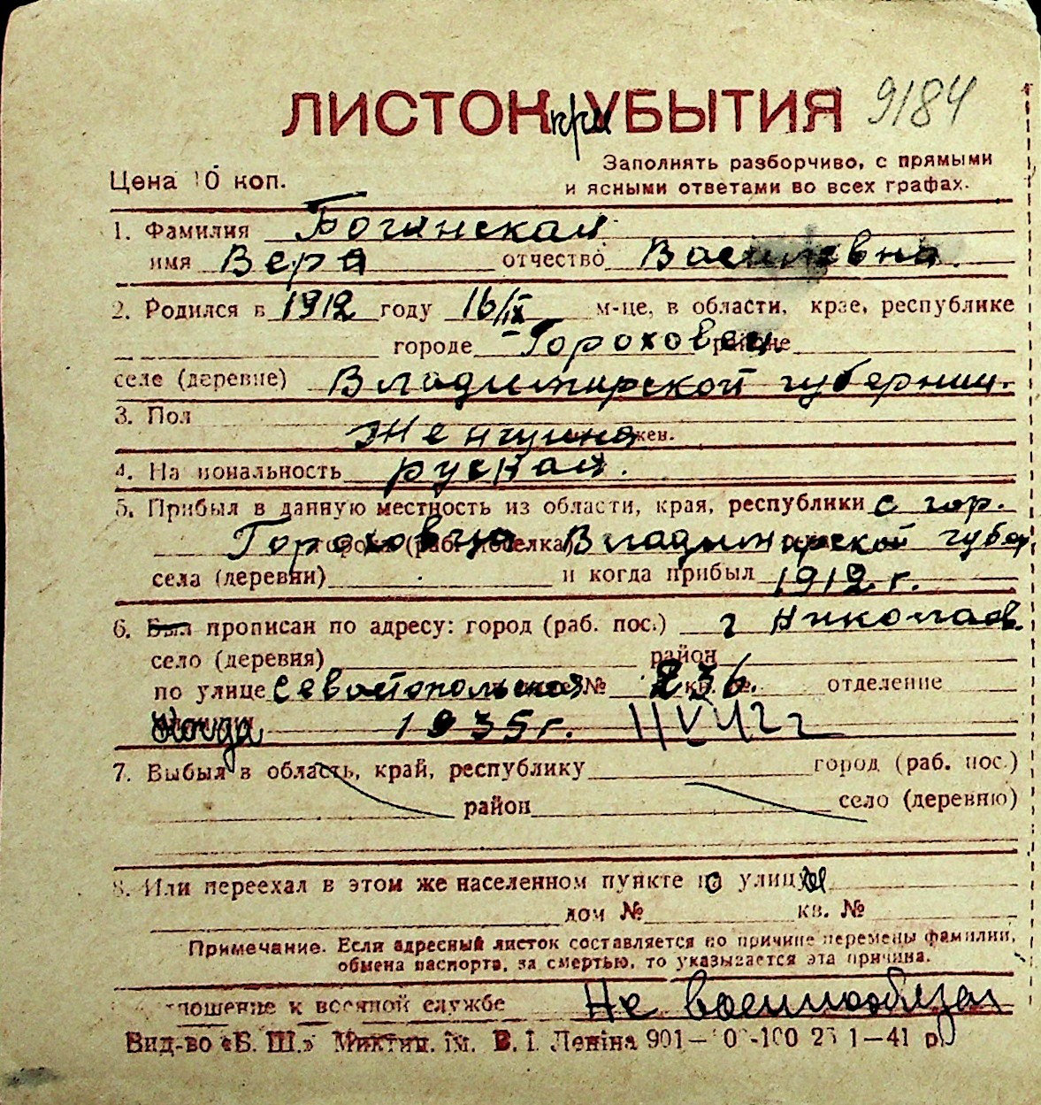 ◦ ◦ Перелік карток на осіб, які мешкали у м. Миколаїв у період окупації 1941–1944 років