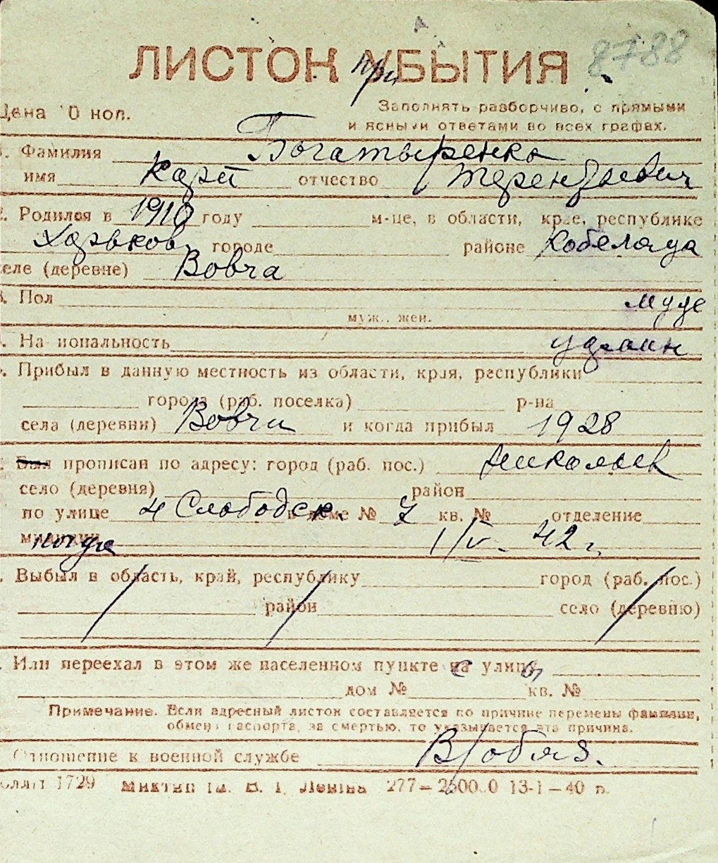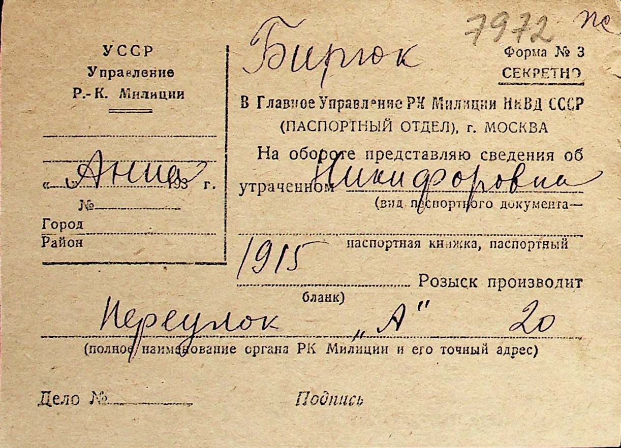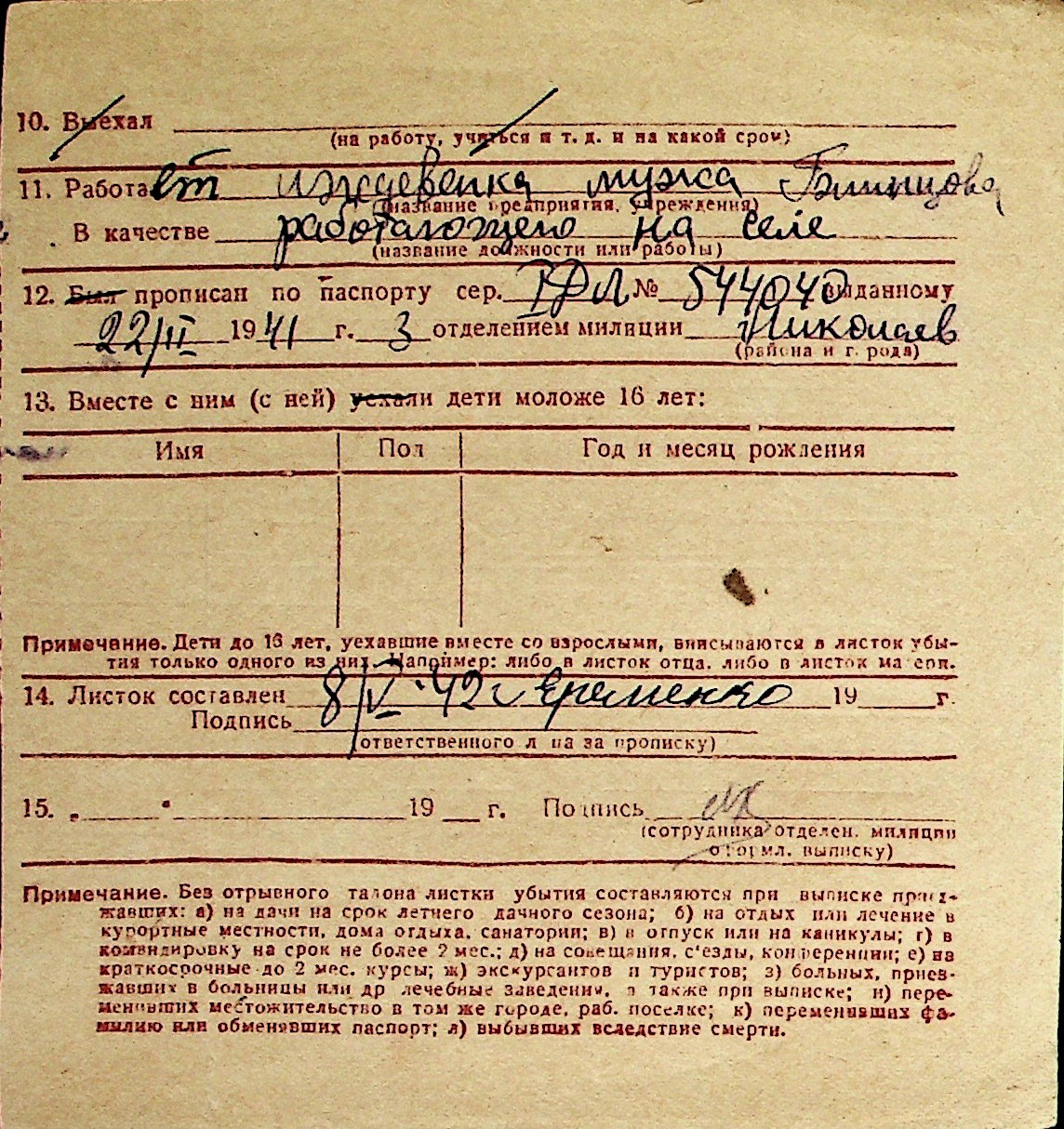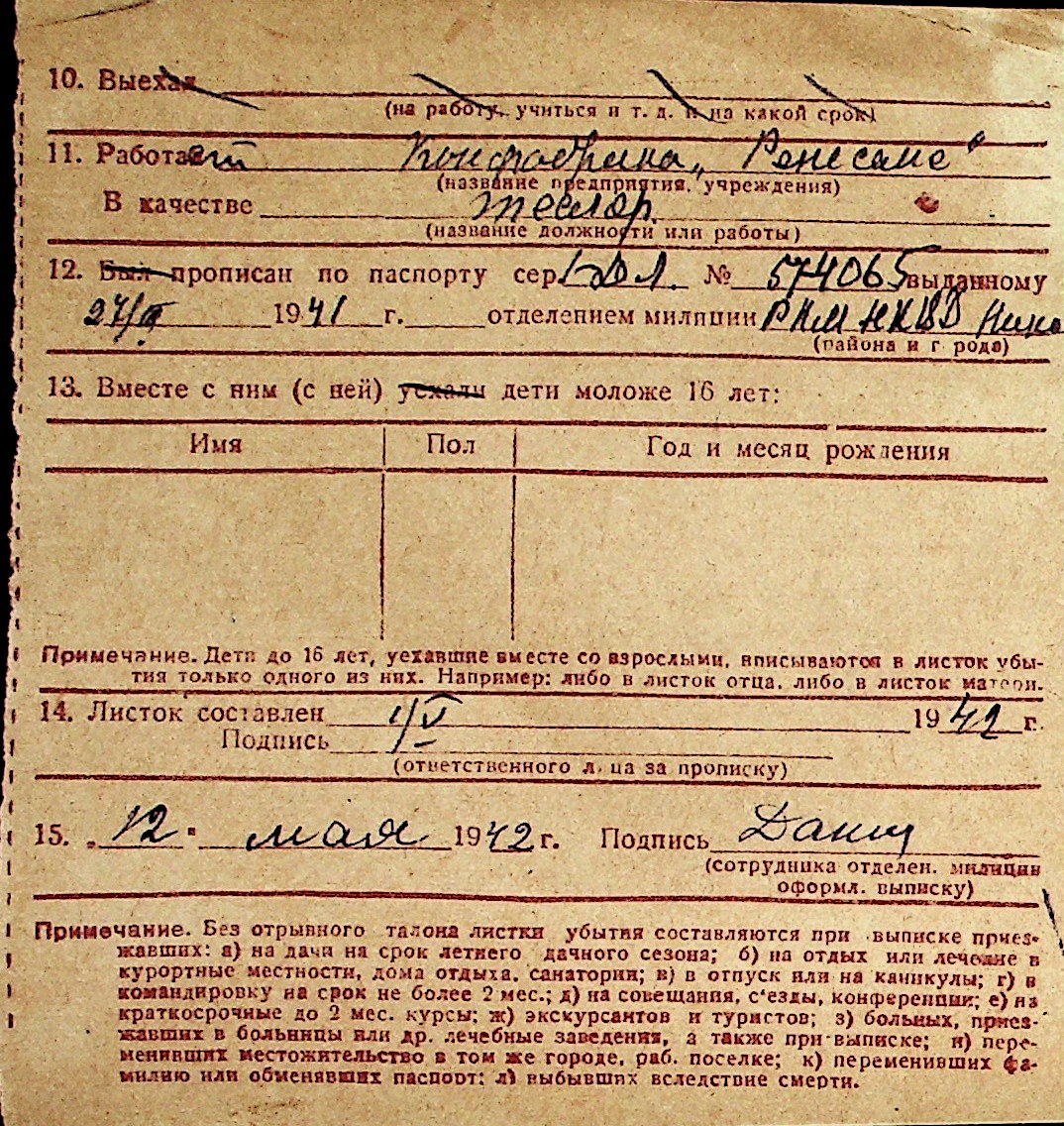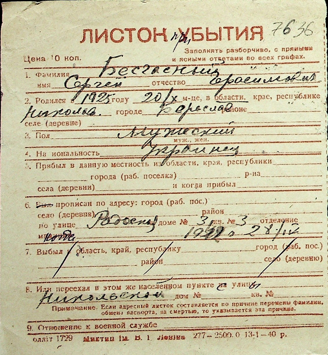 ◦ ◦ Перелік карток на осіб, які мешкали у м. Миколаїв у період окупації 1941–1944 років