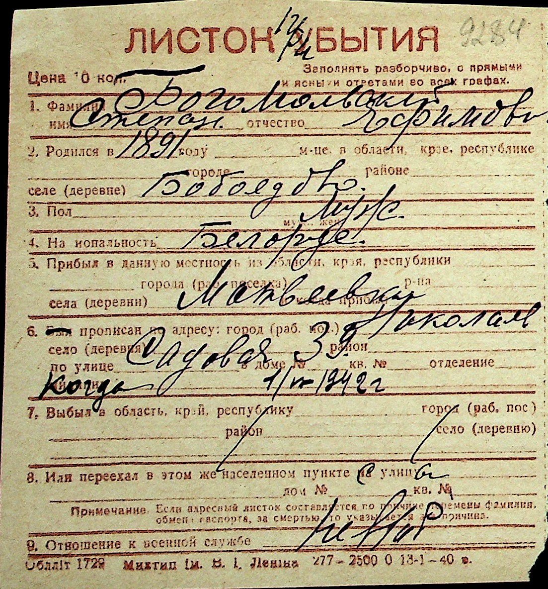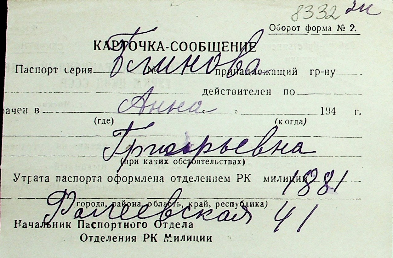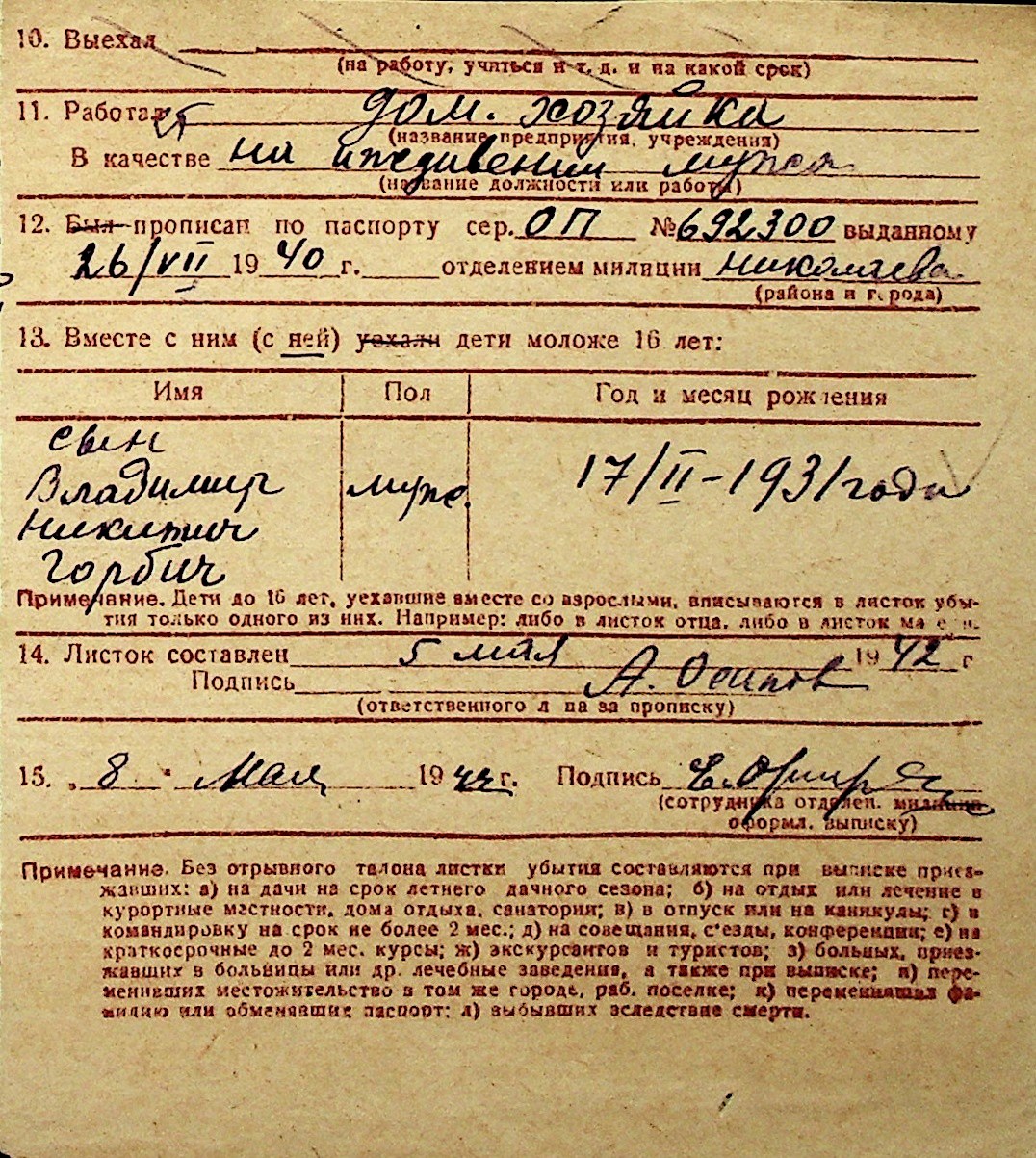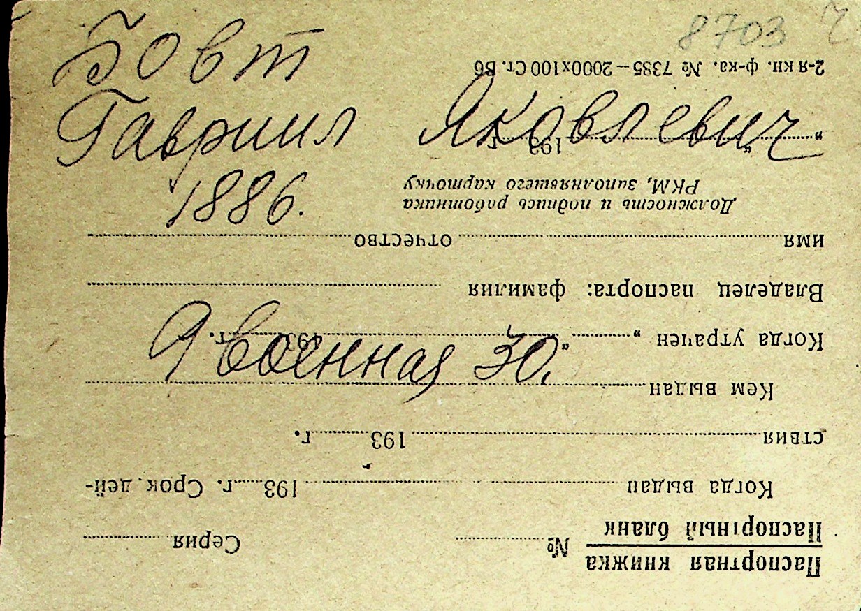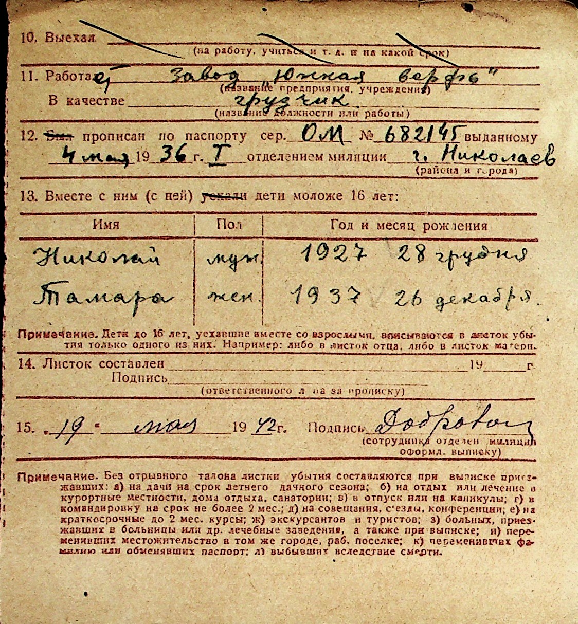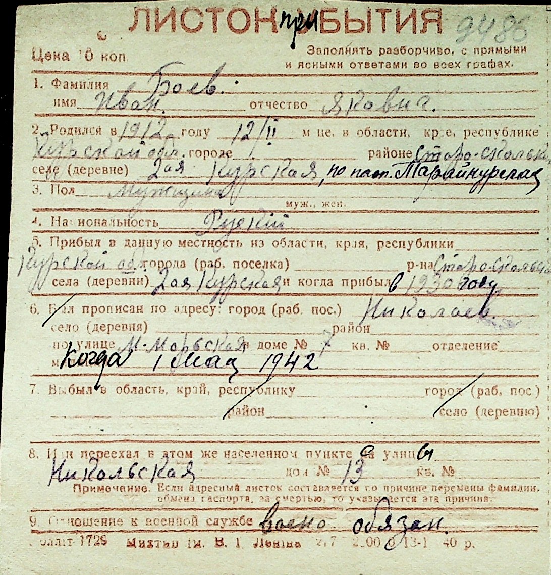 ◦ ◦ Перелік карток на осіб, які мешкали у м. Миколаїв у період окупації 1941–1944 років