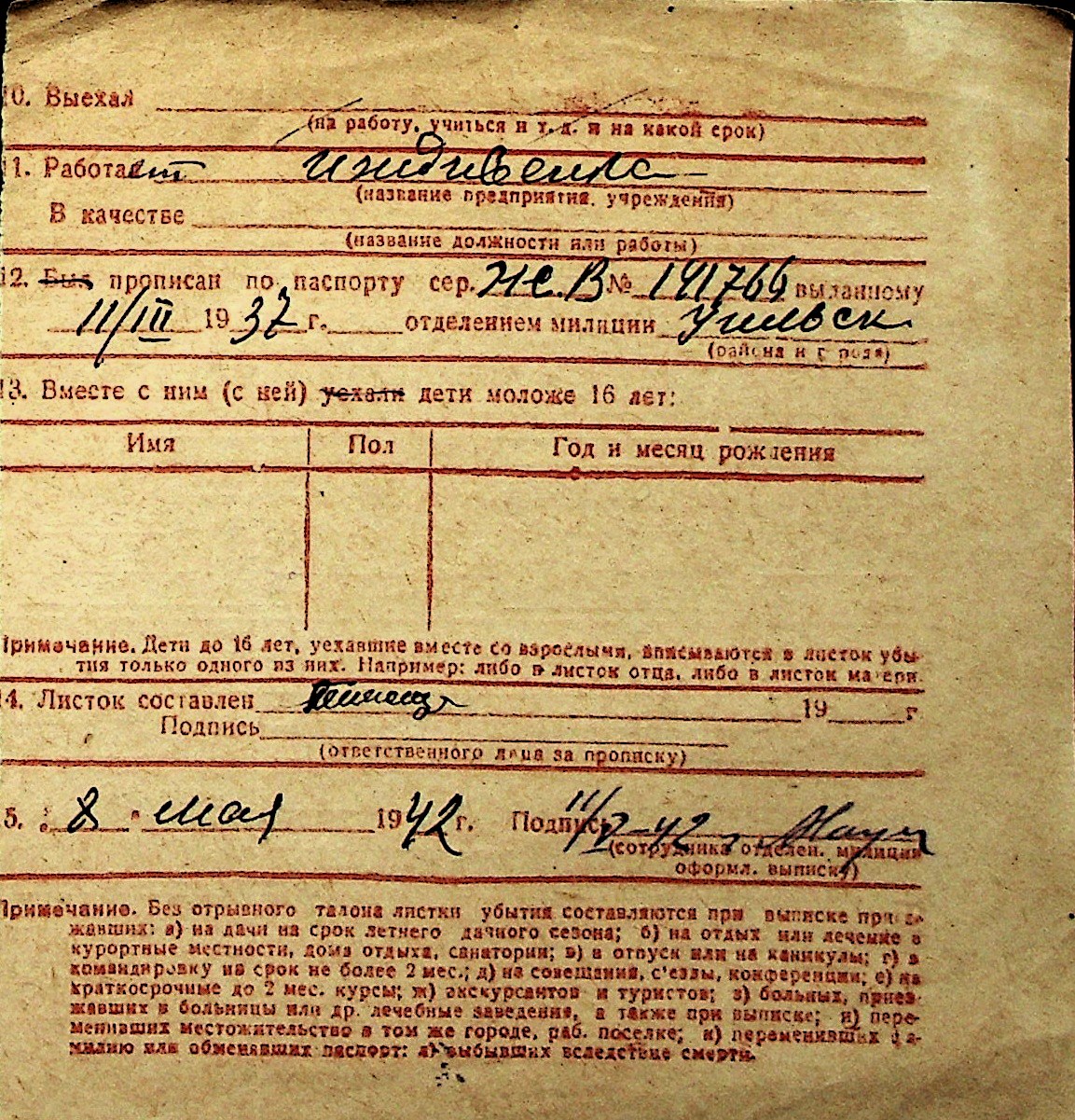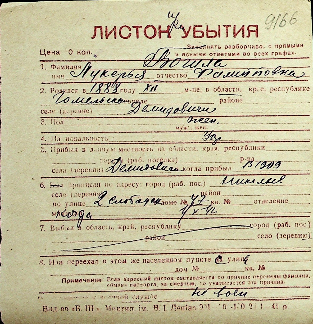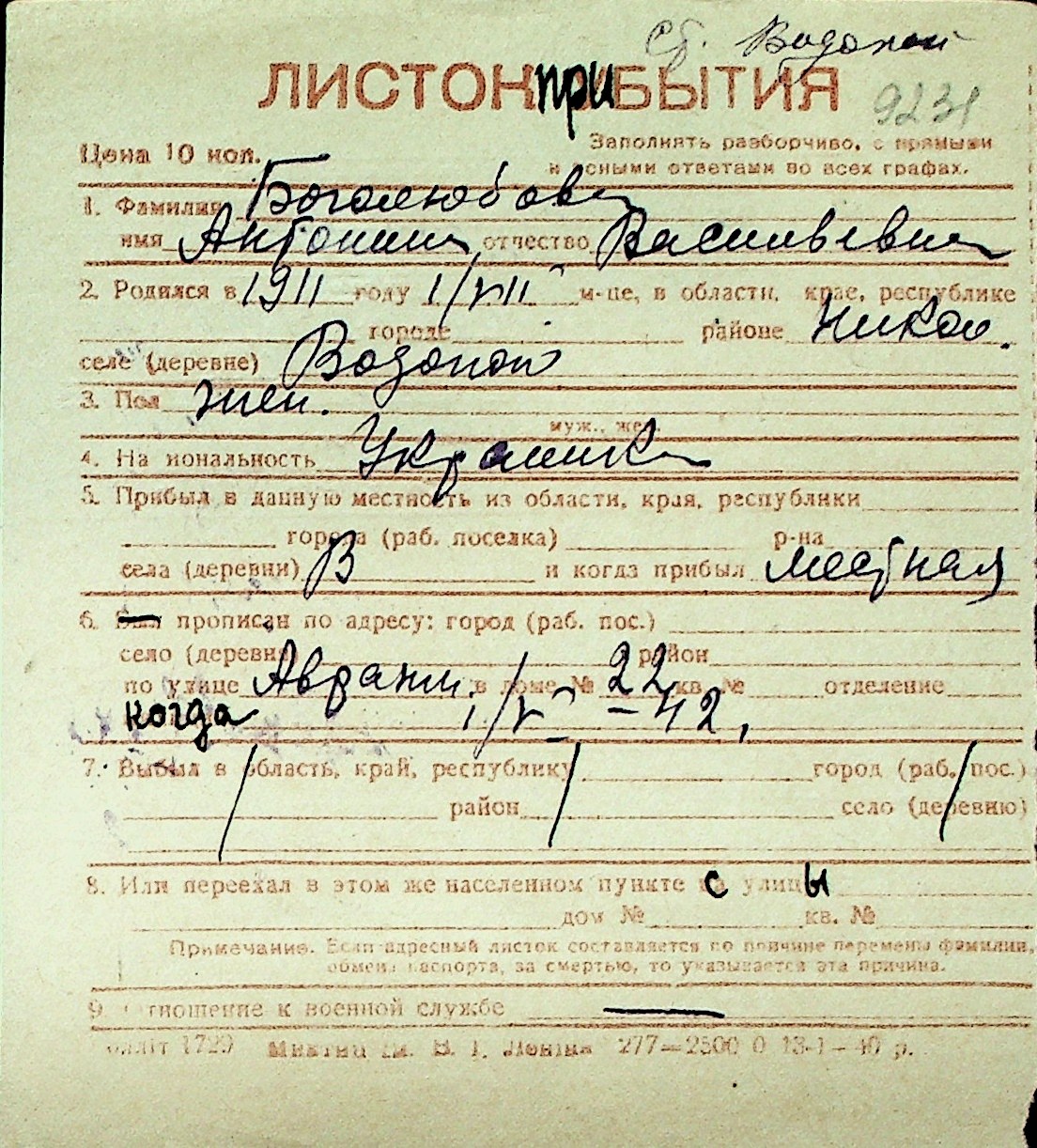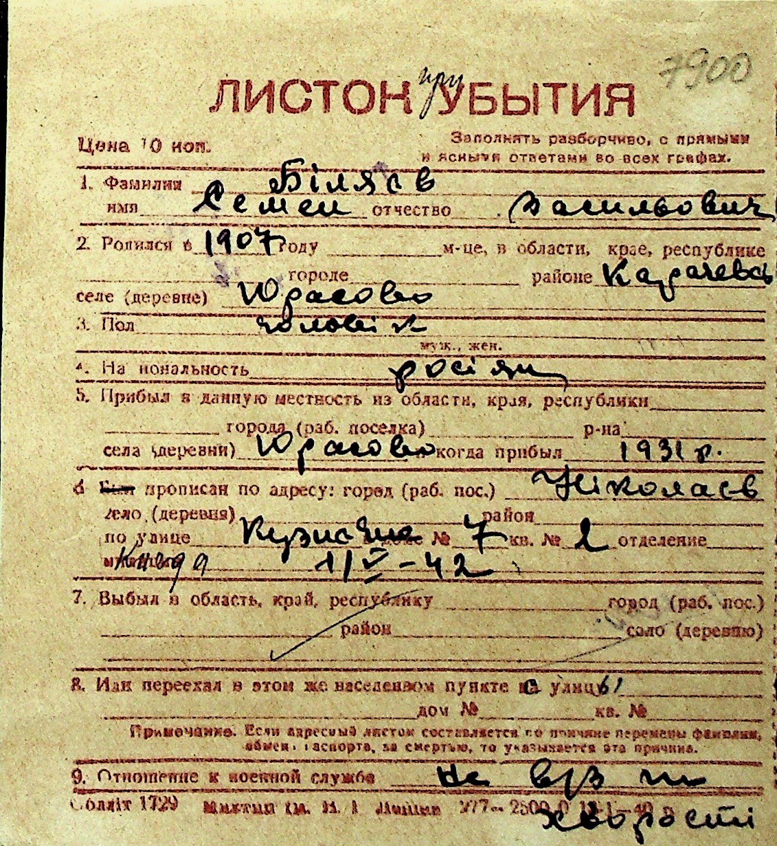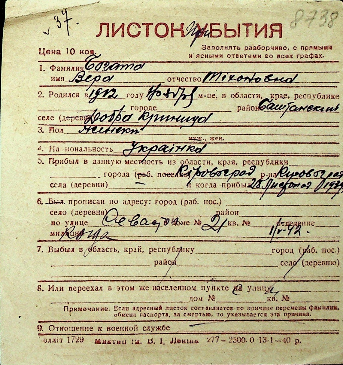 ◦ ◦ Перелік карток на осіб, які мешкали у м. Миколаїв у період окупації 1941–1944 років