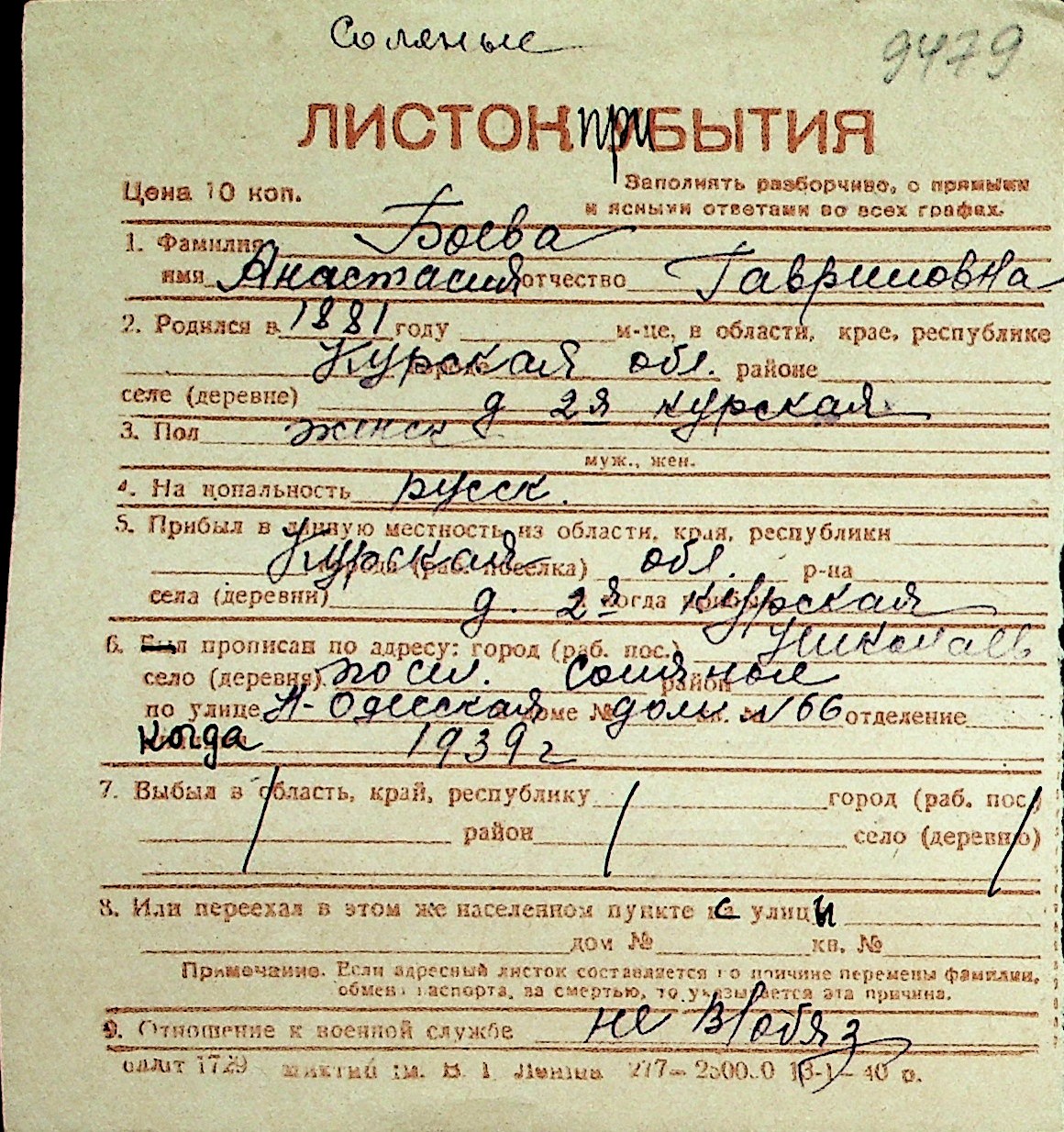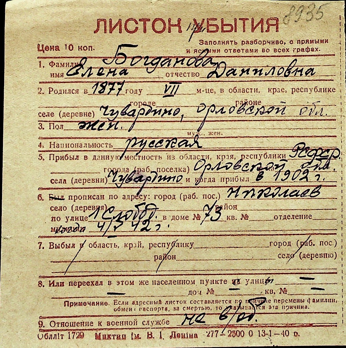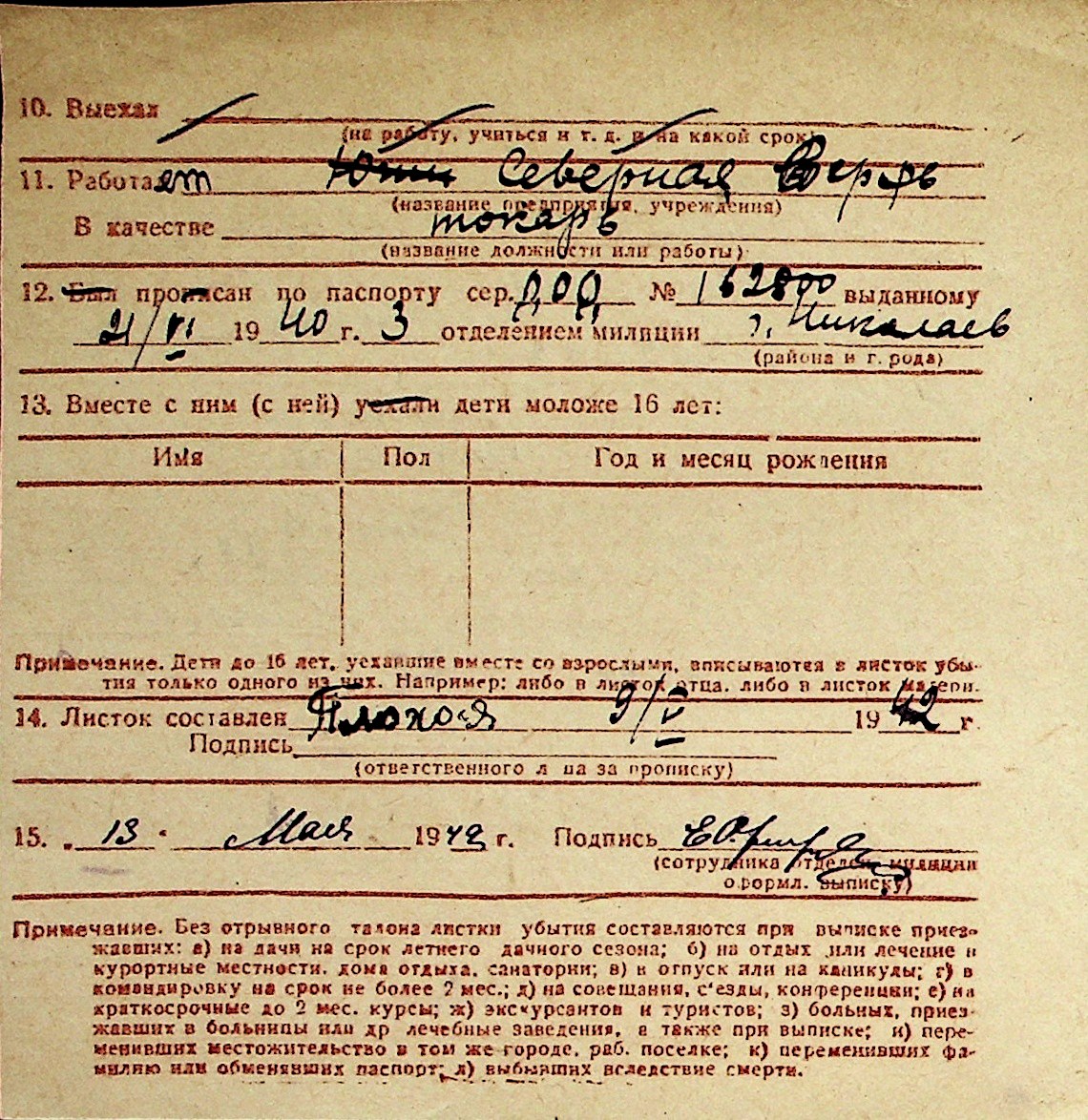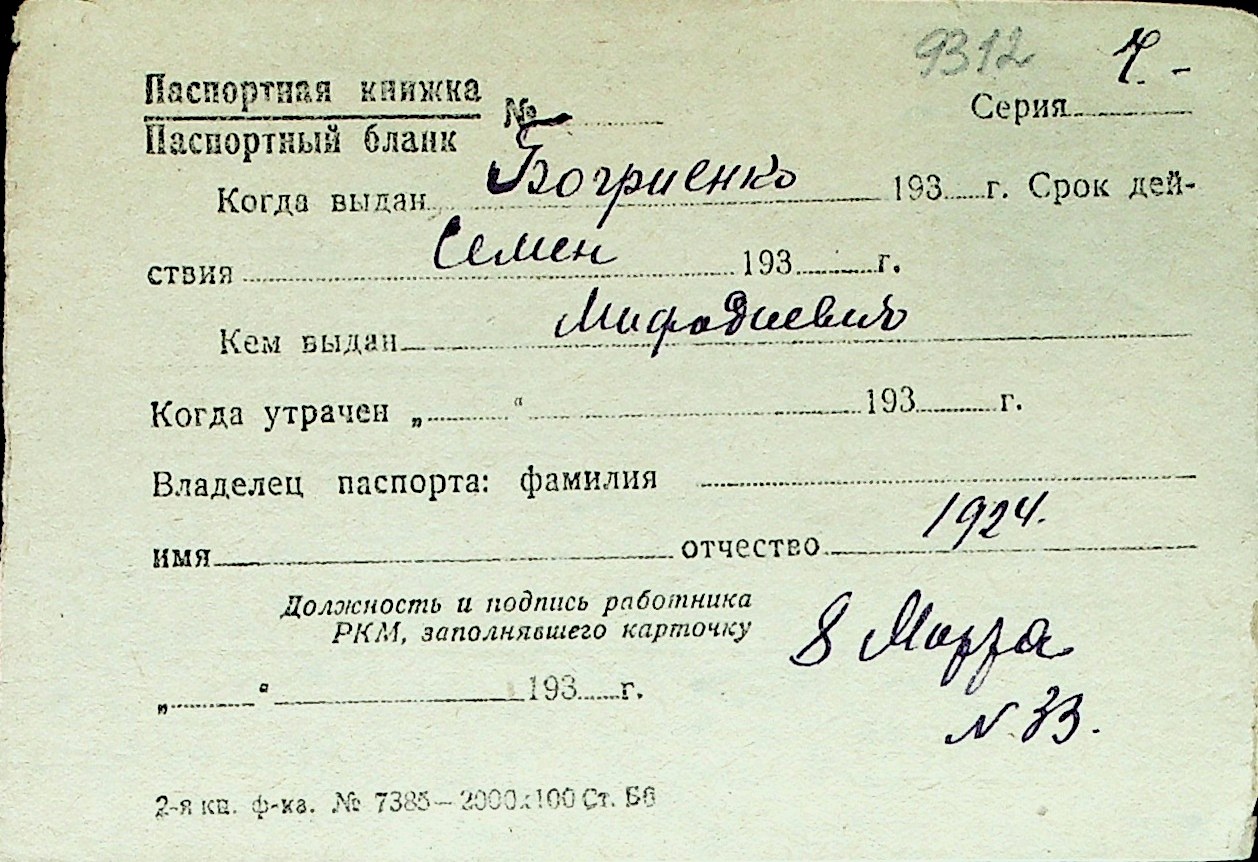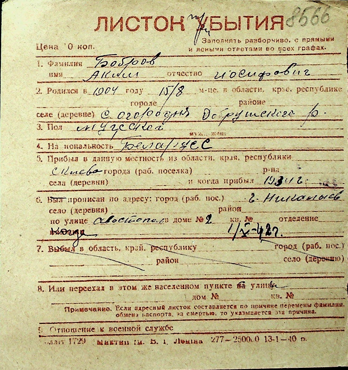◦ ◦ Перелік карток на осіб, які мешкали у м. Миколаїв у період окупації 1941–1944 років