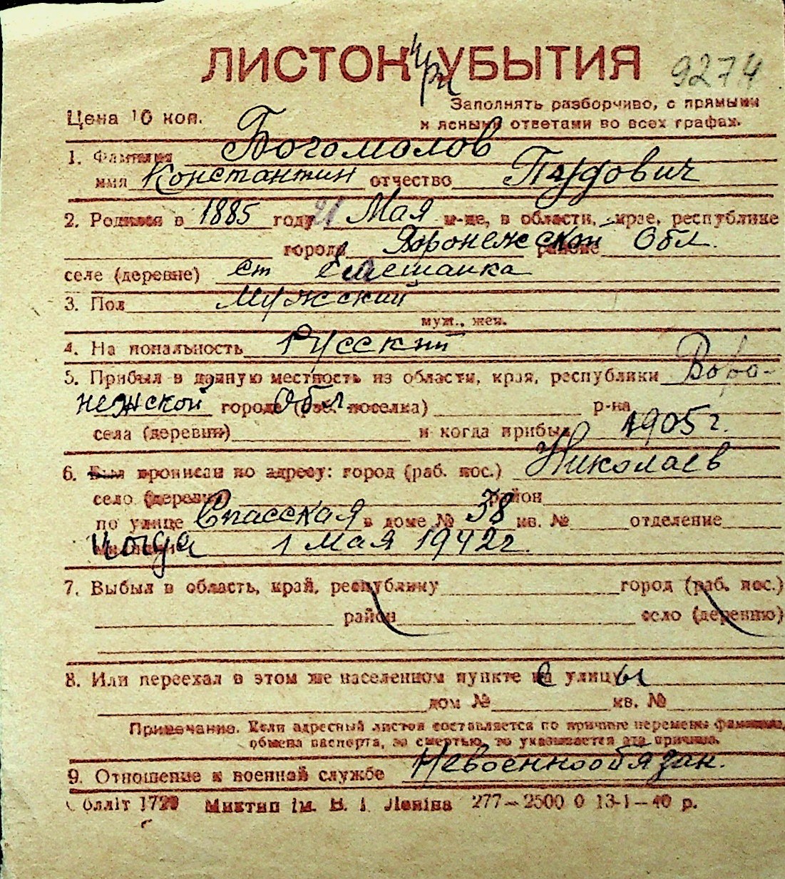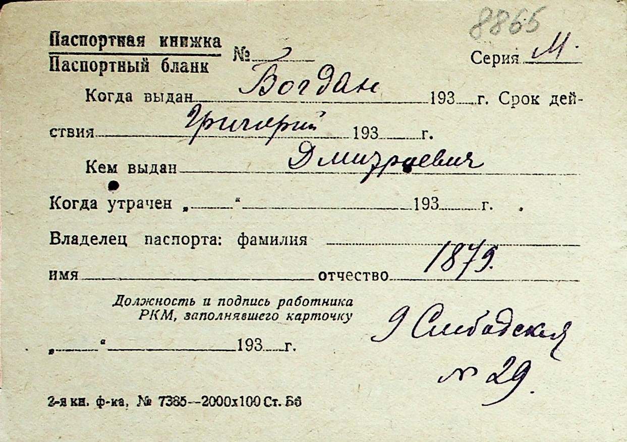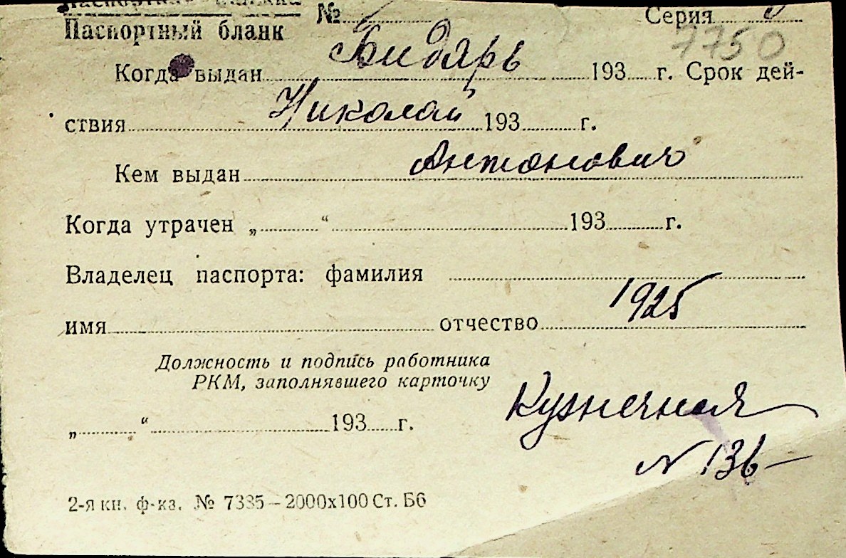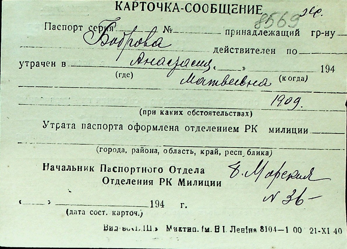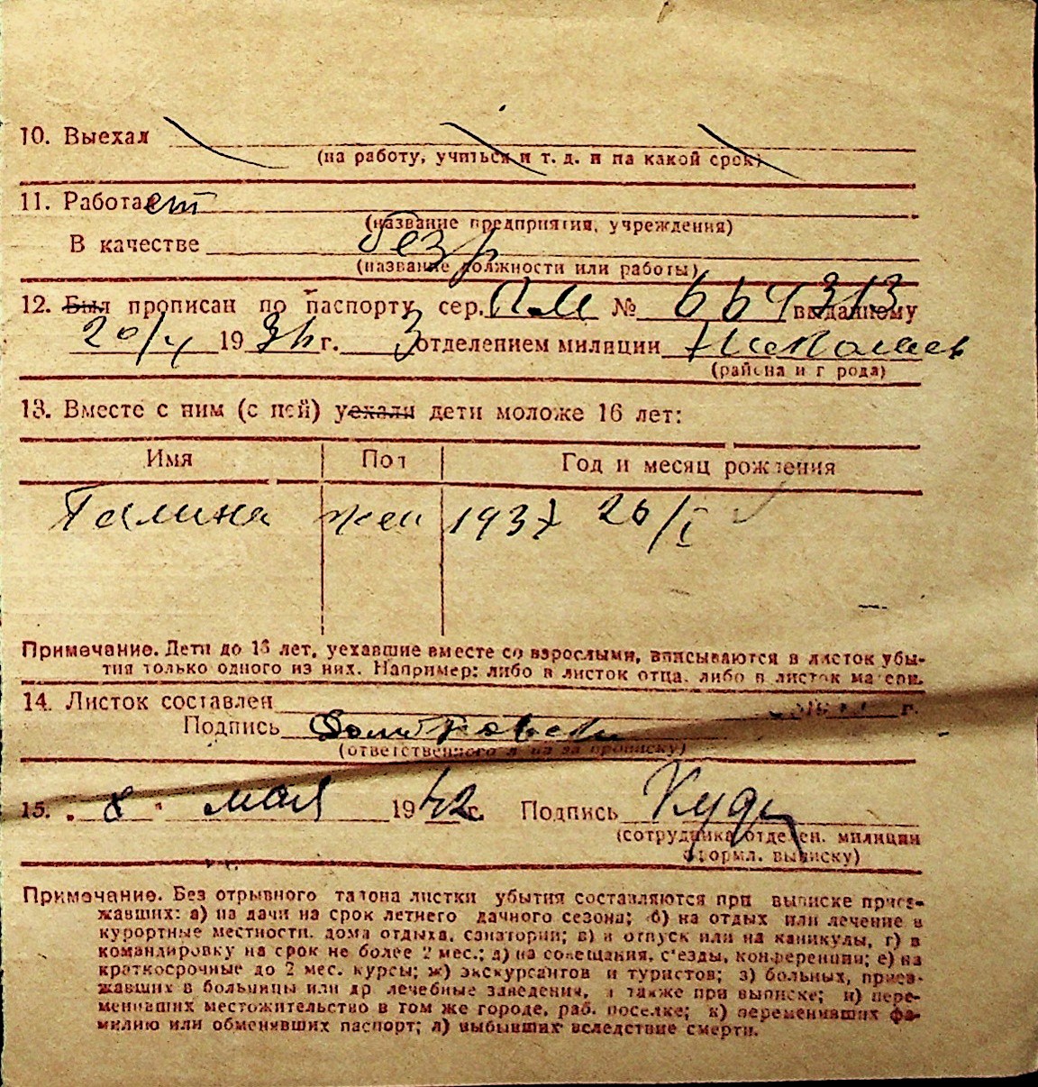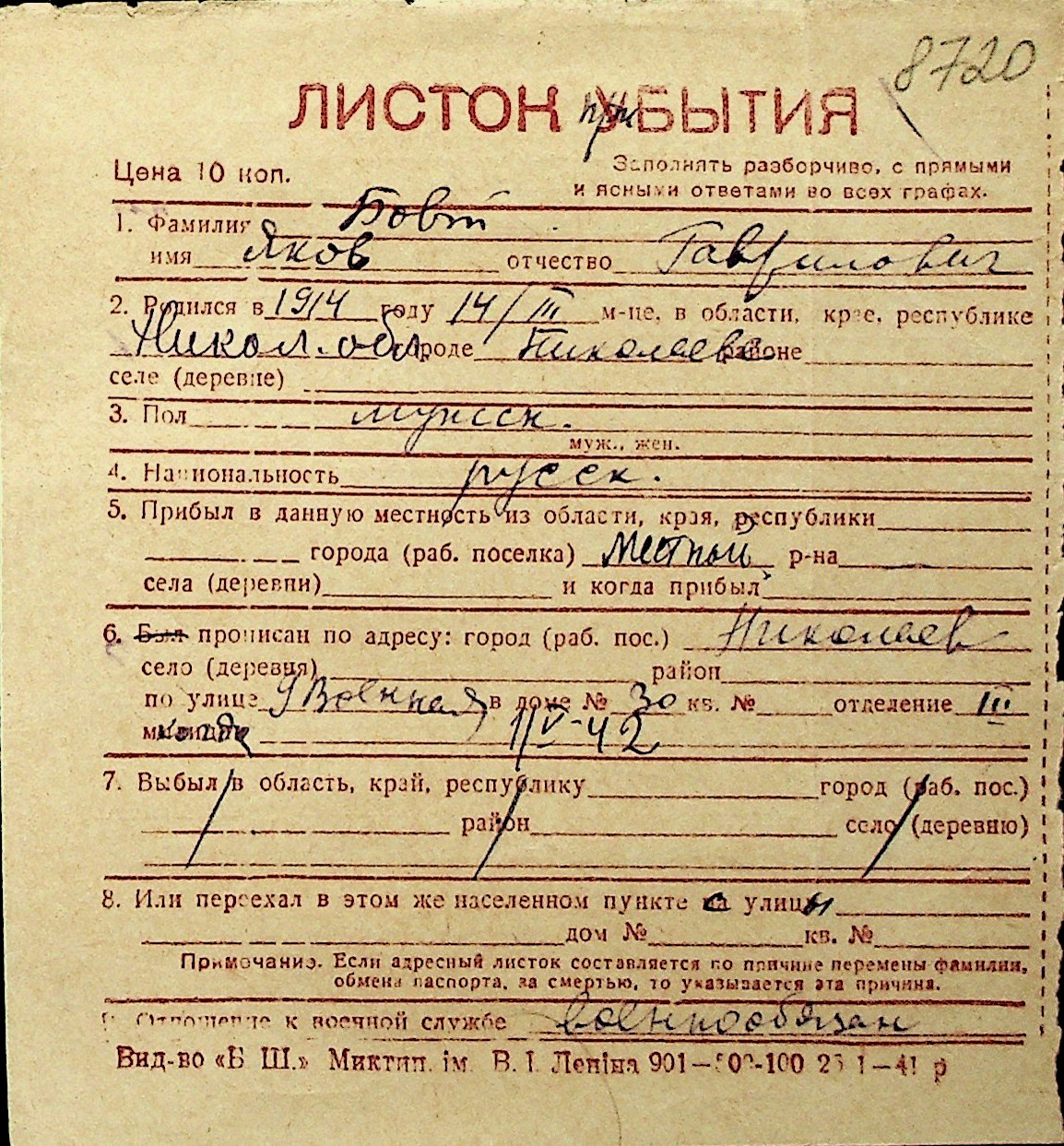 ◦ ◦ Перелік карток на осіб, які мешкали у м. Миколаїв у період окупації 1941–1944 років