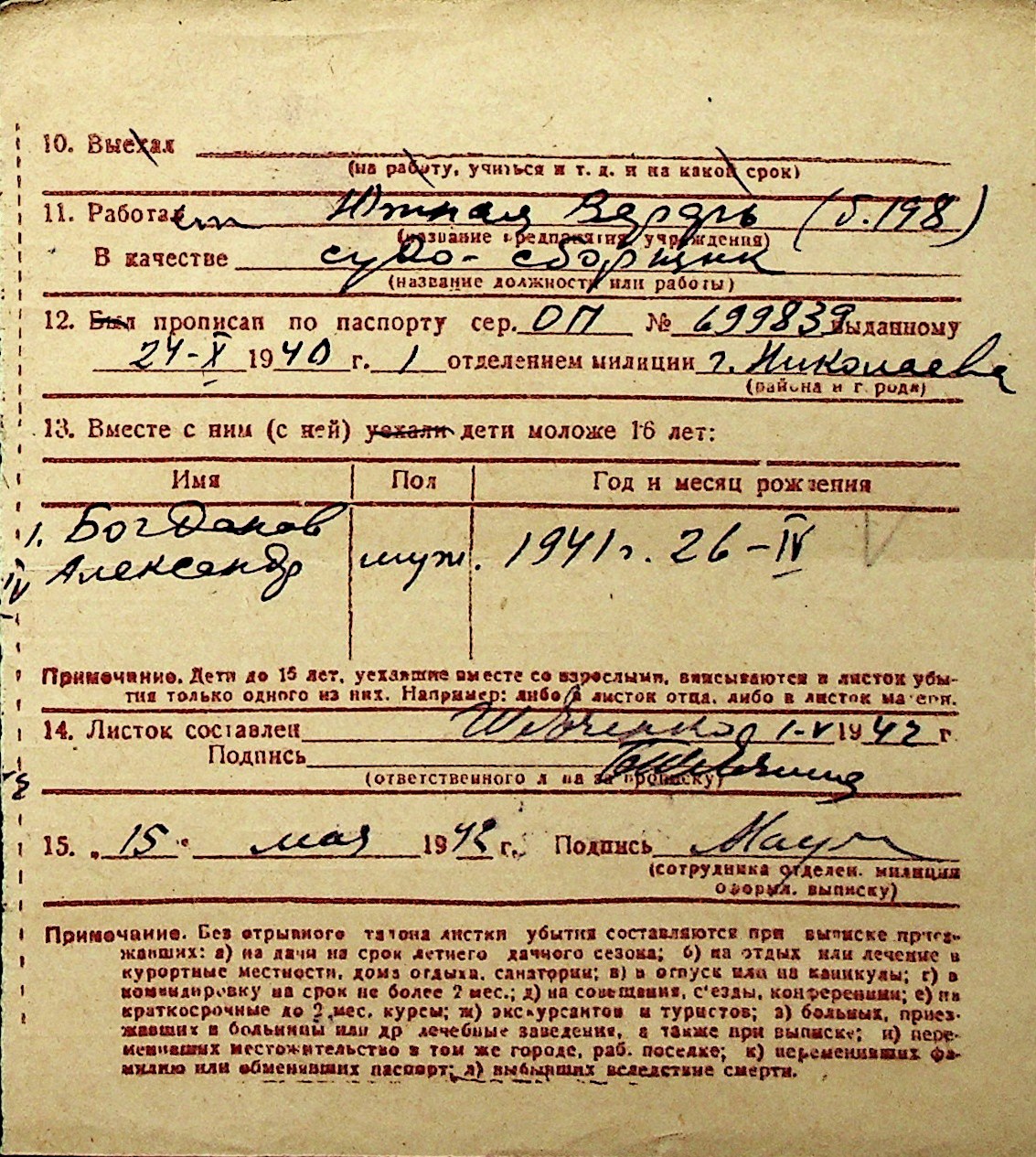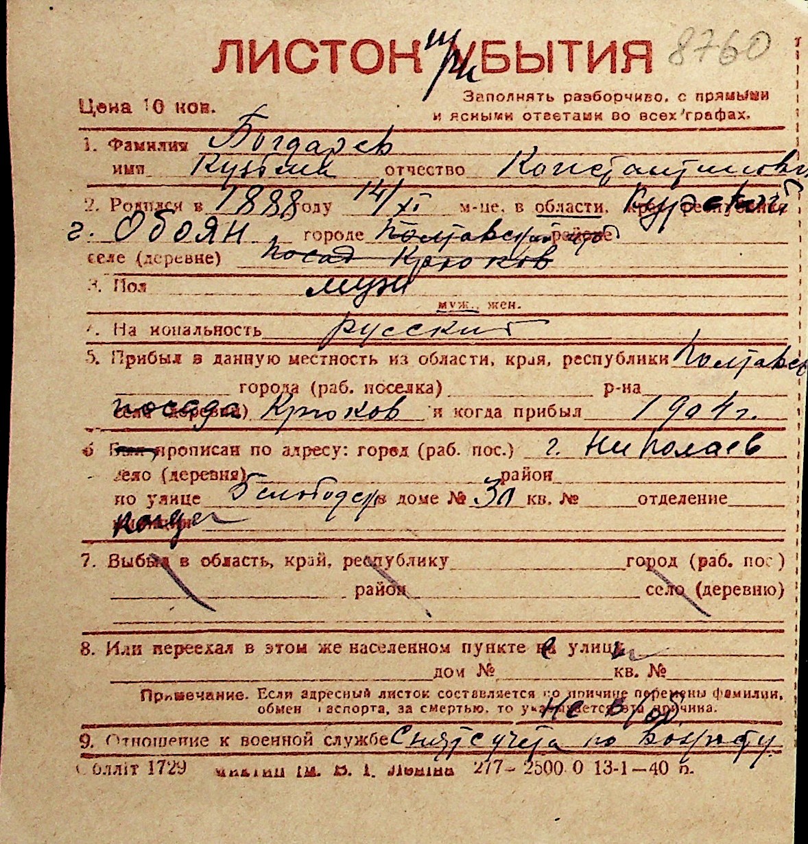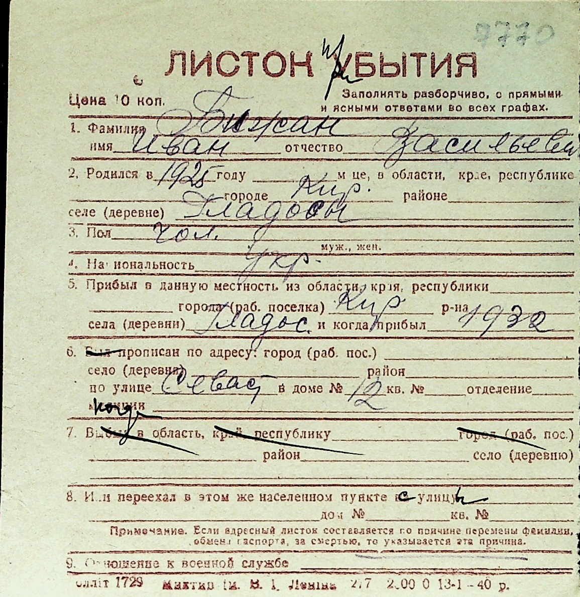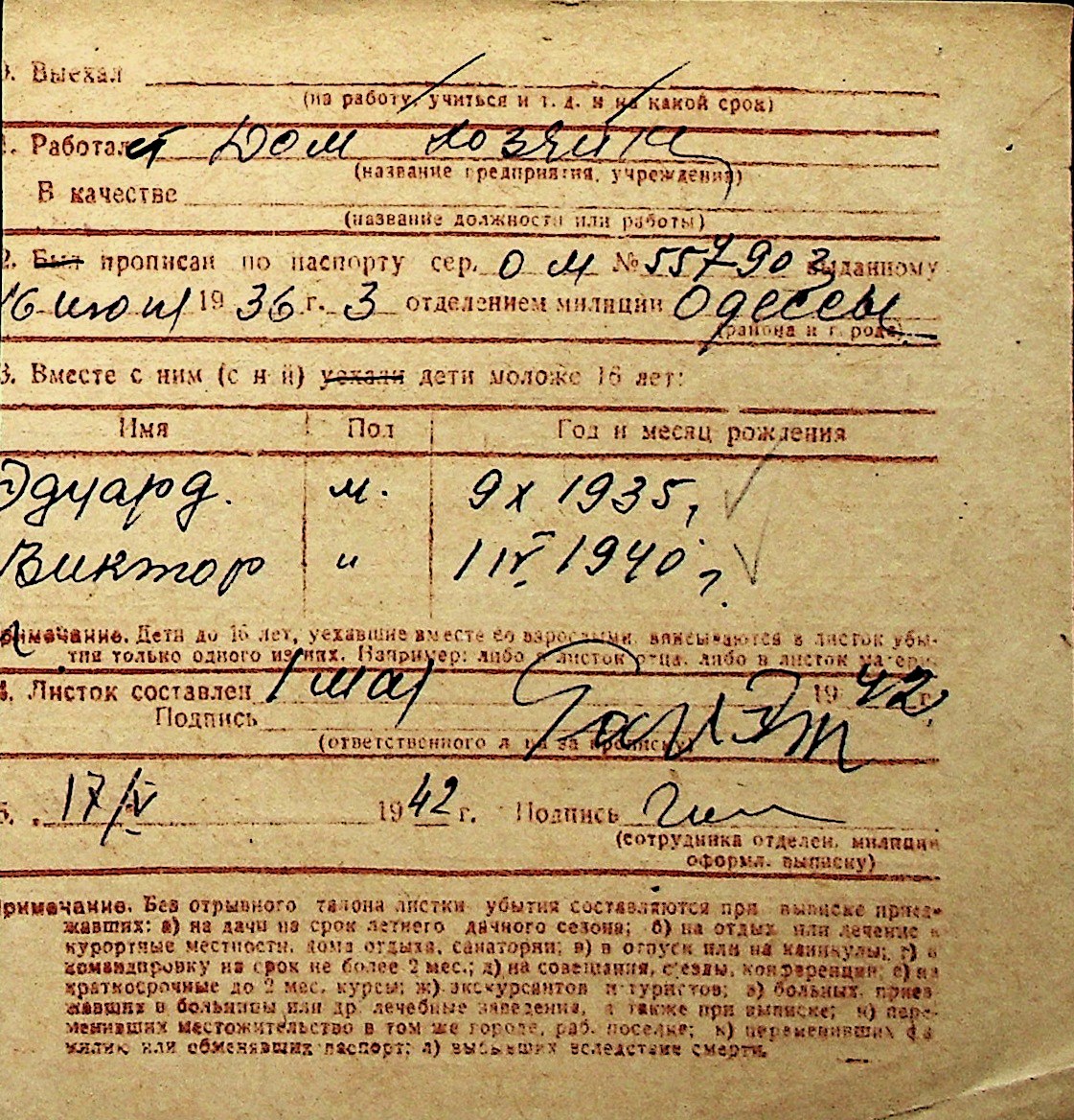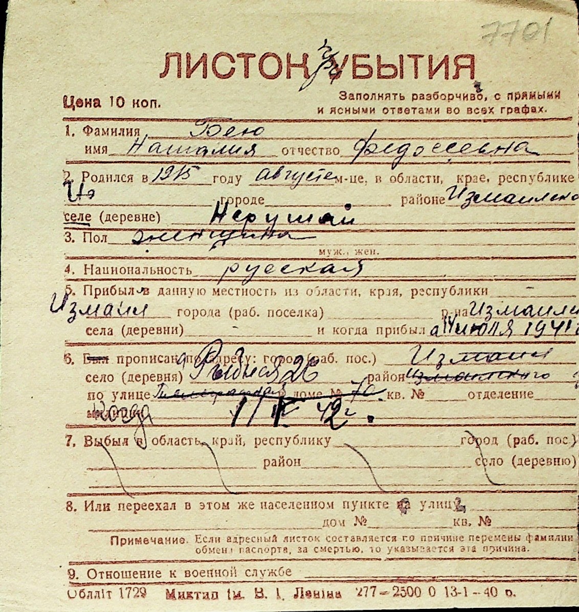 ◦ ◦ Перелік карток на осіб, які мешкали у м. Миколаїв у період окупації 1941–1944 років