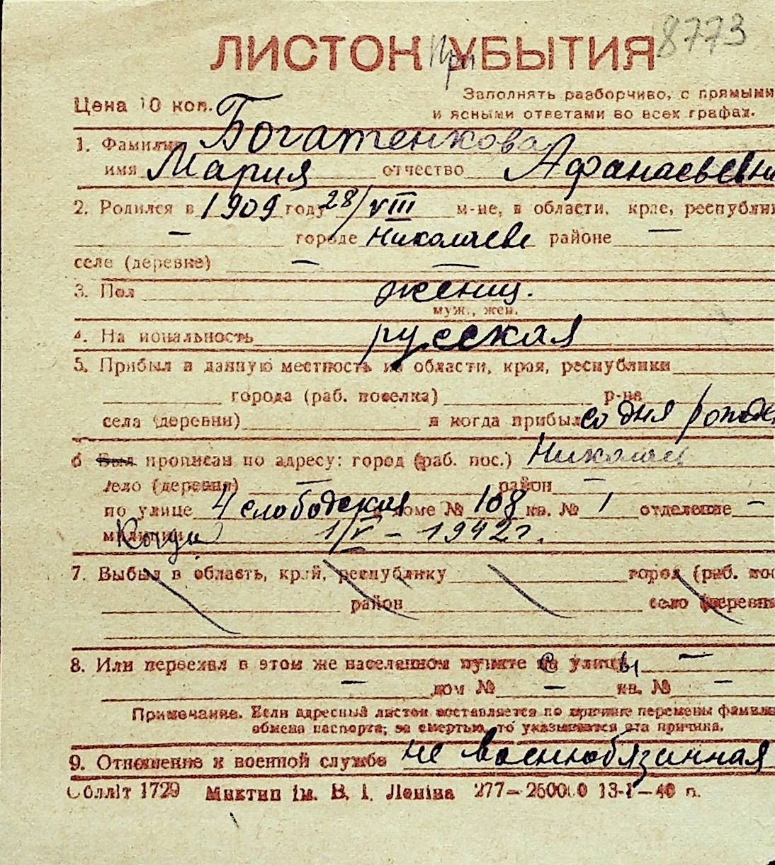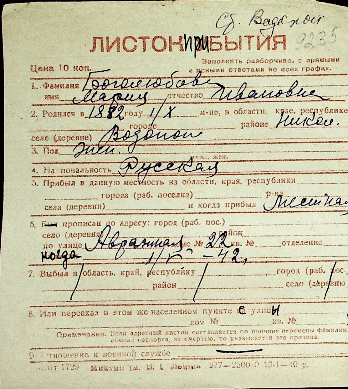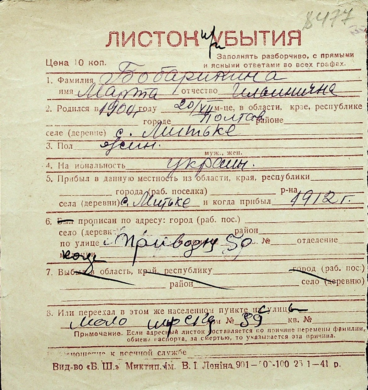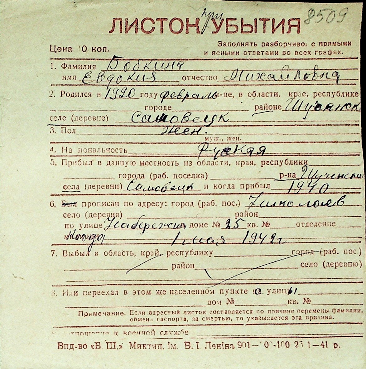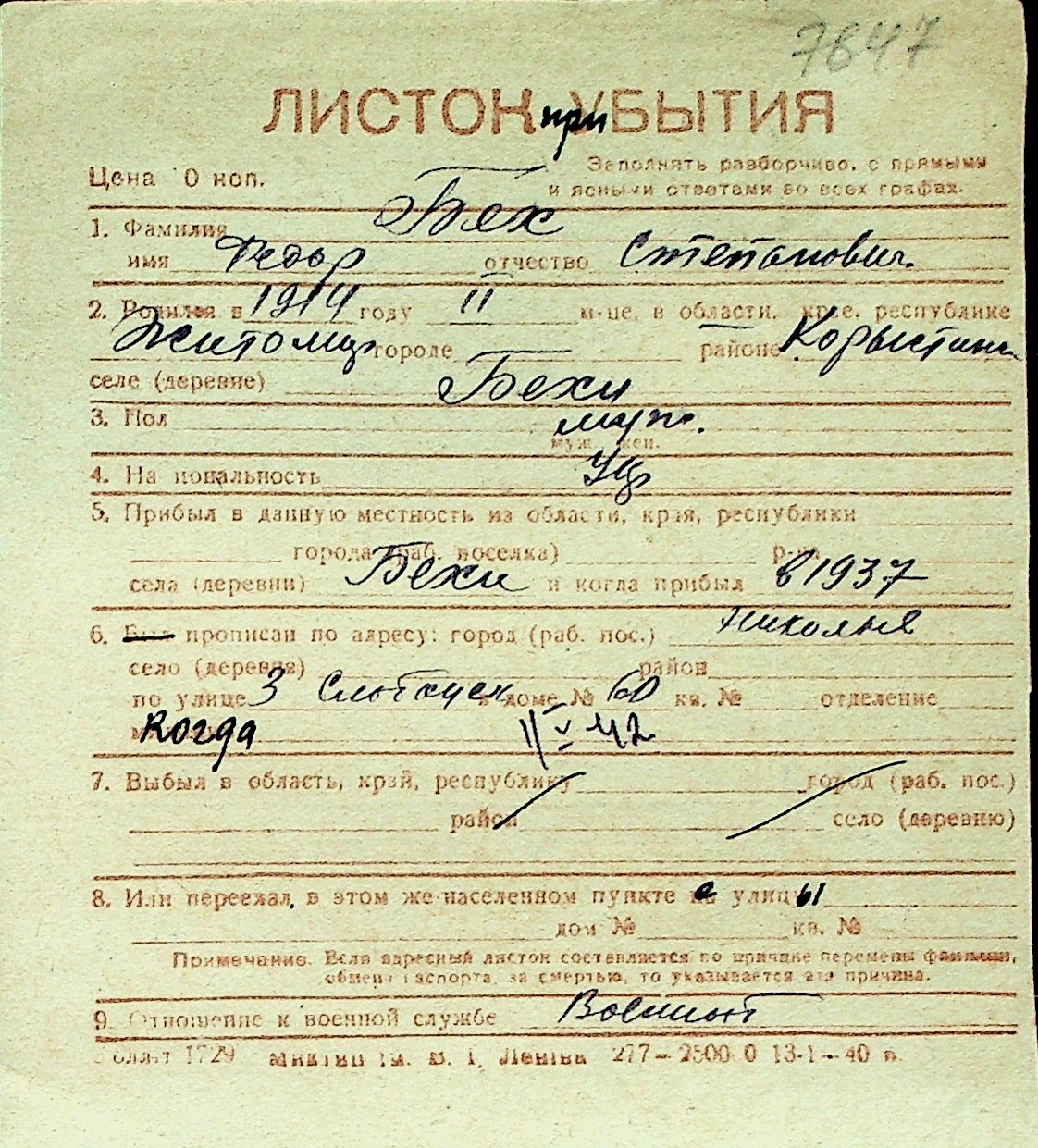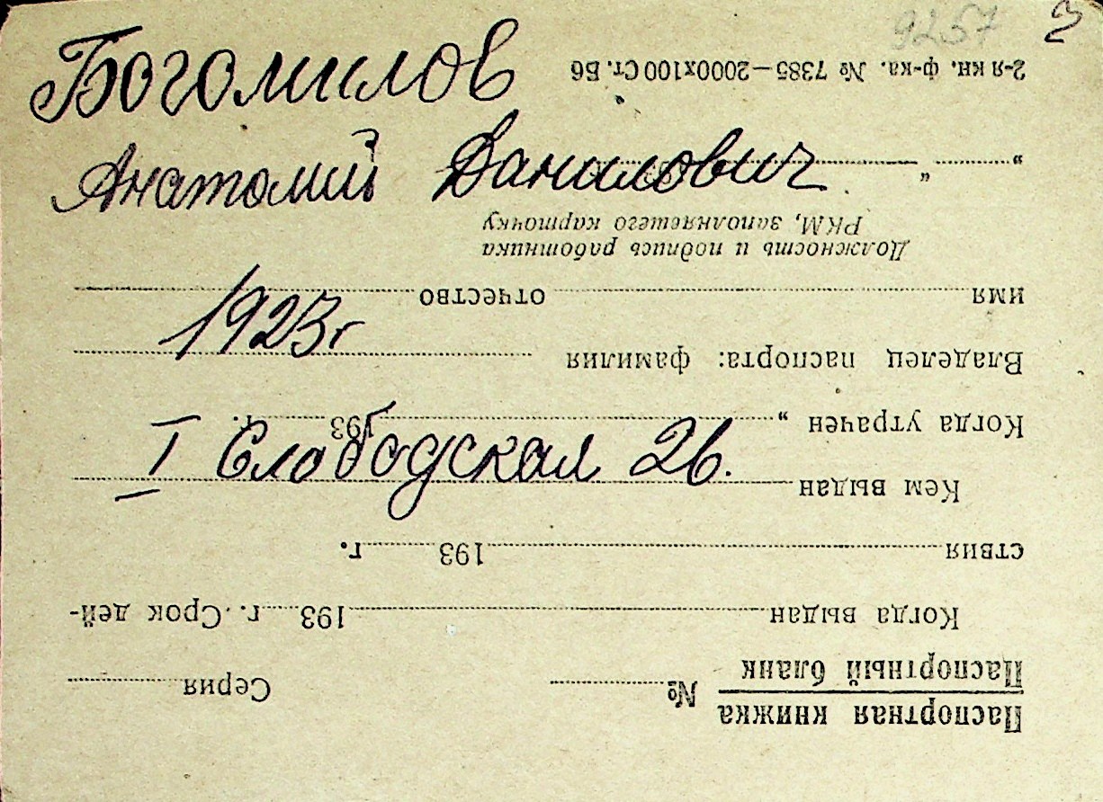 ◦ ◦ Перелік карток на осіб, які мешкали у м. Миколаїв у період окупації 1941–1944 років