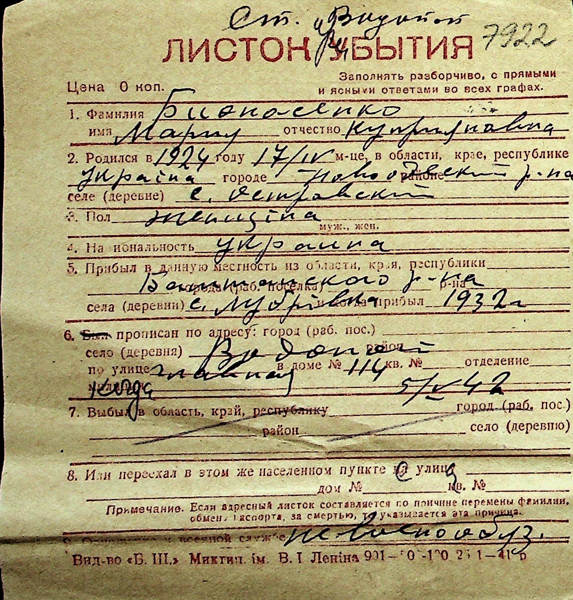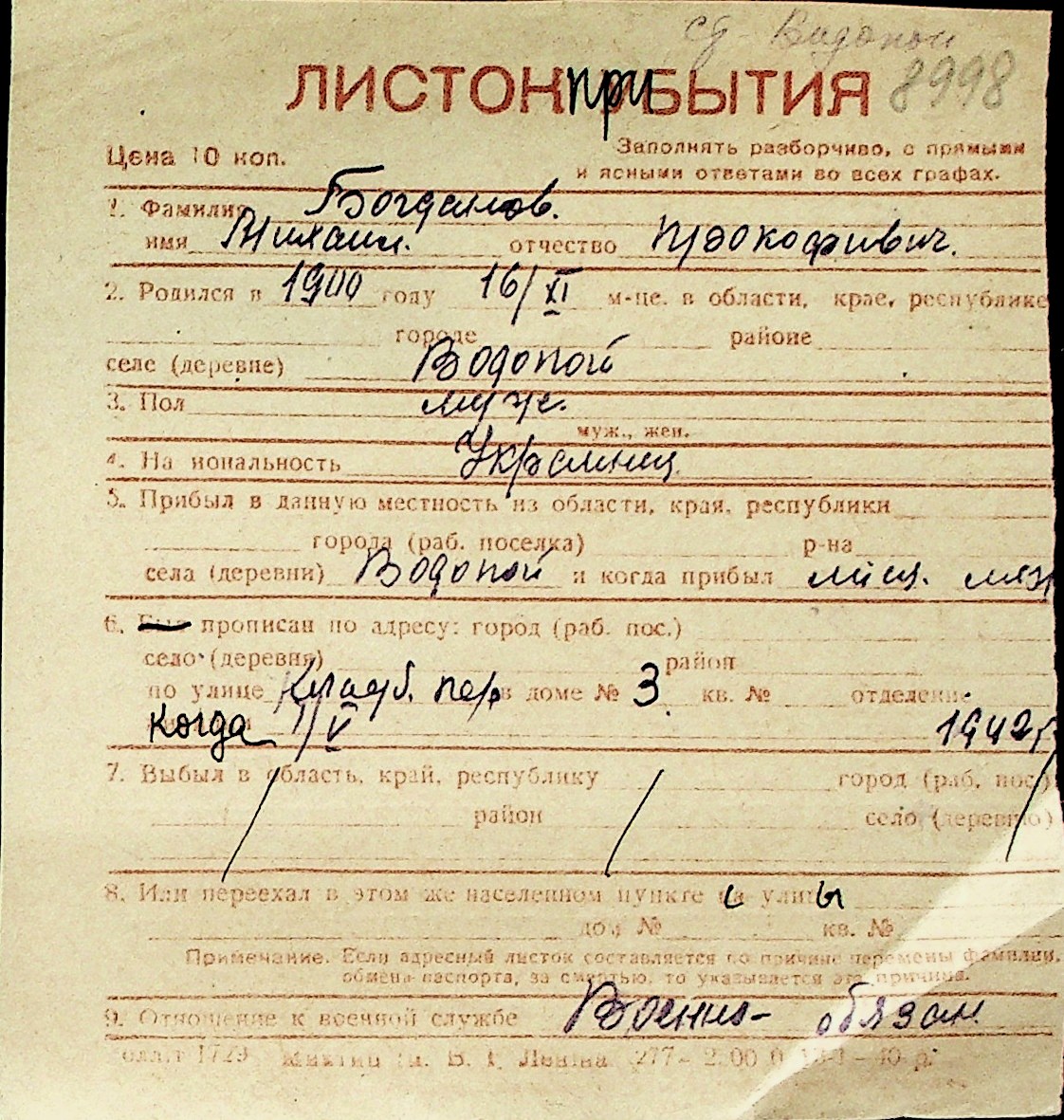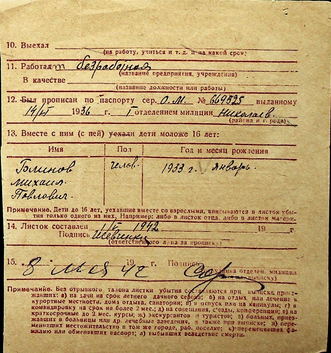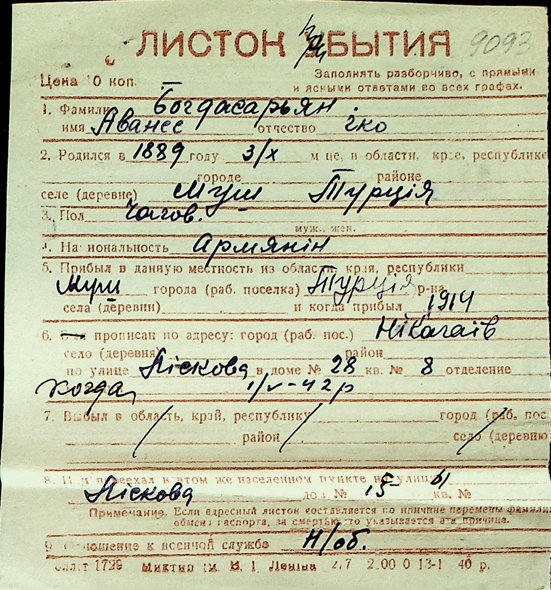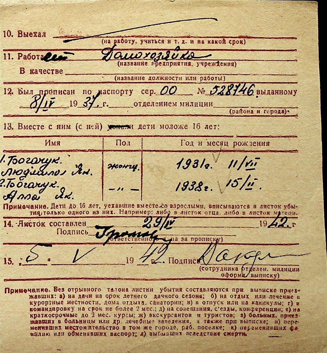 ◦ ◦ Перелік карток на осіб, які мешкали у м. Миколаїв у період окупації 1941–1944 років