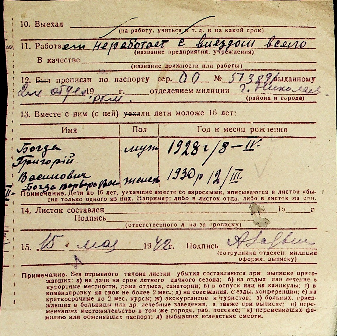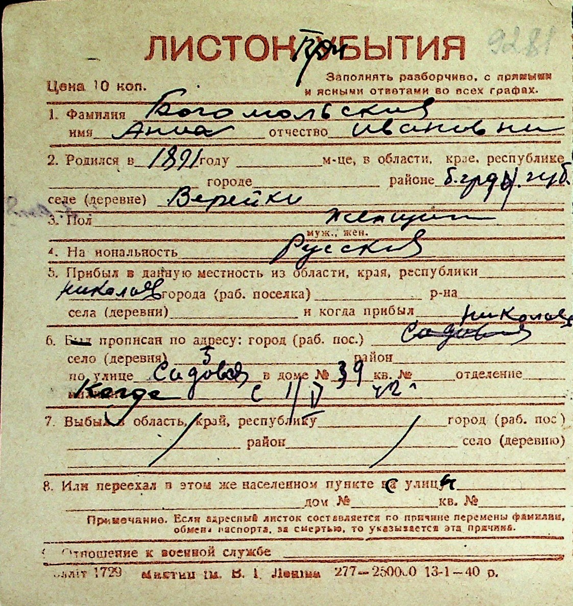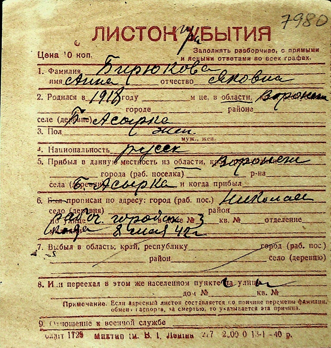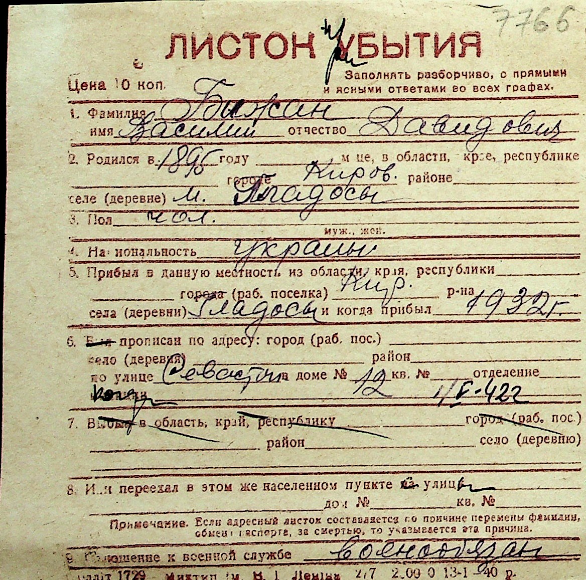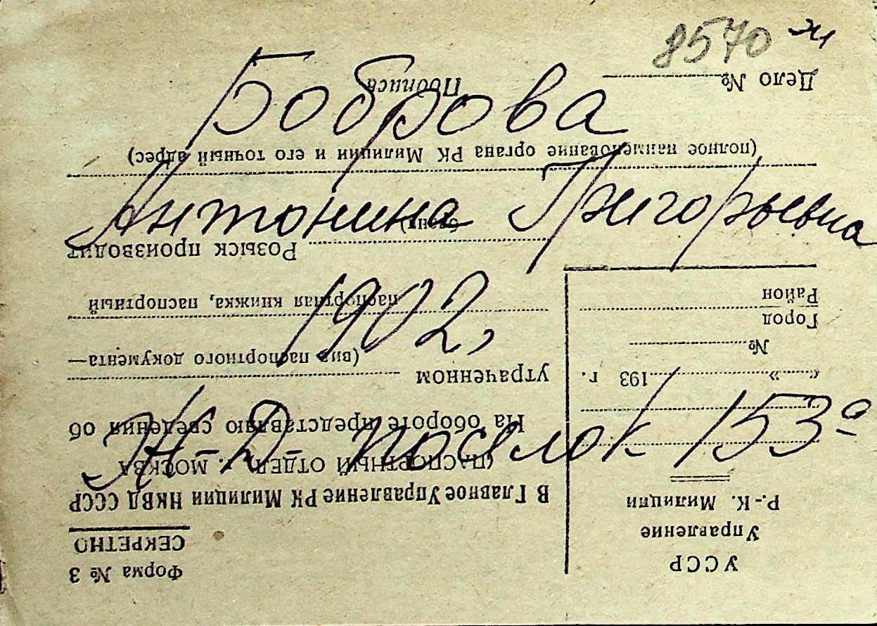 ◦ ◦ Перелік карток на осіб, які мешкали у м. Миколаїв у період окупації 1941–1944 років