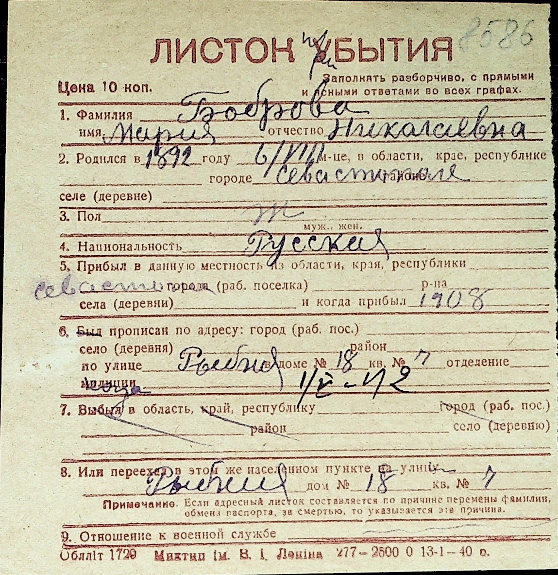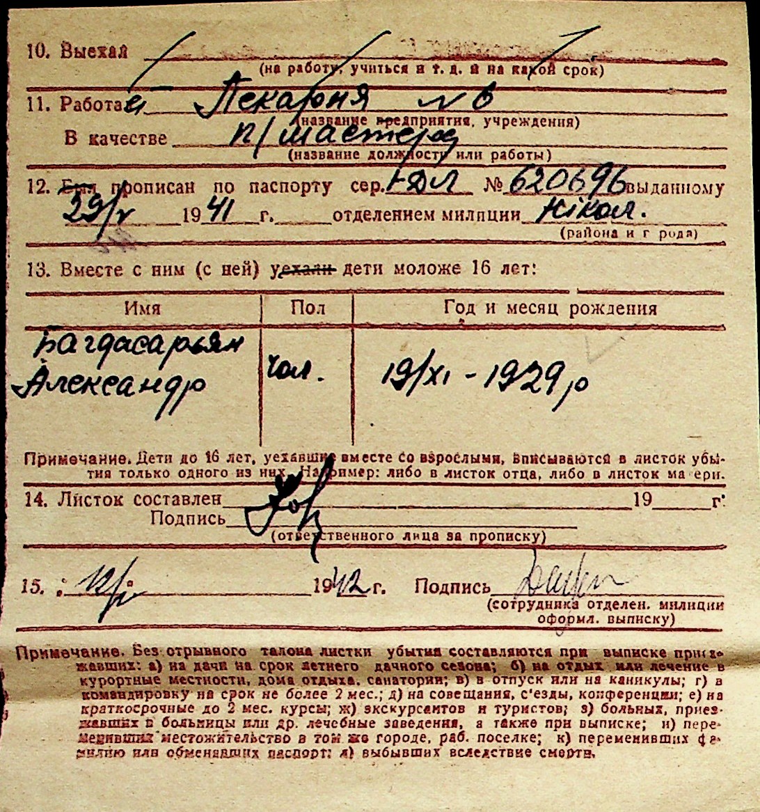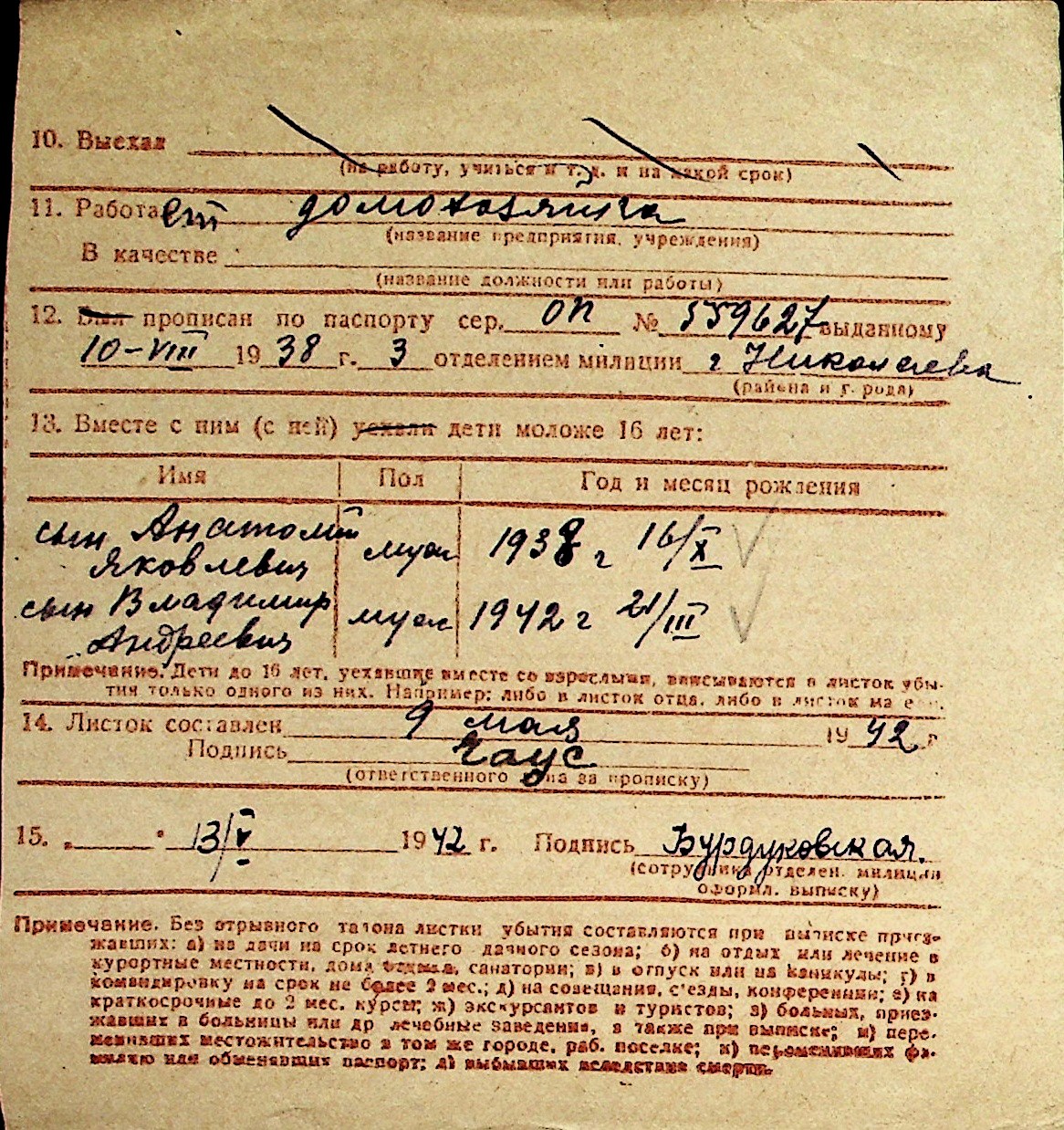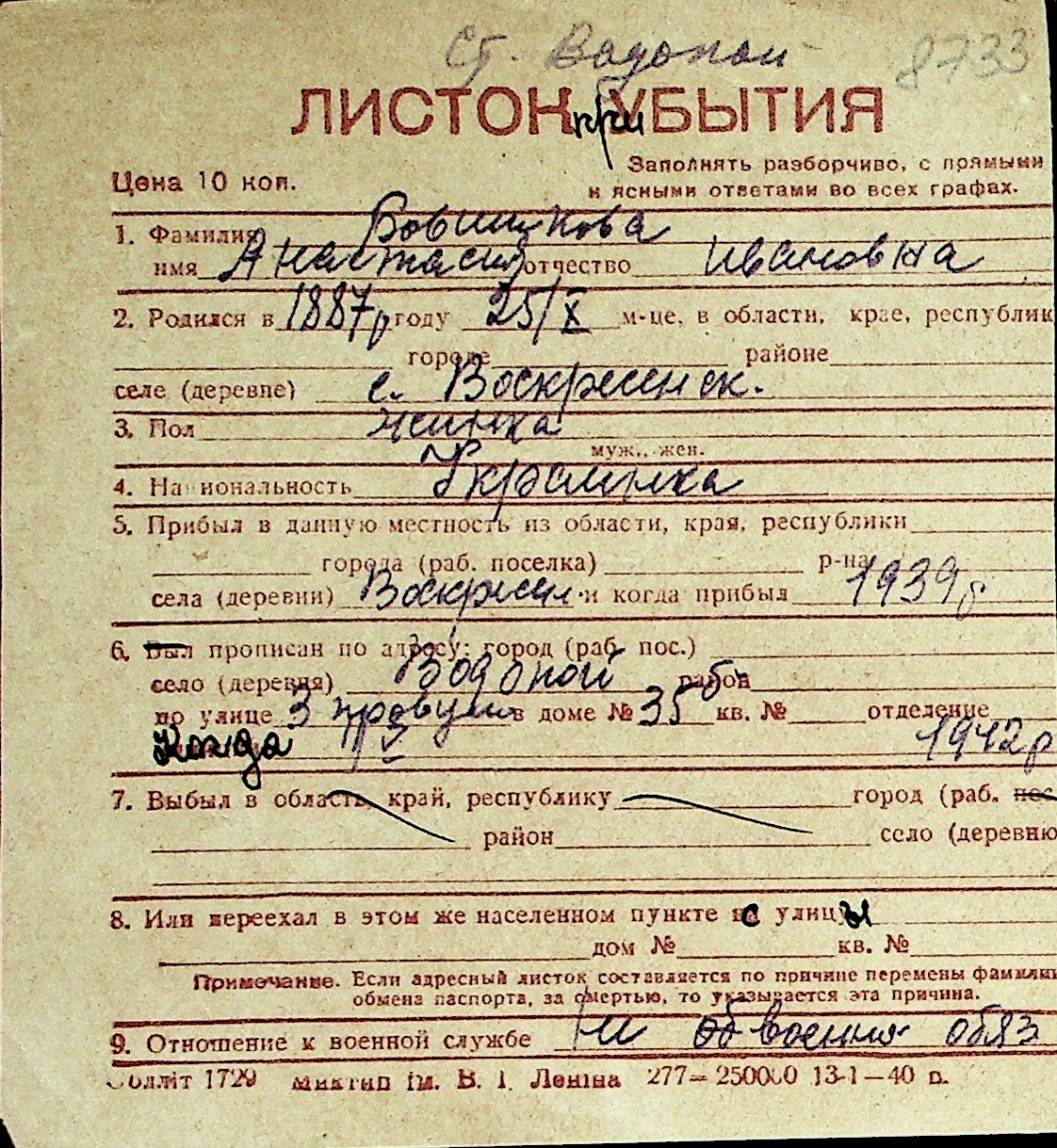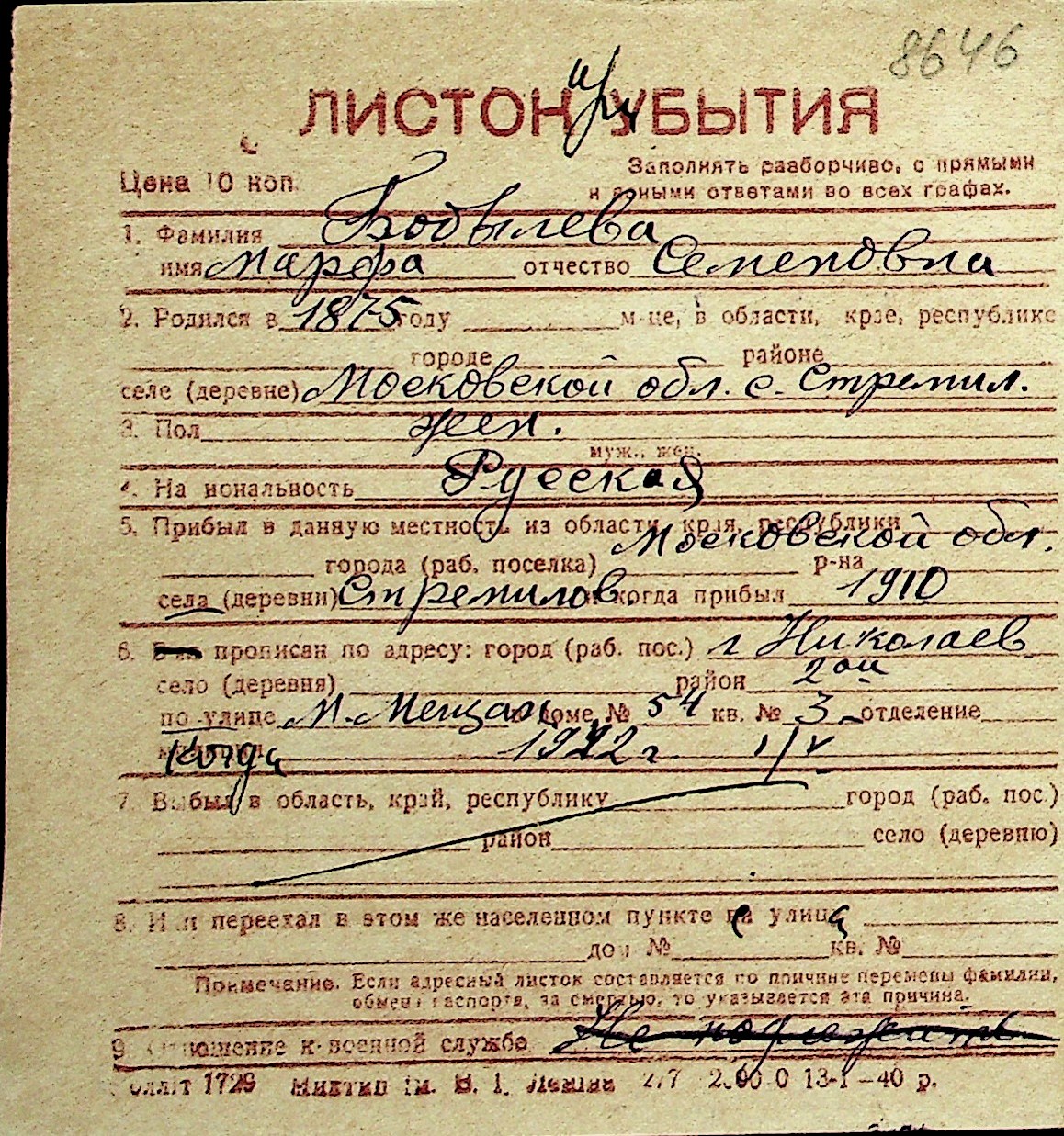 ◦ ◦ Перелік карток на осіб, які мешкали у м. Миколаїв у період окупації 1941–1944 років