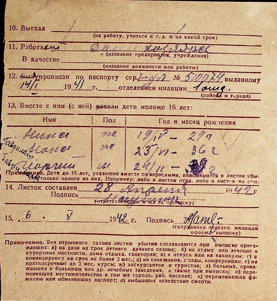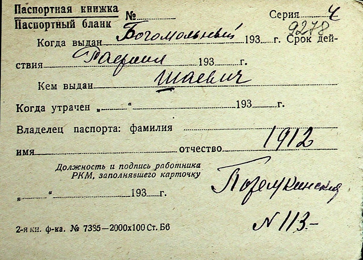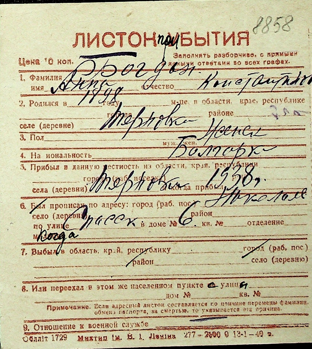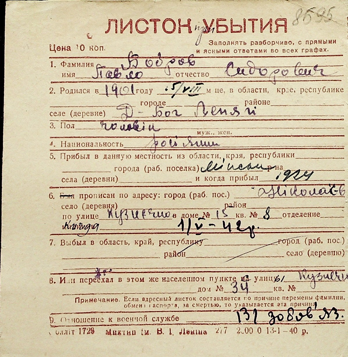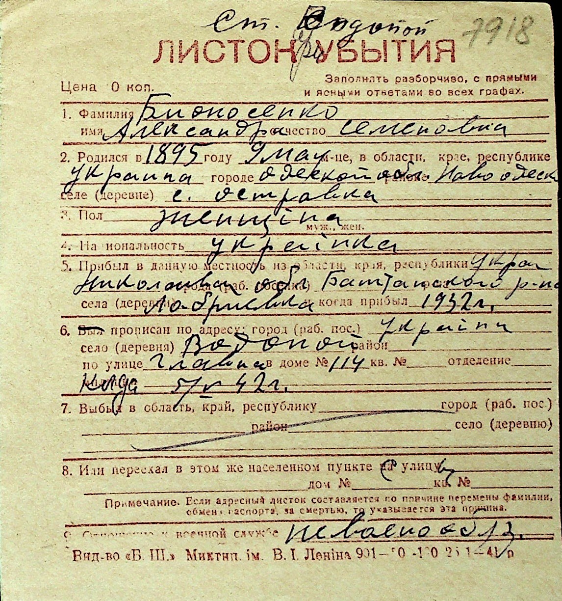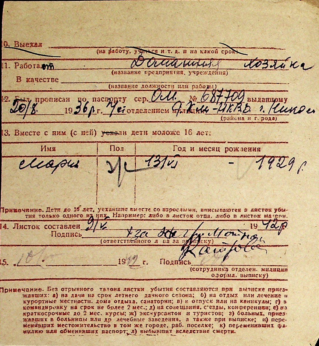 ◦ ◦ Перелік карток на осіб, які мешкали у м. Миколаїв у період окупації 1941–1944 років