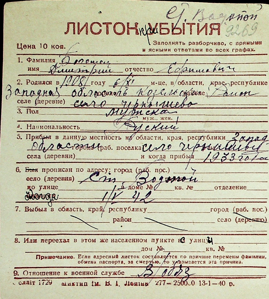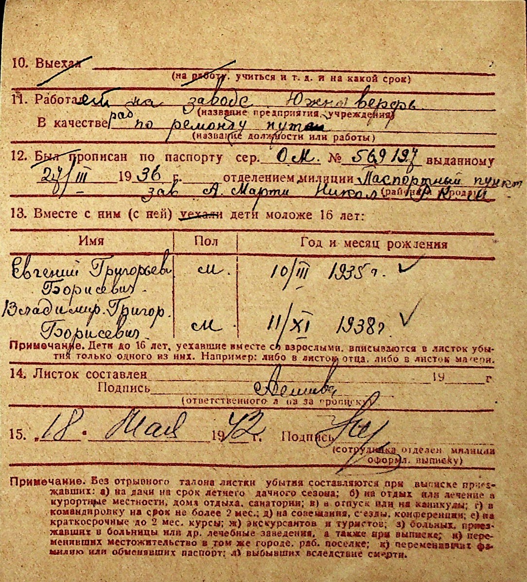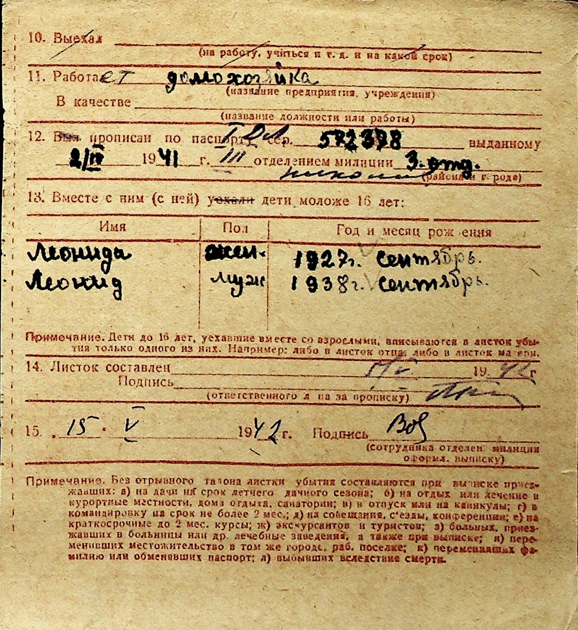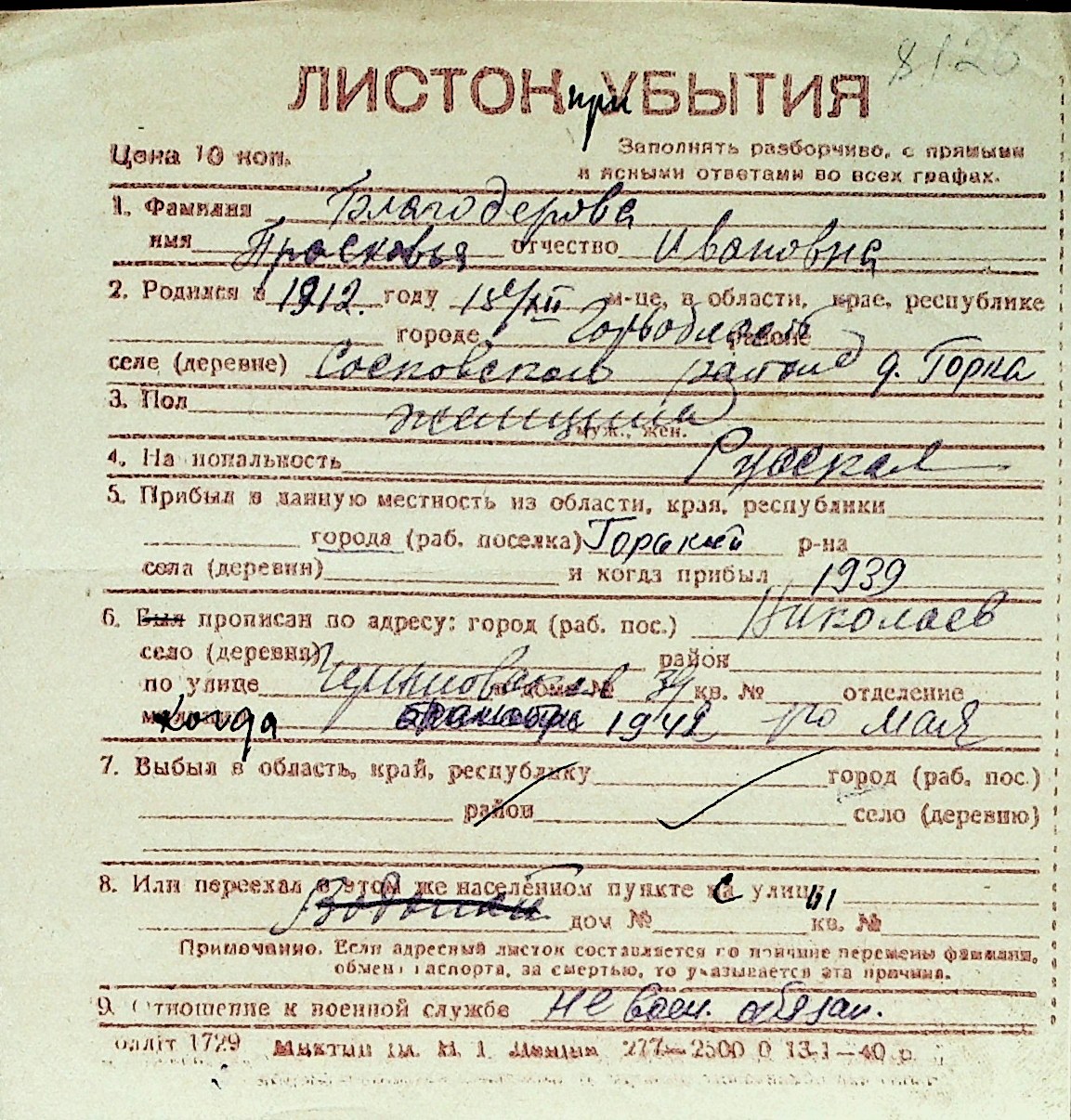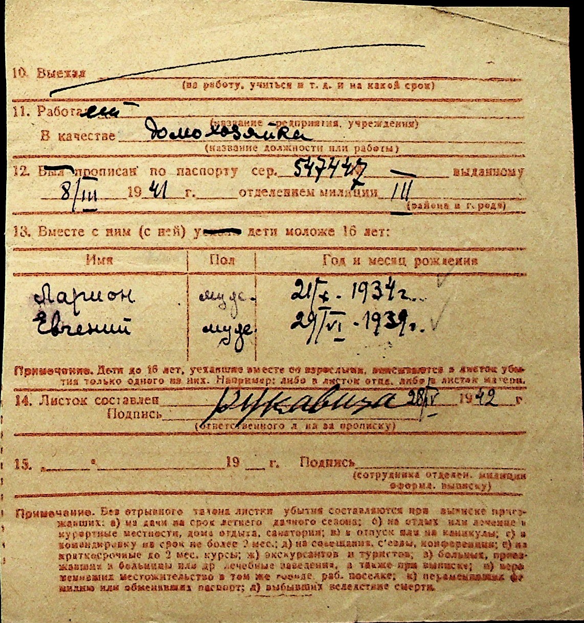 ◦ ◦ Перелік карток на осіб, які мешкали у м. Миколаїв у період окупації 1941–1944 років
