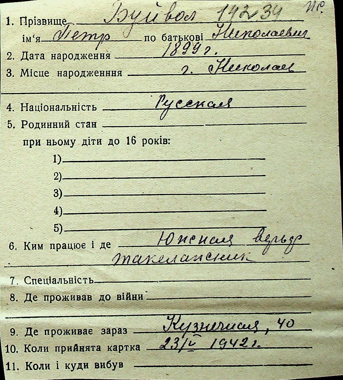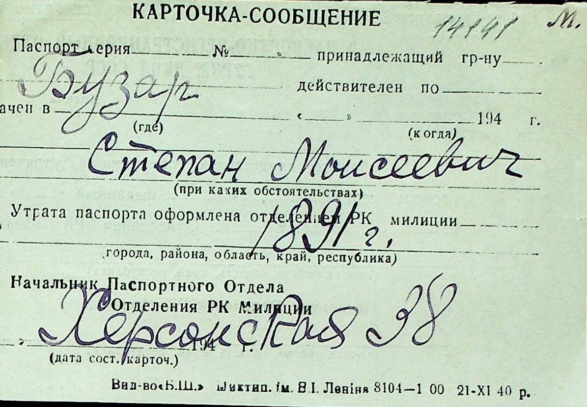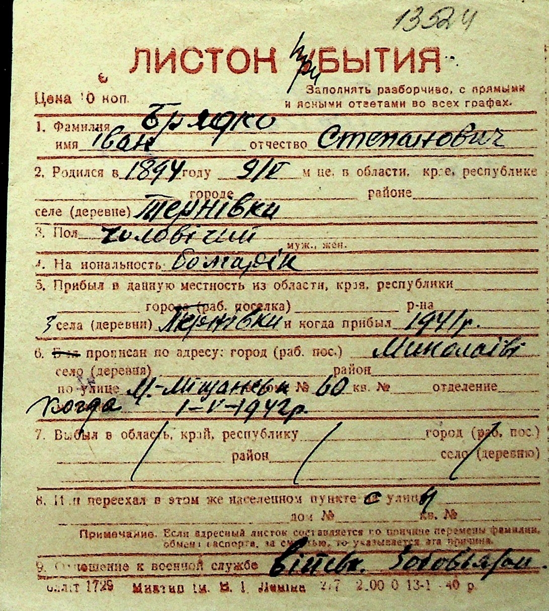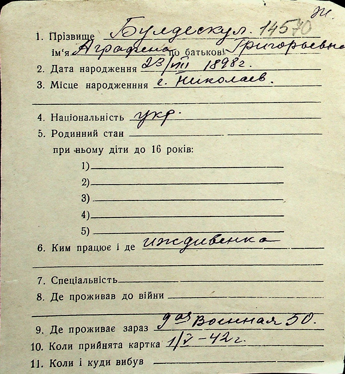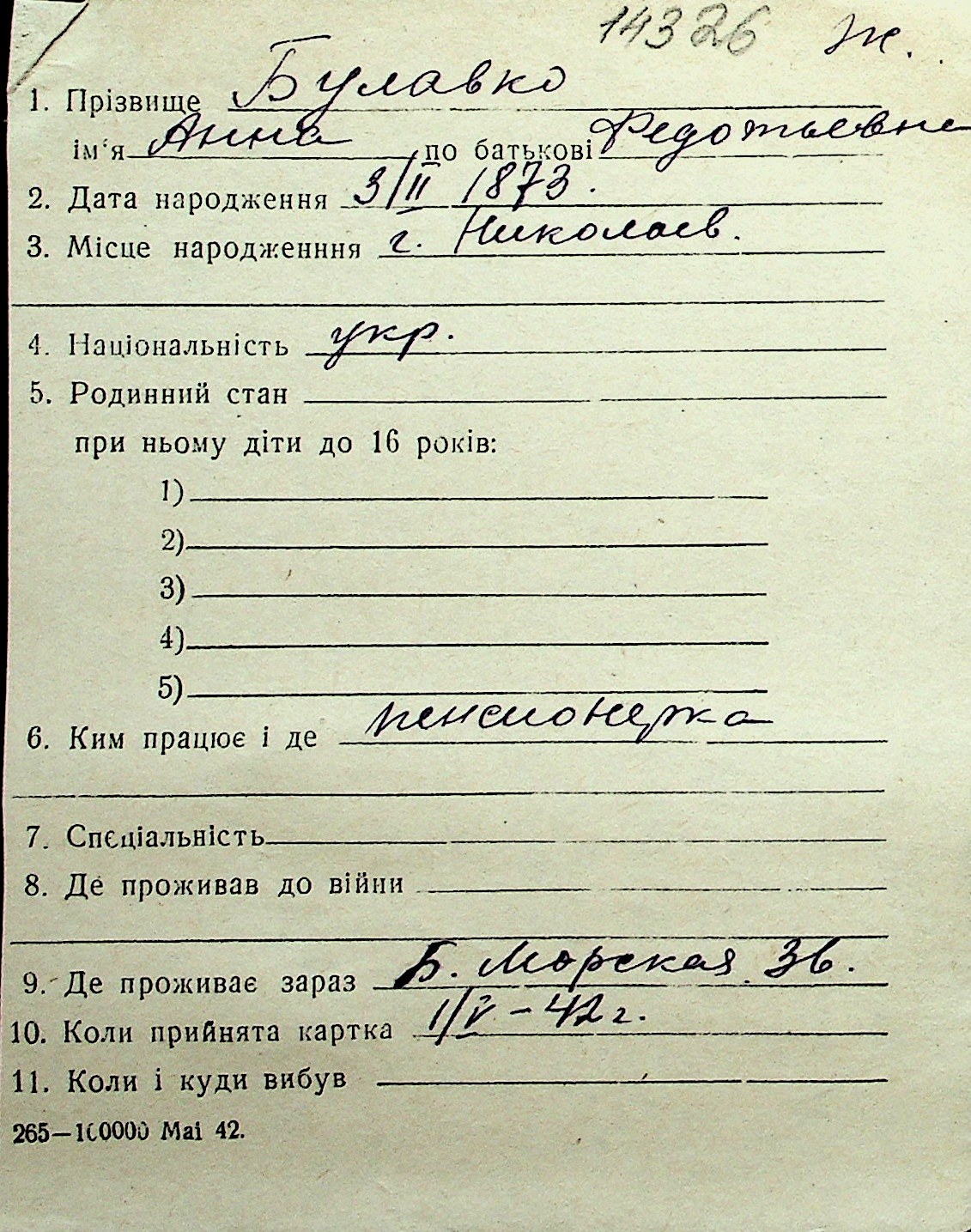 ◦ ◦ Перелік карток на осіб, які мешкали у м. Миколаїв у період окупації 1941–1944 років