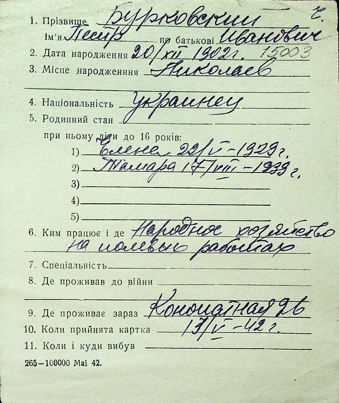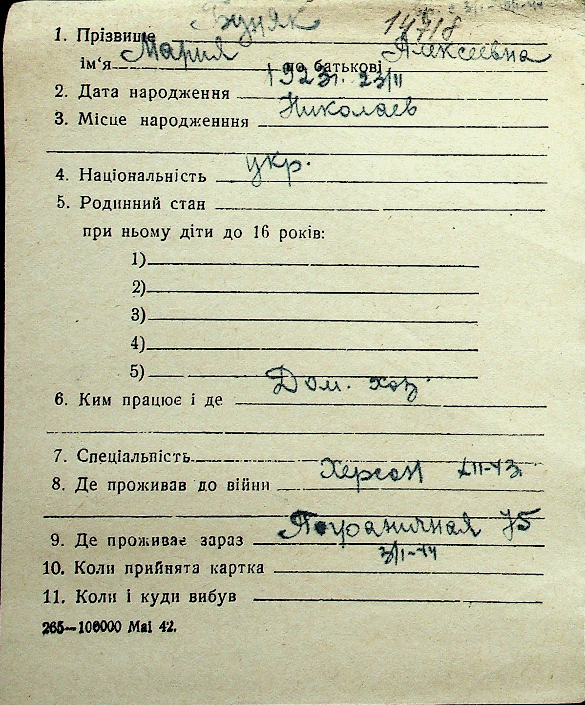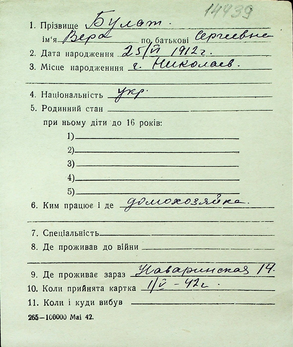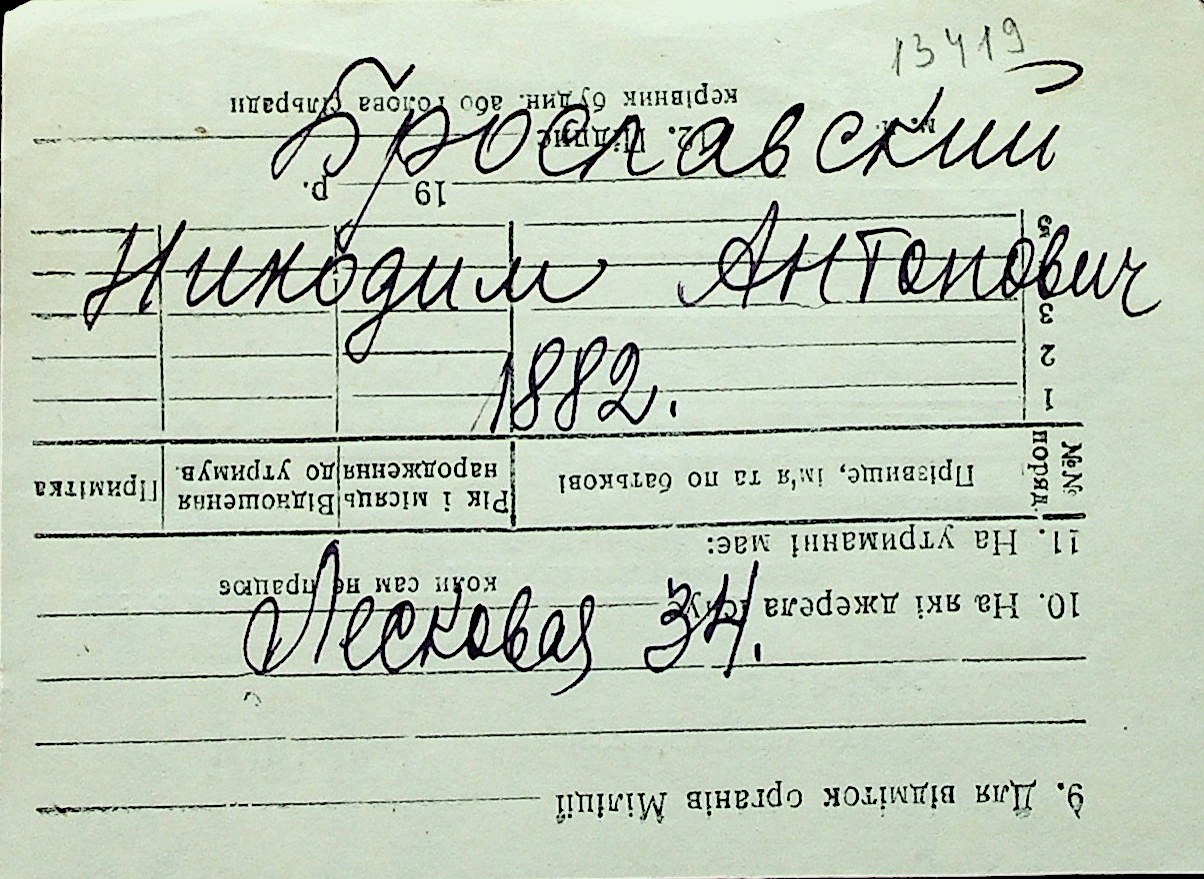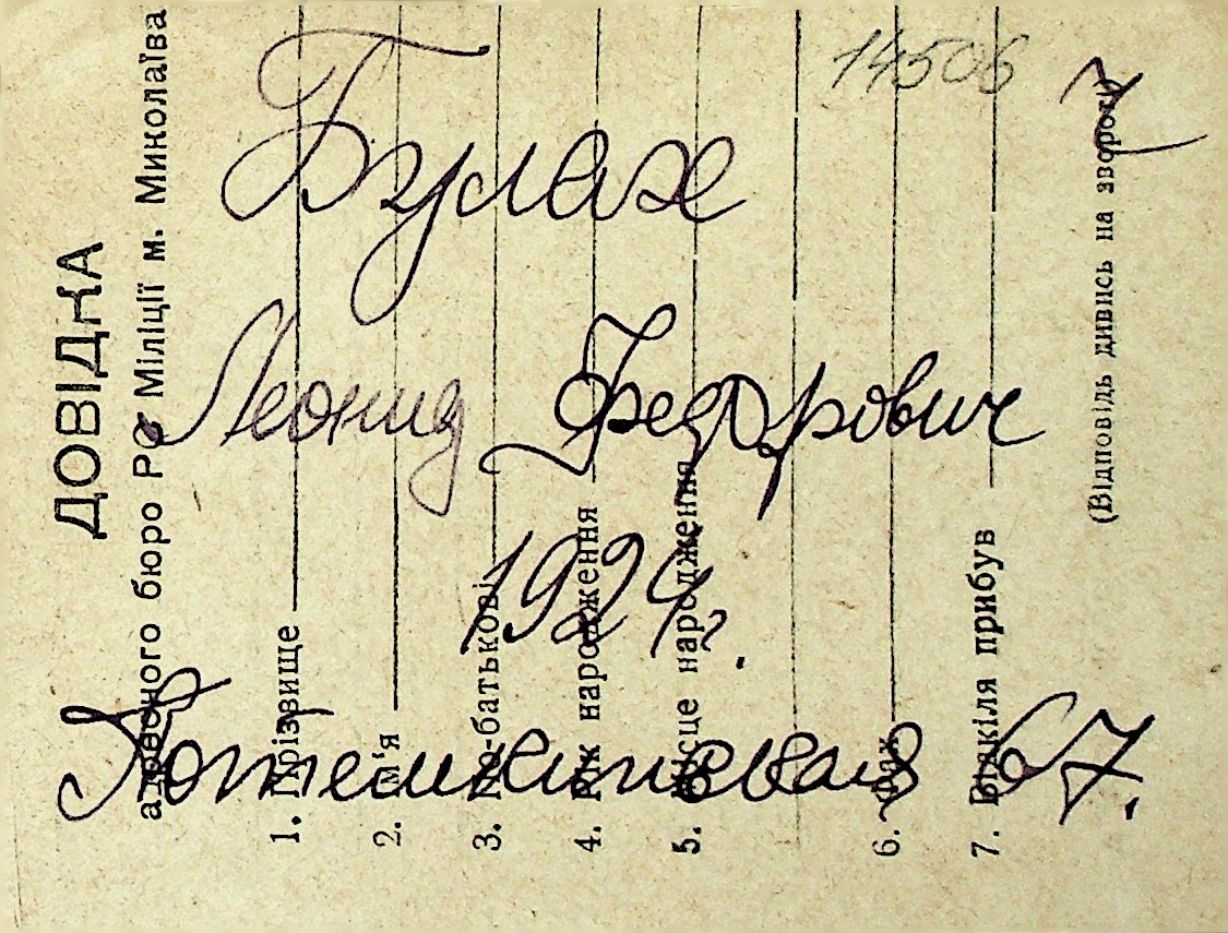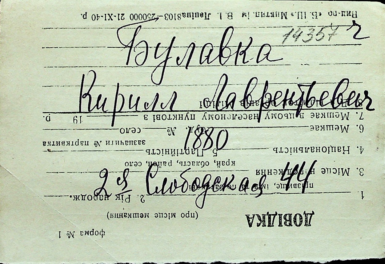 ◦ ◦ Перелік карток на осіб, які мешкали у м. Миколаїв у період окупації 1941–1944 років