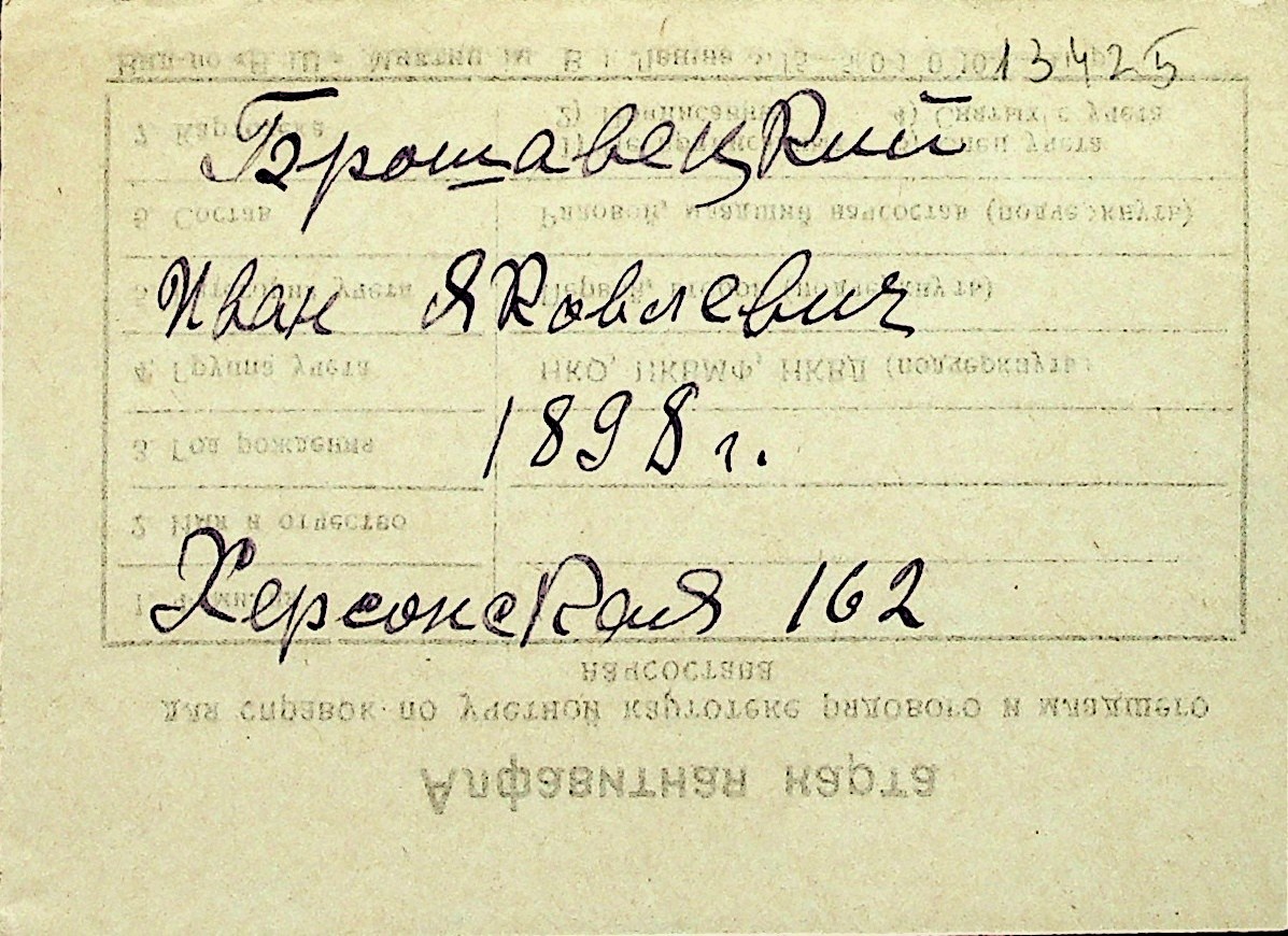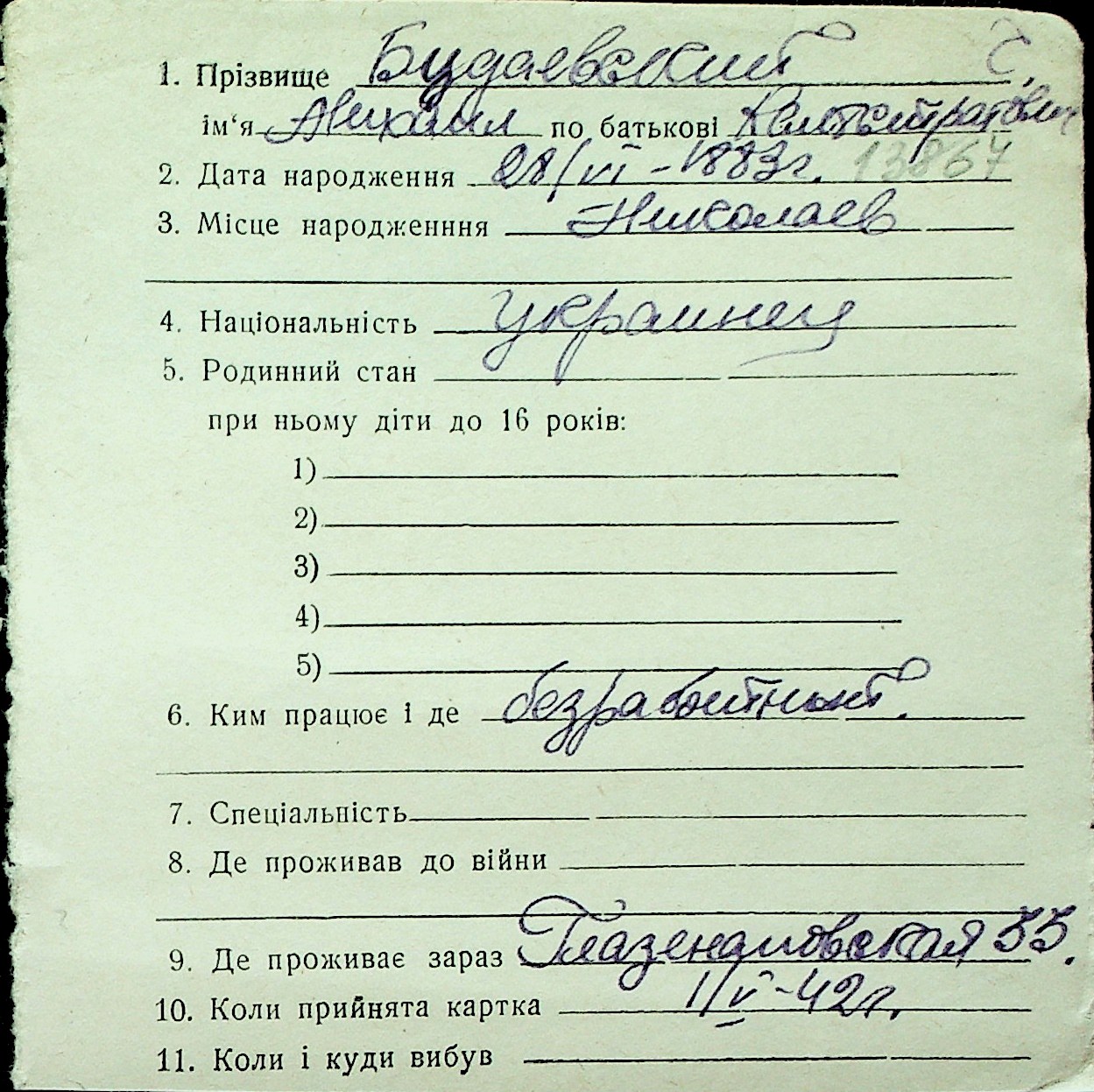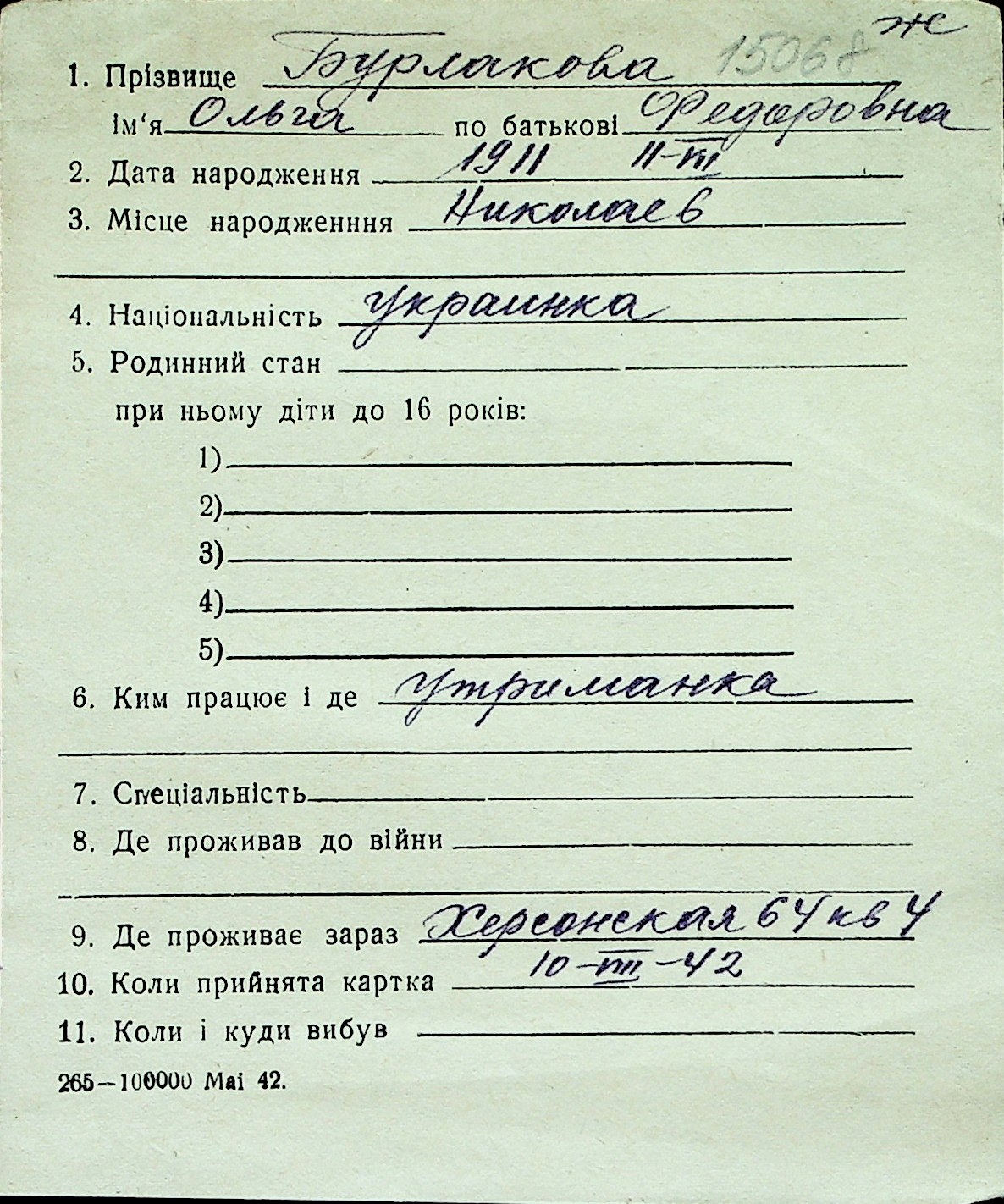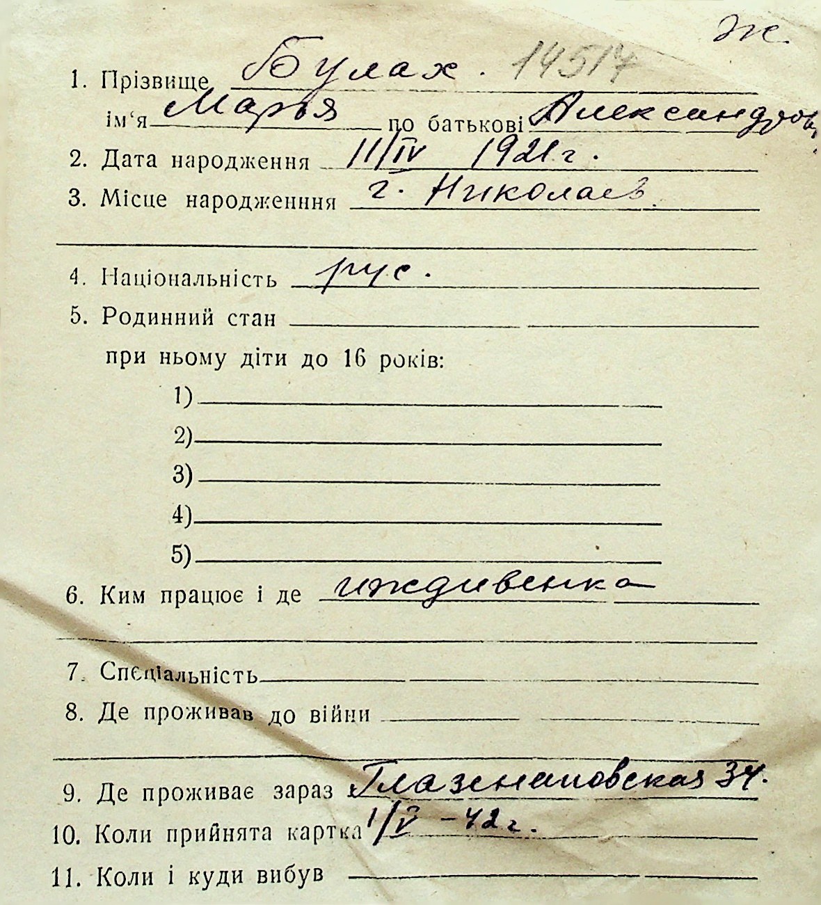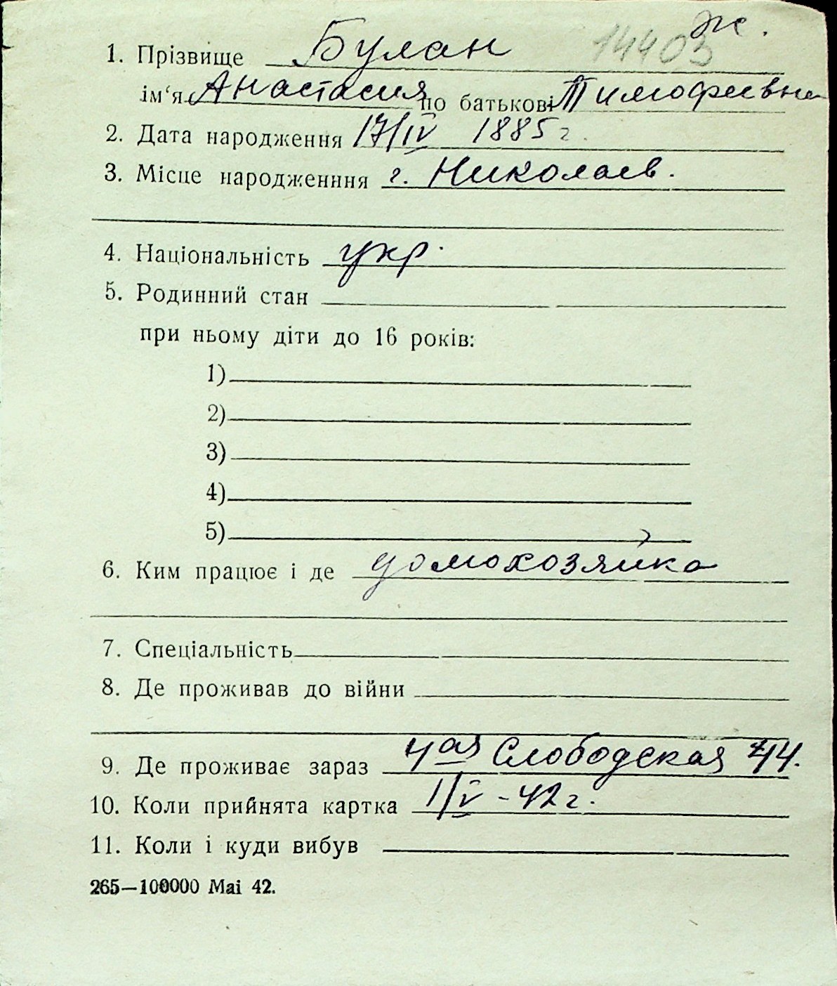◦ ◦ Перелік карток на осіб, які мешкали у м. Миколаїв у період окупації 1941–1944 років
