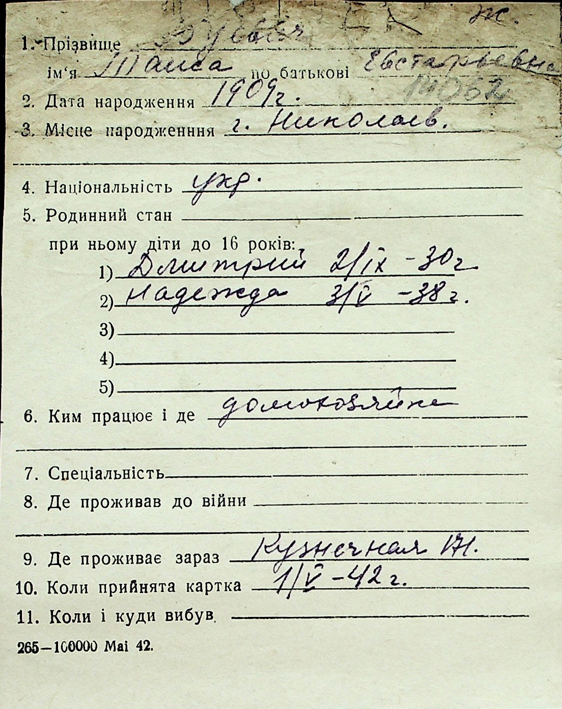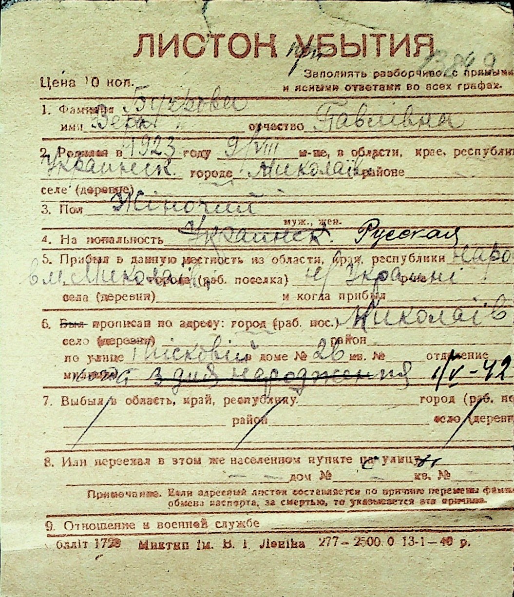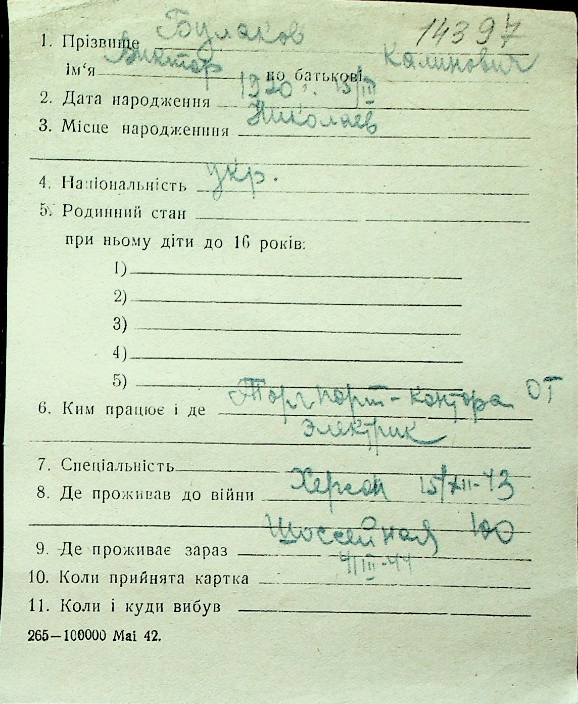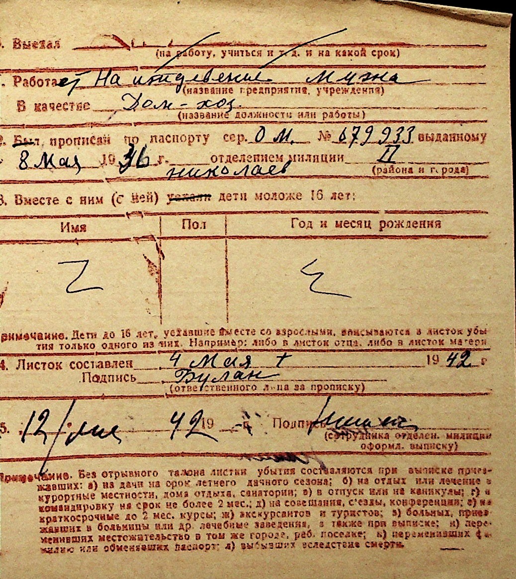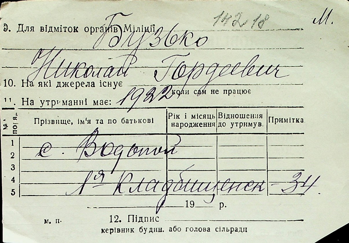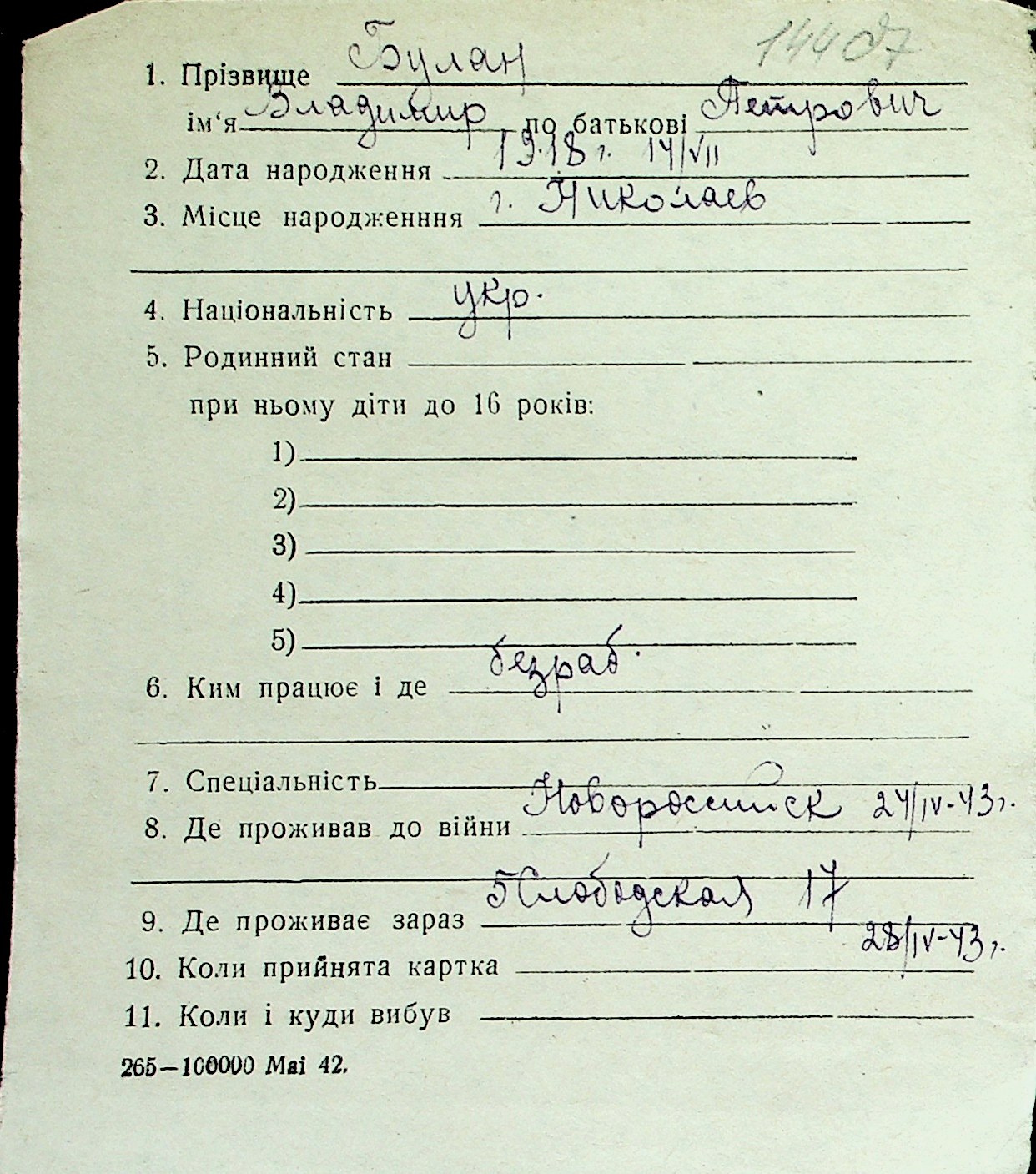 ◦ ◦ Перелік карток на осіб, які мешкали у м. Миколаїв у період окупації 1941–1944 років