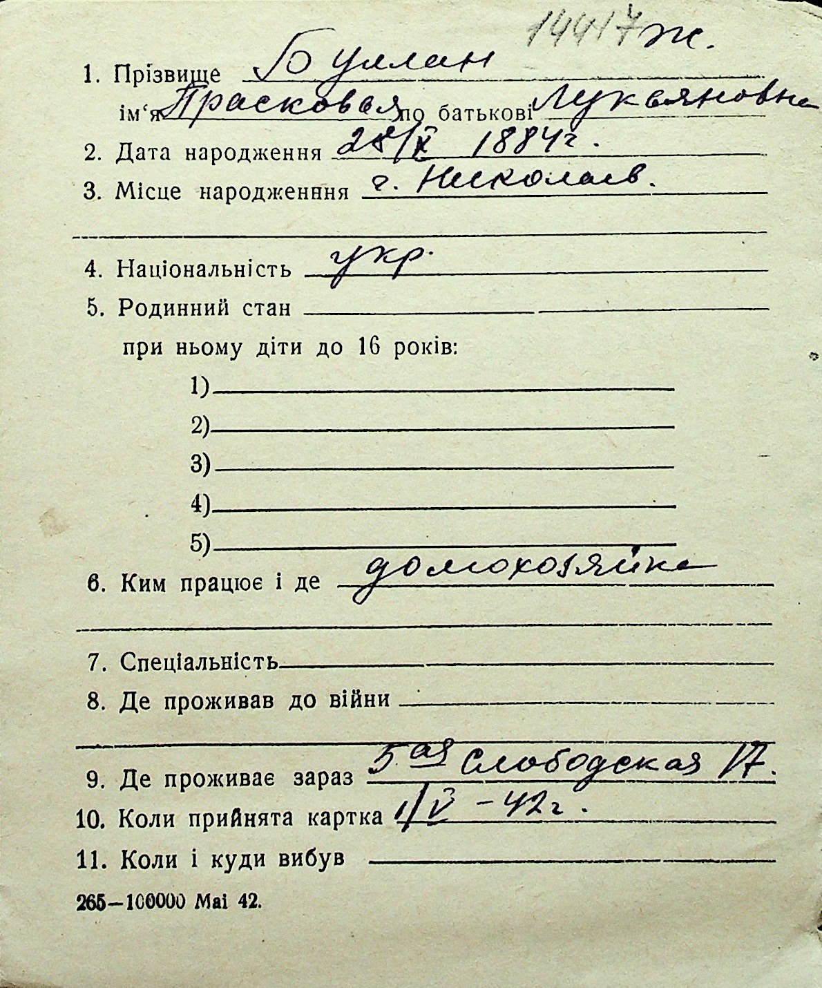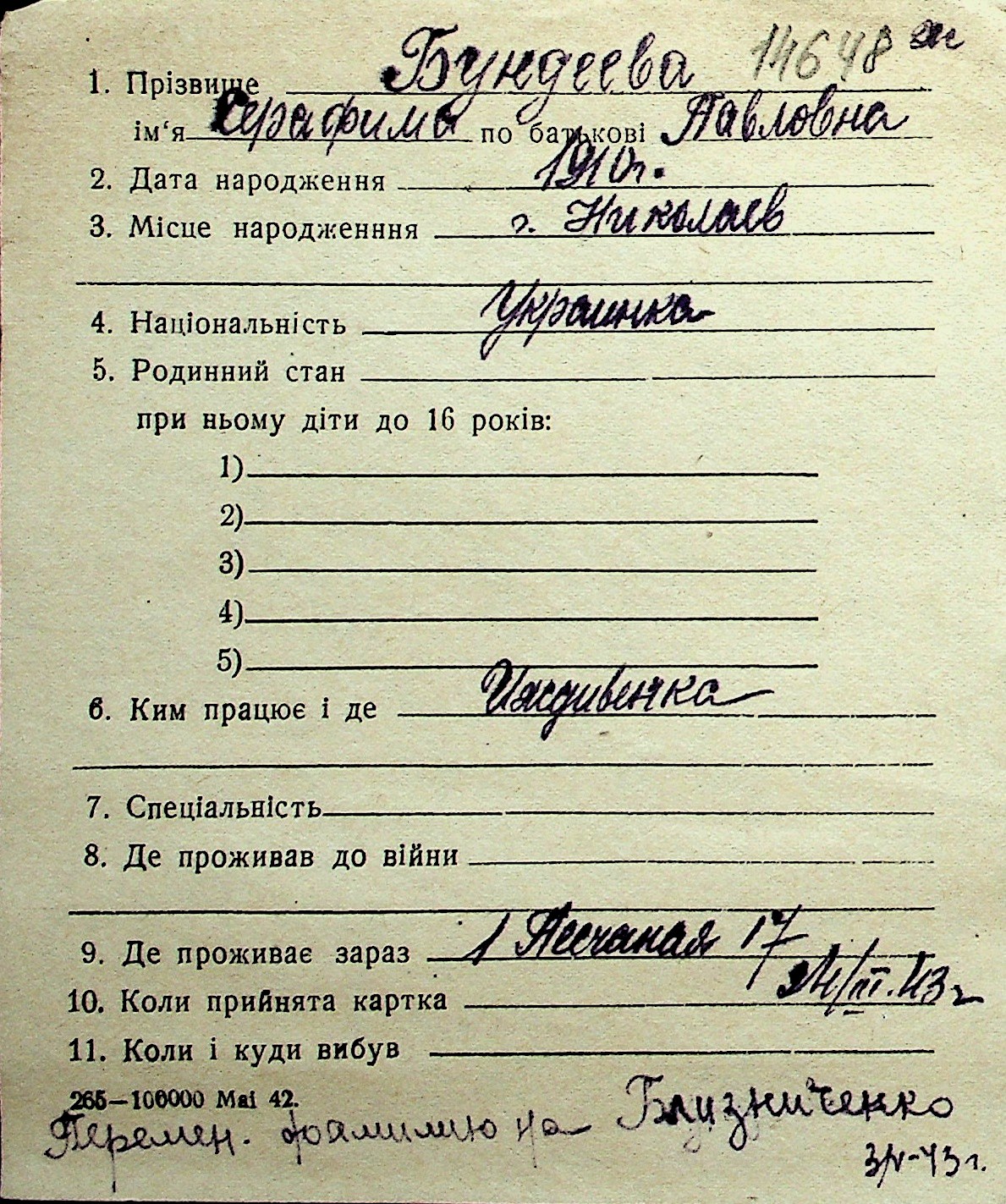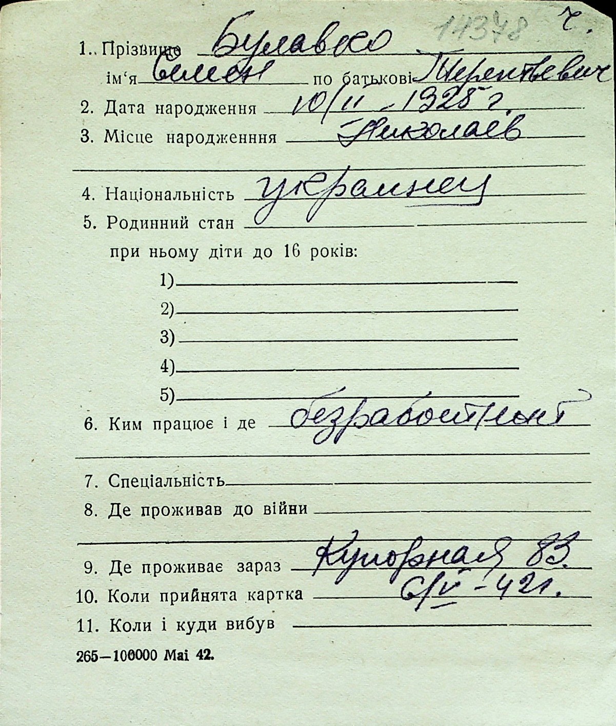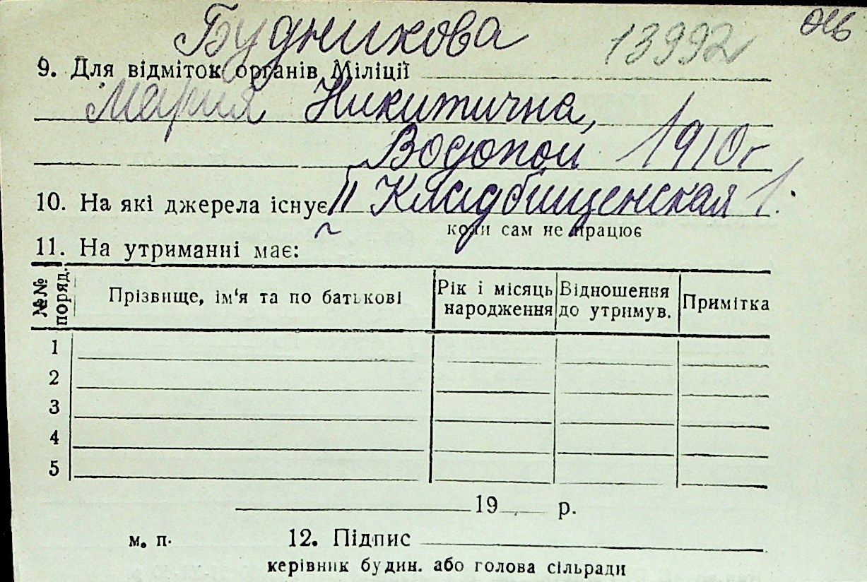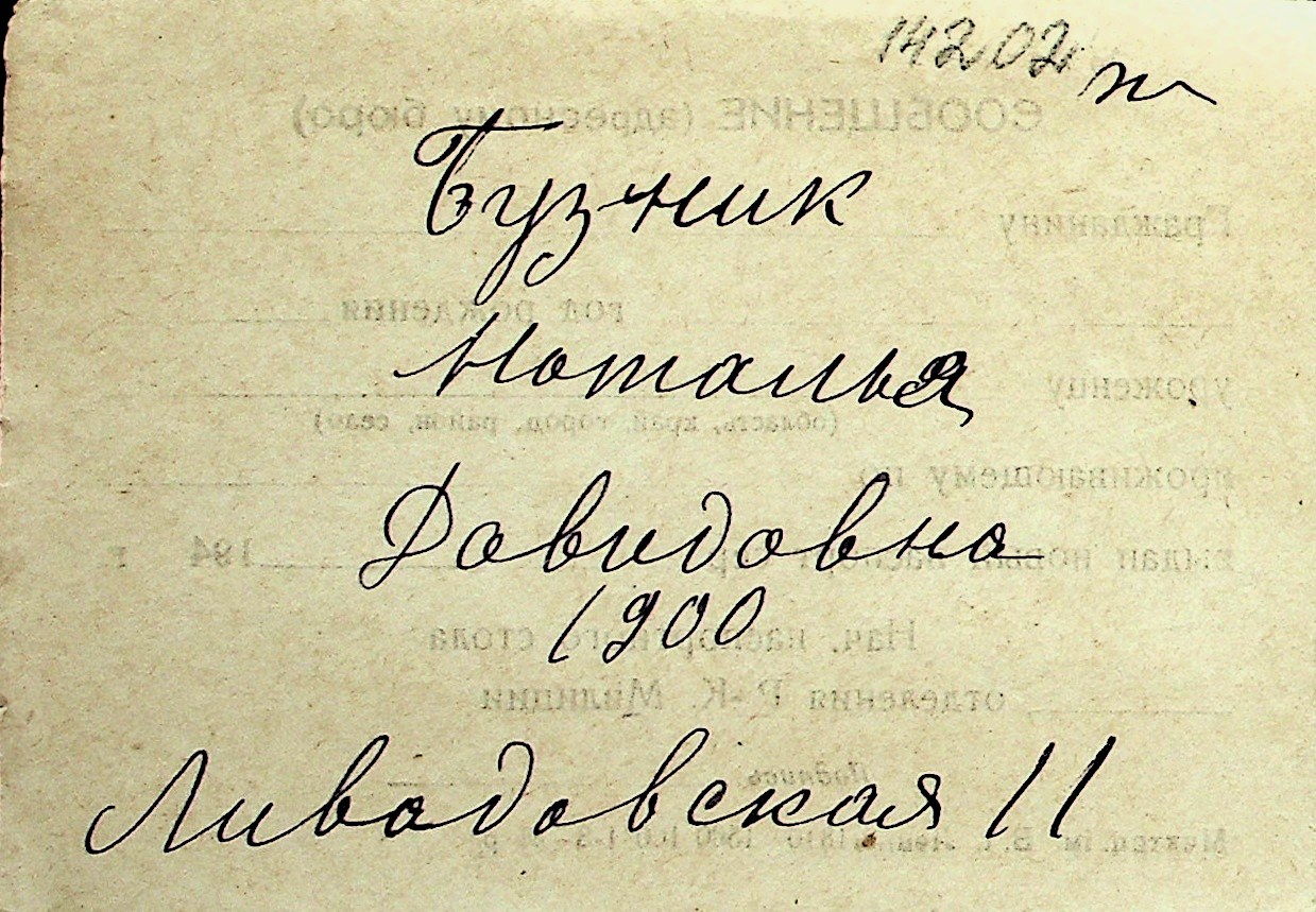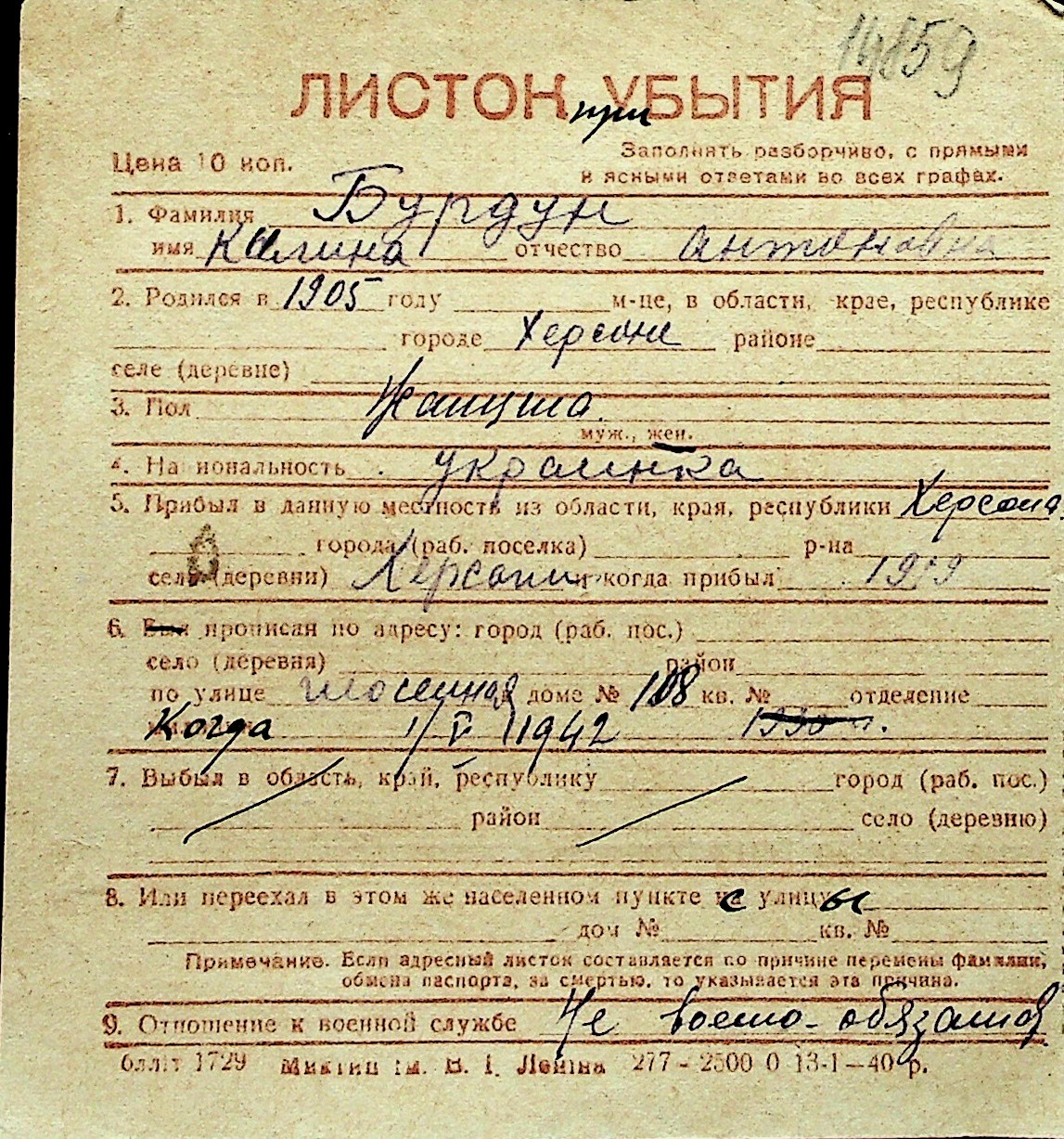 ◦ ◦ Перелік карток на осіб, які мешкали у м. Миколаїв у період окупації 1941–1944 років