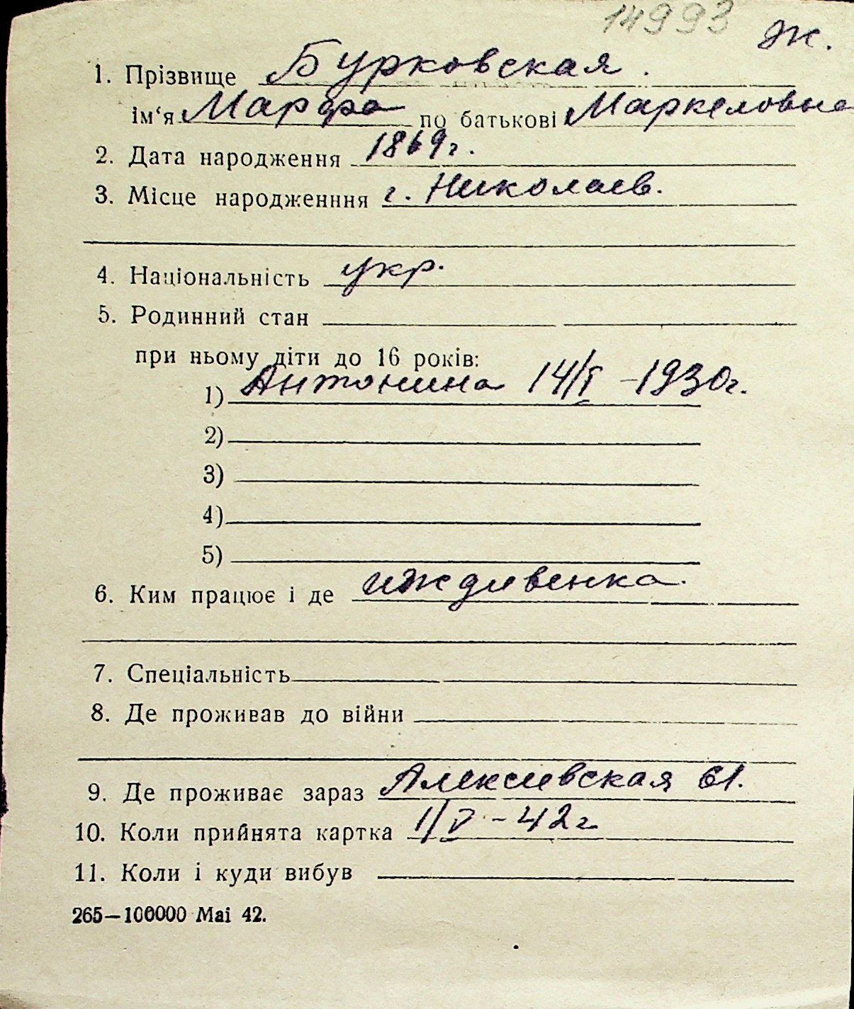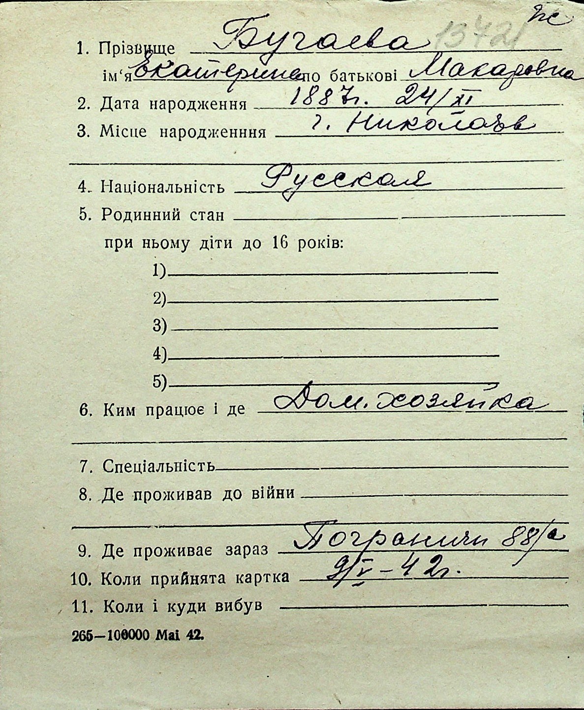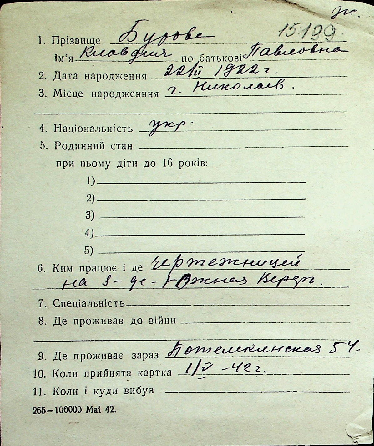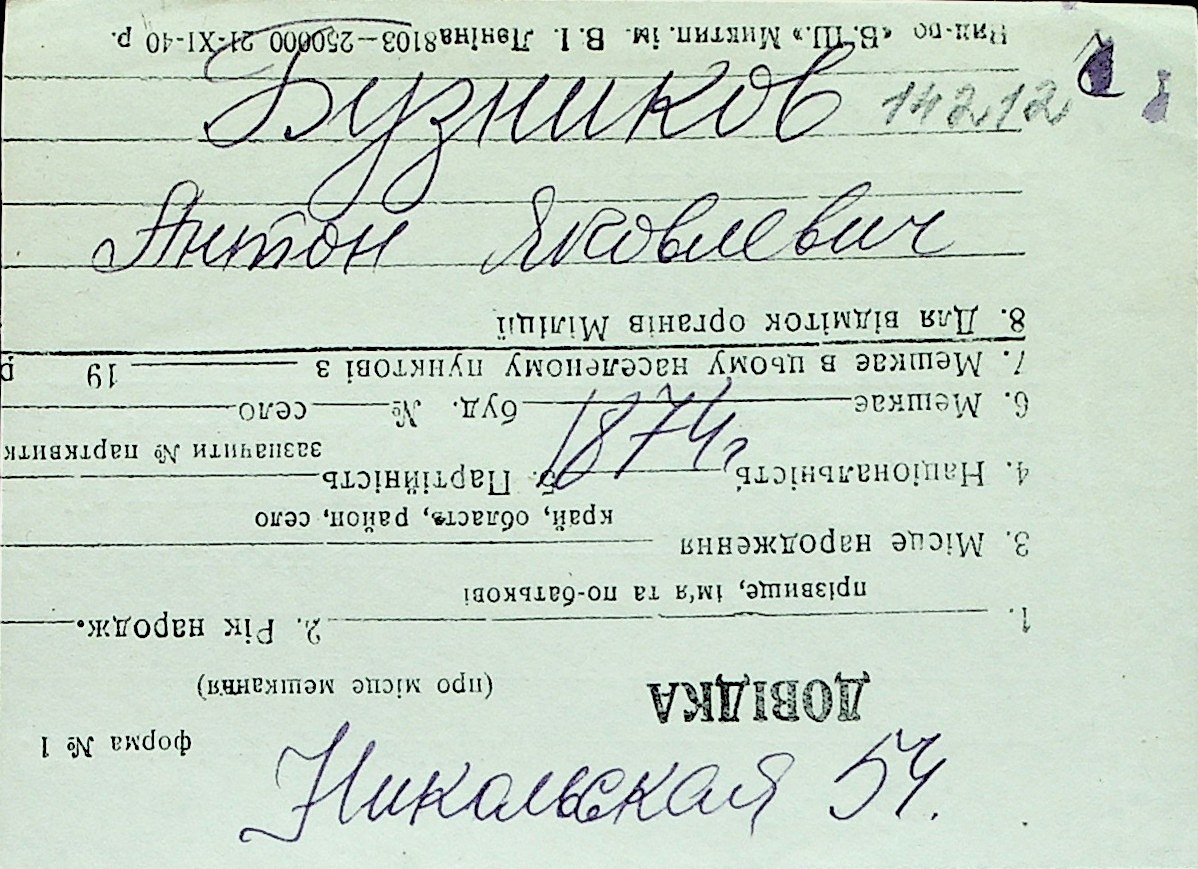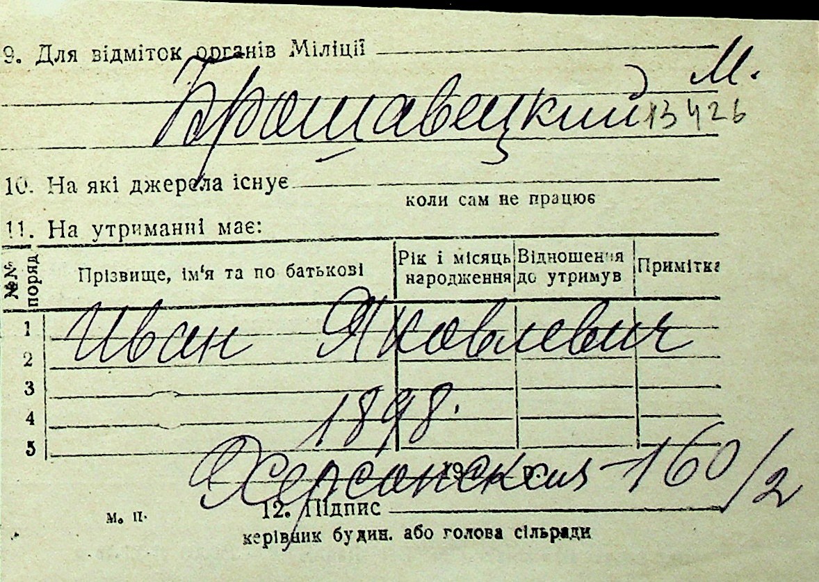 ◦ ◦ Перелік карток на осіб, які мешкали у м. Миколаїв у період окупації 1941–1944 років