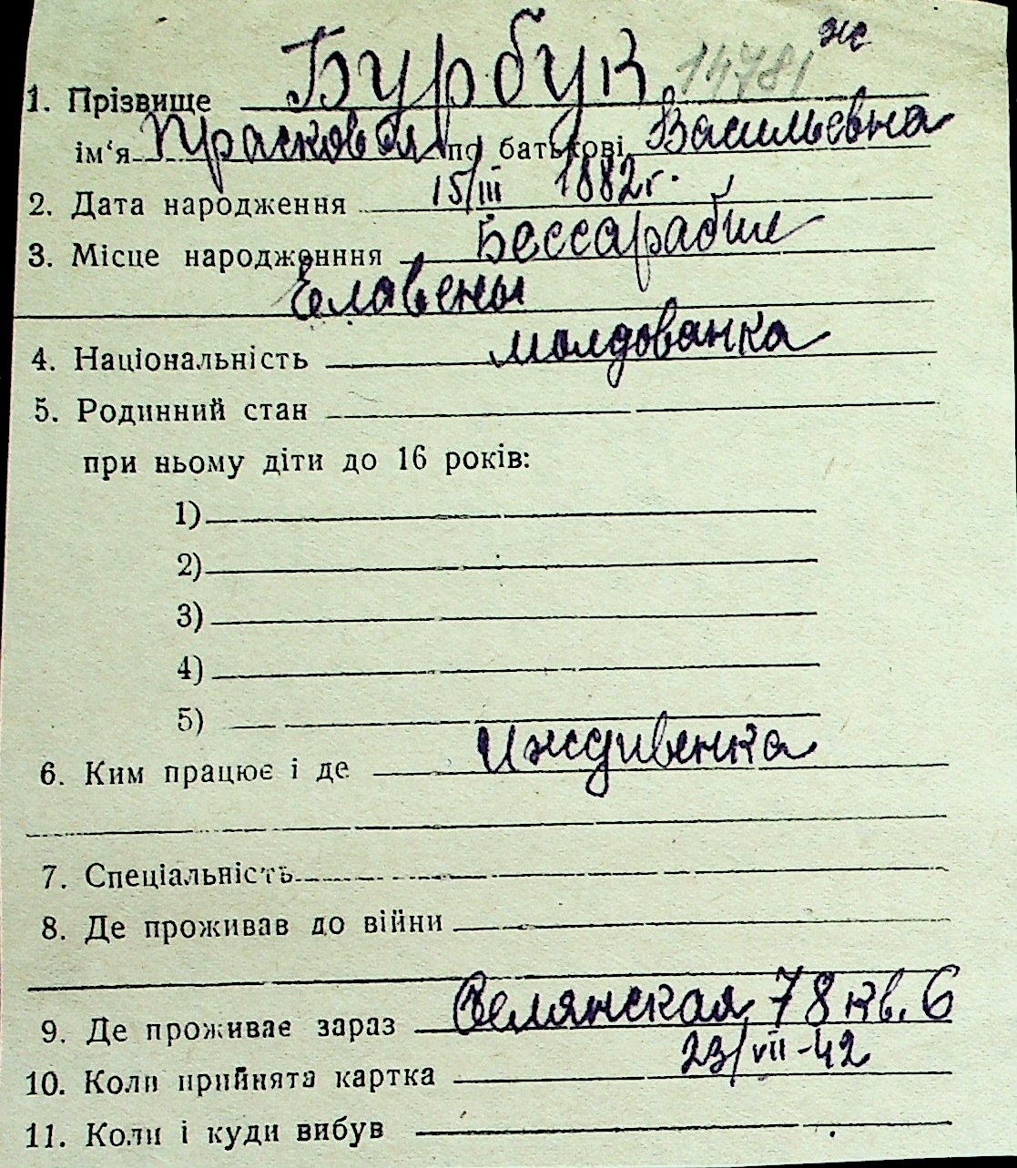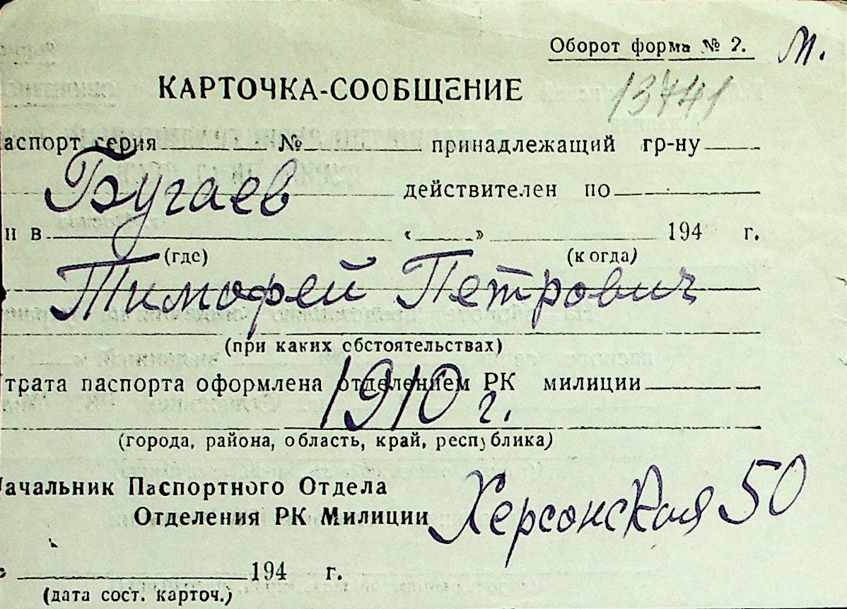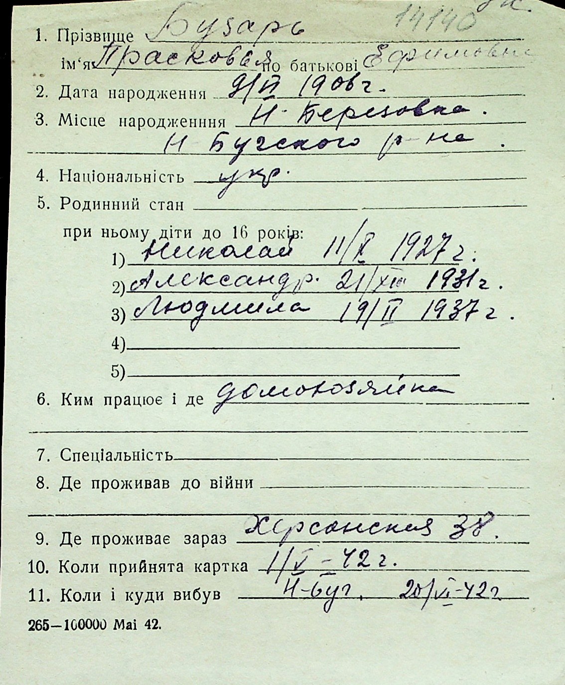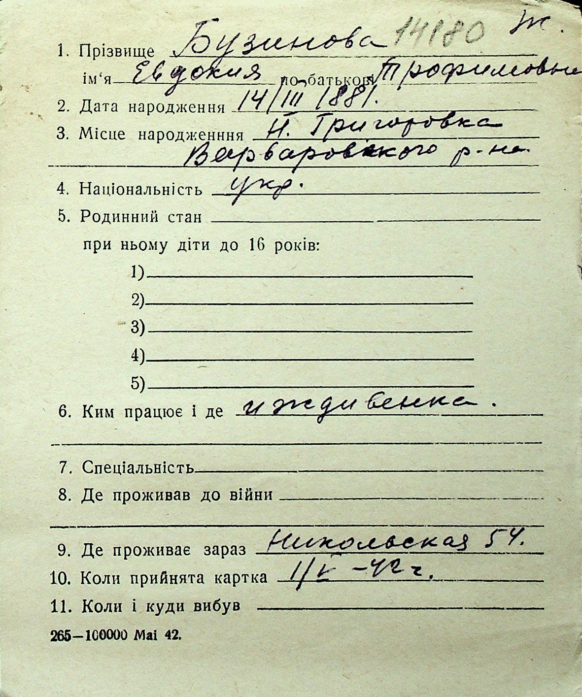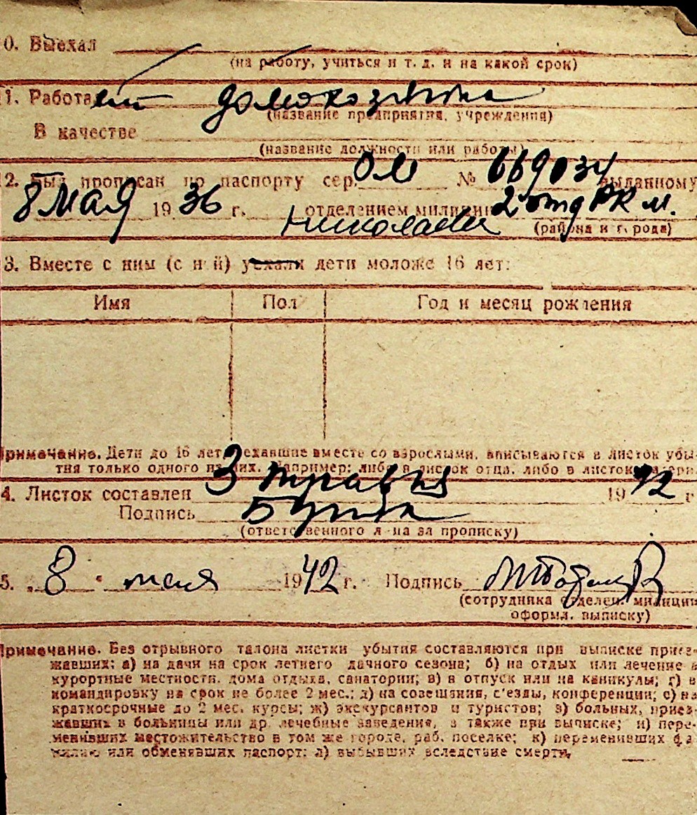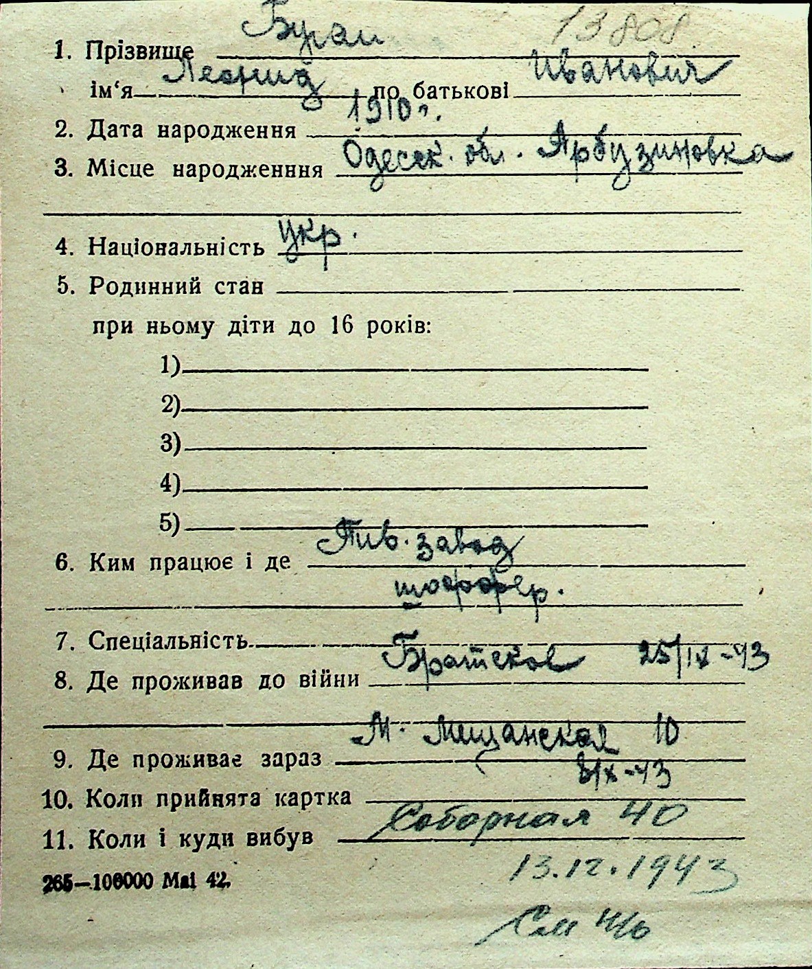 ◦ ◦ Перелік карток на осіб, які мешкали у м. Миколаїв у період окупації 1941–1944 років