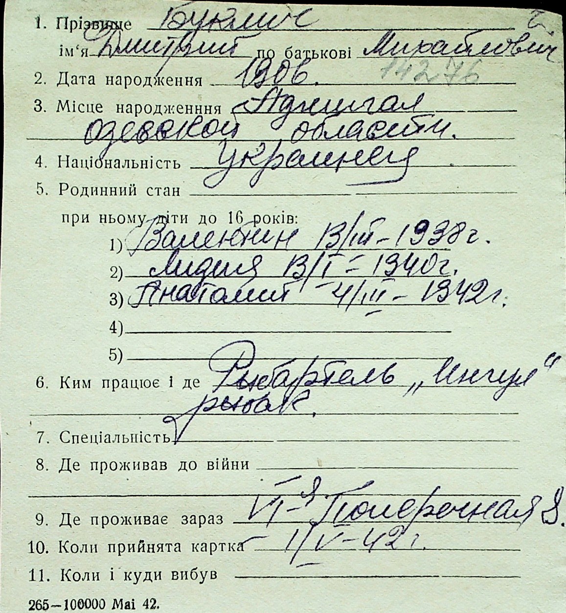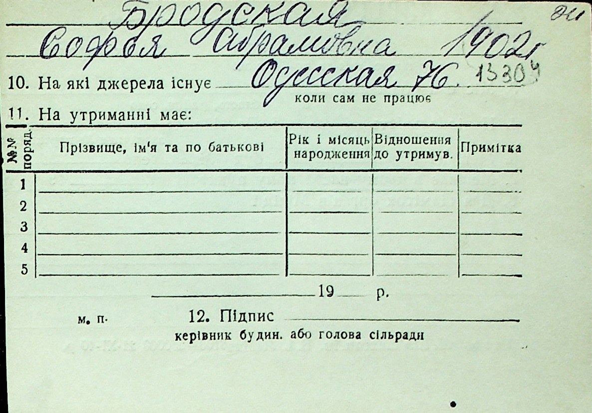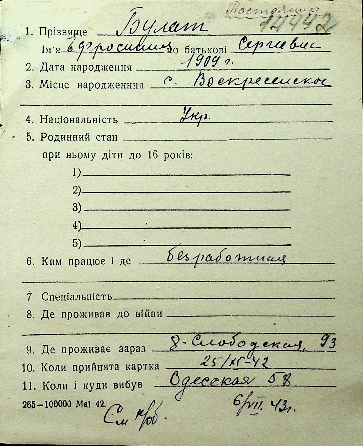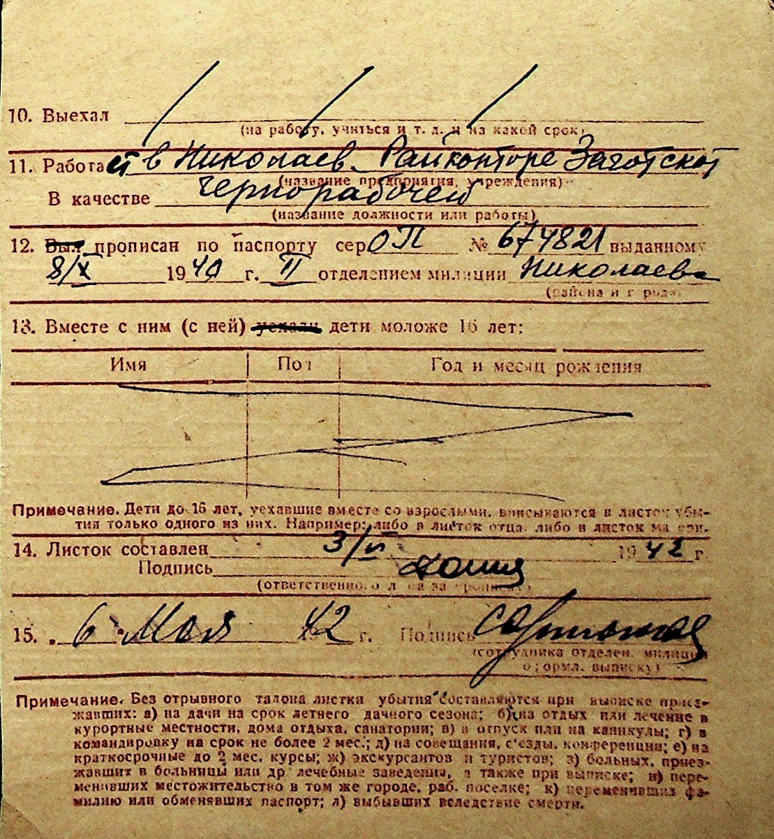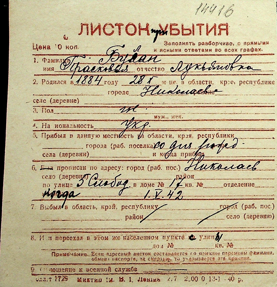 ◦ ◦ Перелік карток на осіб, які мешкали у м. Миколаїв у період окупації 1941–1944 років