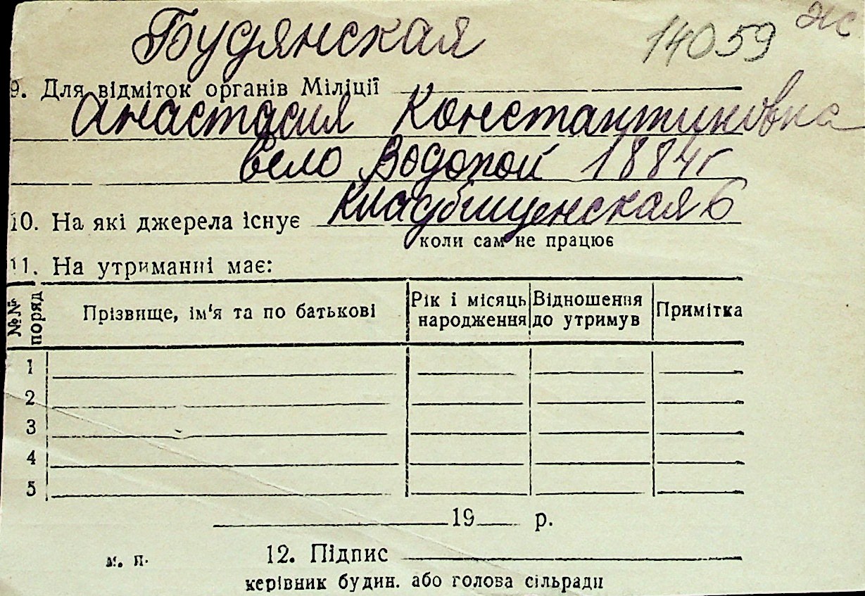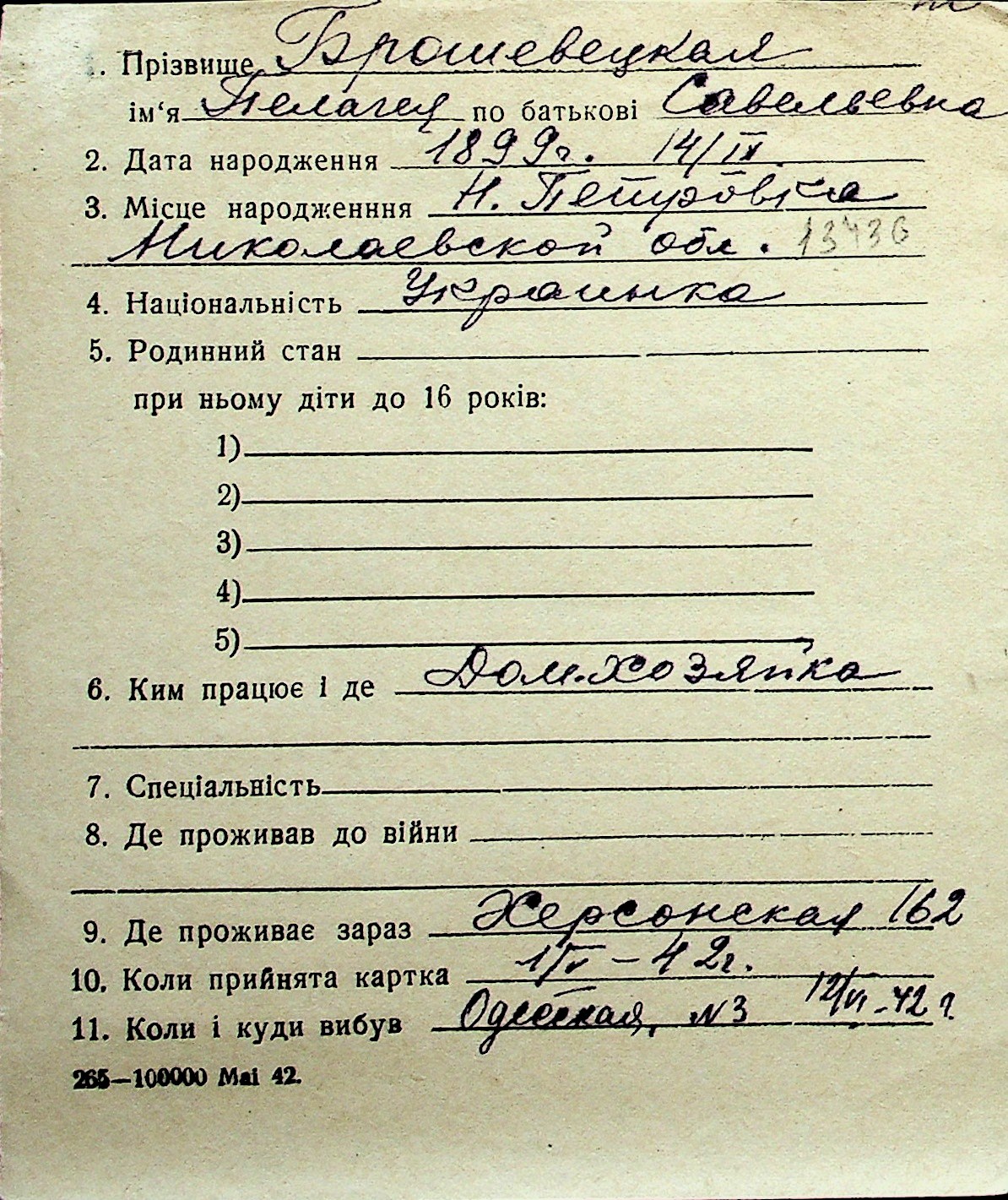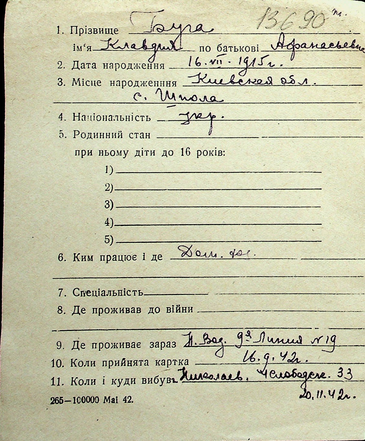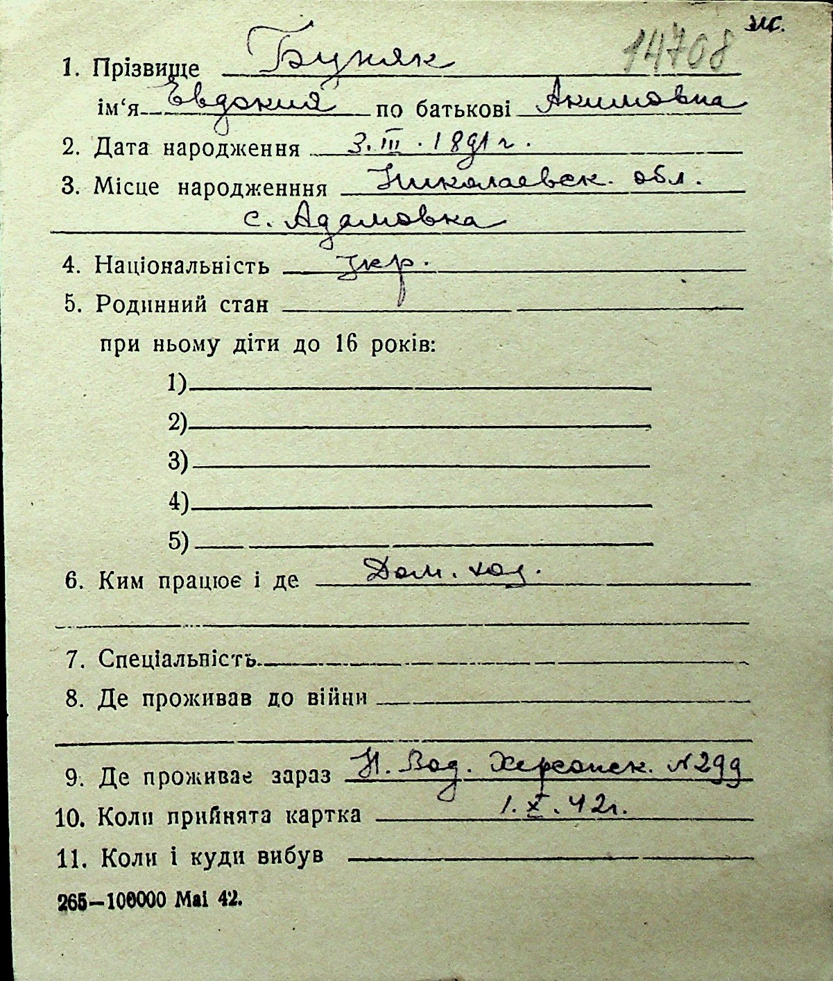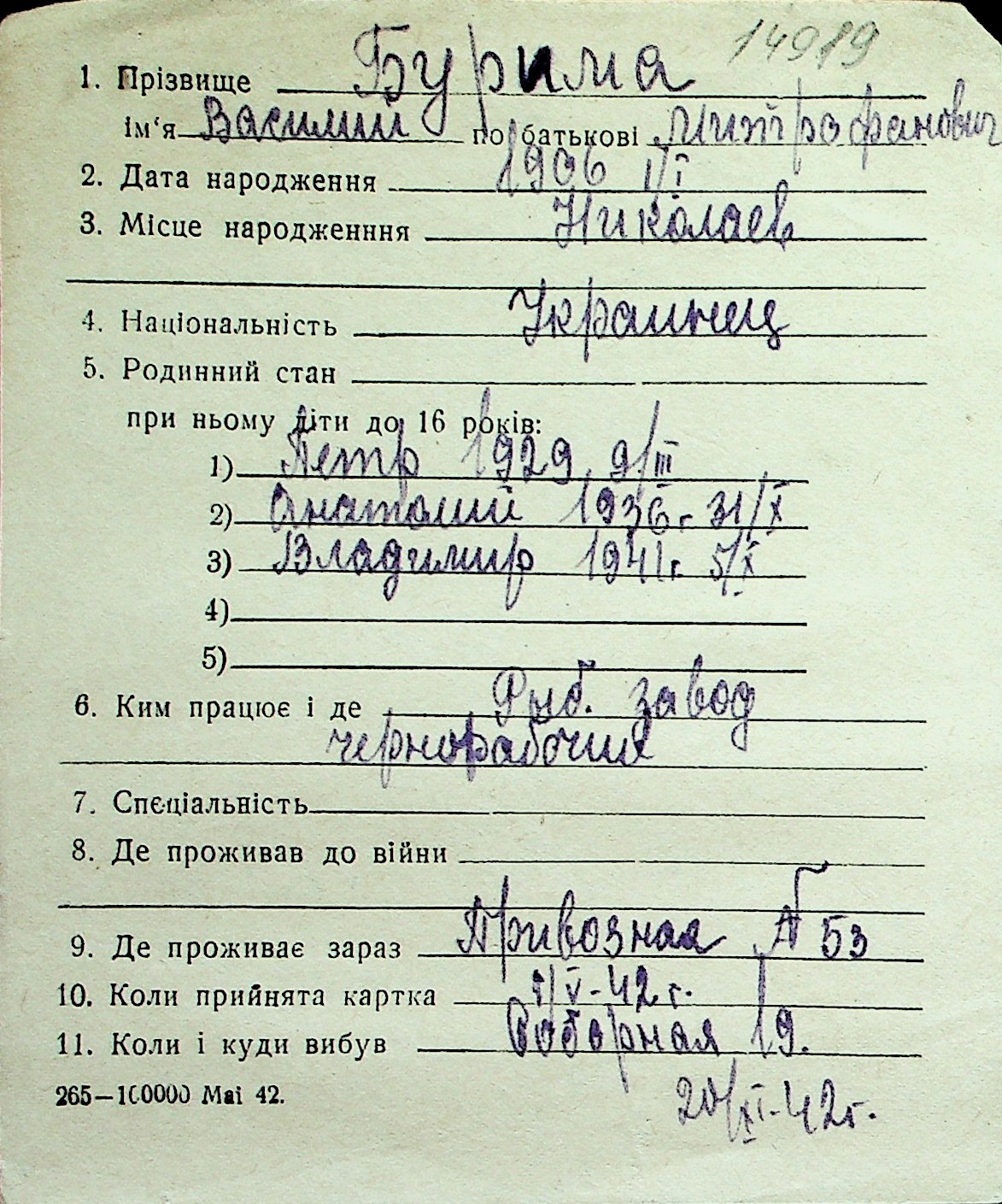 ◦ ◦ Перелік карток на осіб, які мешкали у м. Миколаїв у період окупації 1941–1944 років