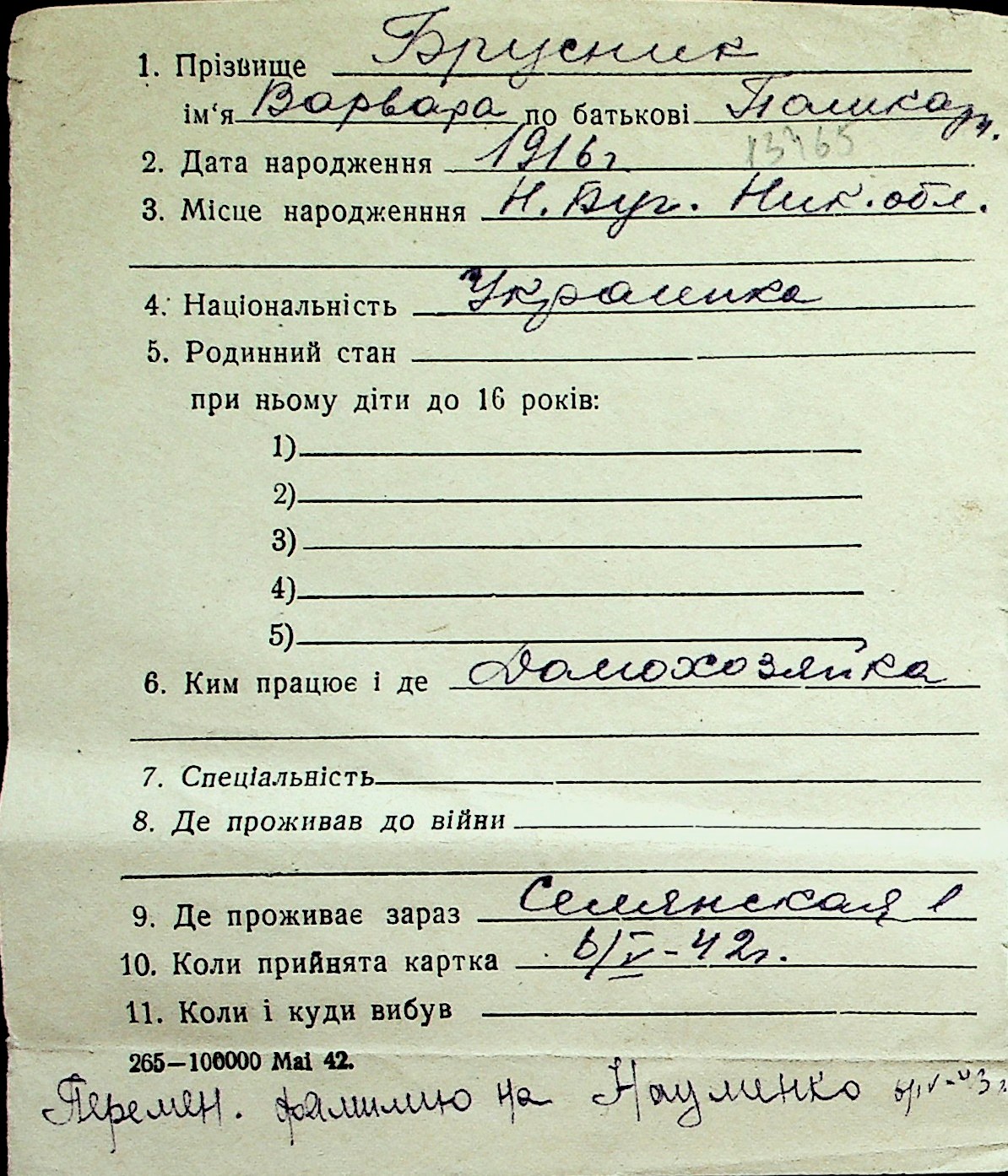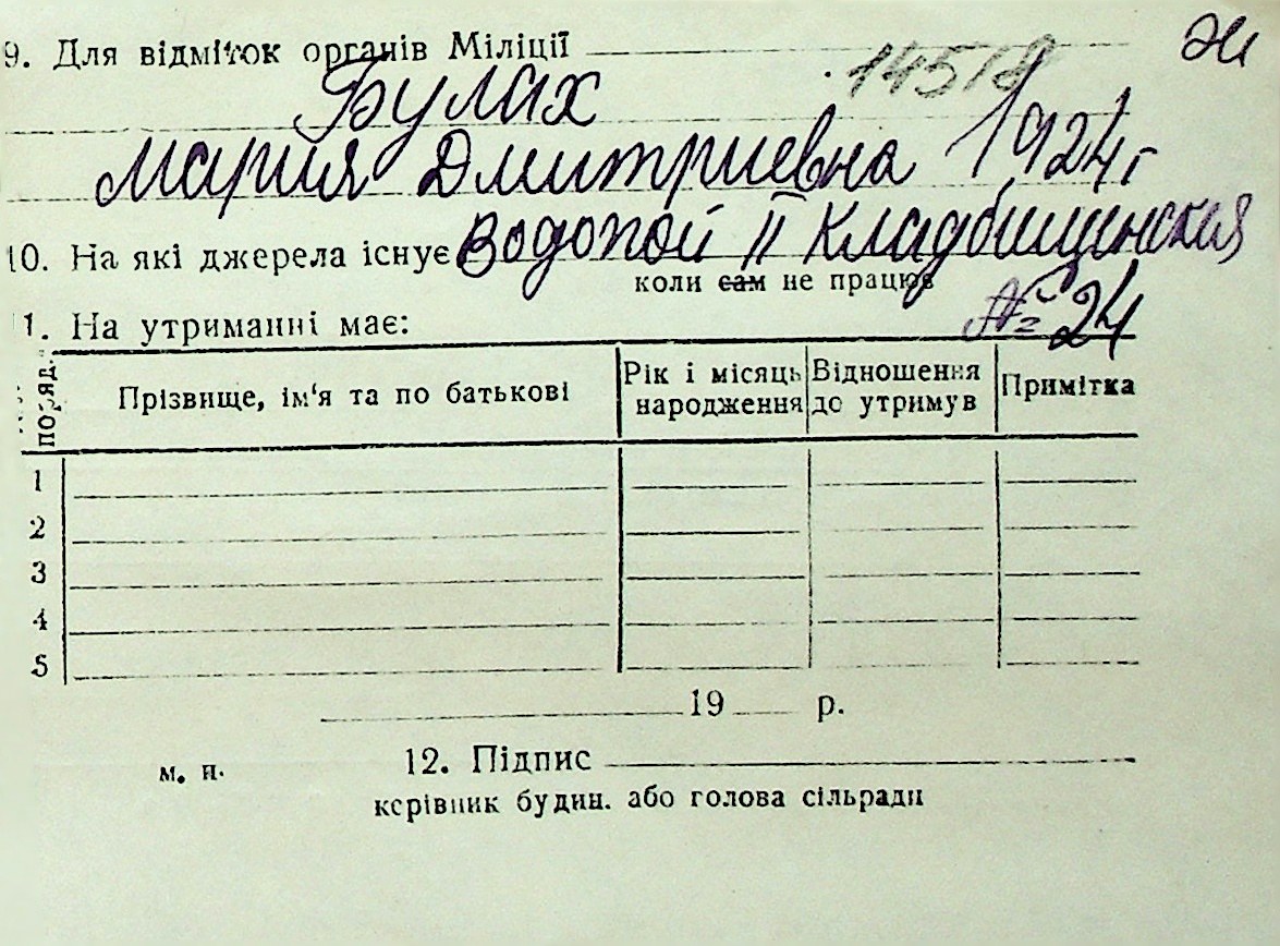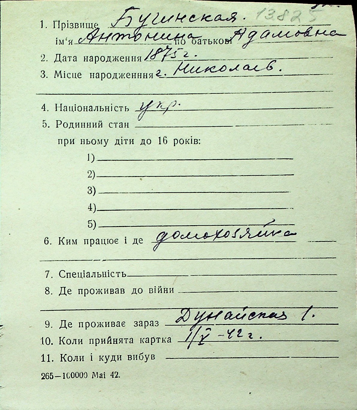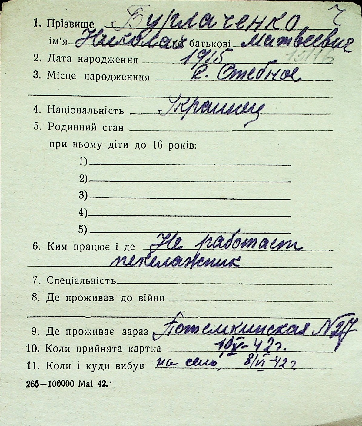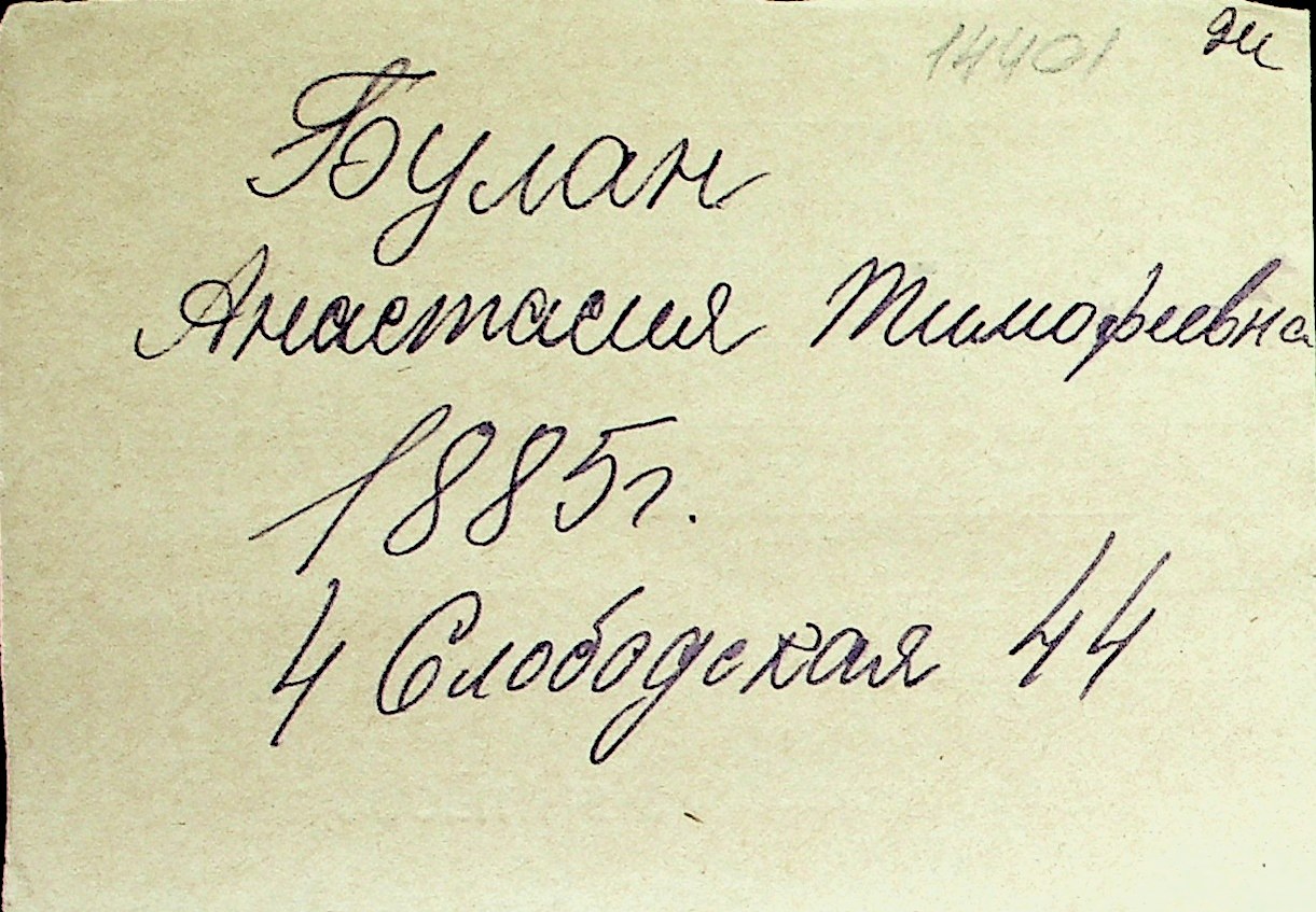 ◦ ◦ Перелік карток на осіб, які мешкали у м. Миколаїв у період окупації 1941–1944 років