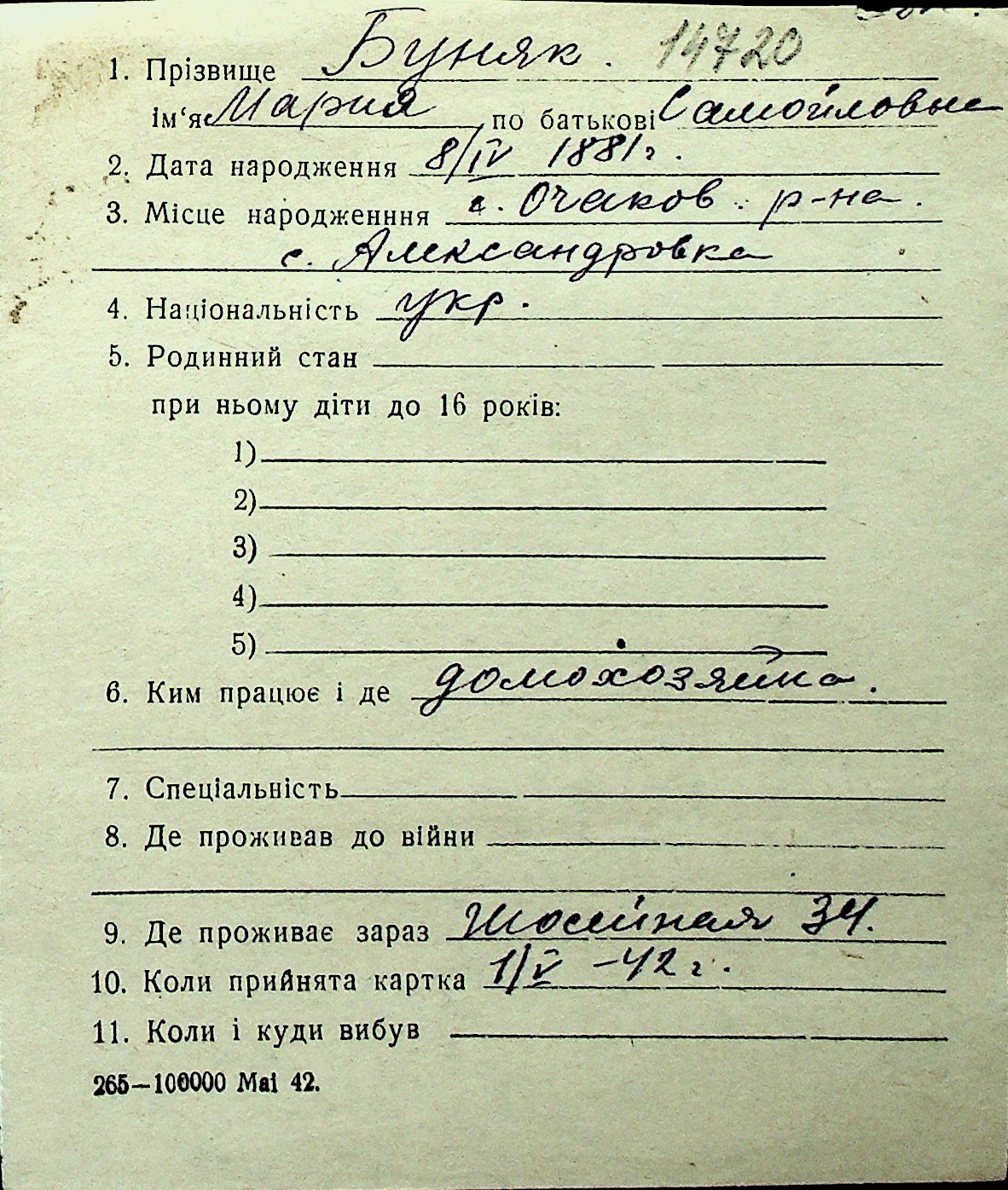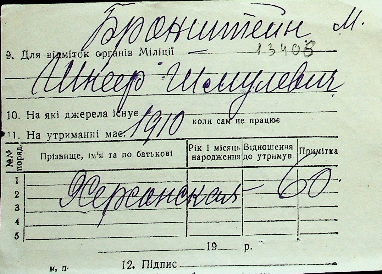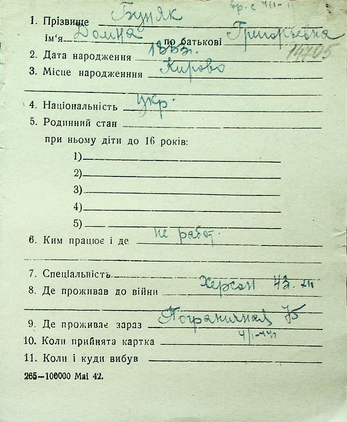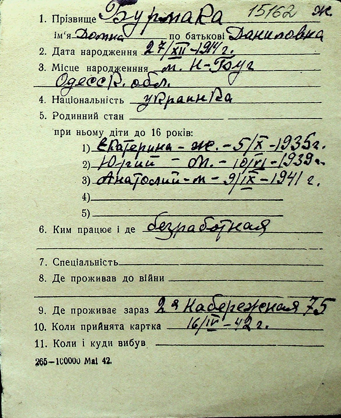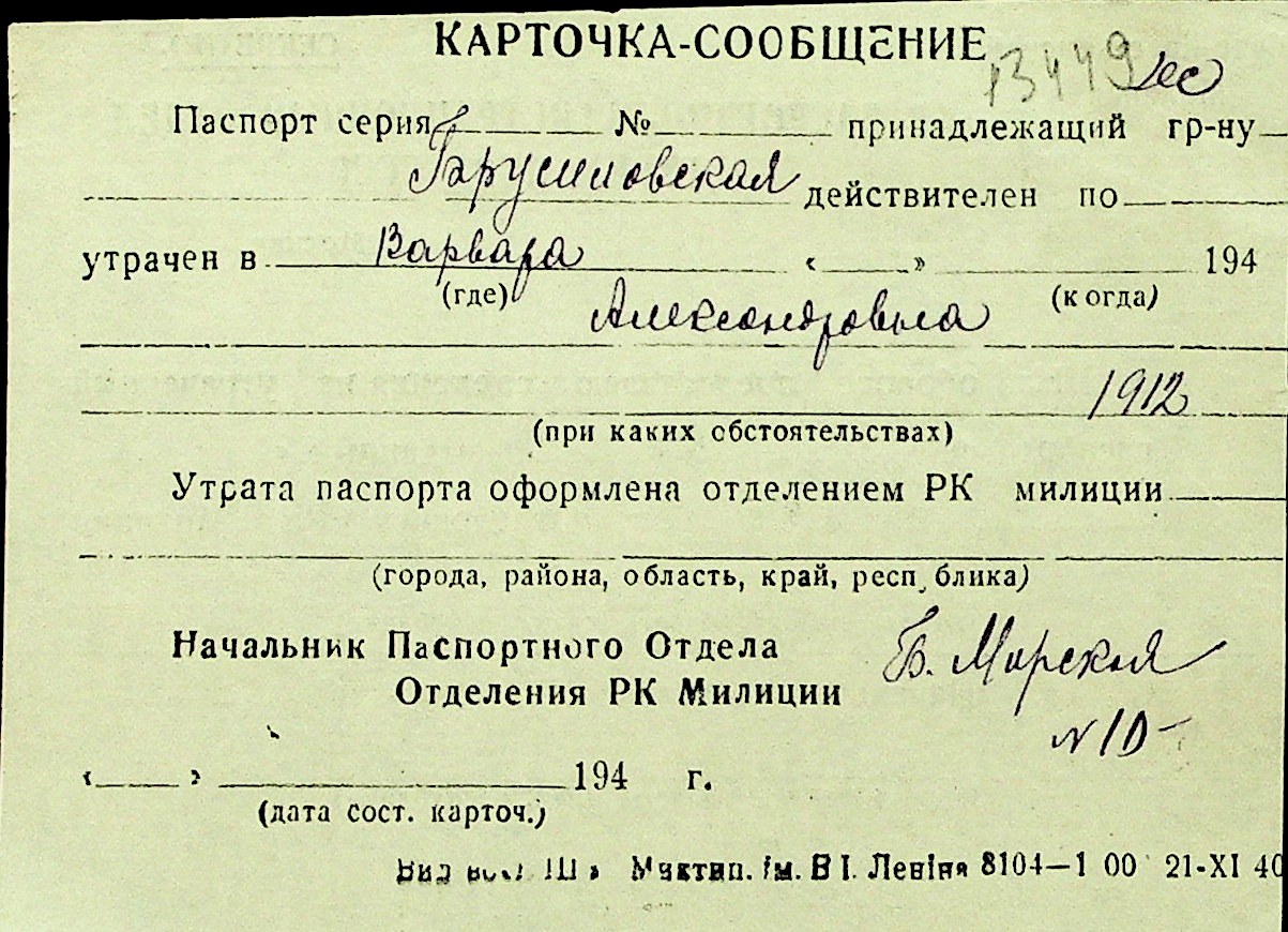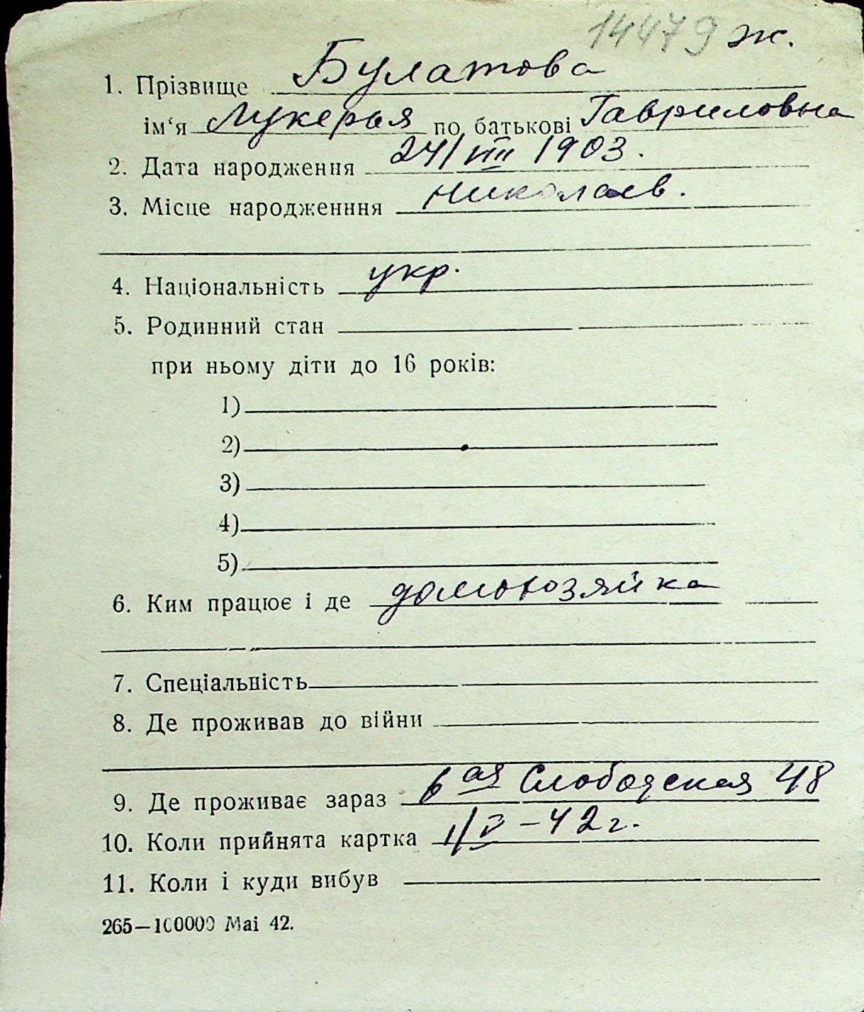 ◦ ◦ Перелік карток на осіб, які мешкали у м. Миколаїв у період окупації 1941–1944 років