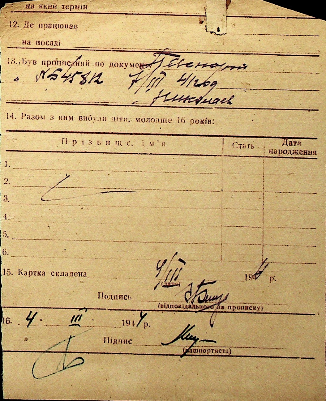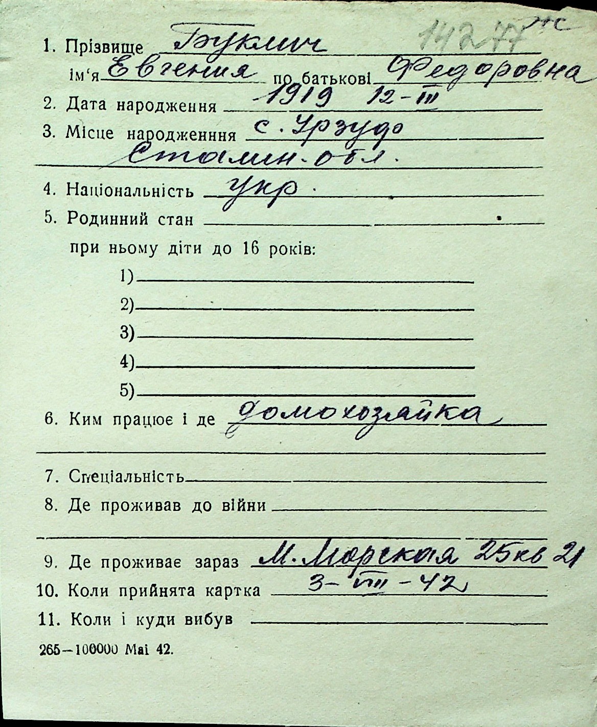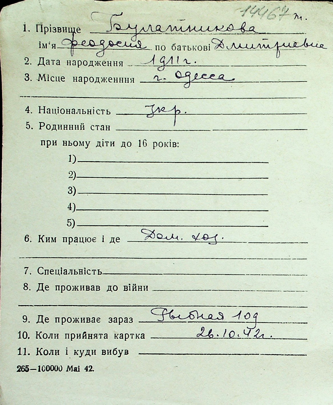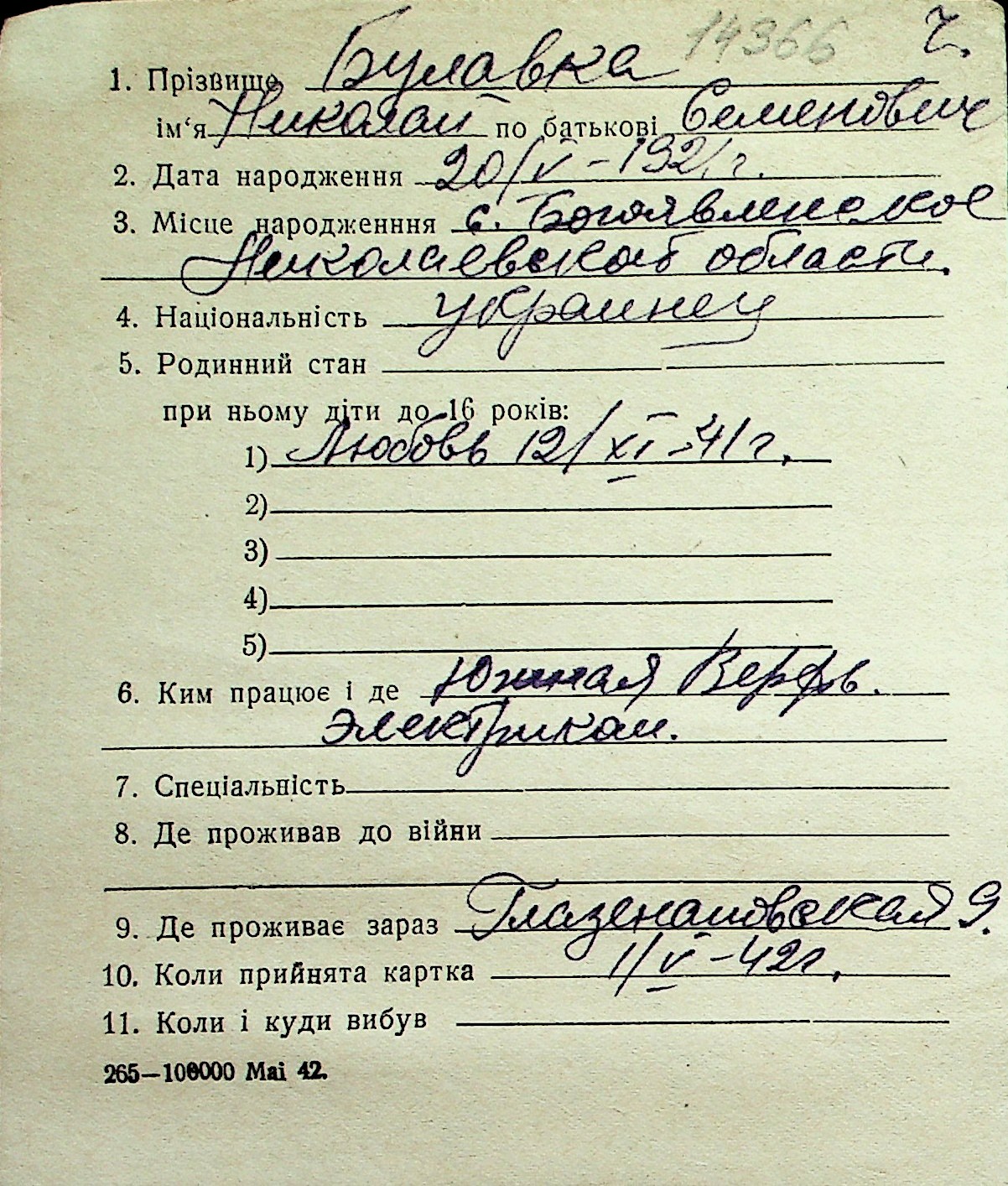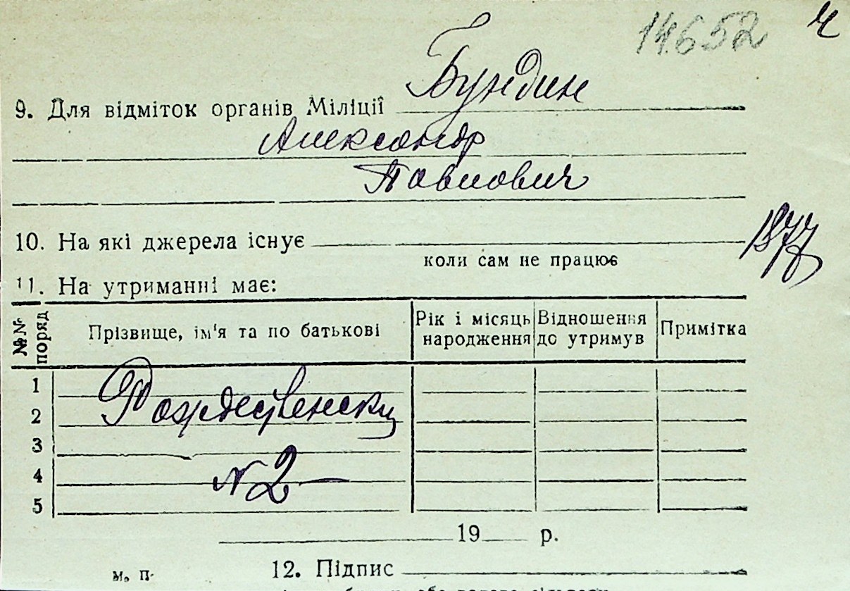 ◦ ◦ Перелік карток на осіб, які мешкали у м. Миколаїв у період окупації 1941–1944 років