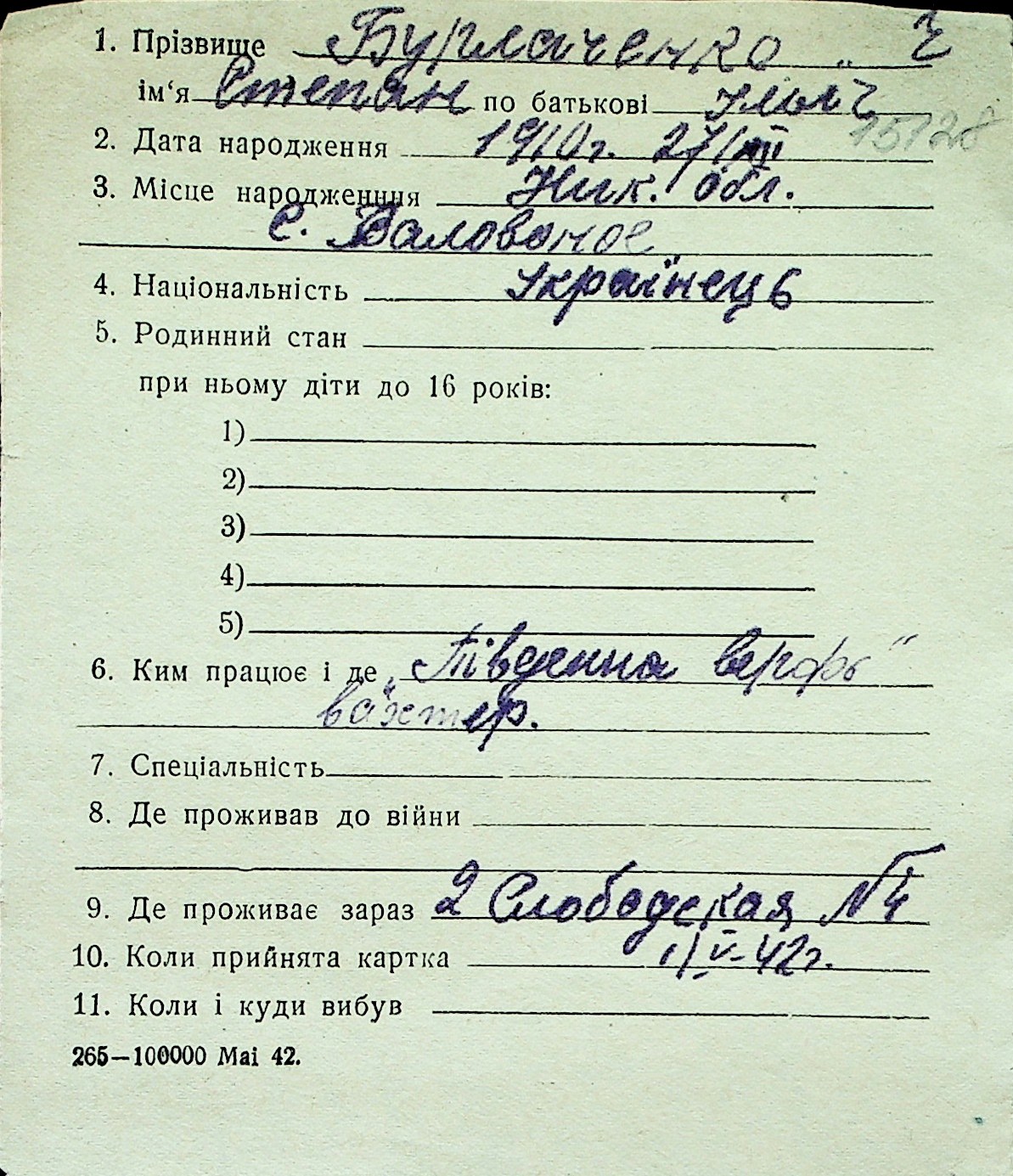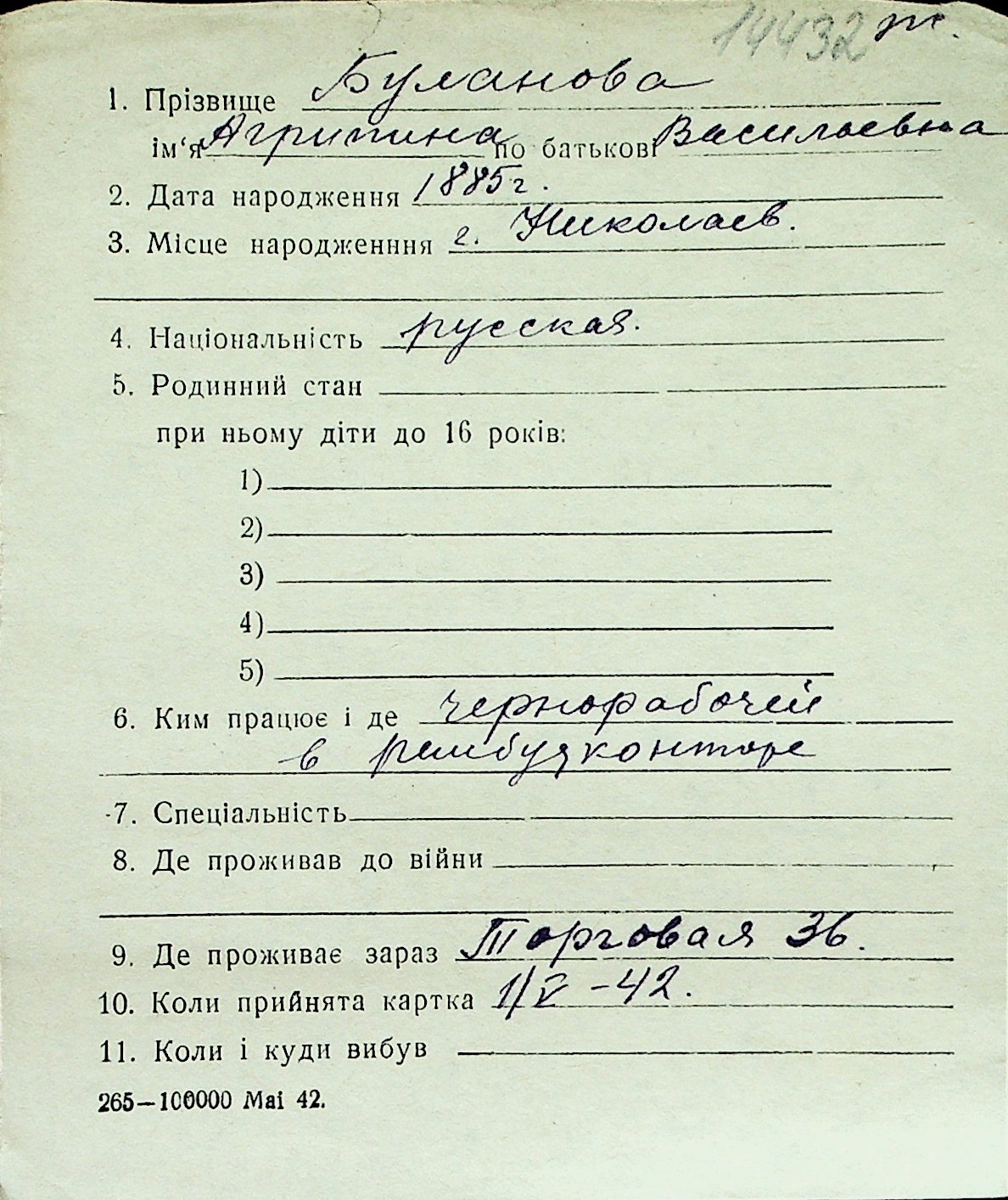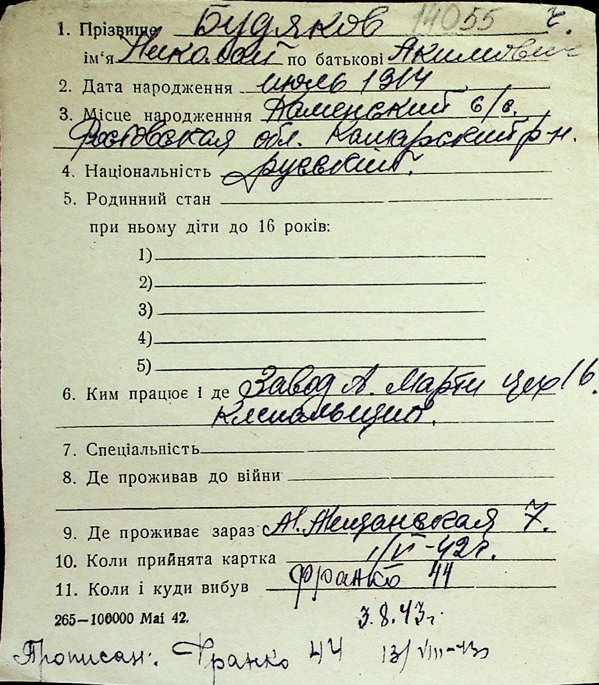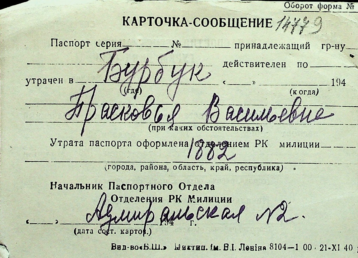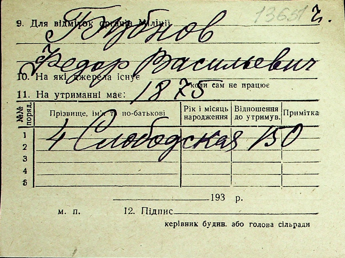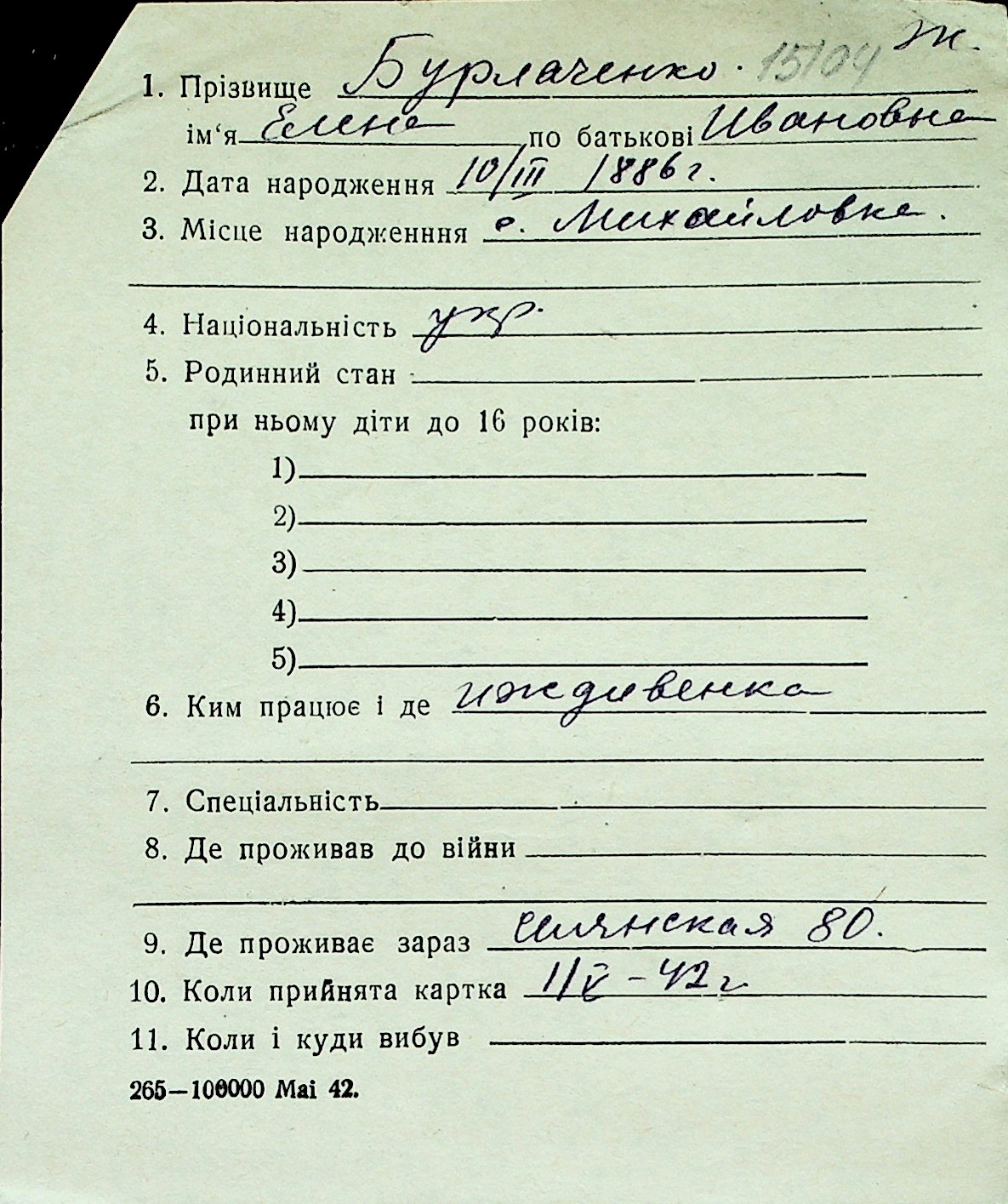◦ ◦ Перелік карток на осіб, які мешкали у м. Миколаїв у період окупації 1941–1944 років