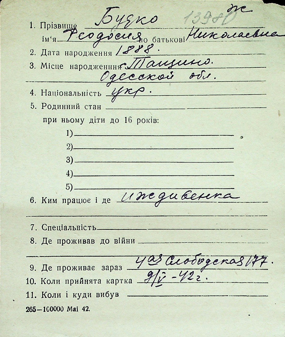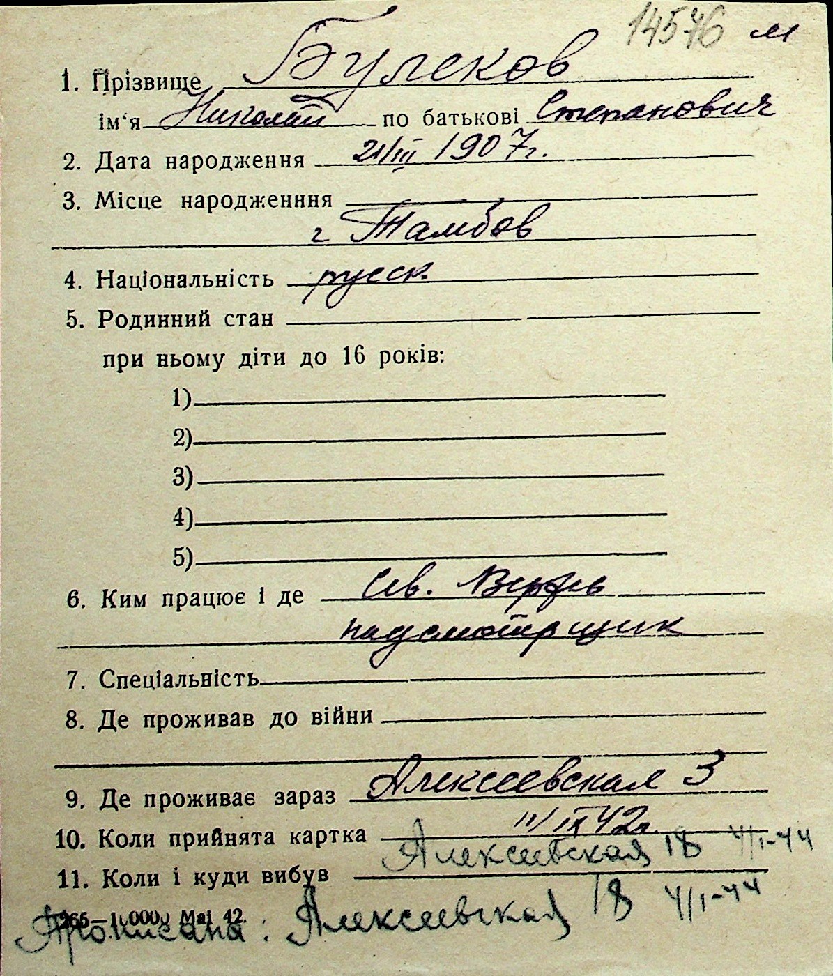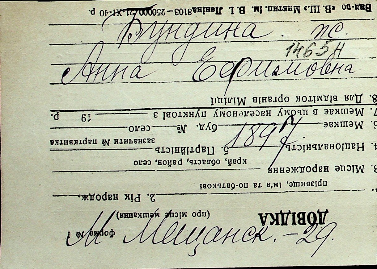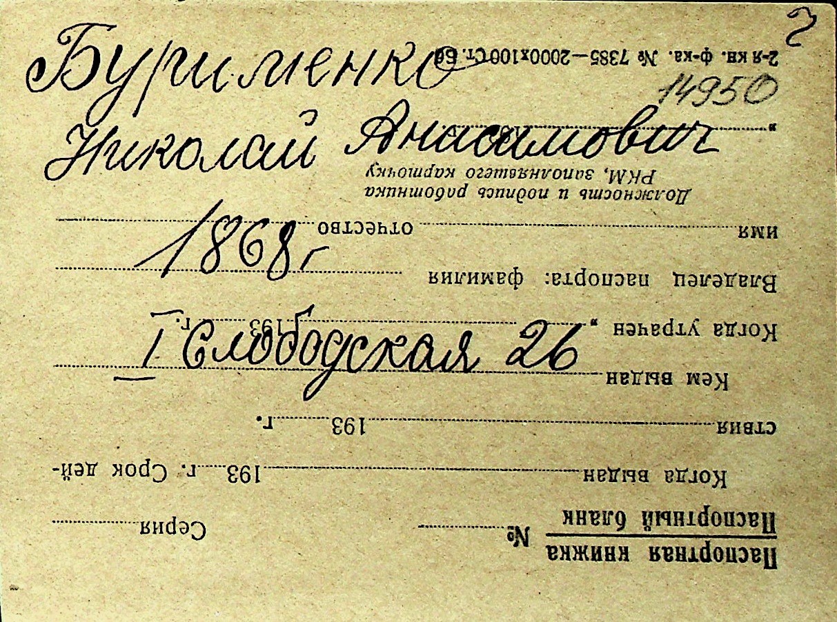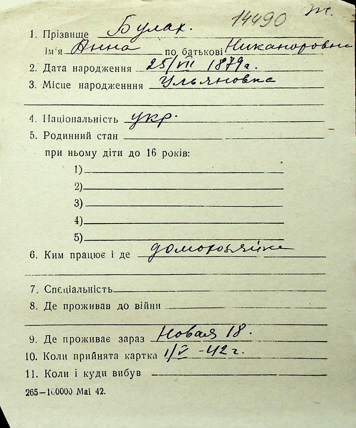 ◦ ◦ Перелік карток на осіб, які мешкали у м. Миколаїв у період окупації 1941–1944 років