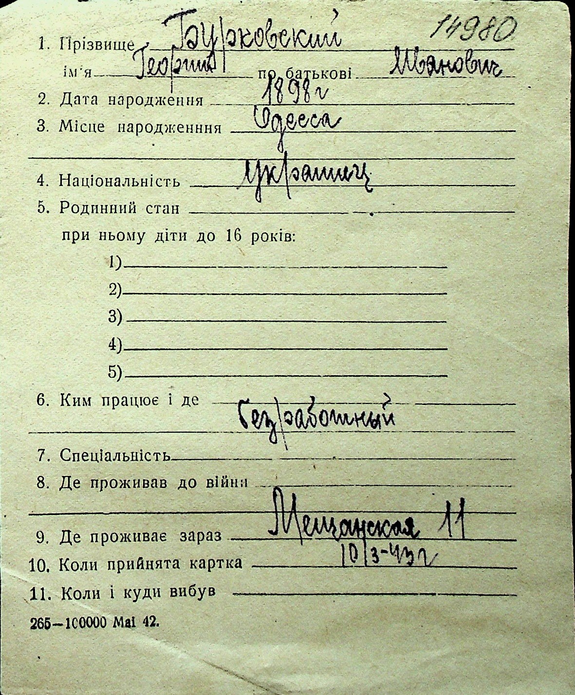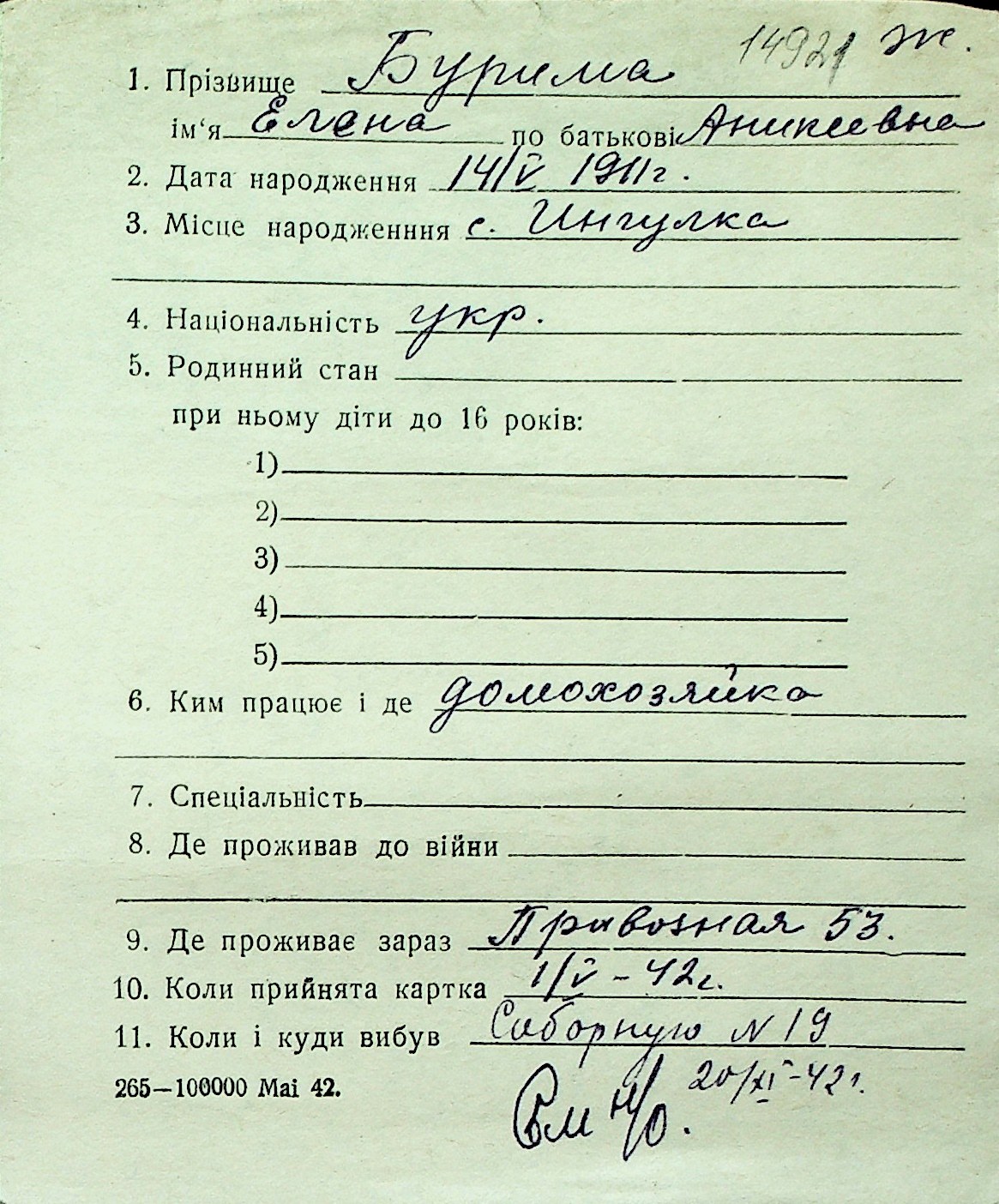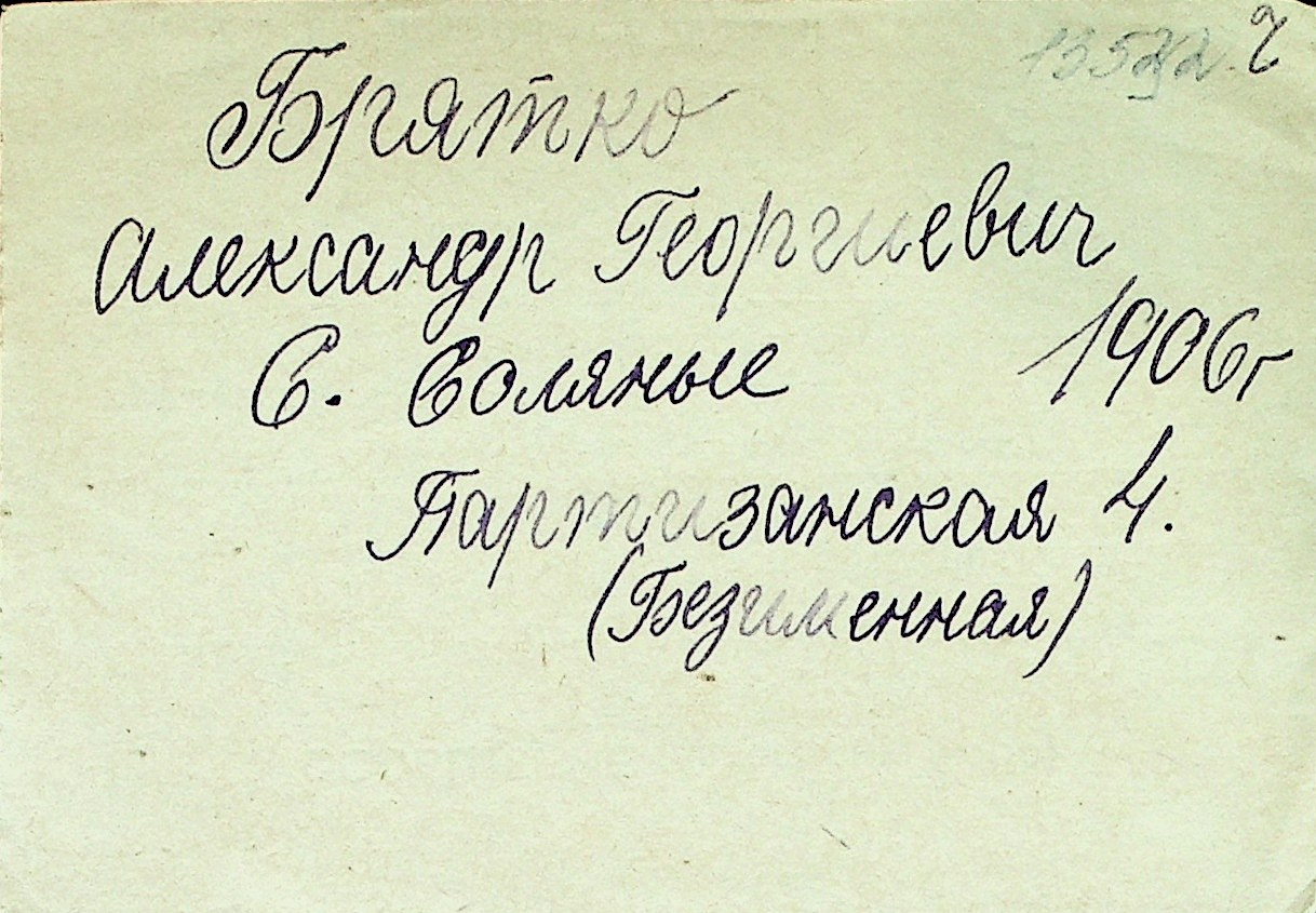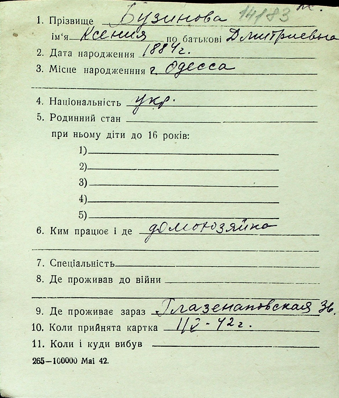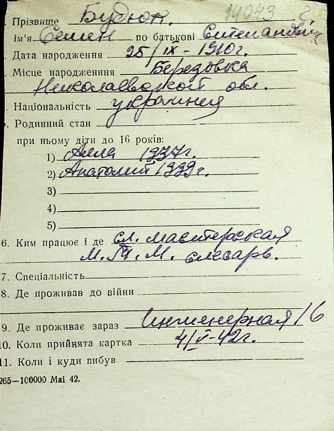 ◦ ◦ Перелік карток на осіб, які мешкали у м. Миколаїв у період окупації 1941–1944 років