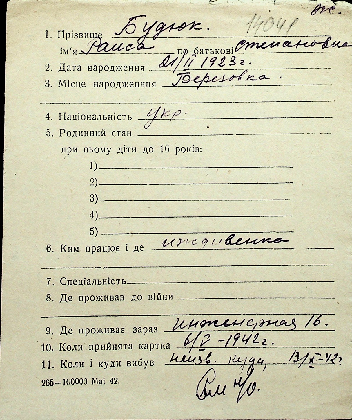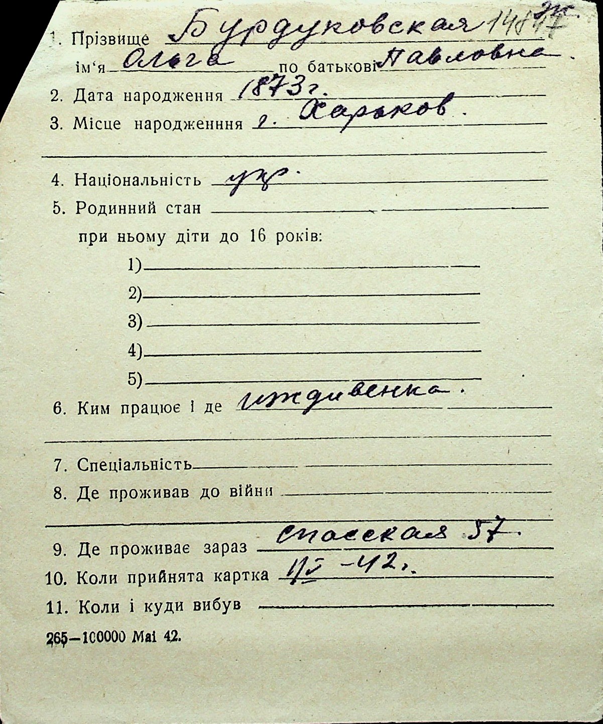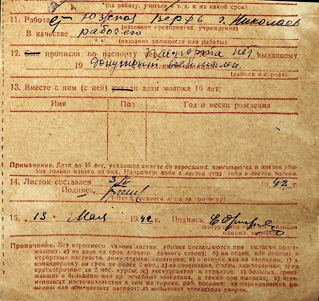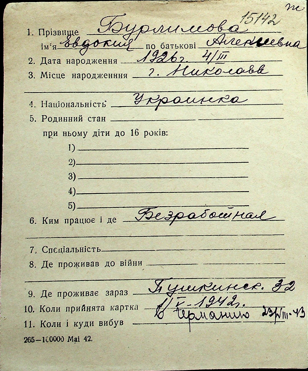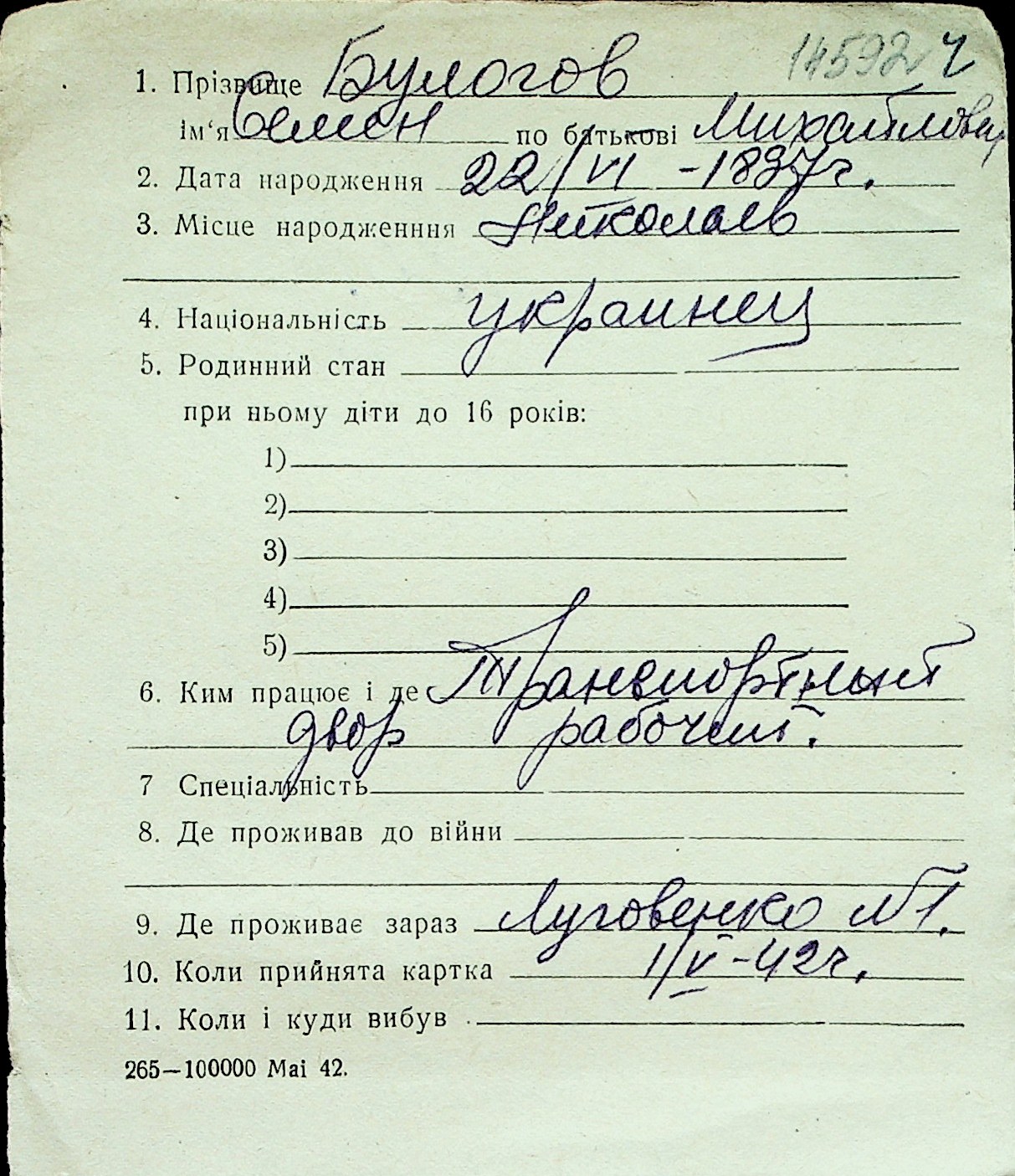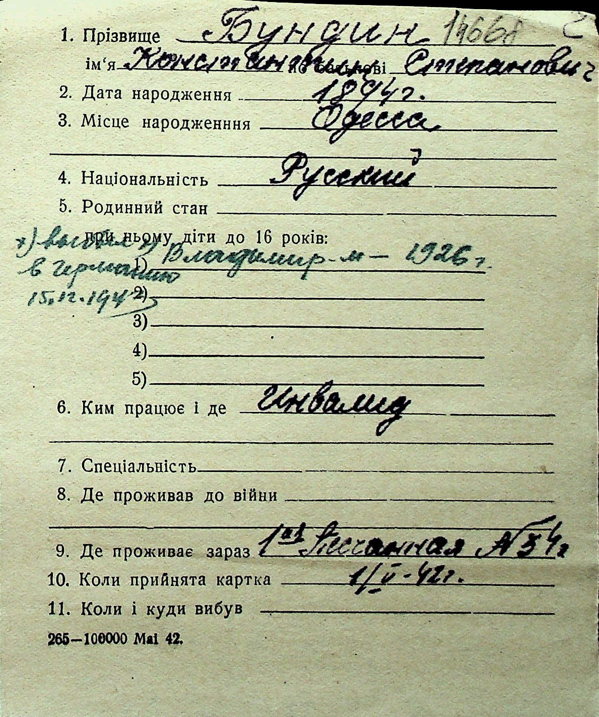 ◦ ◦ Перелік карток на осіб, які мешкали у м. Миколаїв у період окупації 1941–1944 років