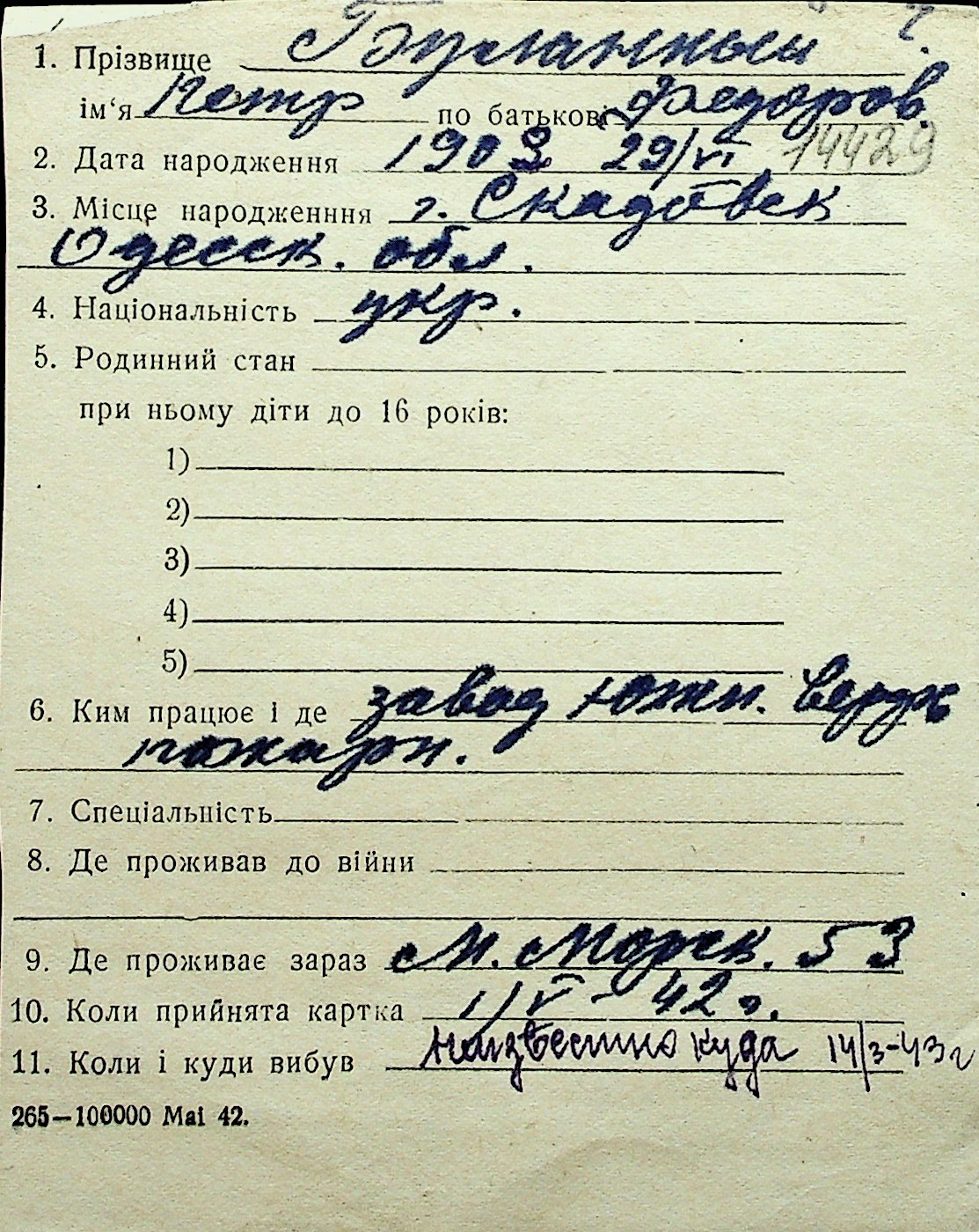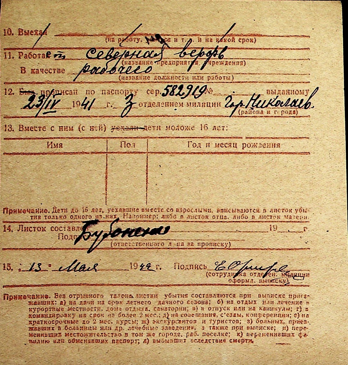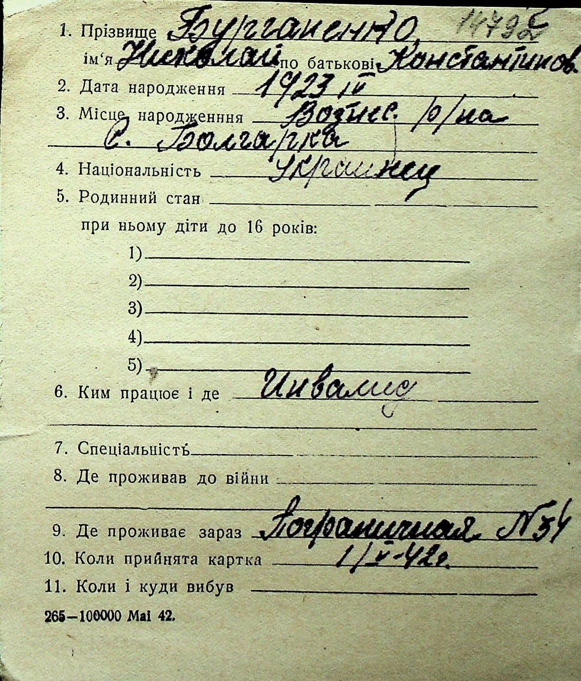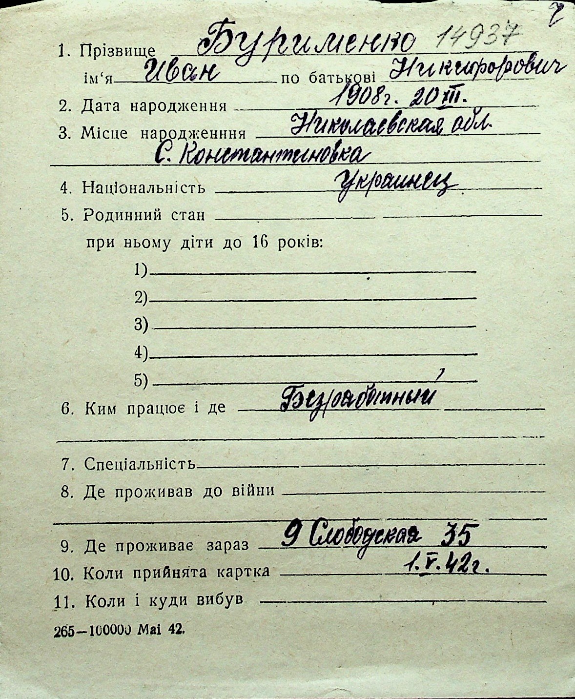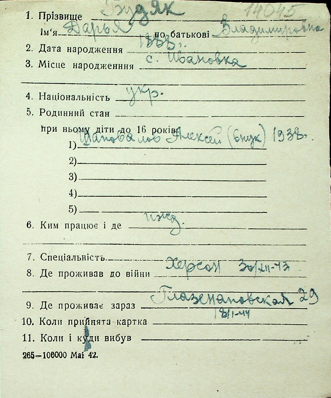 ◦ ◦ Перелік карток на осіб, які мешкали у м. Миколаїв у період окупації 1941–1944 років