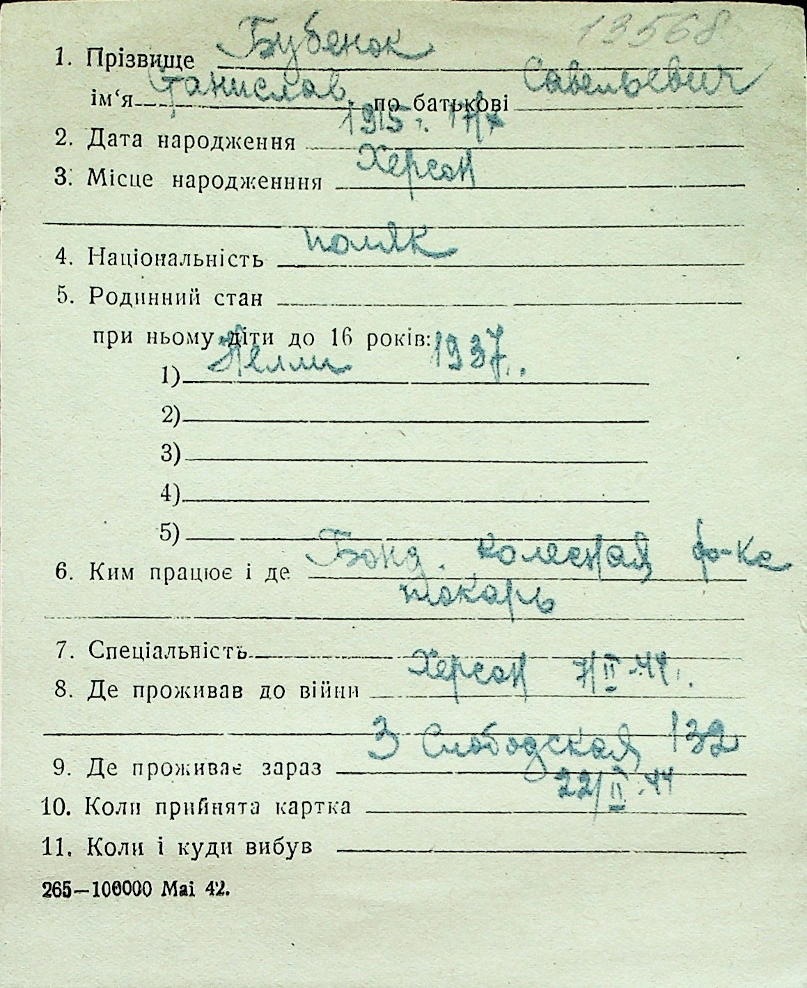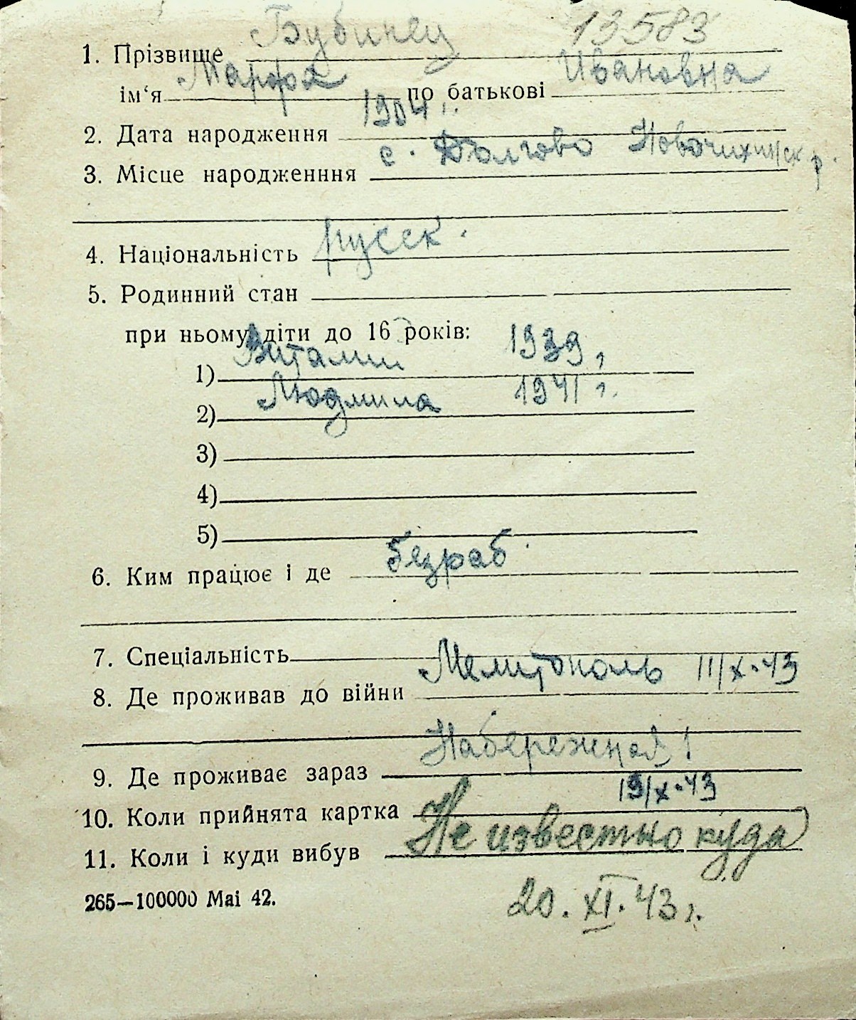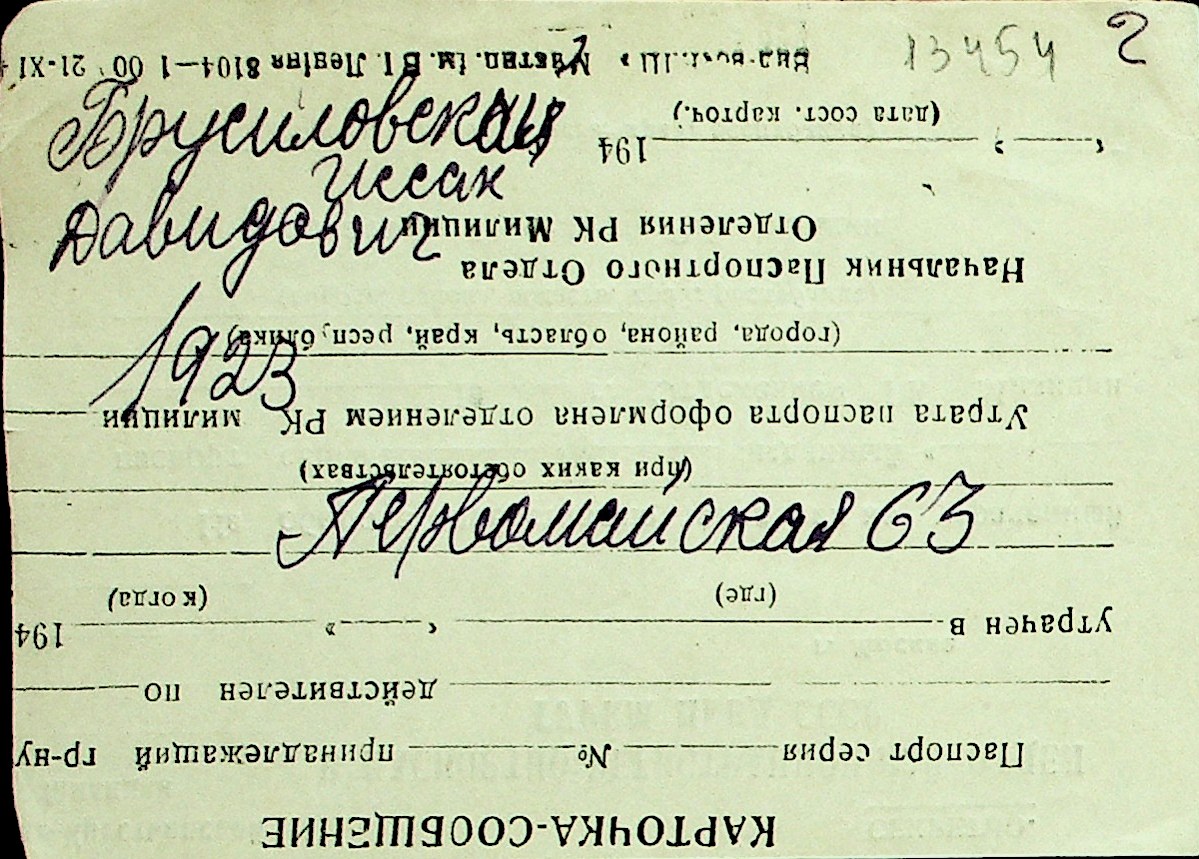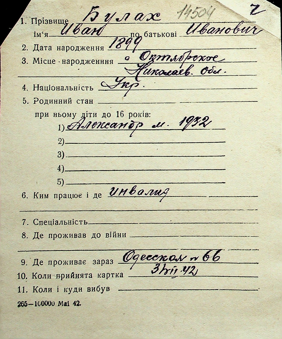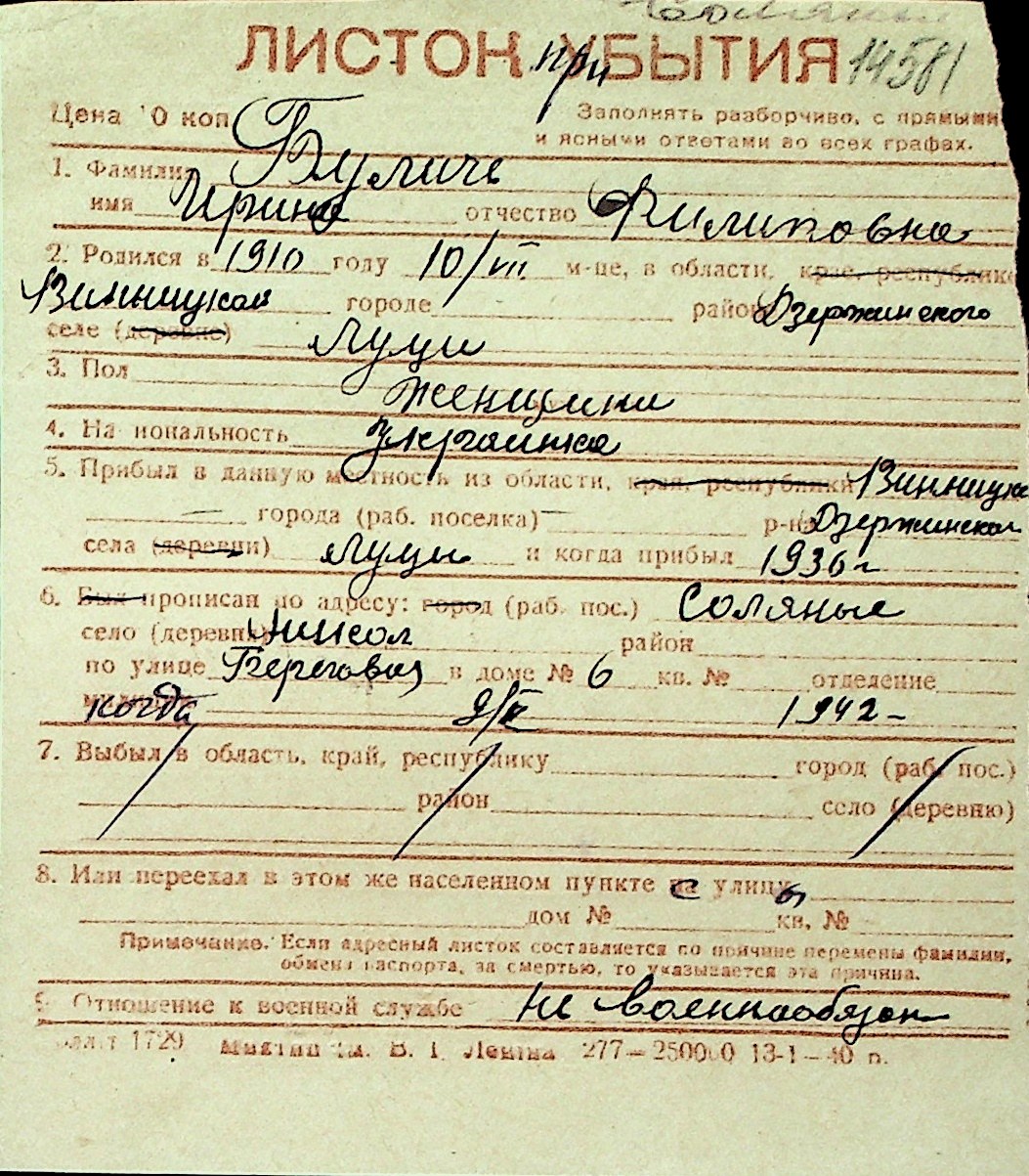 ◦ ◦ Перелік карток на осіб, які мешкали у м. Миколаїв у період окупації 1941–1944 років
