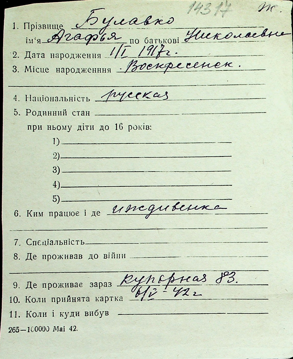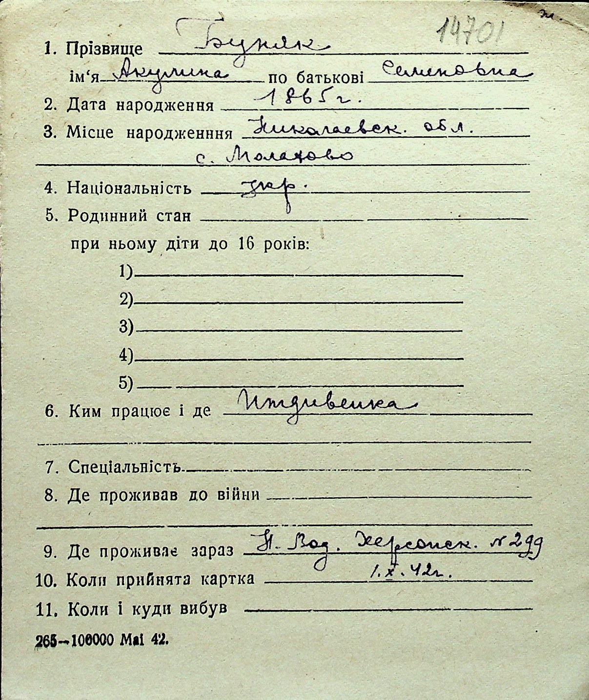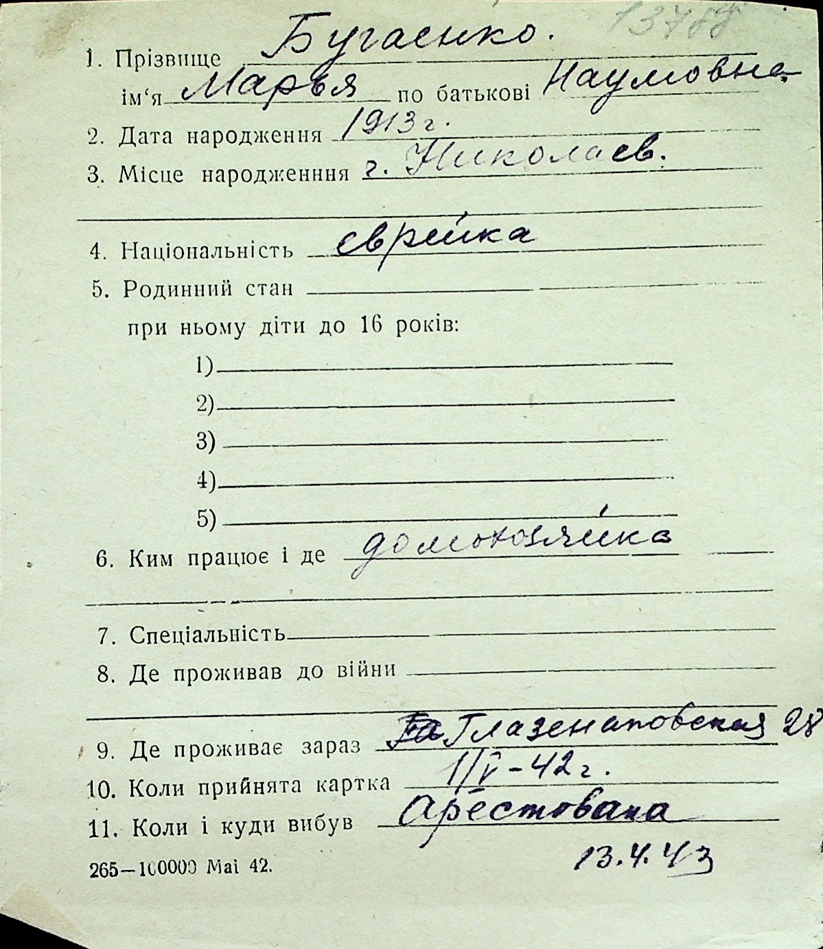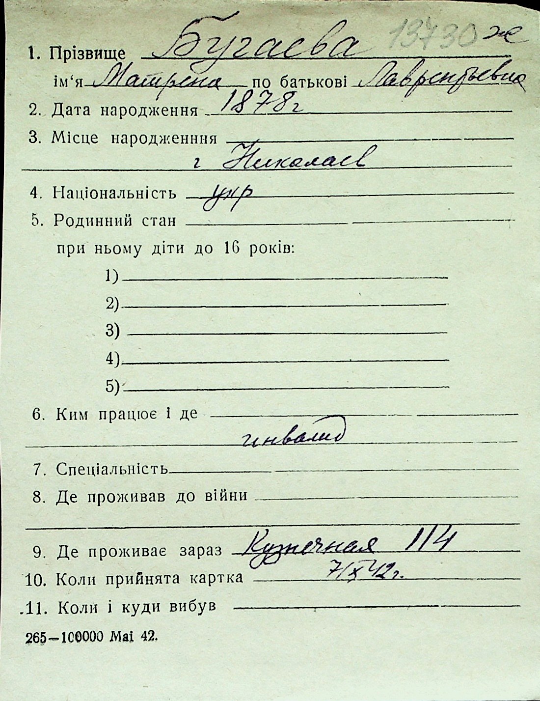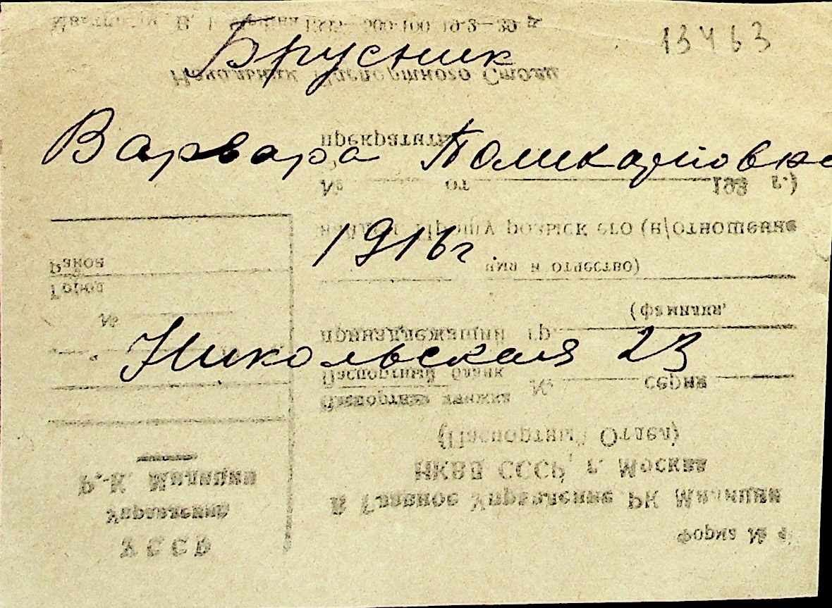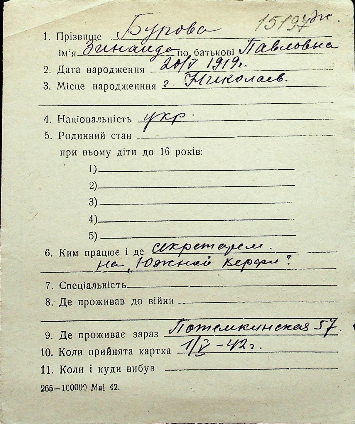 ◦ ◦ Перелік карток на осіб, які мешкали у м. Миколаїв у період окупації 1941–1944 років